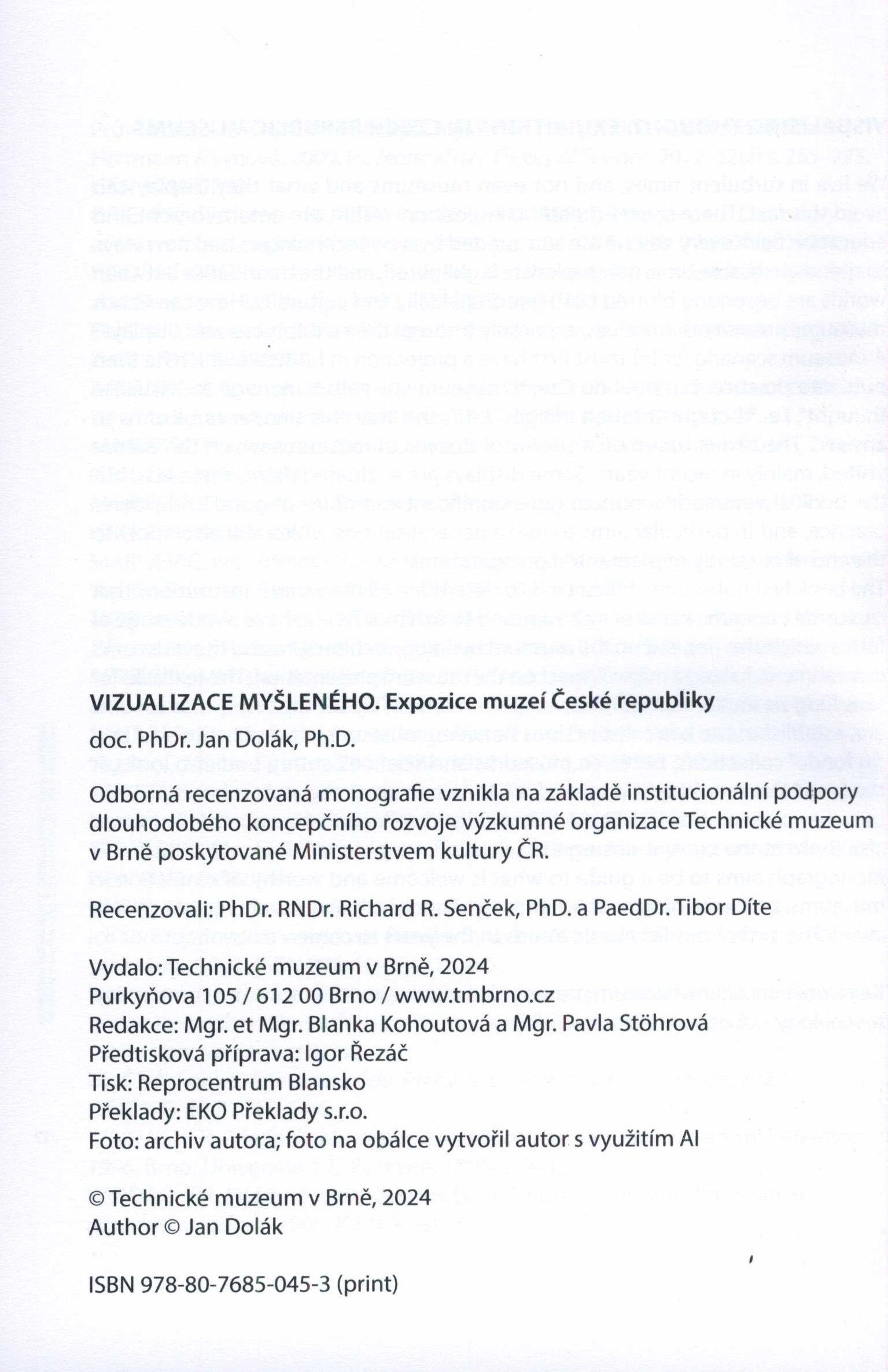 Názvové údaje Břetislav Štorm (1907-1960) : výběr z heraldického díla : [Technické muzeum v Brně, leden 1969 / Zdeněk M. Zenger... et al.] Další autoři Zenger, Zdeněk Maria, 1913-1988 (Autor úvodu atd.) Korp. Technické muzeum (Brno, Česko) Nakladatel [Jílové u Prahy : Heraldická sekce při muzeu v Jílovém u Prahy, 1969?] Rozsah [12] s. : il. Osobní hesla Štorm, Břetislav, 1907-1960 - architekt, malíř, heraldik Klíčová slova heraldika * erby * znaky * kresby * výstava * r. 1969 * publikace k výstavě * pozvánka Počet ex. 1, z toho volných 1 Druh dok. monografie Signatura C12b 15355 Názvové údaje Metodika uchovávání předmětů kulturní povahy / autorský kolektiv: Alena Selucká, Martin Mrázek, Ivo Štěpánek, Michal Mazík, Hana Grossmannová, Pavel Jirásek, Pavel Holman, Petr Jakubec, Jana Fricová, Zdeněk Vácha, Jan Červenák, Martin Dvořák, Václav Němec, Markéta Dušková, Igor Fogaš, Jiří Bačovský Osobní jméno Selucká, Alena (Autor) Další autoři Mrázek, Martin (Autor) Mazík, Michal (Autor) Štěpánek, Ivo (Autor) Grossmannová, Hana (Autor) Jirásek, Pavel, 1961- (Autor) Holman, Pavel, 1965- (Autor) Jakubec, Petr (Autor) Fricová, Jana (Autor) Vácha, Zdeněk, 1958- (Autor) Červenák, Jan (Autor) Dvořák, Martin, 1963- (Autor) Němec, Václav, 1959- (Autor) Dušková, Markéta (Autor) Fogaš, Igor, 1964- (Autor) Bačovský, Jiří (Autor) Korp. Technické muzeum (Brno, Česko) (Nakladatel, vydavatel) Tiskárna Reprocentrum (Tiskař) Nakladatel Brno : Technické muzeum v Brně, [2018] Výrobce Blansko : Reprocentrum Blansko Copyright ©2018 Rozsah 109 stran : barevné ilustrace, tabulky ; 30 cm Klíčová slova odborná literatura * metodika * konzervace * restaurování památek * muzejnictví * paměťové instituce * ochrana sbírek Počet ex. 1, z toho volných 1 Druh dok. monografie Signatura MetC 0392 Názvové údaje Vizualizace myšleného : expozice muzeí České republiky / Jan Dolák ; překlady: EKO Překlady s.r.o. Osobní jméno Dolák, Jan, 1962- (Autor) (Autor úvodu atd.) Další autoři EKO Překlady (firma) (Překladatel) Technické muzeum (Brno, Česko) (Nakladatel, vydavatel) Tiskárna Reprocentrum (Tiskař) Nakladatel Brno : Technické muzeum v Brně, 2024 Výrobce Blansko : Reprocentrum Rozsah 77 stran : barevné ilustrace ; 21 cm Klíčová slova muzea * muzejnictví * stálé expozice * muzeologie * Česko Počet ex. 1, z toho volných 1 Druh dok. monografie Signatura LITb 02256