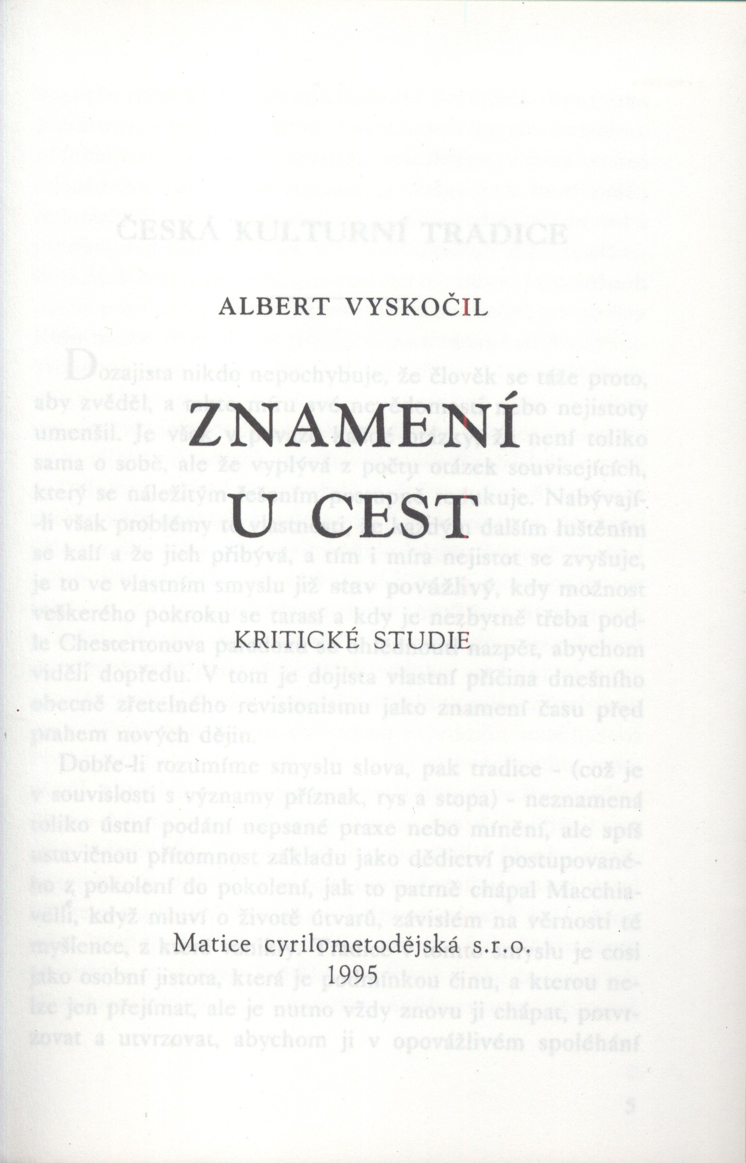 Názvové údaje Miniatury : sbírka básní 5 / Karel Dachovský ; [ilustrace a grafická úprava Ladislav Svatoš] Osobní jméno Dachovský, Karel, 1949-2015 (Autor) Další autoři Svatoš, Ladislav, 1929-2007 (Ilustrátor) Korp. Řád (nakladatelství) (Nakladatel, vydavatel) Matice cyrilometodějská (nakladatelství : 1993-) (Tiskař) Nakladatel Praha : Řád, 1998 Výrobce Matice cyrilometodějská) Rozsah 55 s. : il. Klíčová slova česká literatura * poezie * sbírka básní * stol. 20., léta 90. Počet ex. 2, z toho volných 2 Druh dok. monografie Signatura C12b 2825, RSzpuk 0348 Názvové údaje Hořké umučení Pána našeho Ježíše Krista : podle vidění augustiniánky z Dülmenu / Anna Kateřina Emmerichová ; zapsal a nástinem života této omilostněné řeholnice doplnil Clemens Brentano ; doslov Arnold Guillet ; z němčiny přeložil Petr Janšta Osobní jméno Emmerich, Anna Katharina, 1774-1824 (Autor) Další autoři Brentano, Clemens, 1778-1842 (Autor) Doré, Gustave, 1832-1883 (Ilustrátor) Korp. Matice cyrilometodějská (nakladatelství : 1993-) (Nakladatel, vydavatel) (Tiskař) Nakladatel Olomouc : Matice cyrilometodějská, 2013 Rozsah 429 stran : ilustrace ; 21 cm Osobní hesla Ježíš Kristus Klíčová slova život Ježíše Krista * utrpení Ježíše Krista * ukřižování Ježíše Krista * biblické postavy * biblické události * náboženská zjevení * Německo * stol. 1. * stol. 19. * autobiografické vzpomínky Počet ex. 1, z toho volných 1 Druh dok. monografie Signatura C12b 17590 Názvové údaje Zpěvy u bozkovských jesliček / Václav Renč ; [grafická výzdoba Jan Dostál] Osobní jméno Renč, Václav, 1911-1973 (Autor) Další autoři Dostál, Jan, 1921-1996 (Ilustrátor) Korp. Matice cyrilometodějská (nakladatelství : 1993-) (Nakladatel, vydavatel) Nakladatel V Olomouci : Matice cyrilometodějská, [1993] Rozsah [11] s., [5] obr. příl Klíčová slova česká literatura * česká poezie * vánoční tematika Počet ex. 1, z toho volných 1 Druh dok. monografie Signatura RSzpuk 0269 Názvové údaje Znamení u cest : kritické studie / Albert Vyskočil Osobní jméno Vyskočil, Albert, 1890-1966 (Autor) Další autoři Matice cyrilometodějská (nakladatelství : 1993-) (Nakladatel, vydavatel) (Tiskař) Nakladatel Olomouc : Matice cyrilometodějská s.r.o., 1995 Rozsah 197 stran ; 21 cm Klíčová slova česká literatura * studie * literární kritika * Vyskočil A. * křesťanství * křesťanská kultura Počet ex. 1, z toho volných 1 Druh dok. monografie Signatura C12b 18035 Názvové údaje Profesor Josef Vašica : jeho život, vztahy k rodině a k rodnému kraji : sborník k 110. výročí jeho narození / uspořádal Vladimír Neuwirth Další autoři Neuwirth, Vladimír, 1921-1998 (Sestavovatel, kompilátor) Korp. Matice cyrilometodějská (nakladatelství : 1993-) (Nakladatel, vydavatel) Nakladatel Olomouc : Matice cyrilometodějská, 1994 Rozsah 149 stran : ilustrace, portréty, faksimile, mapa ; 21 cm Osobní hesla Vašica, Josef, 1884-1968 - překladatel, literární historik Klíčová slova slavisté * kněží * pastorace * významné osobnosti * slavistika * Česko * stol. 20. * vzpomínky * personální bibliografie Počet ex. 1, z toho volných 1 Druh dok. monografie Signatura C12b 19420