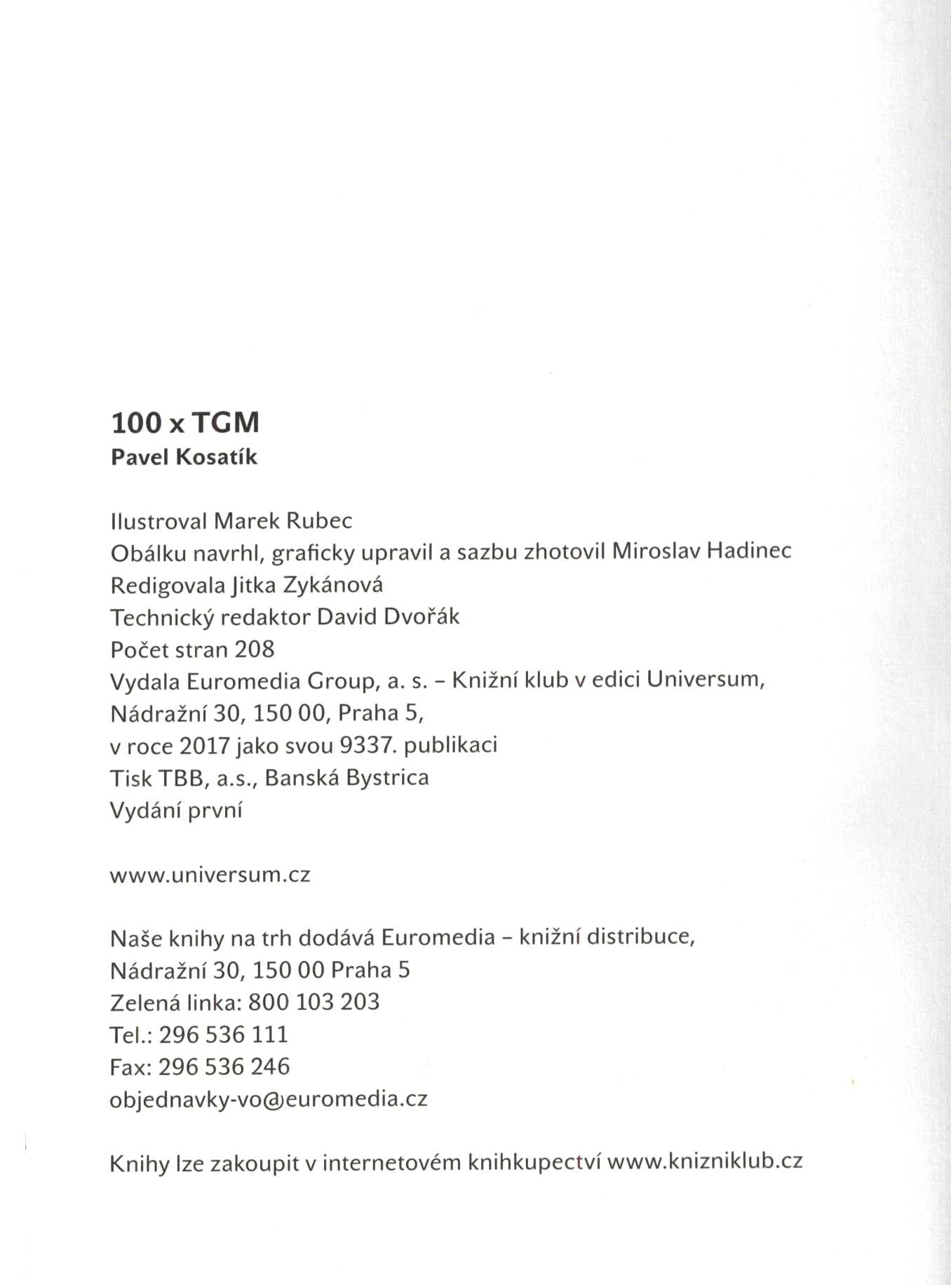 Názvové údaje Propast času. 2, Císařovna / Roman Bureš Osobní jméno Bureš, Roman, 1975- (Autor) Další autoři Janovská, Gabriela, 1977- (Autor obálky) Kučerovský, Tomáš, 1974- (Ilustrátor) Korp. Euromedia Group - Knižní klub (nakladatelství) (Nakladatel, vydavatel) Knižní klub (nakladatelství) (Nakladatel, vydavatel) Tlačiareň BB (tiskárna) (Tiskař) Nakladatel Praha : Knižní klub, 2016 Výrobce Banská Bystrica : TBB, a. s. Rozsah 445 stran ; 21 cm Osobní hesla Bureš, Roman, 1975- - autor historických románů Klíčová slova historie * próza * Bureš R. * sci-fi literatura * román * sci-fi román Počet ex. 1, z toho volných 1 Druh dok. monografie Signatura C12b 17478 Názvové údaje Krátký román o lásce / Boris Dočekal ; obálku navrhl a graficky upravil Luděk Bárta Osobní jméno Dočekal, Boris, 1950- (Autor) Další autoři Bárta, Luděk, 1961- (Autor obálky) (Knižní grafik) Korp. Nakladatelství Listen (Nakladatel, vydavatel) Euromedia Group - Knižní klub (nakladatelství) (Nakladatel, vydavatel) Tlačiareň BB (tiskárna) (Tiskař) Nakladatel Praha : Knižní klub, 2017 Výrobce Banská Bystrica : TBB, a.s. Rozsah 175 stran ; 18 cm Klíčová slova česká próza * romány Počet ex. 1, z toho volných 1 Druh dok. monografie Signatura C12a 5954 Názvové údaje Trofeje a ztráty / Aleš Dostál ; grafická úprava Ivan Brůha Osobní jméno Dostál, Aleš, 1946- (Autor) Další autoři Brůha, Ivan, 1960- (Knižní grafik) Korp. Euromedia Group - Knižní klub (nakladatelství) (Nakladatel, vydavatel) Europrint (tiskárna) (Tiskař) Nakladatel Praha : Knižní klub, 2018 Výrobce Europrint, a.s. Rozsah 350 stran ; 21 cm Klíčová slova česká próza * romány Počet ex. 1, z toho volných 1 Druh dok. monografie Signatura C12b 18631 Názvové údaje Denár v dívčí dlani / Václav Erben ; obálku zhotovila Jana Šťastná Osobní jméno Erben, Václav, 1930-2003 (Autor) Další autoři Šťastná, Jana (Autor obálky) Korp. Euromedia Group - Knižní klub (nakladatelství) (Nakladatel, vydavatel) Tlačiareň BB (tiskárna) (Tiskař) Nakladatel Praha : Knižní klub, 2017 Výrobce Banská Bystrica : tisk TBB, a.s. Rozsah 284 stran, 8 nečíslovaných stran obrazových příloh : barevné ilustrace, portréty ; 21 cm Klíčová slova český román * detektivní romány Počet ex. 1, z toho volných 1 Druh dok. monografie Signatura C12b 17939 Názvové údaje Louskáček a Myší král / Ernst Theodor Amadeus Hoffmann ; ilustrovala Marina Richterová ; [z německého originálu ... přeložila Helena Kubová ; grafická úprava David Vlček a Marina Richterová] Osobní jméno Hoffmann, E. T. A., 1776-1822 (Autor) Další autoři Richterová, Marina, 1962- (Ilustrátor) (Autor obálky) Kubová, Helena (Překladatel) Korp. Euromedia Group - Knižní klub (nakladatelství) (Nakladatel, vydavatel) Tlačiareň BB (tiskárna) (Tiskař) Nakladatel Praha : Euromedia Group - Knižní klub, 2013 Výrobce TBB) Rozsah 93 s. : il. ; 33 cm Klíčová slova německá literatura * německá próza * pohádkové příběhy * literatura pro děti Počet ex. 1, z toho volných 1 Druh dok. monografie Signatura C12d 2028 Názvové údaje 100 x TGM / Pavel Kosatík ; ilustroval Marek Rubec ; obálku navrhl, graficky upravil a sazbu zhotovil Miroslav Hadinec Osobní jméno Kosatík, Pavel, 1962- (Autor) Další autoři Rubec, Marek, 1979- (Ilustrátor) Hadinec, Miroslav, 1955- (Autor obálky) (Knižní grafik) (Sazeč) Korp. Euromedia Group - Knižní klub (nakladatelství) (Nakladatel, vydavatel) Tlačiareň BB (tiskárna) (Sazeč) Nakladatel Praha : Knižní klub, 2017 Výrobce Banská Bystrica : tisk TBB, a.s. Rozsah 207 stran : ilustrace ; 19 cm Osobní hesla Masaryk, Tomáš Garrigue, 1850-1937 - politik, první čsl. president, filosof, sociolog, novinář, vysokoškolský učitel, spisovatel Klíčová slova českoslovenští prezidenti * humanisté * politika * Československo * názory * postoje * filozofické myšlenky * eseje * citáty * stol. 19.-20. Počet ex. 1, z toho volných 1 Druh dok. monografie Signatura C12b 18016 Názvové údaje Menší knížka o německých spisovatelích z Čech a Moravy : doplněné a rozšířené vydání / Pavel Kosatík ; obálku s použitím fotografie pomníku Franze Kafky od Jaroslava Róny navrhl Ivan Brůha Osobní jméno Kosatík, Pavel, 1962- (Autor) Další autoři Brůha, Ivan, 1960- (Autor obálky) Korp. Euromedia Group - Knižní klub (nakladatelství) (Nakladatel, vydavatel) Tlačiareň BB (tiskárna) (Tiskař) Nakladatel Praha : Knižní klub, 2017 Výrobce Banská Bystrica : tisk TBB, a.s. Rozsah 285 stran : ilustrace, portréty, faksimile ; 21 cm Klíčová slova německy psaná literatura * německy píšící spisovatelé * pražští němečtí spisovatelé * moravská německá literatura * němečtí spisovatelé * Čechy a Morava * stol. 13.-20. * monografie Počet ex. 1, z toho volných 1 Druh dok. monografie Signatura C12b 18024 Názvové údaje Tapetář / Ema Labudová ; obálku navrhla Nikola Janíčková (Take Take Take) Osobní jméno Labudová, Ema, 1999- (Autor) Další autoři Janíčková, Nikola, 1990- (Autor obálky) Korp. Euromedia Group (nakladatelství) (Nakladatel, vydavatel) Euromedia Group - Knižní klub (nakladatelství) (Nakladatel, vydavatel) Tlačiareň BB (tiskárna) (Tiskař) Nakladatel Praha : Euromedia Group, 2019 Výrobce Banská Bystrica : TBB, a.s. Rozsah 183 stran ; 21 cm Klíčová slova česká literatura * próza * novela Počet ex. 1, z toho volných 1 Druh dok. monografie Signatura LITb 00025 Názvové údaje Český rok Josefa Lady / obrázky a vzpomínky Josefa Lady ; verše Michala Černíka ; [ilustrace a vzpomínkové texty Josefa Lady vybral a uspořádal ; obálku navrhl a graficky upravil Vladimír Vimr] Osobní jméno Lada, Josef, 1887-1957 (Autor) (Ilustrátor) Další autoři Černík, Michal, 1943-2024 (Autor) Vimr, Vladimír, 1954- (