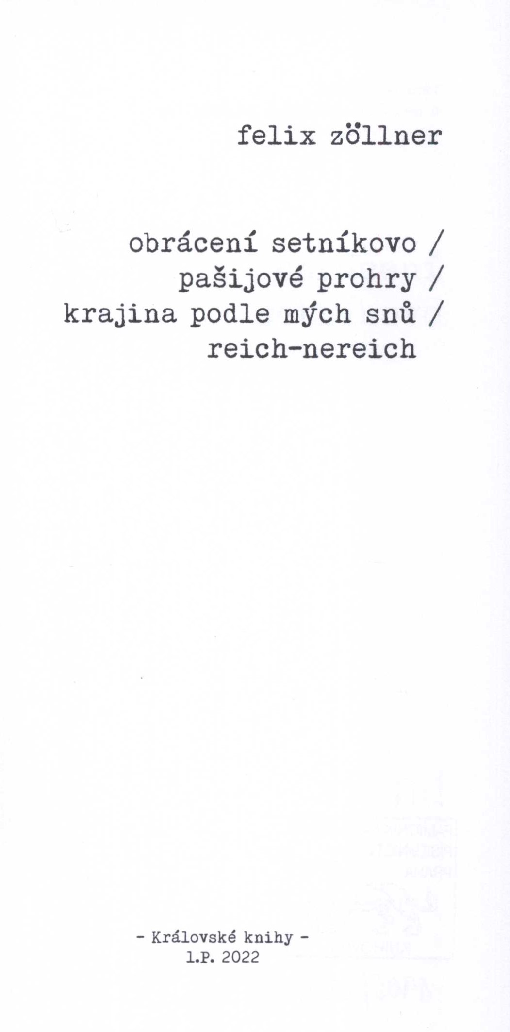 Názvové údaje La Bible : Premier et Deuxième Livre des Rois / Émile Osty et Joseph Trinquet Osobní jméno Osty, Émile, 1887-1981 (Autor) Další autoři Trinquet, Joseph, 1919-2001 (Autor) Berrar, E. (Tiskař) Korp. Éditions Rencontre (Nakladatel, vydavatel) Unifikovaný název Non nobis, Domine, (Královské knihy) Nakladatel Paris : Éditions Rencontre, 1970 Výrobce E. Berrar Rozsah 330 stran, 40 stran obrazové přílohy : ilustrace ; 20 cm Klíčová slova komentované vydání * Bible * biblistika * náboženství Počet ex. 1, z toho volných 1 Druh dok. monografie Signatura JVladislav 1843 Názvové údaje Obrácení setníkovo ; Pašijové prohry ; Krajina podle mých snů ; Reich-neReich / Felix Zöllner ; k vydání připravil Prokop Zapletal ; ilustrace Mark Ther Osobní jméno Zöllner, Felix, 1989- (Autor) Další autoři Zöllner, Felix, 1989- Obrácení setníkovo Zöllner, Felix, 1989- Pašijové prohry Zöllner, Felix, 1989- Krajina podle mých snů Zöllner, Felix, 1989- Reich-neReich Zapletal, Prokop, 2000- (Editor) Ther, Marek, 1977- (Ilustrátor) Korp. Královské knihy (nakladatelství) (Nakladatel, vydavatel) Tiskárna Broumov (Tiskař) Nakladatel Praha : Královské knihy, 2022 Výrobce Broumov : Tiskárna Broumov Rozsah 55 stran : ilustrace ; 19 cm Klíčová slova česká literatura * poezie * sbírka básní * víra Počet ex. 1, z toho volných 1 Druh dok. monografie Signatura LITb 01595