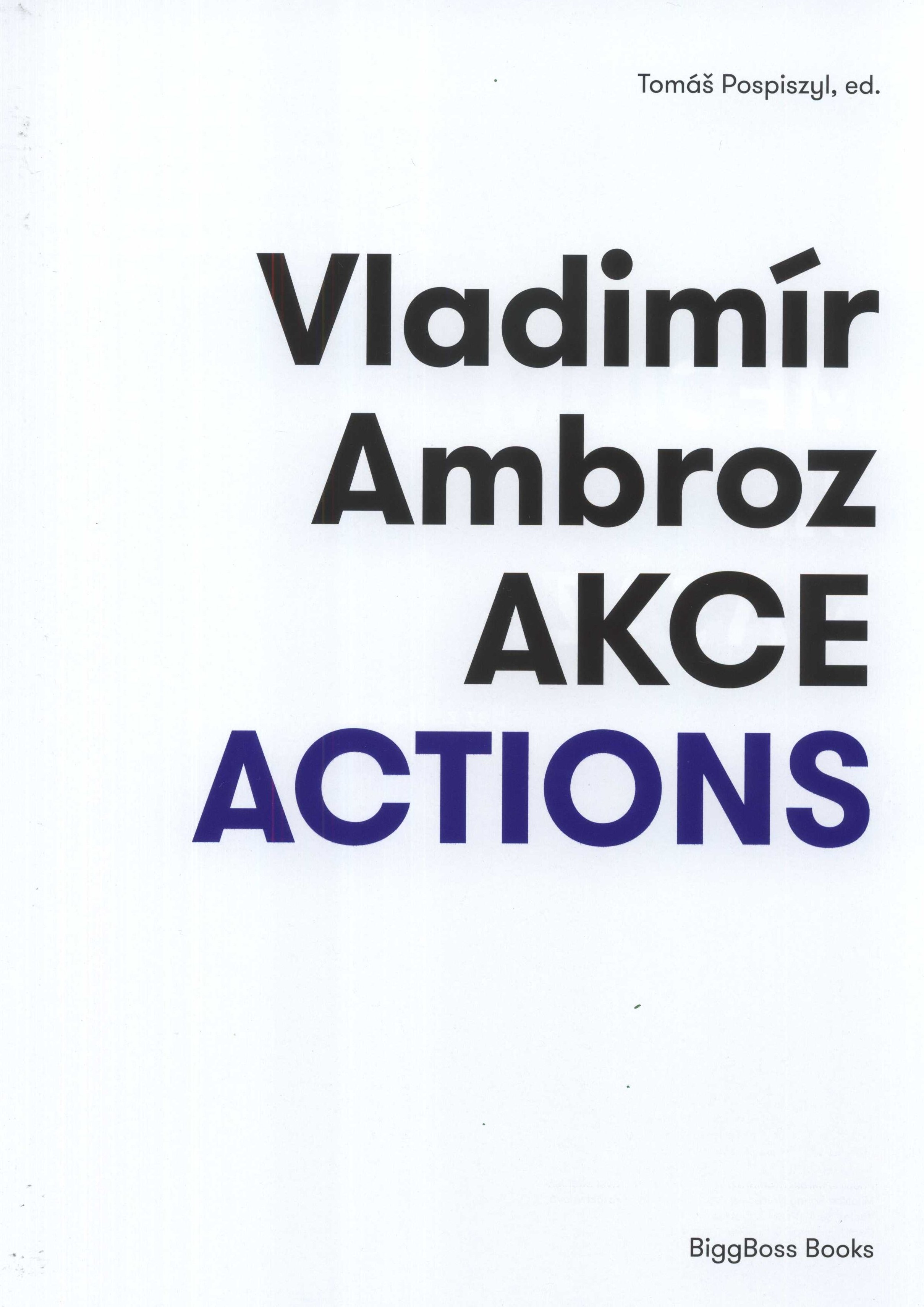 | Názvové údaje | Vladimír Ambroz : akce = actions / Tomáš Pospiszyl, ed. ; texty Vladimír Ambroz, Pavel Büchler, Marian Palla, Tomáš Pospiszyl, Petr Štembera ; překlad Magdaléna Wells, Lawrence Wells ; fotografie Miroslav Ambroz, Vladimír Ambroz, Pavel Büchler, Miroslav Sonny Halas, Jef Kratochvil, Marie Kratochvílová, Václav Šedý, Pavel Zatloukal ; grafická úprava Kroistina Ambrozová