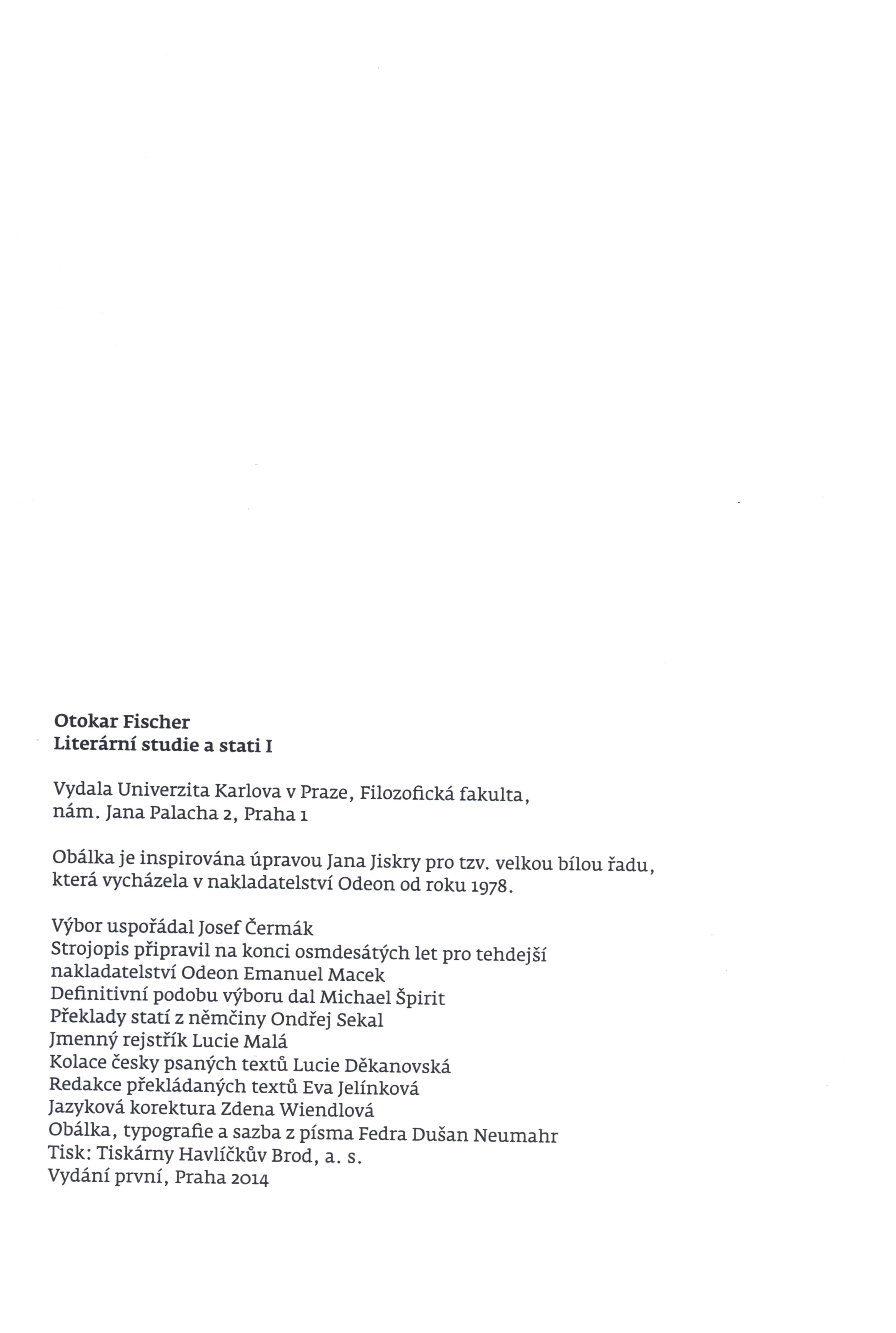 Názvové údaje Knihy o epice : Naši, Švejk, Zbabělci / Přemysl Blažíček ; uspořádal, k vydání připravil a komentářem opatřil Michael Špirit ; [grafická úprava podle osnovy Vladimíra Nárožníka] Osobní jméno Blažíček, Přemysl, 1932-2002 (Autor) Další autoři Špirit, Michael, 1965- (Autor komentáře textu) (Editor) Nárožník, Vladimír, 1939-2002 (Knižní grafik) Korp. Triáda (nakladatelství) (Nakladatel, vydavatel) Graspo (tiskárna) (Tiskař) Nakladatel Praha : Triáda, 2014 Rozsah 583 s. ; 19 cm Osobní hesla Holeček, Josef, 1853-1929 - básník, prozaik, překladatel, publicista * Hašek, Jaroslav, 1883-1923 - novinář, prozaik, humorista, satirik, autor kabaretních her a publicista * Škvorecký, Josef, 1924-2012 - prozaik, básník, literární kritik, překladatel Klíčová slova český román * stol. 19.-20. * textová analýza * interpretace literárního díla * přijetí literárního díla Počet ex. 1, z toho volných 1 Druh dok. monografie Signatura C12b 15948 Názvové údaje Knihy o poezii: Holan - Toman / Přemysl Blažíček ; [uspořádal, k vydání připravil a komentářem opatřil Michael Špirit ; grafická úprava podle osnovy Vladimíra Nárožníka] Osobní jméno Blažíček, Přemysl, 1932-2002 (Autor) Další autoři Špirit, Michael, 1965- (Editor) (Sestavovatel, kompilátor) (Autor komentáře textu) Nárožník, Vladimír, 1939-2002 (Knižní grafik) Korp. Triáda (nakladatelství) (Nakladatel, vydavatel) Nakladatel Praha : Triáda, 2011 Výrobce Akcent) Rozsah 471 s. Osobní hesla Holan, Vladimír, 1905-1980 - básník, prozaik, překladatel * Toman, Karel, 1877-1946 - archivář, básník, překladatel Klíčová slova čeští básníci * česká poezie * stol. 19.-20. * literárněvědné rozbory * literárněvědné studie * monografie Počet ex. 1, z toho volných 1 Druh dok. monografie Signatura C12b 13230 Názvové údaje Podřezávání větve / Antonín Brousek ; uspoř., k vyd. připr., ediční pozn. a komentáře napsal a jmenný rejstř. a bibliogr. A. Brouska ses. Michael Špirit ; německy psané stati přel. Veronika Dudková ; graf. upr. Vladimír Nárožník Osobní jméno Brousek, Antonín, 1941-2013 (Autor) Další autoři Špirit, Michael, 1965- (Editor) (Autor komentáře) (Autor doslovu, tiráže atd.) Dudková, Veronika, 1969- (Překladatel) Nárožník, Vladimír, 1939-2002 (Grafický technik) Nakladatel Praha : Torst, 1999 Rozsah 799 s. Klíčová slova česká literatura * literární studie * literární kritika * literární historie * články * recenze * polemiky Počet ex. 1, z toho volných 1 Druh dok. monografie Signatura C12b 5318 Názvové údaje Literární studie a stati I / Otokar Fischer ; uspořádal Josef Čermák ; ve strojopisu k vydání připravil Emanuel Macek ; [definitivní podobu výboru dal Michael Špirit ; překlady statí z němčiny Ondřej Sekal ; obálka, typografie a sazba z písma Fedra Dušan Neumahr] Osobní jméno Fischer, Otokar, 1883-1938 (Autor) Další autoři Čermák, Josef, 1928-2020 (Sestavovatel, kompilátor) Macek, Emanuel, 1924-1997 (Jiná role) Špirit, Michael, 1965- (Editor) Sekal, Ondřej, 1961- (Překladatel) Neumahr, Dušan, 1967- (Autor obálky) Nakladatel Praha : Univerzita Karlova, Filozofická fakulta, 2014 Rozsah 584 s. ; 22 cm Osobní hesla Fischer, Otokar, 1883-1938 - germanista, literární historik, básník, překladatel Klíčová slova česká literatura * světová literatura * výbor z díla * bohemistika * literární věda * literární vědci * Fischer O. * Česko * stol. 19.-20. Počet ex. 1, z toho volných 1 Druh dok. monografie Signatura C12b 15920 Názvové údaje Literární studie a stati II / Otokar Fischer ; uspořádal Josef Čermák ; ve strojopisu k vydání připravil Emanuel Macek ; [definitivní podobu výboru dal, soupisy sestavil a ediční poznámku napsal Michael Špirit ; překlady statí Eva Blinková Pelánová, Jiří Pelán a Ondřej Sekal ; obálka, typografie a sazba ... Dušan Neumahr] Osobní jméno Fischer, Otokar, 1883-1938 (Autor) Další autoři Čermák, Josef, 1928-2020 (Editor) Macek, Emanuel, 1924-1997 (Editor) Špirit, Michael, 1965- (Editor) (Autor komentáře) Blinková Pelánová, Eva, 1978- (Překladatel) Pelán, Jiří, 1950- (Překladatel) Sekal, Ondřej, 1961- (Překladatel) Neumahr, Dušan, 1967- (Autor obálky) Nakladatel Praha : Univerzita Karlova, Filozofická fakulta, 2015 Rozsah 638 s. Osobní hesla Fischer, Otokar, 1883-1938 - germanista, literární historik, básník, překladatel Klíčová slova česká literatura * světová literatura * německy psaná literatura * literární věda * literární kritika * publicistika * versologie * studie * články * stati * výbory Počet ex. 1, z toho volných 1 Druh dok. monografie Signatura C12b 16093 Názvové údaje Žalmy a melodie / Viktor Fischl ; K vyd. připr., doslov a ediční pozn. napsal Michael Špirit ; Graf. úpr. Robert V. Novák Osobní jméno Fischl, Viktor, 1912-2006 (Autor) Další autoři Špirit, Michael, 1965- Novák, Robert V., 1962- (Grafický technik) Fischl, Viktor, 1912-2006 (Autor podpisu) Nakladatel Praha : Torst, 1997 Rozsah 237 s. Osobní hesla Fischl, Viktor, 1912-2006 - diplomat, básník, prozaik, publicista, překladatel * Fischl, Viktor, 1912-2006 - diplomat, básník, prozaik, publicista, překladatel * Dagan, Avigdor, 1912-2006 - čes. novinář, prozaik, básník, diplomat * Fischl, Viktor, 1912-2006 - diplomat, básník, prozaik, publicista, překladatel Klíčová slova česká literatura * poezie * sbírky básní * stol. 20., léta 30.-40. Počet ex. 2, z toho volných 2 Druh dok. monografie Signatura C12b 1340, C12b 1340a Názvové údaje Máchovské studie / Růžena Grebeníčková ; uspořádal [k vydání připravil, ediční poznámku a komentář napsal a rejstříky sestavil] Michael Špirit. [přebal navrhla Michaela Blažejová, grafickou úpravu navrhl Juraj Demovič] Os