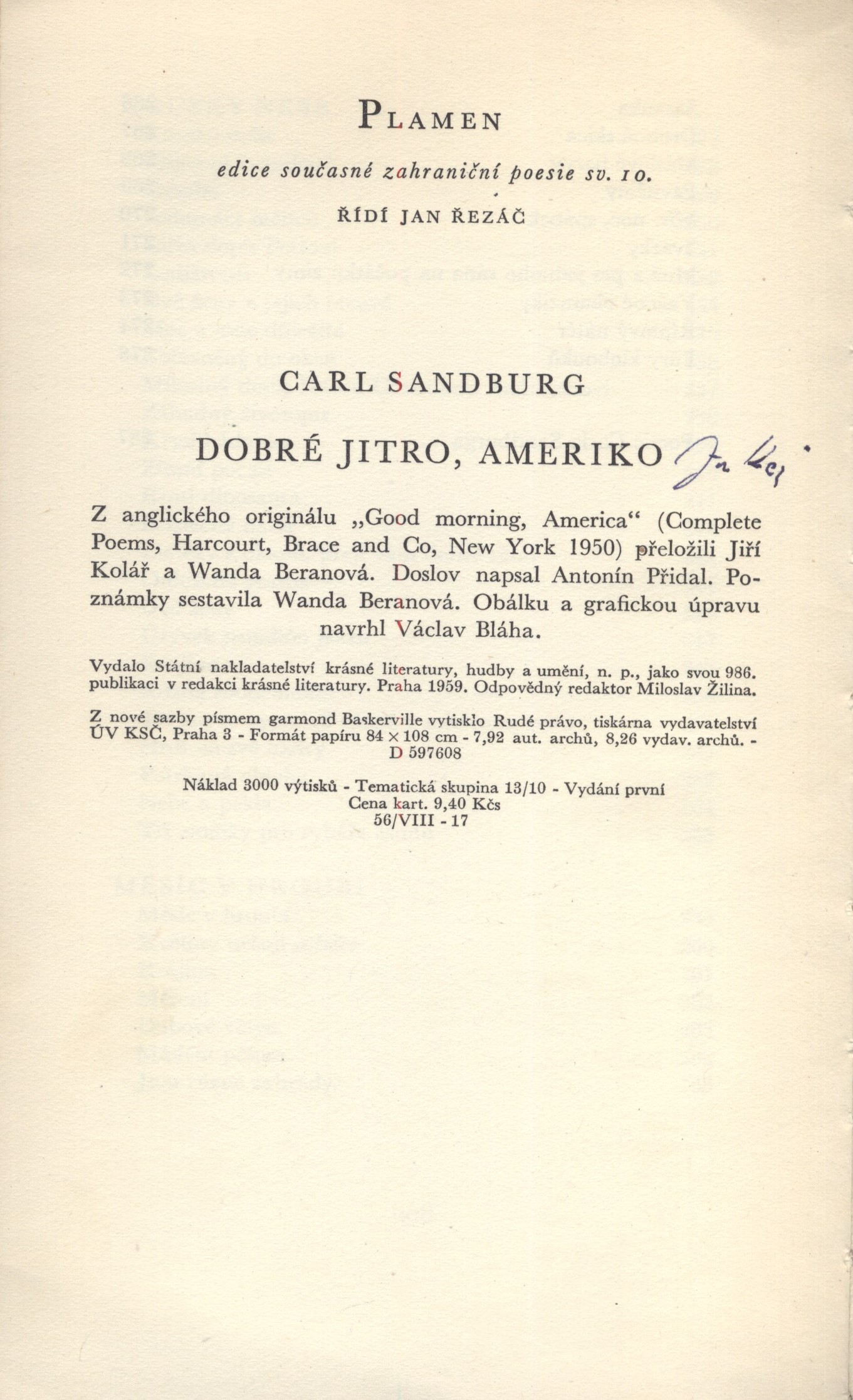 Názvové údaje Hry / Edward Albee ; z anglických originálů přeložili Wanda Zámecká, Pellar Rudolf, Milan Lukeš, Pellarová Luba ; doslov napsal Milan Lukeš ; obálku navrhl Ivan Urbánek Osobní jméno Albee, Edward, 1928-2016 (Autor) Další autoři Beranová, Wanda, 1929- (Překladatel) Lukeš, Milan, 1933-2007 (Autor doslovu, tiráže atd.) (Překladatel) Pellar, Rudolf, 1923-2010 (Překladatel) Pellarová, Luba, 1922-2005 (Překladatel) Urbánek, Ivan, 1933-1994 (Autor obálky) Korp. Orbis (nakladatelství a vydavatelství) (Nakladatel, vydavatel) Nakladatel Praha : Orbis, 1964 Rozsah 252 stran Klíčová slova americká próza * dramata * divadelní hry Druh dok. monografie Názvové údaje Hry : Stalo se v ZOO ; Pískoviště ; Americký sen ; Kdo se bojí Virginie Woolfové (Kdopak by se Kafky bál?) / Albee Edward ; doslov napsal Milan Lukeš ; obálku navrhl Ivan Urbánek Osobní jméno Albee, Edward, 1928-2016 (Autor) Další autoři Pellar, Rudolf, 1923-2010 (Překladatel) Lukeš, Milan, 1933-2007 (Autor doslovu, tiráže atd.) (Překladatel) Zámecká, Wanda, 1929- (Překladatel) Pellarová, Luba, 1922-2005 (Překladatel) Urbánek, Ivan, 1933-1994 (Autor obálky) Korp. Orbis (nakladatelství a vydavatelství) (Nakladatel, vydavatel) Knihtisk (tiskárna) (Tiskař) Nakladatel Praha : Orbis, 1964 Výrobce Praha : Knihtisk n. p. Rozsah 252 stran ; 19 cm Klíčová slova drama * USA * překlady do češtiny * divadelní drama * divadelní umělci Počet ex. 2, z toho volných 2 Druh dok. monografie Signatura P 40 c 45, R&AHamanovi 1591 Názvové údaje Děvče se zelenýma očima / Edna O'Brienová ; [z anglického originálu ... přeložila, doslov a poznámky napsala Wanda Zámecká ; obálku navrhl a graficky upravil Jaroslav Šváb] Osobní jméno O'Brien, Edna, 1930-2024 (Autor) Další autoři Zámecká, Wanda, 1929- (Překladatel) Šváb, Jaroslav, 1906-1999 (Knižní grafik) (Autor obálky) Korp. Mladá fronta (nakladatelství) (Nakladatel, vydavatel) Nakladatel Praha : Mladá fronta, 1968 Výrobce (Mír 3) Rozsah 201, [2] s. ; 8° Klíčová slova anglická literatura * romány * autobiografické prvky * Irsko Počet ex. 1, z toho volných 1 Druh dok. monografie Signatura Fuks 0063 Názvové údaje Dobré jitro, Ameriko / Carl Sandburg ; přeložili Jiří Kolář a Wanda Beranová Osobní jméno Sandburg, Carl, 1878-1967 (Autor) Další autoři Beranová, Wanda, 1929- (Překladatel) (Autor komentáře) Kolář, Jiří, (Překladatel) 1914-2002 Přidal, Antonín, 1935-2017 (Autor doslovu, tiráže atd.) Bláha, Václav, 1922-2021 (Autor obálky) Korp. Státní nakladatelství krásné literatury, hudby a umění (Nakladatel, vydavatel) Rudé právo (tiskárna, Praha) (Tiskař) Nakladatel Praha : Státní nakladatelství krásné literatury, hudby a umění, 1959 Výrobce Praha : Rudé právo, tiskárna vydavatelství ÚV KSČ Rozsah 308 stran, 1 nečíslovaný list obrazové přílohy : portrét ; 20 cm Osobní hesla Sandburg, Carl, 1878-1967 - americký básník, historik, romanopisec, folklorista Předmětová hesla české překlady Klíčová slova americká literatura * poezie * Sandburg C. * anglicky psaná literatura * americká poezie * překlad * Kolář J. * Beranová W. * r. 1959 Počet ex. 1, z toho volných 1 Druh dok. monografie Signatura VZinková 0248 Názvové údaje Dobré jitro, Ameriko / Carl Sandburg ; [z anglického originálu ... přeložili Jiří Kolář a Wanda Beranová ; doslov napsal Antonín Přidal ; poznámky sestavila Wanda Beranová ; obálku a grafickou úpravu navrhl Václav Bláha] Osobní jméno Sandburg, Carl, 1878-1967 (Autor) Další autoři Kolář, Jiří, 1914-2002 (Překladatel) Beranová, Wanda, 1929- (Překladatel) (Autor komentáře) Přidal, Antonín, 1935-2017 (Autor doslovu, tiráže atd.) Bláha, Václav, 1922-2021 (Autor obálky) Nakladatel Praha : Státní nakladatelství krásné literatury, hudby a umění, 1959 Rozsah 308 s. Klíčová slova americká literatura * překlad * poezie * básně * stol. 20., léta 20. Počet ex. 4, z toho volných 4 Druh dok. monografie Signatura MUK 946, LK P 91 b 55, LK ZV III 1032, EJulis 0736 Názvové údaje Sázka na mrtvého žokeje / Irwin Shaw ; z angličtiny přeložila a poznámkami pod čarou opatřila Wanda Zámecká ; obálku navrhl Kamil Lhoták ; typograficky upravil Zdenek Seydl Osobní jméno Shaw, Irwin, 1913-1984 (Autor) Další autoři Zámecká, Wanda, 1929- (Překladatel) (Autor komentáře) Lhoták, Kamil, 1912-1990 (Autor obálky) Seydl, Zdenek, 1916-1978 (Typograf) Nakladatel Praha : Československý spisovatel, 1968 Rozsah 224 s., fot Klíčová slova americká literatura * překlad * próza * povídky Počet ex. 2, z toho volných 2 Druh dok. monografie Signatura AČS 01705, AČS 01705a