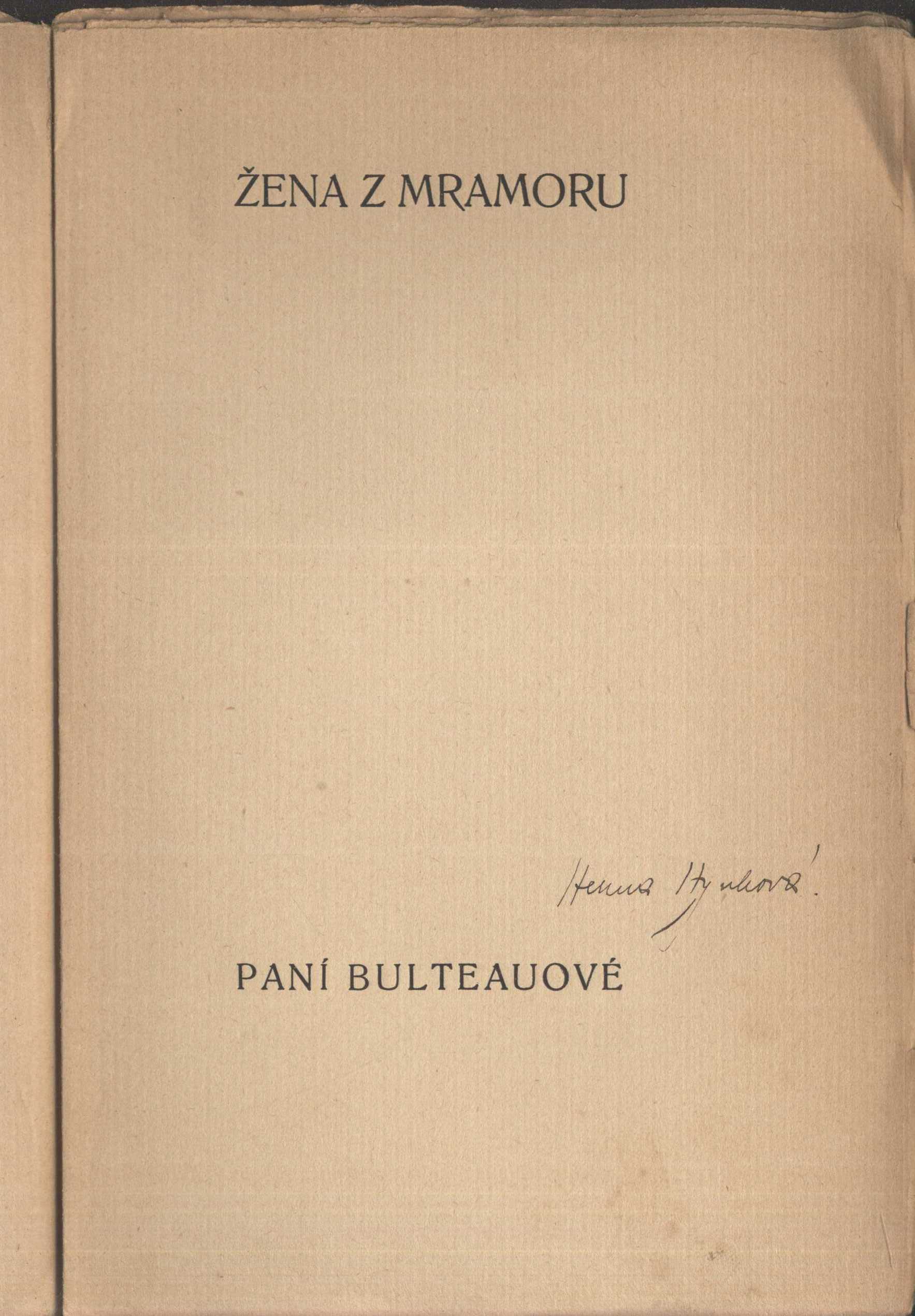 Názvové údaje Koletta Baudocheová : příběh metské dívky / napsal Maurice Barrés ; přeložil Emanuel Blahovec Osobní jméno Barrès, Maurice, 1862-1923 (Autor) Další autoři Blahovec, Emanuel (Překladatel) Korp. Nakladatelství Kamilla Neumannová (Nakladatel, vydavatel) Albert Malíř (tiskárna a nakladatelství) (Tiskař) Nakladatel V Praze : Kamilla Neumannová, 1910 Výrobce (tiskem Alberta Malíře) Rozsah 102 s. : il. ; 22 cm Klíčová slova francouzská literatura * próza * překlad * román Počet ex. 3, z toho volných 3 Druh dok. monografie Signatura Hoffmeister 0311, Topič 0249, VMartínek 0957 Názvové údaje Hubená kočka : novella / Anatole France ; přeložil Em. Blahovec ; upravil a původními dřevoryty vyzdobil F. Kobliha Osobní jméno France, Anatole, 1844-1924 (Autor) Další autoři Blahovec, Emanuel (Překladatel) Kobliha, František, 1877-1962 (Ilustrátor) (Typograf) Havlůjová, Hermina, 1891-1974 (Autor podpisu) (Dřívější majitel) Korp. Nakladatelství Kamilla Neumannová (Nakladatel, vydavatel) J. Skalák a spol. (Praha) (Tiskař) Nakladatel V Praze : Kamilla Neumannová, 1913 Výrobce [Česko] : Knihtiskárna J. Skaláka a spol., 1913 Rozsah 81 stran ; 22 cm Klíčová slova francouzská próza * francouzská literatura * novely Počet ex. 4, z toho volných 4 Druh dok. monografie Signatura Hoffmeister 0011, VMartínek 0712, P 135 B 1, VHB 2244 Názvové údaje Neobyčejní milenci / Henri de Régnier ; přeložil Emanuel Blahovec Osobní jméno Régnier, Henri de, 1864-1936 (Autor) Další autoři Blahovec, Emanuel (Překladatel) Havlůjová, Hermina, 1891-1974 (Autor podpisu) Korp. Nakladatelství Kamilla Neumannová (Nakladatel, vydavatel) Albert Malíř (tiskárna a nakladatelství) (Tiskař) Nakladatel V Praze : K. Neumannová, 1908 Výrobce Tisk Alb. Malíře) Rozsah 93 s. Klíčová slova francouzská literatura * dekadence * francouzský symbolismus * symbolismus * prózy Počet ex. 2, z toho volných 2 Druh dok. monografie Signatura Hoffmeister 0368, VHB 2528