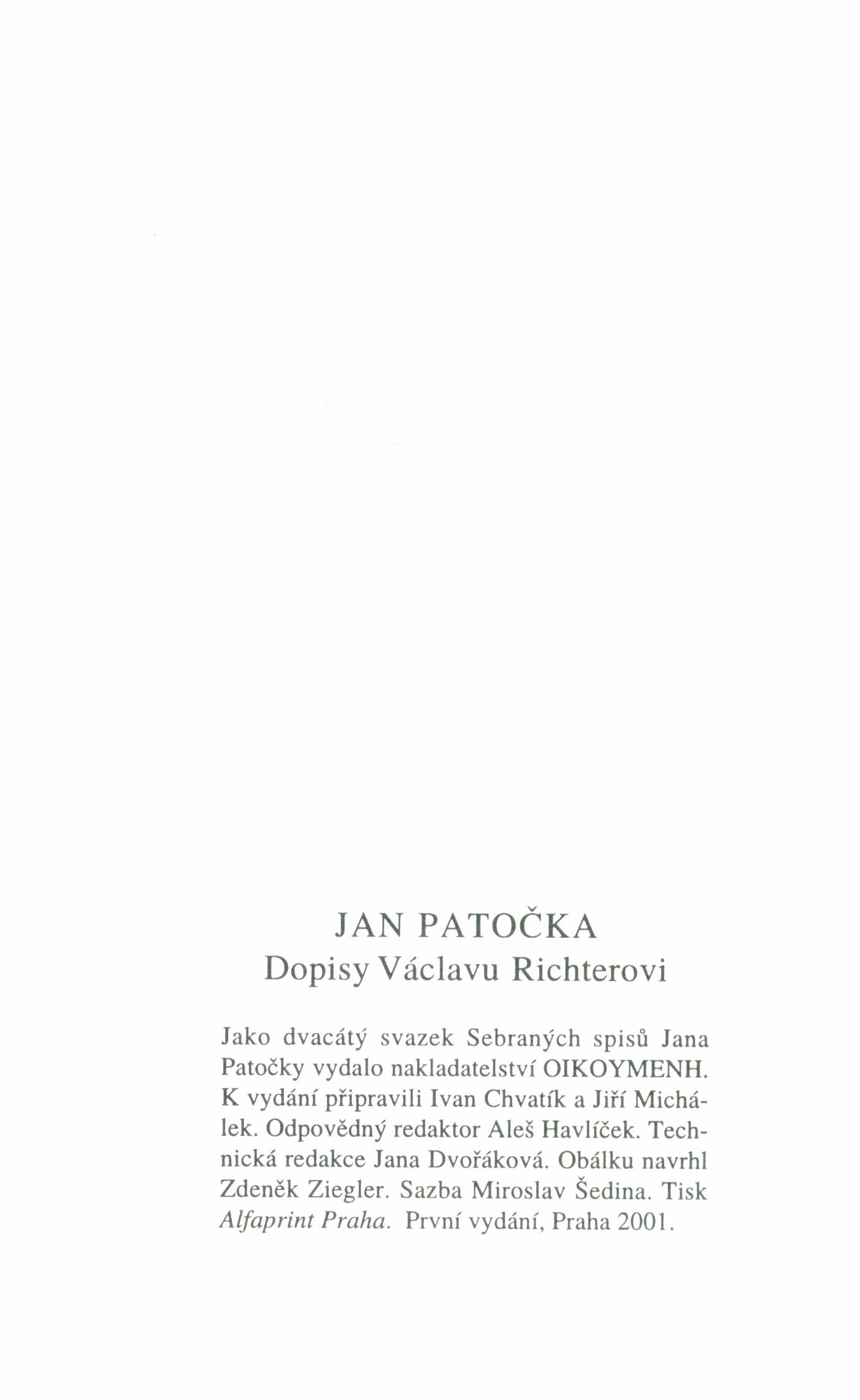 Názvové údaje Básnicky bydlí člověk = Dichterisch wohnet der Mensch / Martin Heidegger ; Z něm. přel. Ivan Chvatík Osobní jméno Heidegger, Martin, 1889-1976 (Autor) Další autoři Chvatík, Ivan, 1941- (Překladatel) Ziegler, Zdeněk, 1932-2023 (Grafický technik) Nakladatel Praha : Institut pro středoevropskou kulturu a politiku, 1993 Výrobce Alfaprint) Rozsah 185 s. ; 20 cm Klíčová slova řeč * věci * filozofie * ontologie * fenomenologie * básnická tvorba Počet ex. 1, z toho volných 1 Druh dok. monografie Signatura M 218 c 78 Názvové údaje Bytí a čas / Martin Heidegger ; Z něm. přeložili Ivan Chvatík, Pavel Kouba, Miroslav Petříček jr. a Jiří Němec Osobní jméno Heidegger, Martin, 1889-1976 (Autor) Další autoři Chvatík, Ivan, 1941- (Překladatel) Kouba, Pavel, 1953- (Překladatel) Petříček, Miroslav, 1951- (Překladatel) Němec, Jiří, 1932-2001 (Překladatel) Nakladatel Praha : OIKOYMENH, 1996 Rozsah 477 s. ; 22 cm Klíčová slova fenomenologie * hermeneutika * filozofie * německá literatura * filozofická literatura Počet ex. 1, z toho volných 1 Druh dok. monografie Signatura C12b 570 Názvové údaje Co je metafyzika? = Was ist Metaphysik? / Martin Heidegger ; Z něm. přel. Ivan Chvatík Osobní jméno Heidegger, Martin, 1889-1976 (Autor) Další autoři Chvatík, Ivan, 1941- (Překladatel) Ziegler, Zdeněk, 1932-2023 (Grafický technik) Nakladatel Praha : Institut pro středoevropskou kulturu a politiku, 1993 Výrobce Alfaprint) Rozsah 86 s. ; 20 cm Klíčová slova metafyzika * fenomenologie Počet ex. 1, z toho volných 1 Druh dok. monografie Signatura M 218 c 76 Názvové údaje Rozvrh fenomenologické interpretace Aristotela / Martin Heidegger ; podle nově nalezeného autorova exempláře přeložil Ivan Chvatík Osobní jméno Heidegger, Martin, 1889-1976 (Autor) Další autoři Chvatík, Ivan, 1941- (Překladatel) Nakladatel Praha : OIKOYMENH, 2008 Rozsah 93 s. ; 21 cm Osobní hesla Aristotelés, 384-322 př. Kr. - řecký filozof Klíčová slova antická filozofie * řecká filozofie * fenomenologie * ontologie * existencialismus * filozofická pojednání * komentované vydání Počet ex. 1, z toho volných 1 Druh dok. monografie Signatura C12b 11107 Názvové údaje Dopisy Václavu Richterovi : Soubor korespondence z pozůstalosti / Jan Patočka ; tento svazek připravili k vydání Ivan Chvatík a Jiří Michálek ; obálku navrhl Zedněk Ziegler Osobní jméno Patočka, Jan, 1907-1977 (Autor) Další autoři Chvatík, Ivan, 1941- (Editor) Michálek, Jiří, 1941- (Editor) Ziegler, Zdeněk, 1932-2023 (Grafický technik) Korp. OIKOYMENH (nakladatelství) (Nakladatel, vydavatel) Alfaprint (tiskárna) (Tiskař) Nakladatel Praha : Oikoymenh, 2001 Výrobce Alfaprint Rozsah 263 stran ; 22 cm Osobní hesla Patočka, Jan, 1907-1977 - filozof, překladatel * Richter, Václav, 1940-1999 - učitel, básník, redaktor Klíčová slova česká literatura * korespondence * Patočka J. * Richter V. * stol. 20., léta 40.-60. Počet ex. 2, z toho volných 2 Druh dok. monografie Signatura C12b 5435, JVladislav 821 Názvové údaje Fenomenologické spisy. III/1, Nitro a svět : nepublikované texty ze 40. let / Jan Patočka ; tento svazek připravili k vydání Ivan Chvatík, Jan Frei a Jan Puc ; [obálku navrhl Zdeněk Ziegler ; sazba Martin Třešňák] Osobní jméno Patočka, Jan, 1907-1977 (Autor) Další autoři Chvatík, Ivan, 1941- (Editor) Frei, Jan, 1971- (Editor) Puc, Jan (Editor) Ziegler, Zdeněk, 1932-2023 (Autor obálky) Třešňák, Martin, 1963- (Sazeč) Korp. OIKOYMENH (nakladatelství) (Nakladatel, vydavatel) Alfaprint (tiskárna) (Tiskař) Nakladatel Praha : OIKOYMENH, 2014 Výrobce (Alfaprint) Rozsah 341 s. Osobní hesla Patočka, Jan, 1907-1977 - filozof, překladatel Klíčová slova filozofická literatura * Patočka J. * filozofické pojednání * subjektivita * fenomenologie * česká filozofie * nitro * svět * texty * komentované vydání * sebrané spisy Počet ex. 1, z toho volných 1 Druh dok. monografie Signatura C12b 15506/1