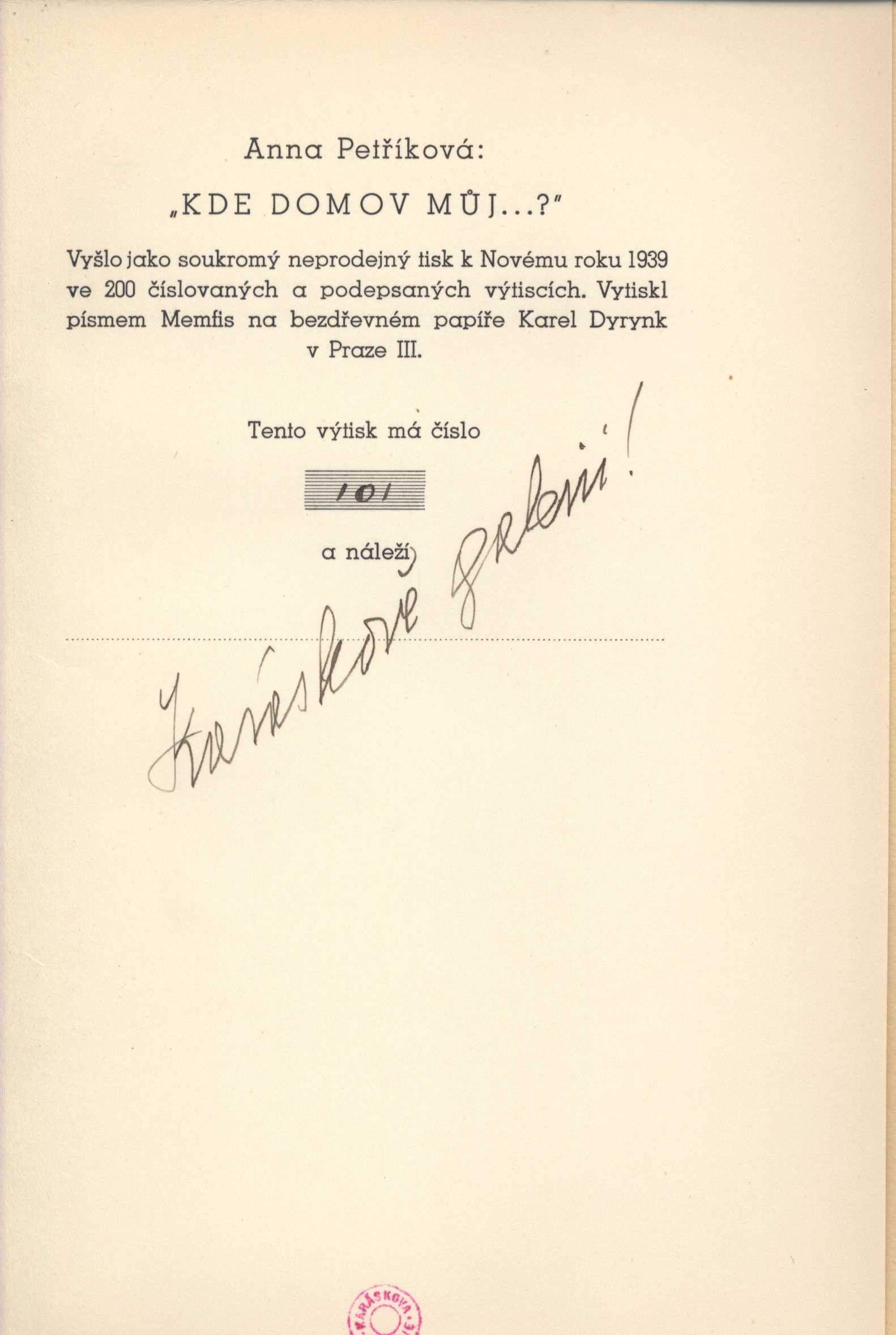 Názvové údaje Pahorky / Guillaume Apollinaire ; přeložil Jindřich Hořejší Osobní jméno Apollinaire, Guillaume, 1880-1918 (Autor) Další autoři Hořejší, Jindřich, 1886-1941 (Překladatel) (Dřívější majitel) Dyrynk, Karel, 1876-1949 (Knižní grafik) Svoboda, Vincenc, 1887-1955 (Nakladatel, vydavatel) Korp. Státní tiskárna v Praze (Tiskař) Nakladatel Praha : Vincenc Svoboda, 1931 Výrobce V Praze : Státní tiskárna Rozsah 16 stran ; 20 cm Klíčová slova francouzská literatura * poezie * Apollinaire G. * francouzská poezie * český překlad * Hořejší J. * číslovaný výtisk * bibliofilie * r. 1931 Počet ex. 3, z toho volných 3 Druh dok. monografie Signatura P 48 c 109, Nezval 156, AHO 0339 Názvové údaje Svatý Xaverius : romanetto / Jakub Arbes ; vyzdobil Jan Konůpek ; typograficky upravil Karel Dyrynk Osobní jméno Arbes, Jakub, 1840-1914 (Autor) Další autoři Konůpek, Jan, 1883-1950 (Grafický technik) (Ilustrátor) Dyrynk, Karel, 1876-1949 (Typograf) Karásek ze Lvovic, Jiří, 1871-1951 (Dedikant) Janská, Erna, 1899-1953 (Nakladatel, vydavatel) Gruberová, Nora (Dedikátor) Korp. Státní tiskárna v Praze (Tiskař) Nakladatel V Praze : Erna Janská, 1930 Výrobce Státní tiskárna Rozsah 142 stran : ilustrace Klíčová slova česká literatura * česká próza * tajemné příběhy * romaneto * bibliofilie * bibliofilské tisky * bibliofilský tisk Počet ex. 3, z toho volných 3 Druh dok. monografie Signatura KaG XV B2 124, P 48 b 86, Sáňka 1728 Názvové údaje Ryšavá milenka / Jules Barbey d'Aurevilly ; přeložil Zdeněk Hobzík. [s perokresbami V. Hrsky. v úpravě Karla Dyrynka] Osobní jméno Barbey d'Aurevilly, Jules Amédée, 1808-1889 (Autor) Další autoři Hobzík, Zdeněk, 1900-1969 (Překladatel) (Dedikátor) Hrska, Alexandr Vladimír, 1890-1954 (Ilustrátor) Dyrynk, Karel, 1876-1949 (Typograf) Karásek ze Lvovic, Jiří, 1871-1951 (Dedikant) Neumann, Stanislav, 1902-1975 (Nakladatel, vydavatel) Korp. Státní tiskárna v Praze (Tiskař) Nakladatel V Praze : vydaný Stanislavem Neumannem, 1929 Rozsah 21 s. : il. Klíčová slova francouzská literatura * francouzská poezie * erotická literatura * erotické básně * erotika * žena * bibliofilská vydání * bibliofilské tisky * bibliofilský tisk * soukromé tisky Počet ex. 1, z toho volných 1 Druh dok. monografie Signatura KaG III E 118 Názvové údaje Modré stíny / Konstantin Biebl Osobní jméno Biebl, Konstantin, 1898-1951 (Autor) (Autor podpisu) Další autoři Votlučka, Karel, 1896-1963 (Ilustrátor) (Autor podpisu) Dyrynk, Karel, 1876-1949 (Knižní grafik) Resler, Kamill, 1893-1961 (Nakladatel, vydavatel) (Dedikátor) (Autor podpisu) Hořejší, Jindřich, 1886-1941 (Dedikant) Korp. Státní tiskárna v Praze (Tiskař) Nakladatel Na Král. Vinohradech : Kamill Resler, 1926 Výrobce V Praze : Státní tiskárna Rozsah 20 nečíslovaných stran : ilustrace ; 21 cm Klíčová slova česká literatura * poezie * Biebl K. * lyrické básně * soukromý tisk * Resler K. * číslovaný výtisk * bibliofilie Počet ex. 7, z toho volných 7 Druh dok. monografie Signatura POR 136, LK SÁŇKA 1631, LK THON 2035, LK ZA 5 E 42, LK P 134 G 51, LK P 37 B 28, AHO 0453 Názvové údaje "Kde domov můj...?" : z deníku jednoho roku / Anna Petříková Osobní jméno Brtníková-Petříková, Anna, 1896-1980 (Autor) (Dedikátor) (Nakladatel, vydavatel) Další autoři Karásek ze Lvovic, Jiří, 1871-1951 (Dedikant) Dyrynk, Karel, 1876-1949 (Tiskař) Nakladatel Praha : [A. Petříková], 1938 Výrobce (Karel Dyrynk) Rozsah 37 s. Klíčová slova česká literatura * česká próza * soukromé tisky Počet ex. 1, z toho volných 1 Druh dok. monografie Signatura KaG XXVIII G 73 Názvové údaje Kratochvílná historie exlibris / V. H. Brunner ; [typograficky upravil Karel Dyrynk] Osobní jméno Brunner, Vratislav Hugo, 1886-1928 (Autor) (Ilustrátor) Další autoři Dyrynk, Karel, 1876-1949 (Typograf) Krecar z Růžokvětu, Jarmil, 1884-1959 (Autor úvodu atd.) Klír, Svatopluk, 1896-1959 (Nakladatel, vydavatel) Klír, František Josef, 1867-1941 (Nakladatel, vydavatel) Krecar z Růžokvětu, Jarmil, 1884-1959 (Autor podpisu) Korp. Státní tiskárna v Praze (Tiskař) Nakladatel Kladno : Svatopluk Klír a F. J. Klír, 1929 Výrobce Státní tiskárna) Rozsah [24] s. : il. Klíčová slova exlibris * česká literatura * české umění * české výtvarné umění * obrazová publikace * bibliofilie Počet ex. 2, z toho volných 2 Druh dok. monografie Signatura C12b 14286, KaG XVI B 148 Názvové údaje Z dopisů Otokara Březiny Anně Pammrové / za pomoci Anny Pammrové uspořádal, doslovem a poznámkami opatřil Antonín Veselý ; v úpravě Karla Dyrynka Osobní jméno Březina, Otokar, 1868-1929 (Autor) Další autoři Pammrová, Anna, 1860-1945 (Adresát, příjemce) Veselý, Antonín, 1888-1945 (Editor) (Autor doslovu, tiráže atd.) (Autor úvodu atd.) Dyrynk, Karel, 1876-1949 (Knižní grafik) Lakomá, Emilie, 1876-1952 (Autor podpisu) Korp. Družstvo Moravského kola spisovatelů (nakladatelství) (Nakladatel, vydavatel) Státní tiskárna v Praze (Tiskař) Nakladatel V Brně : Družstvo Moravského Kola spisovatelů, 1931 Výrobce V Praze : Státní tiskárna Rozsah 17 nečíslovaných listů, 9 nečíslovaných stran : portréty, faksimile ; 23 cm Osobní hesla Březina, Otokar, 1868-1929 - učitel, básník, esejista, prozaik a myslitel * Pammrová, Anna, 1860-1945 - učitelka, beletristka, překladatelka Klíčová slova čeští spisovatelé * čeští básníci * české spisovatelky * české překladatelky * osobní korespondence * stol. 19.-20. * faksimile * bibliofilie Počet ex. 4, z toho volných 4 Druh dok. monografie Signatura VMartínek 0611, Holman-Březina 0234, Holman-Březina 0235, Holman-Březina 0503 Názvové údaje Ideální kniha, neboli, Krásná kniha : pojednání o kaligrafii, tisku a ilustraci a o krásné knize jako celku / T. J. 