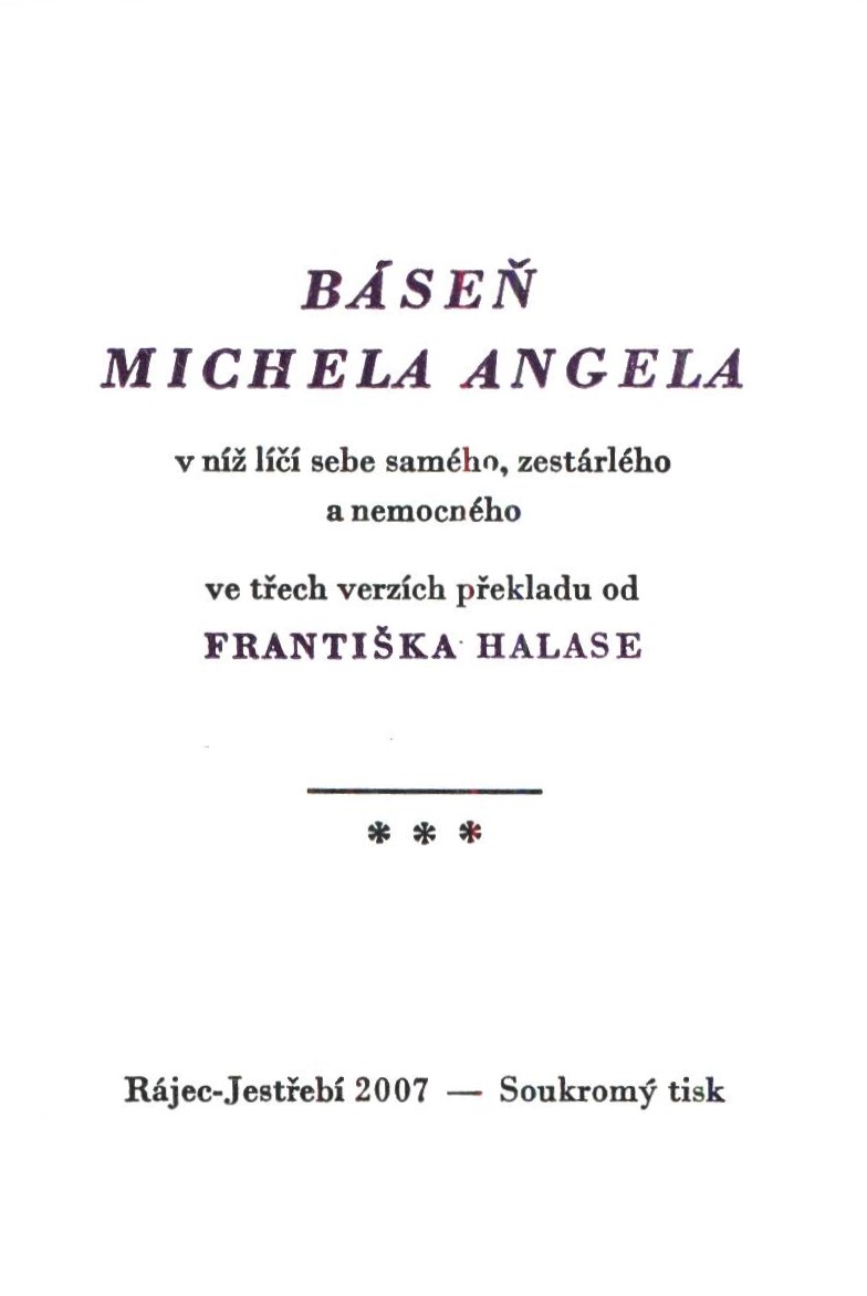 Názvové údaje Pohostinnost : úryvek z knihy Slova Boží / Arnošt Hello ; linoryt Zdirad Čech Osobní jméno Hello, Ernest, 1828-1885 (Autor) Další autoři Čech, Zdirad J. K., 1949-2022 (Ilustrátor) Juránek, Jan (Nakladatel, vydavatel) (Tiskař) Nakladatel Rájec-Jesřebí : Jan Juránek, 2016 Rozsah 9 stran : ilustrace ; 14 cm Heslo unifik. názvu Bible Klíčová slova biblické texty * biblické citáty * komentáře Počet ex. 1, z toho volných 1 Druh dok. monografie Signatura Bbf II 0082 Názvové údaje Český Betlem : Nové Město nad Metují / slovo a fotografie: Jan Juránek ; [úprava obálky Vladimír Rocman ; úprava knihy Ed. Dostál ; městský znak Karel Slavík] Osobní jméno Juránek, Jan, 1910-1999 (Autor) (Fotograf) Další autoři Rocman, Vladimír, 1923-2016 (Grafický technik) Dostál, Eduard, 1899-1974 (Typograf) Slavík, Karel, 1902-1990 (Jiná role) Korp. Nové Město nad Metují (Česko). Městský úřad (Nakladatel, vydavatel) V. Neubert a synové (firma) (Tiskař) Josef Moravec, knihkupec (Praha) (Knihkupec) Nakladatel Nové Město nad Metují : Město Nové Město nad Metují ; Praha : V generální komisi Josef Moravec, knihkupec, 1947 Výrobce V. Neubert a synové) Rozsah [47] s. : il. Klíčová slova česká literatura * vlastivědná publikace * fotografická publikace * fotografie města * historie města * historie kraje * okolí města * Nové Město nad Metují * Československo * královéhradecký kraj * Náchod, okres * východní Čechy * pamětihodnosti * architektonické památky * umělecko-historické památky * přírodní zajímavosti * památná místa * výletní místa * osobnosti kraje * stol. 20., léta 40. * r. 1947 Počet ex. 1, z toho volných 1 Druh dok. monografie Signatura AVrbova 564 Názvové údaje Báseň Michela Angela v níž líčí sebe samého, zestárlého a nemocného / [Michelangelo Buonarroti] ; ve třech verzích překladu od Františka Halase Autor Michelangelo Buonarroti, 1475-1564 (Autor) Další autoři Halas, František, 1901-1949 (Překladatel) Juránek, Jan (Nakladatel, vydavatel) (Tiskař) Nakladatel Rájec-Jestřebí : soukromý tisk [Jan Juránek], 2007 Rozsah 22 stran ; 11 cm Klíčová slova soukromé tisky * bibliofilie * vzpomínka * italská literatura * renesance * Michelangelo Buonarroti * báseň * překlad básně Počet ex. 1, z toho volných 1 Druh dok. monografie Signatura Bbf II 0101 Názvové údaje Bolest / Vladimír Holan Osobní jméno Holan, Vladimír, 1905-1980 (Autor) Další autoři Juránek, Jan (Nakladatel, vydavatel) (Tiskař) Nakladatel Rájec-Jestřebí : soukromý tisk [Jan Juránek], 1996 Rozsah 13 stran ; 8 x 11 cm Klíčová slova soukromé tisky * výroční tisk * výročí úmrtí * bibliofilie * česká literatura * poezie * lyrika * duchovní poezie * reflexe smrti * stol. 20., léta 60. Počet ex. 2, z toho volných 2 Druh dok. monografie Signatura Bbf I 0028, Bbf I 0028a Názvové údaje Čtyřverší / Li Po ; v překladu F. Hrubína Osobní jméno Li, Po, 701-762 (Autor) Další autoři Hrubín, František, 1910-1971 (Překladatel) Juránek, Jan (Nakladatel, vydavatel) (Tiskař) Nakladatel Rájec-Jestřebí : [Jan Juránek], 2005 Rozsah 13 stran ; 11 cm Klíčová slova čínská literatura * poezie * stol. 8. * překlad * bibliofilie * soukromé tisky Počet ex. 1, z toho volných 1 Druh dok. monografie Signatura Bbf II 0095 Názvové údaje [Dopis Růženy Svárovské] / Růžena Svárovská Osobní jméno Svárovská, Růžena (Autor) Další autoři Surý, Pavel, 1960- (Dedikátor) (Autor podpisu) Holman, Petr, 1951-2019 (Dedikant) Holmanová, Jitka (Dedikant) Juránek, Jan (Nakladatel, vydavatel) (Tiskař) Výrobce [Česko] : Jan Juránek, 2000 Rozsah 3 nečíslované strany ; 11 cm Osobní hesla Čapek, Josef, 1887-1945 - malíř, grafik, knižní ilustrátor a spisovatel Klíčová slova dopis * Čapek J. * stol. 20. * soukromý tisk Počet ex. 1, z toho volných 1 Druh dok. monografie Signatura Holman-Březina 0344 Názvové údaje Dvě básně o domovech chuďasů / v překladu od Jindřicha Pokorného Osobní jméno Gautier, Théophile, 1811-1872 (Autor) Další autoři Gezelle, Guido, 1830-1899 (Autor) Pokorný, Jindřich, 1927-2014 (Překladatel) Juránek, Jan (Nakladatel, vydavatel) (Tiskař) Nakladatel Rájec-Jestřebí : soukromý tisk [Jan Juránek], 2006 Rozsah 10 stran ; 11 cm Klíčová slova soukromé tisky * bibliofilie * francouzská literatura * francouzská poezie * básně * chudoba * sociální poezie * stol. 19. * překlad Počet ex. 1, z toho volných 1 Druh dok. monografie Signatura Bbf II 0098 Názvové údaje Dvě vzpomínky na Provenci / Bohuslav Reynek Osobní jméno Reynek, Bohuslav, 1892-1971 (Autor) Další autoři Juránek, Jan (Nakladatel, vydavatel) (Tiskař) Nakladatel Rájec-Jestřebí : soukromý tisk [Jan Juránek], 2003 Výrobce Jan Juránek Rozsah 11 stran ; 15 cm Osobní hesla Vokolek, Vlastimil, 1903-1985 - tiskař a nakladatel Klíčová slova báseň v próze * vzpomínky * Francie * Provence * Reynek B. * bibliofilie * výroční tisk * 100. výročí * narození * r. 2003 Počet ex. 1, z toho volných 1 Druh dok. monografie Signatura Bbf II 0109 Názvové údaje Hakeldama a jiné básně / Bohuslav Reynek Osobní jméno Reynek, Bohuslav, 1892-1971 (Autor) Další autoři Juránek, Jan (Nakladatel, vydavatel) (Tiskař) Toušová, Daniela, 1949-1994 (Poctěná osoba) Nakladatel Rájec-Jestřebí : Jan Juránek, 1999 Rozsah 13 stran ; 22 cm Osobní hesla Toušová, Daniela, 1949-1994 Klíčová slova česká literatura * poezie * duchovní poezie * Reynek B. * bibliofilie * výroční tisk Počet ex. 1, z toho volných 1 Druh dok. monografie Signatura Bbf III 0163 Názvové údaje Hvozdíky / Paul Claudel ; přeložil B. Reynek Osobní jméno Claudel, Paul, 1868-1955 (Autor) Další autoři Reynek, Bohuslav, 1892-1971 (Překladatel) Juránek, Jan (Nakladatel, vydavatel) (Tiskař) Nakladatel Rájec-Jestřeb