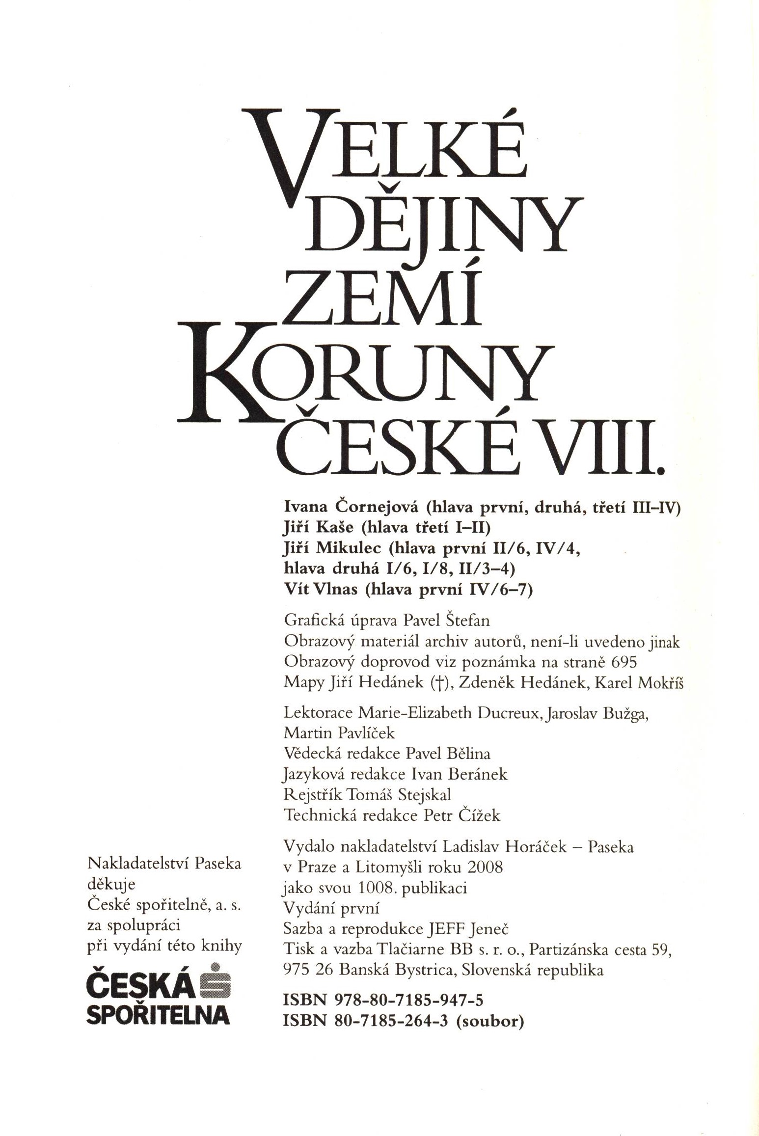 Názvové údaje Křivoklát / Jiří Kaše, Jan Jakub Outrata, Zdeněk Helfert ; Graf. úpr. Miroslav Kloss Osobní jméno Kaše, Jiří, 1946-2022 (Autor) Další autoři Outrata, Jan Jakub (Autor) Helfert, Zdeněk, 1946- (Autor) Kloss, Miroslav (Grafický technik) Helfert, Zdeněk, 1946- (Fotograf) Nakladatel Praha : Středočeské nakladatelství a knihkupectví, 1983 Výrobce Severografia) Rozsah 141 s. : il., fot Klíčová slova česká literatura * architektura * hrady * Křivoklát * dějiny * obrazové publikace Počet ex. 1, z toho volných 1 Druh dok. monografie Signatura NK/83 0014 Názvové údaje Malíř na frontě : Josef Váchal na bojišti 1. světové války / Jiří Kaše ; [fotografie Jiří Látal a Zdeněk Helfert ; grafická úprava Tomáš Didunyk] Osobní jméno Kaše, Jiří, 1946-2022 (Autor) Další autoři Látal, Jiří, 1949- (Fotograf) Helfert, Zdeněk, 1946- (Fotograf) Didunyk, Tomáš (Knižní grafik) Korp. Portmoneum - Museum Josefa Váchala (Litomyšl) Nakladatel Praha ; Litomyšl : Paseka, 2003 Rozsah 18 s. : il., mp., portréty Osobní hesla Váchal, Josef, 1884-1969 - grafik, malíř, ilustrátor, výtvarník, dřevorytec Klíčová slova čeští malíři * 1. světová válka * válečné operace * válečné zážitky * malby * obrazy * dřevořezy * Váchal J. * katalog výstavy Počet ex. 1, z toho volných 1 Druh dok. monografie Signatura C12b 6656 Názvové údaje Portmoneum : Muzeum Josefa Váchala v Litomyšli / Jiří Kaše a kol. ; fotografie Zdeněk Helfert Osobní jméno Kaše, Jiří, 1946-2022 (Autor) Další autoři Helfert, Zdeněk, 1946- (Fotograf) Korp. Portmoneum - Museum Josefa Váchala (Litomyšl) Nakladatel Praha ; Litomyšl : Paseka, 2003 Rozsah 53 s. : barev. il., portréty Osobní hesla Váchal, Josef, 1884-1969 - grafik, malíř, ilustrátor, výtvarník, dřevorytec Klíčová slova Litomyšl * muzea * Váchal J. * Portman J. * Portmoneum * restaurátorství * nástěnné malby Počet ex. 1, z toho volných 1 Druh dok. monografie Signatura C12c 1622 Názvové údaje Fakulta restaurování Univerzity Pardubice : 20 let výuky restaurování v Litomyšli / editor Jiří Kaše ; redakční práce Petr Horák ; sazba a grafická úprava textu Marek Chalupník Další autoři Kaše, Jiří, 1946-2022 (Editor) Horák, Petr, 1984 duben 16.- (Editor) Chalupník, Marek (Sazeč) (Typograf) Korp. Univerzita Pardubice. Fakulta restaurování Nakladatel Pardubice : Univerzita Pardubice, 2013 Výrobce [Havlíčkův Brod] : Tiskárny Havlíčkův Brod, a. s. Rozsah 139 stran : ilustrace (převážně barevné), portréty, faksimile ; 27 cm Heslo korporace (zkrác. heslo korp.) : Univerzita Pardubice. Fakulta restaurování Geografické heslo Litomyšl (Česko) Klíčová slova univerzity * restaurátorství * studium * výuka * Česko * stol. 20.-21. * sborníky * jubilejní publikace Počet ex. 1, z toho volných 1 Druh dok. monografie Signatura C12c 4617 Názvové údaje Velké dějiny zemí Koruny české. Svazek XIb, 1792-1860 / Milan Hlavačka, Jiří Kaše, Jan P. Kučera, Daniela Tinková ; grafická úprava Pavel Štefan Osobní jméno Hlavačka, Milan, 1955- (Autor) Další autoři Kaše, Jiří, 1946-2022 (Autor) Kučera, Jan P., 1948-2025 (Autor) Tinková, Daniela, 1973- (Autor) Štefan, Pavel, 1953- (Knižní grafik) Korp. Nakladatelství Paseka (Nakladatel, vydavatel) Tlačiareň BB (tiskárna) (Tiskař) Nakladatel Praha ; Litomyšl : Paseka, 2013 Výrobce Banská Bystrica (Slovensko) : Tlačiarne BB Rozsah 523 stran, 32 stran obrazových příloh : ilustrace, fotografie (některé barevné), portréty ; 22 cm Klíčová slova naučná literatura * odborná literatura * země Koruny české * dějiny * české dějiny * dějiny novověku * kultura * dějiny umění * stol. 18., léta 90.-stol. 19., léta 60. Počet ex. 2, z toho volných 2 Druh dok. monografie Signatura PS, CDL 0038