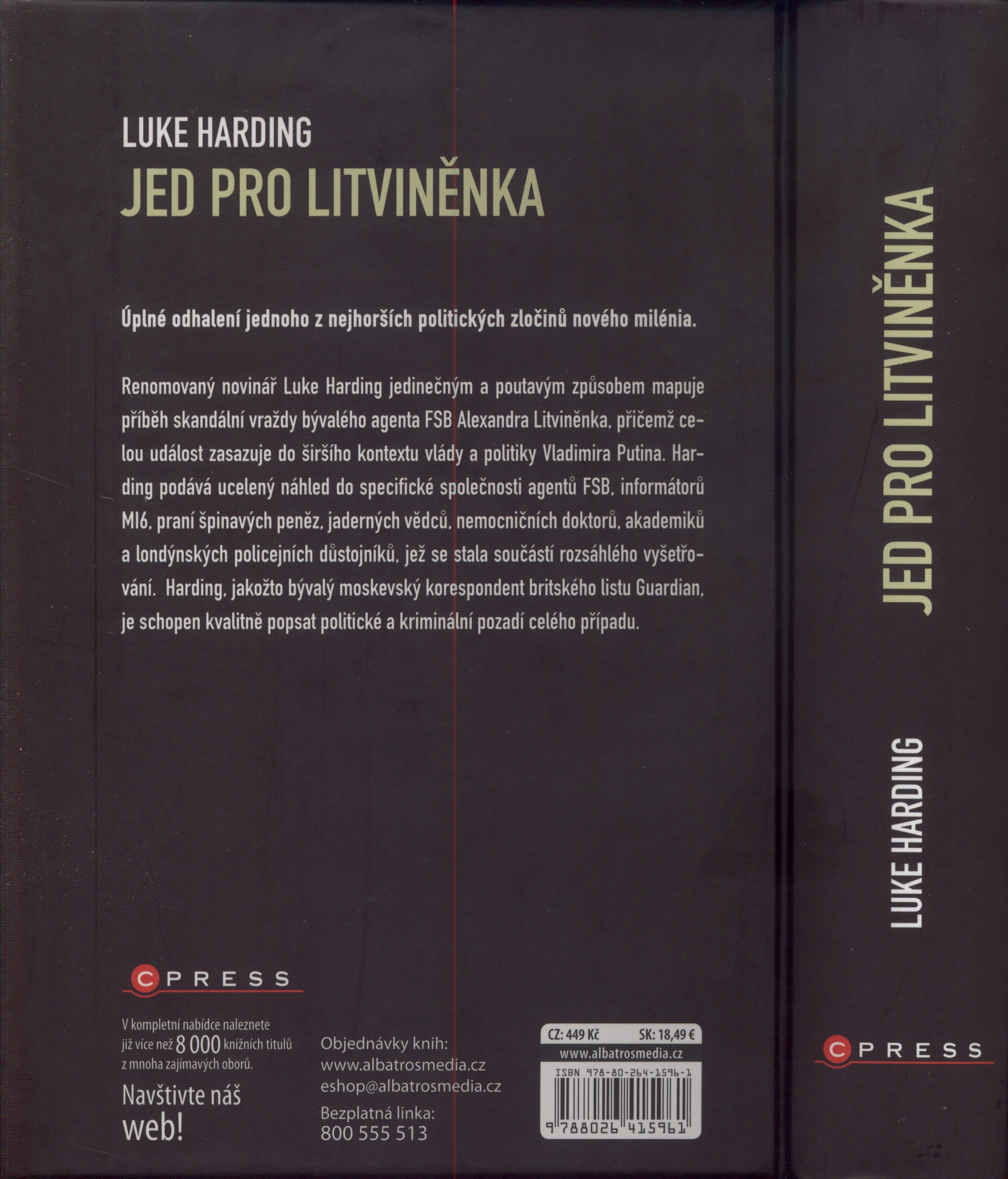 Názvové údaje Jed pro Litviněnka : příběh jeho vraždy a Putinovy války se Západem / Luke Harding ; překlad: Anna Poskerová Osobní jméno Harding, Luke, 1968- (Autor) Další autoři Knapiková, Anna, 1990- (Překladatel) Pižurný, Adam, 1986- (Autor obálky) Korp. CPress (nakladatelství) (Nakladatel, vydavatel) Europrint (tiskárna) (Tiskař) Unifikovaný název Very expensive poison. Česky Nakladatel Brno : CPress, 2017 Výrobce [Praha] : Europrint a.s. Rozsah 399 stran, 8 nečíslovaných stran obrazových příloh : ilustrace (některé barevné), portréty, faksimile ; 21 cm Osobní hesla Litvinenko, Aleksandr Val‘terovič, 1962-2006 - ruský zpravodajský důstojník, zavražděný v r. 2006 Heslo korporace (zkrác. heslo korp.) : Federal'naja služba bezopasnosti Rossii Chronologie 2015-2016 Předmětová hesla agenti - Rusko - 20.-21. století * disidenti - Rusko - 20.-21. století * zpravodajské služby - Rusko - 20.-21. století * státní terorismus - Rusko - 20.-21. století * politické vraždy - Rusko - 2006 * policejní vyšetřování - Velká Británie - 21. století * secret service agents - Russia - 20th-21st centuries * dissenters - Russia - 20th-21st centuries * intelligence service - Russia - 20th-21st centuries * state terrorism - Russia - 20th-21st centuries * assassinations - Russia - 2006 * police enquiry - Great Britain - 21st century Geografické heslo Rusko - politika a vláda - 21. století * Russia - politics and government - 21st century Klíčová slova anglická literatura * překlad * Sovětský svaz * Velká Británie * důstojníci * špióni * Litviněnko A. * stol. 21. Počet ex. 1, z toho volných 1 Druh dok. monografie Signatura C12b 17850