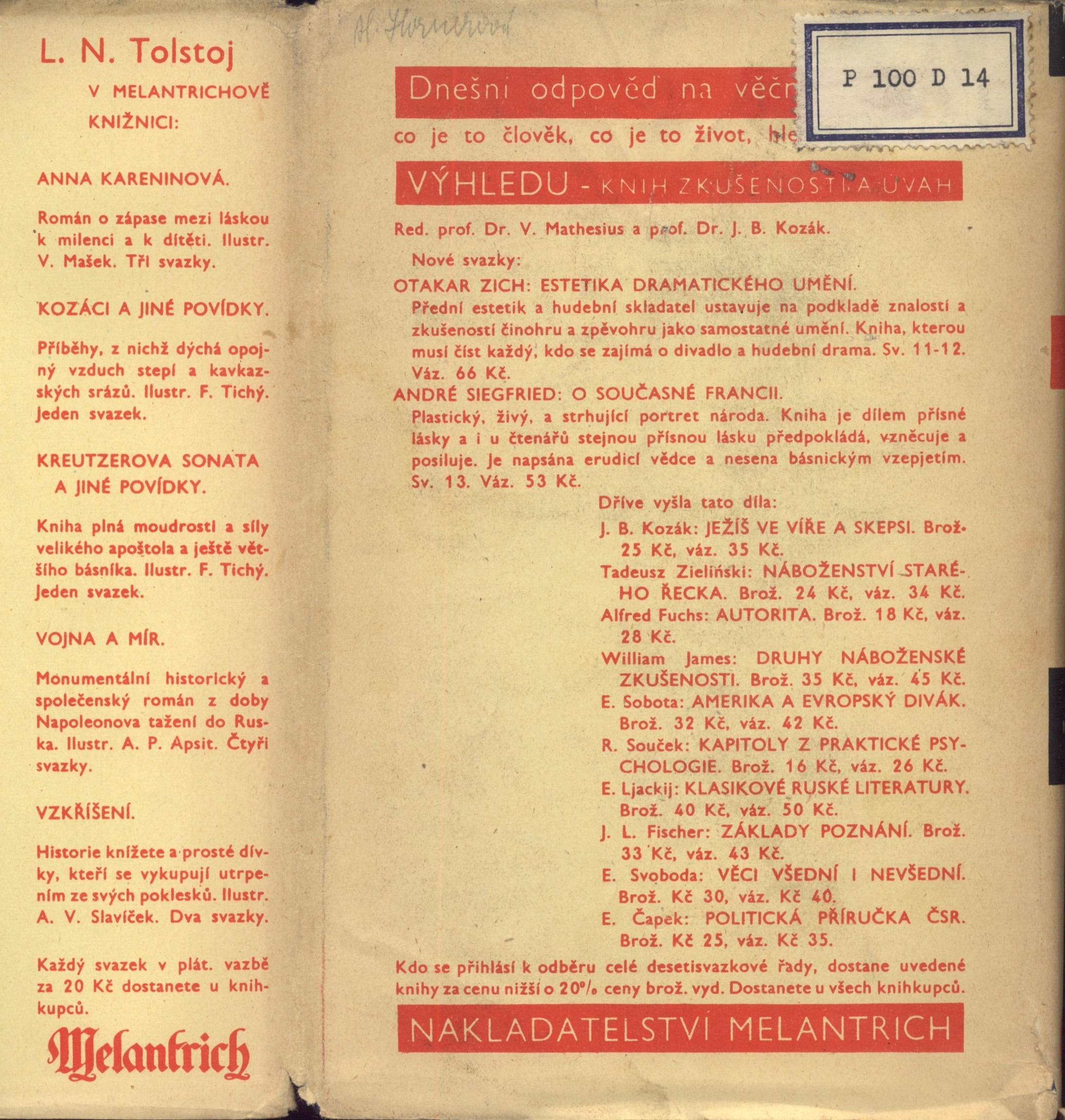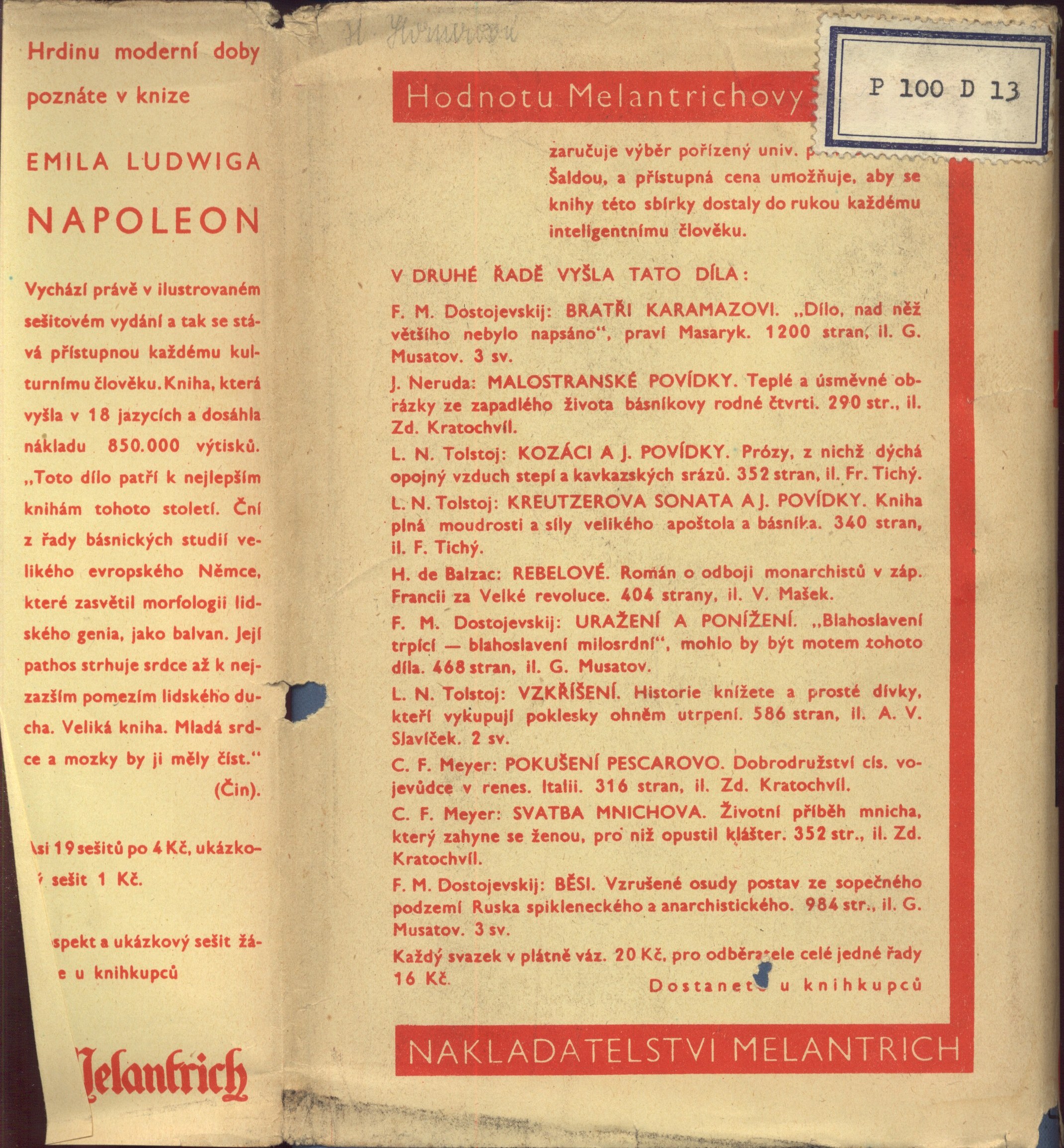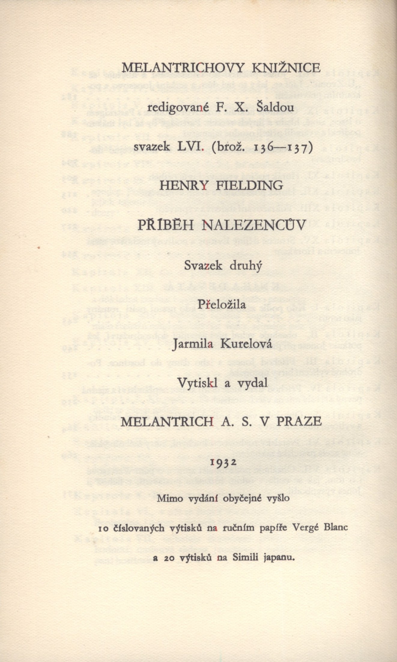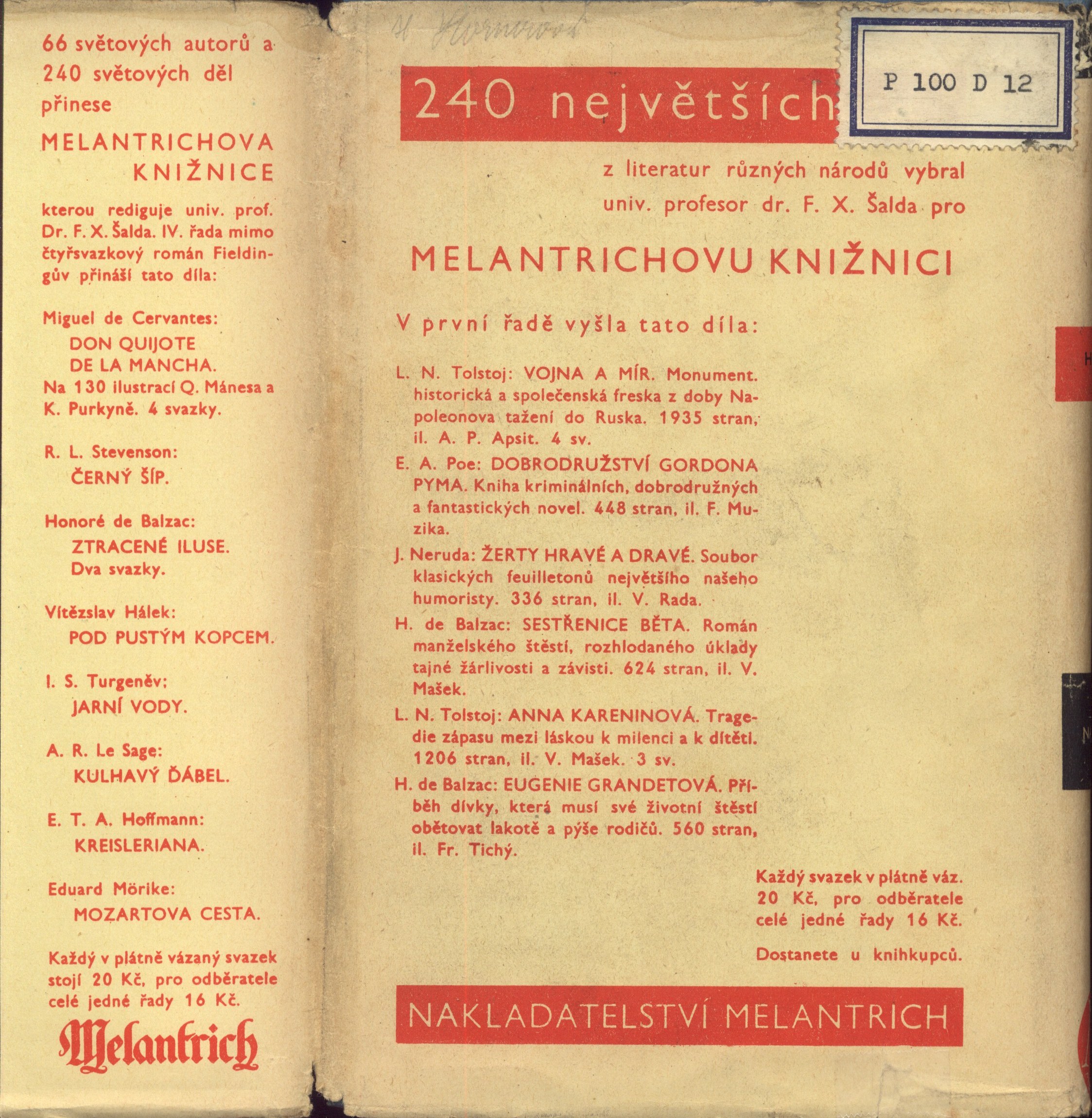 Názvové údaje Příběh nalezencův. 1, 2 / Henry Fielding ; překlad Jarmila Kurelová Osobní jméno Fielding, Henry, 1707-1754 (Autor) Další autoři Kurelová, Jarmila (Překladatel) Nakladatel Praha : Melantrich, 1932 Rozsah 248, 278 s. ; 19 cm Klíčová slova česká literatura Počet ex. 1, z toho volných 1 Druh dok. monografie Signatura Holan 1124 Názvové údaje Příběh nalezencův. 3, 4 / Henry Fielding ; přeložila Jarmila Kurelová ; doslov napsal Vilém Mathesius Osobní jméno Fielding, Henry, 1707-1754 (Autor) Další autoři Kurelová, Jarmila (Překladatel) Mathesius, Vilém, 1882-1945 (Autor úvodu atd.) Nakladatel Praha : Melantrich, 1932 Rozsah 239, 303 s. ; 19 cm Klíčová slova česká literatura Počet ex. 1, z toho volných 1 Druh dok. monografie Signatura Holan 1125 Názvové údaje Příběh nalezencův / Henry Fielding ; [přeložila Jarmila Kurelová]. I. Osobní jméno Fielding, Henry, 1707-1754 (Autor) Další autoři Kurelová, Jarmila (Překladatel) Korp. Melantrich (nakladatelství : 1910-1950) (Nakladatel, vydavatel) (Tiskař) (Tiskař obrazu) Nakladatel Praha : Melantrich a. s., 1932 Výrobce (Melantrich a. s.) Rozsah [6], 248 s. ; 20 cm Klíčová slova anglická literatura * próza * Fielding H. * překlad * román * Anglie * stol. 18. Počet ex. 1, z toho volných 1 Druh dok. monografie Signatura P 100 d 12 Názvové údaje Příběh nalezencův / Henry Fielding ; [přeložila Jarmila Kurelová]. II. Osobní jméno Fielding, Henry, 1707-1754 (Autor) Další autoři Kurelová, Jarmila (Překladatel) Murphy, Arthur, 1727-1805 (Autor úvodu atd.) Korp. Melantrich (nakladatelství : 1910-1950) (Tiskař) (Tiskař obrazu) Nakladatel Praha : Melantrich a. s., 1932 Výrobce (Melantrich a. s.) Rozsah 278 s. ; 20 cm Klíčová slova anglická literatura * próza * Fielding H. * překlad * román * Anglie * stol. 18. Počet ex. 1, z toho volných 1 Druh dok. monografie Signatura P 100 d 13 Názvové údaje Příběh nalezencův / Henry Fielding ; [přeložila Jarmila Kurelová]. III. Osobní jméno Fielding, Henry, 1707-1754 (Autor) Další autoři Kurelová, Jarmila (Překladatel) Korp. Melantrich (nakladatelství : 1910-1950) (Nakladatel, vydavatel) (Tiskař) (Tiskař obrazu) Nakladatel Praha : Melantrich a. s., 1932 Výrobce (Melantrich a. s.) Rozsah 241 s. ; 20 cm Klíčová slova anglická literatura * próza * Fielding H. * překlad * román * Anglie * stol. 18. Počet ex. 1, z toho volných 1 Druh dok. monografie Signatura P 100 d 14 Názvové údaje Příběh nalezencův / Henry Fielding ; [přeložila Jarmila Kurelová ; doslov napsal Vilém Mathesius]. IV. Osobní jméno Fielding, Henry, 1707-1754 (Autor) Další autoři Kurelová, Jarmila (Překladatel) Mathesius, Vilém, 1882-1945 (Autor doslovu, tiráže atd.) Korp. Melantrich (nakladatelství : 1910-1950) (Nakladatel, vydavatel) (Tiskař) (Tiskař obrazu) Nakladatel Praha : Melantrich a. s., 1932 Výrobce (Melantrich a. s.) Rozsah 303 s. ; 20 cm Osobní hesla Fielding, Henry, 1707-1754 - anglický romanopisec, dramatik, esejista a žurnalista Klíčová slova anglická literatura * próza * Fielding H. * překlad * román * Anglie * stol. 18. Počet ex. 1, z toho volných 1 Druh dok. monografie Signatura P 100 d 15 Názvové údaje Příběh nalezencův. [sv.] I. / Henry Fielding ; [přeložila Jarmila Kurelová] Osobní jméno Fielding, Henry, 1707-1754 (Autor) Další autoři Kurelová, Jarmila (Překladatel) Korp. Melantrich (nakladatelství) (Nakladatel, vydavatel) Nakladatel Praha : Melantrich, 1932 Rozsah 248 s. ; 8° Klíčová slova anglická literatura * próza * anglický román Počet ex. 1, z toho volných 1 Druh dok. monografie Signatura MEL 1977/I Názvové údaje Příběh nalezencův. [sv.] II. / Henry Fielding ; [přeložila Jarmila Kurelová] Osobní jméno Fielding, Henry, 1707-1754 (Autor) Další autoři Kurelová, Jarmila (Překladatel) Korp. Melantrich (nakladatelství) (Nakladatel, vydavatel) Nakladatel Praha : Melantrich, 1932 Rozsah 278 s. ; 8° Klíčová slova anglická literatura * próza * anglický román Počet ex. 1, z toho volných 1 Druh dok. monografie Signatura MEL 1977/II Názvové údaje Příběh nalezencův. [sv.] III. / Henry Fielding ; [přeložila Jarmila Kurelová] Osobní jméno Fielding, Henry, 1707-1754 (Autor) Další autoři Kurelová, Jarmila (Překladatel) Korp. Melantrich (nakladatelství) (Nakladatel, vydavatel) Nakladatel Praha : Melantrich, 1932 Rozsah 241 s. ; 8° Klíčová slova anglická literatura * próza * anglický román Počet ex. 1, z toho volných 1 Druh dok. monografie Signatura MEL 1977/III Názvové údaje Příběh nalezencův. [sv.] IV. / Henry Fielding ; [přeložila Jarmila Kurelová] Osobní jméno Fielding, Henry, 1707-1754 (Autor) Další autoři Kurelová, Jarmila (Překladatel) Korp. Melantrich (nakladatelství) (Nakladatel, vydavatel) Nakladatel Praha : Melantrich, 1932 Rozsah 303 s. ; 8° Klíčová slova anglická literatura * próza * anglický román Počet ex. 1, z toho volných 1 Druh dok. monografie Signatura MEL 1977/IV