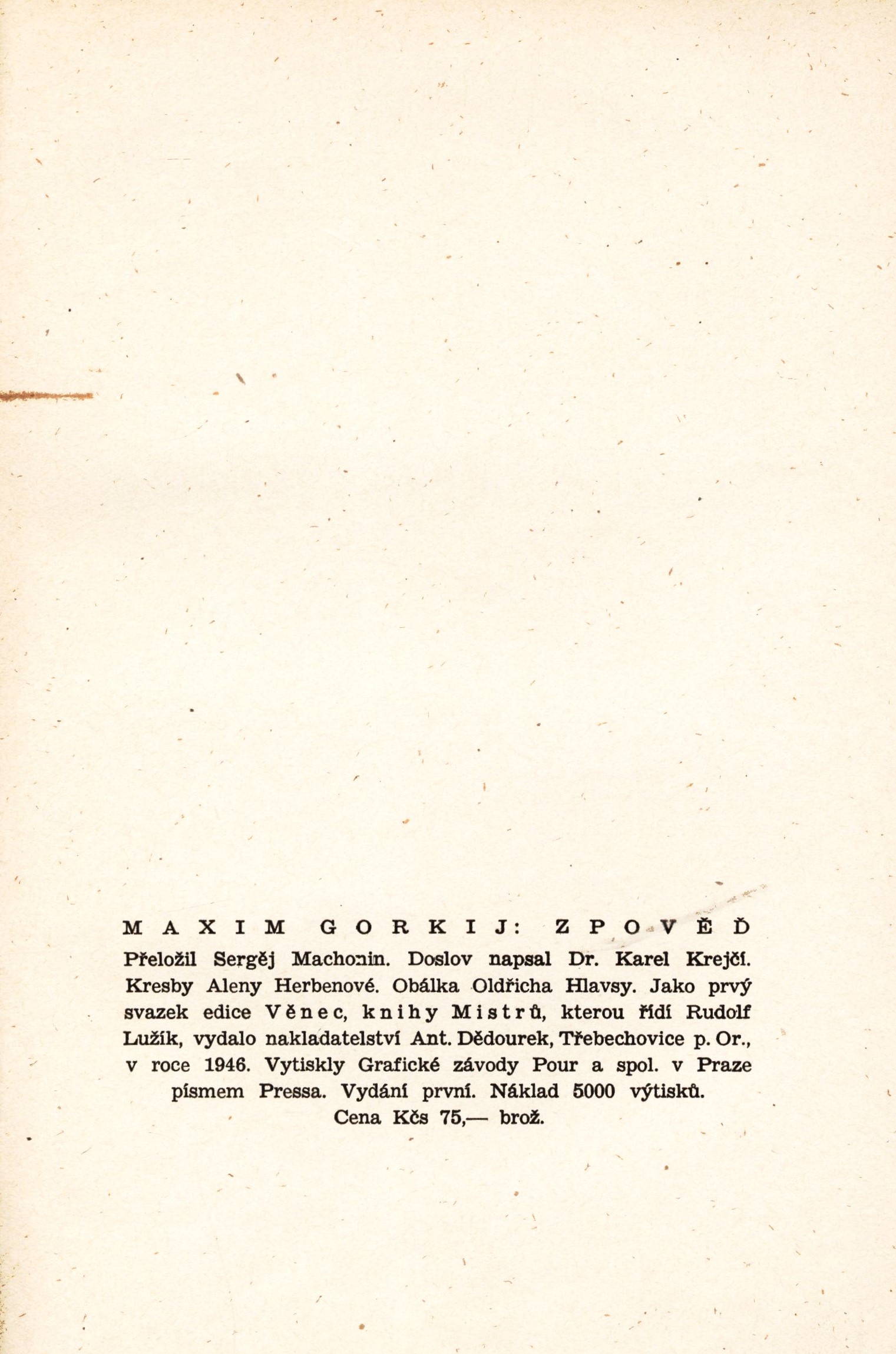 Názvové údaje Vesnice Li mění tvář / Čao Šu-li ; [z ruského překladu ... přeložil Sergej Machonin ; obálku a vazbu navrhl Josef Paukert ; podle typografické úpravy Antonína Dvořáka] Osobní jméno Zhao, Shuli, 1906-1970 (Autor) Další autoři Machonin, Sergej, 1918-1995 (Překladatel) Paukert, Josef, 1915-1991 (Knižní grafik) Dvořák, Antonín, 1920-1997 (Typograf) Krivcov, Vladimir Aleksejevič, 1921-1985 (Autor doslovu, tiráže atd.) Korp. Československý spisovatel (nakladatelství) (Nakladatel, vydavatel) Mladá fronta (nakladatelství) (Tiskař) Nakladatel V Praze : Československý spisovatel, 1950 Výrobce (Mladá fronta) Rozsah 221 s. Klíčová slova čínská literatura * překlad * próza * román Počet ex. 2, z toho volných 2 Druh dok. monografie Signatura AČS 05944, AVrbova 100 Názvové údaje Kavárna Slavia / Ota Filip ; z něm. orig. přeložil Sergej Machonin ; návrh obálky a typografie Milan Jaroš Osobní jméno Filip, Ota, 1930-2018 (Autor) Další autoři Machonin, Sergej, 1918-1995 (Překladatel) Jaroš, Milan, 1953- (Grafický technik) Nakladatel Praha : Český spisovatel, 1993 Rozsah 244 s. Klíčová slova Praha * pikareskní román * česká literatura * próza * román * satira * stol. 20., poč.-léta 60. Počet ex. 1, z toho volných 1 Druh dok. monografie Signatura M 216 e 11 Názvové údaje O tom, co bylo = Byloje i dumy / A. I. Hercen ; [přeložili Sergěj a Vladimír Machoninovi ; za redakční spolupráce Anny Novákové a Sávy Racka ; předmluvu napsal František Nečásek ; obálku navrhl Karel Poličanský ; graficky upravil Alois Chvála] Osobní jméno Gercen, Aleksandr Ivanovič, 1812-1870 (Autor) Další autoři Nováková, Anna, 1921-2005 (Editor) Racek, Sáva, 1900-1986 (Editor) Machonin, Sergej, 1918-1995 (Překladatel) Machonin, Vladimír, 1920-1990 (Překladatel) Poličanský, Karel, 1913-1996 (Autor obálky) Chvála, Alois, 1885-1973 (Knižní grafik) Korp. Nakladatelství Svoboda (Nakladatel, vydavatel) Tiskové podniky Rovnost (Brno) (Tiskař) Nakladatel Praha : Nakladatelství Svoboda, 1947 Výrobce Tiskové podniky Rovnost) Rozsah 374 s. Klíčová slova ruská literatura * ruská próza * vzpomínky Počet ex. 1, z toho volných 1 Druh dok. monografie Signatura VHB 1791 Názvové údaje Zpověď / Maxim Gorkij ; Přeložil Sergej Machonin ; Doslov napsal Karel Krejčí ; Kresby Aleny Herbenové ; Obálka Oldřicha Hlavsy Osobní jméno Gor‘kij, Maksim, 1868-1936 (Autor) Další autoři Machonin, Sergej, 1918-1995 (Překladatel) Krejčí, Karel, 1904-1979 (Autor doslovu, tiráže atd.) Herbenová, Alena (Ilustrátor) Hlavsa, Oldřich, 1909-1995 (Autor obálky) Korp. Nakladatelství Ant. Dědourek (Nakladatel, vydavatel) Grafické závody Pour a spol. (Praha, Plzeň) (Tiskař) Nakladatel Třebechovice pod Orebem : Ant. Dědourek, 1946 V Praze : Grafické závody Pour a spol. Rozsah 244 stran : ilustrace ; 21 cm Klíčová slova ruská literatura * próza * román * stol. 19., léta 90. * překlady * překlady do češtiny Počet ex. 4, z toho volných 4 Druh dok. monografie Signatura MUK 943, P 44 c 54, F I 1121, R&AHamanovi 1636 Názvové údaje Pokoušení : hra o deseti obrazech / Václav Havel ; [ilustrace v patitulu Jiří Šlitr ; obálka Vladimír Milev ; typografie Vlasta Herrmannová] Osobní jméno Havel, Václav, 1936-2011 (Autor) Další autoři Machonin, Sergej, 1918-1995 (Autor úvodu atd.) Šlitr, Jiří, 1924-1969 (Ilustrátor) Milev, Vladimír, 1953- (Autor obálky) Herrmannová, Vlasta (Typograf) Korp. Poezie mimo Domov (nakladatelství) (Nakladatel, vydavatel) Nakladatel München : Obrys/Kontur - PmD, 1986 Rozsah 109 s. Klíčová slova české divadlo * české drama * divadelní hra * exilová literatura Počet ex. 1, z toho volných 1 Druh dok. monografie Signatura BVolkova 0110 Názvové údaje Motýlek / Henri Charriere ; [z franc. přel. Sergej Machonin ; obálku a vazbu navrhl Pavel Brom]. 1. díl Osobní jméno Charrière, Henri, 1906-1973 (Autor) Další autoři Machonin, Sergej, 1918-1995 (Překladatel) Brom, Pavel, 1938-2009 (Grafický technik) Nakladatel Praha : Československý spisovatel, 1971 Rozsah 265 s. Klíčová slova francouzská literatura próza román Počet ex. 2, z toho volných 2 Druh dok. monografie Signatura AČS 05224/I, AČS 05224/Ia Názvové údaje Motýlek / Henri Charriere ; [z franc. přel. Sergej Machonin ; obálku a vazbu navrhl Pavel Brom]. 2. díl Osobní jméno Charrière, Henri, 1906-1973 (Autor) Další autoři Machonin, Sergej, 1918-1995 (Překladatel) Brom, Pavel, 1938-2009 (Grafický technik) Nakladatel Praha : Československý spisovatel, 1971 Rozsah 331 s. Klíčová slova francouzská literatura próza román Počet ex. 2, z toho volných 2 Druh dok. monografie Signatura AČS 05224/II, AČS 05224/IIa Názvové údaje Inteligenti / Milan Jariš ; Doslov naps. Sergej Machonin ; Obálku a vazbu navrhl Miloslav Fulín ; Typogr. upr. Antonín Dvořák Osobní jméno Jariš, Milan, 1913-1986 (Autor) Další autoři Machonin, Sergej, 1918-1995 (Autor úvodu atd.) Fulín, Miloslav, 1928-2019 (Grafický technik) Dvořák, Antonín, 1920-1997 (Grafický technik) Nakladatel Praha : Československý spisovatel, 1957 Rozsah 235 s. Klíčová slova česká literatura * divadlo * divadelní hry Počet ex. 2, z toho volných 2 Druh dok. monografie Signatura AČS 01364, AČS 01364a Názvové údaje Oni přijdou / Milan Jariš ; [doslov naps. Sergej Machonin ; obálku a vazbu navrhl a typogr. upr. Zdenek Seydl] Osobní jméno Jariš, Milan, 1913-1986 (Autor) Další autoři Machonin, Sergej, 1918-1995 (Autor úvodu atd.) Seydl, Zdenek, 1916-1978 (Grafický technik) Nakladatel Praha : Československý spisovatel, 1963 Rozsah 230 s. Osobní hesla Jariš, Milan, 1913-1986 - novinář, prozaik, dramatik, překladatel Klíčová slova česká literatura próza povídky koncentrační tábory Mauthausen Počet ex. 2, z toho volných 2 Druh dok. monografie Sig