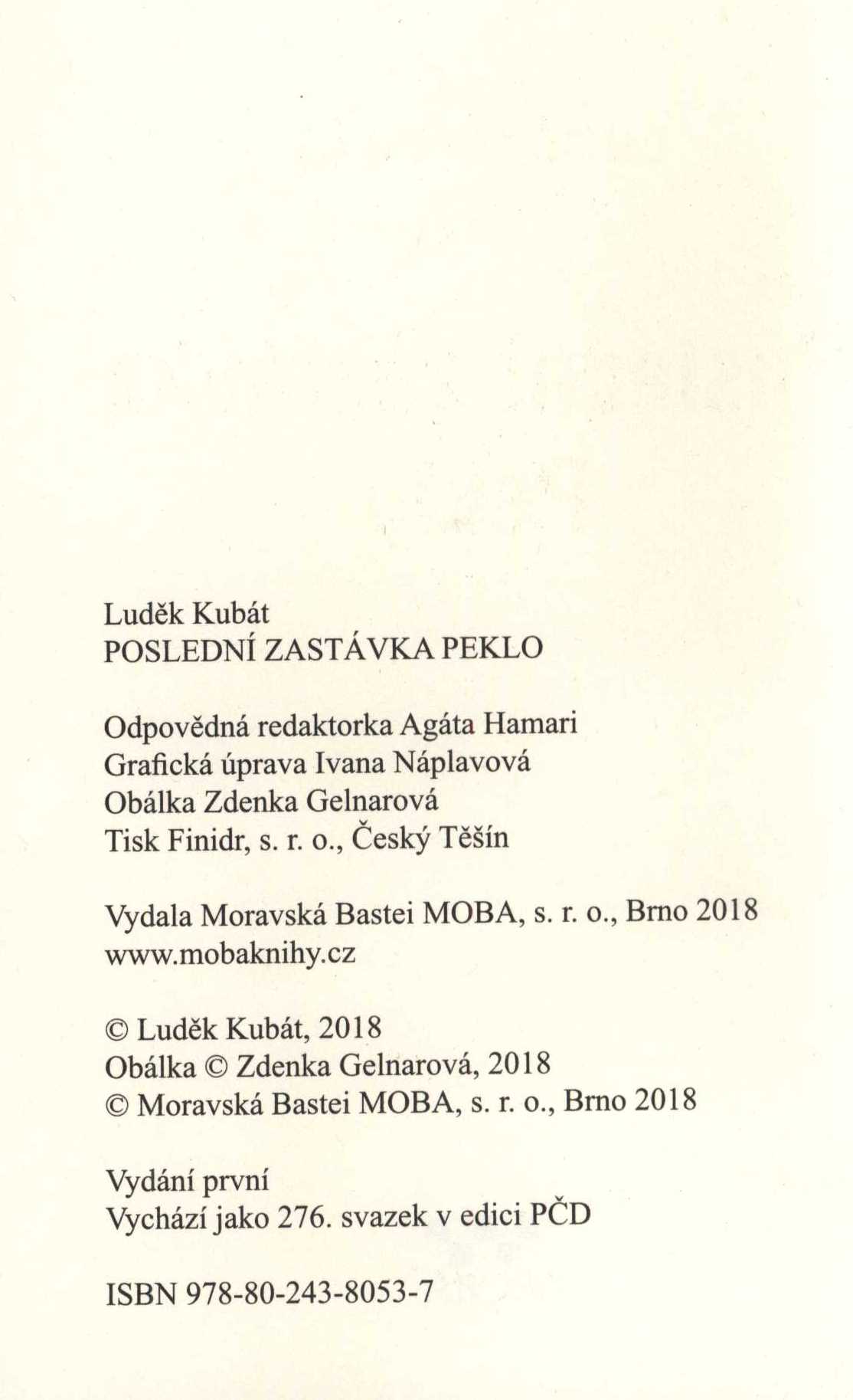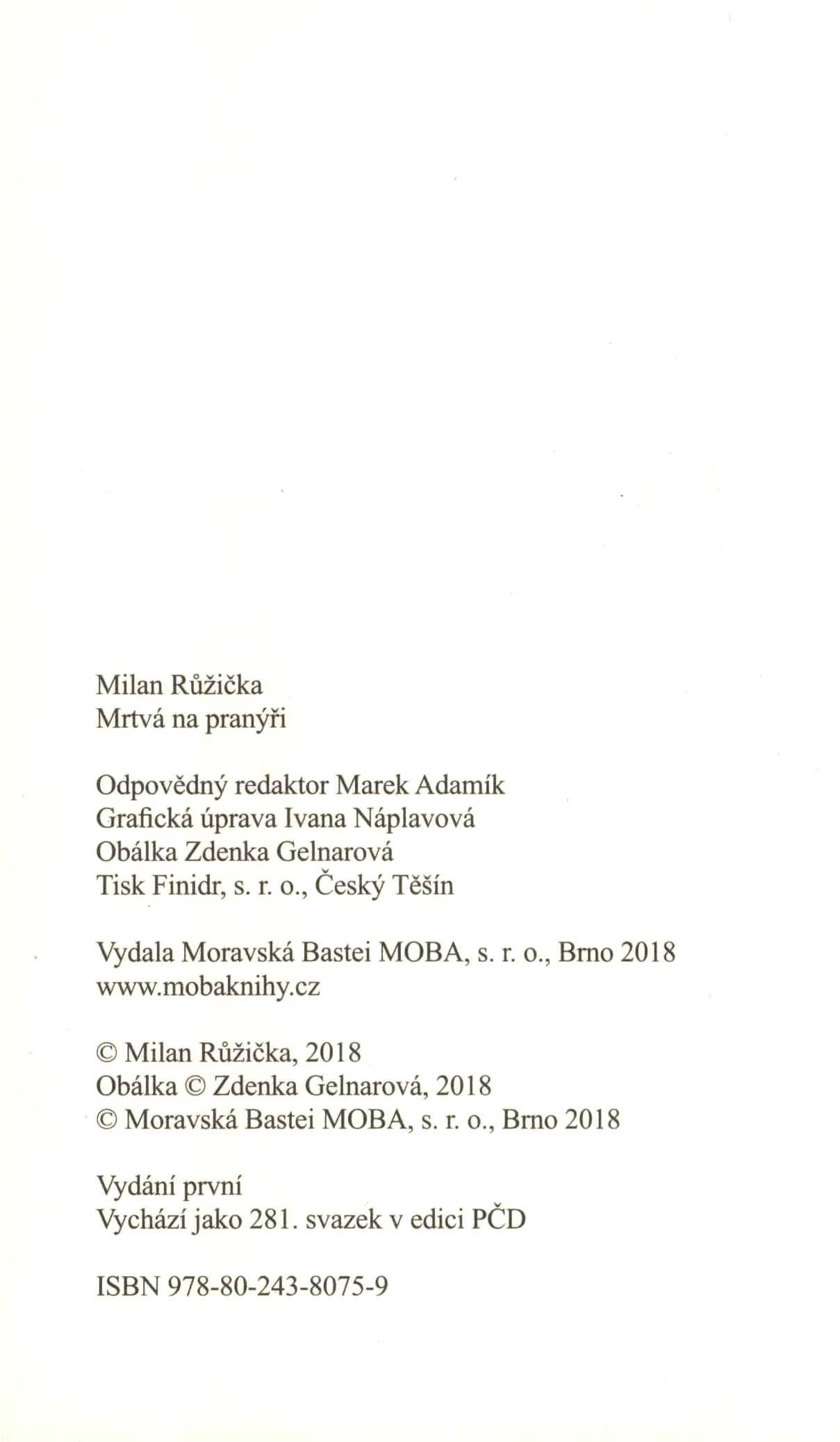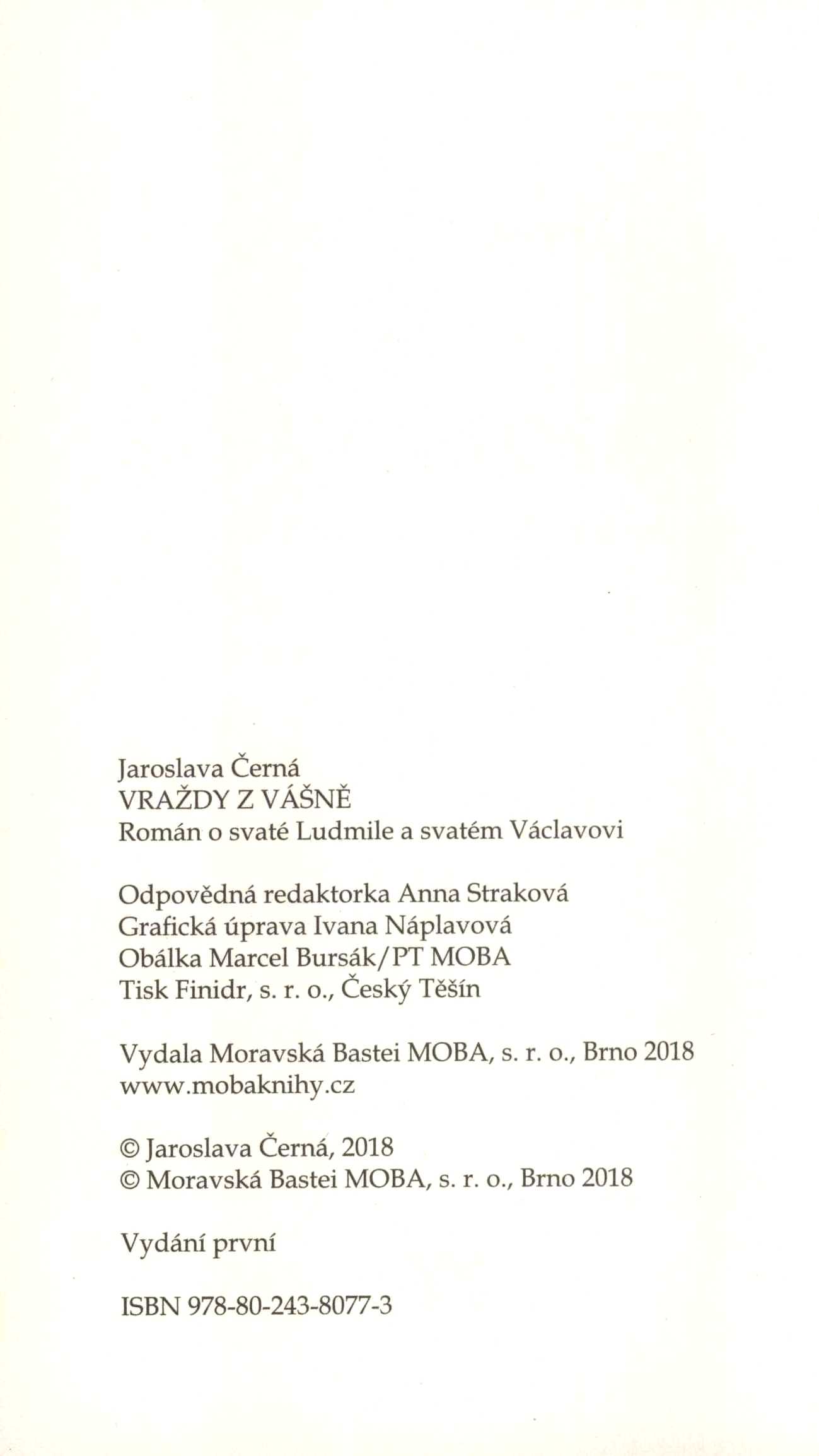 Názvové údaje Jsi můj král : v tajných službách Otce vlasti / Jan Bauer ; grafická úprava Ivana Náplavová ; obálka Marcel Bursák Osobní jméno Bauer, Jan, 1945-2025 (Autor) Další autoři Bauer, Jan, 1945-2025 Král zvedá meč Bauer, Jan, 1945-2025 Arcibiskupův noční host Náplavová, Ivana (Knižní grafik) Bursák, Marcel (Autor obálky) Korp. Moravská Bastei MOBA (nakladatelství) (Nakladatel, vydavatel) Finidr (tiskárna) (Tiskař) Nakladatel Brno : MOBA, 2018 Výrobce Český Těšín : FINIDR, s. r. o. Rozsah 398 stran ; 21 cm Osobní hesla Karel IV., český král a římský císař, 1316-1378 Předmětová hesla kings and rulers - Czechia - 14th century Geografické heslo Czechia - history - 14th century Klíčová slova česká literatura * próza * historický román * Jan Lucemburský český král a lucemburský hrabě * dominikánský mnich * osobní strážce * Karel IV. český král a římský císař * životní osudy * Česko * stol. 14. Počet ex. 1, z toho volných 1 Druh dok. monografie Signatura C12b 18555 Názvové údaje Záhady pro rychtáře / Jan Bauer ; grafická úprava Ivana Náplavová ; obálka Marcel Bursák/PT MOBA Osobní jméno Bauer, Jan, 1945-2025 (Autor) Další autoři Bauer, Jan, 1945-2025 Výkupné za krále Bauer, Jan, 1945-2025 Krvavý cejch Náplavová, Ivana (Knižní grafik) Bursák, Marcel (Autor obálky) Korp. Moravská Bastei MOBA (nakladatelství) (Nakladatel, vydavatel) Finidr (tiskárna) (Tiskař) Nakladatel Brno : MOBA, 2019 Výrobce Český Těšín : Finidr, s. r. o. Rozsah 367 stran ; 22 cm Klíčová slova česká literatura * próza * historický román * detektivní román * Praha * Čechy * stol. 14.-15. Počet ex. 1, z toho volných 1 Druh dok. monografie Signatura LITb 00063 Názvové údaje Vraždy z vášně : román o svaté Ludmile a svatém Václavovi / Jaroslava Černá ; grafická úprava Ivana Náplavová ; obálka Marel Bursák/PT MOBA Osobní jméno Černá, Jaroslava, 1959- (Autor) Další autoři Náplavová, Ivana (Knižní grafik) Bursák, Marcel (Autor obálky) Korp. Moravská Bastei MOBA (nakladatelství) (Nakladatel, vydavatel) Finidr (tiskárna) (Tiskař) Nakladatel Brno : MOBA, 2018 Výrobce Český Těšín : Finidr, s. r. o. Rozsah 246 stran ; 21 cm Osobní hesla Ludmila, svatá, asi 860-921 - kněžna a zemská patronka, mučednice, křesťanské světice * Václav, český kníže, asi 907-asi 935 - český kníže, světec * Ludmilla, Duchess of Bohemia, Saint, ca. 860-921 * Václav, saint, ca. 907-935 Chronologie asi 860-921 * asi 907-asi 935 Předmětová hesla queens and empresses - Czechia - 9th-10th centuries * kings and rulers - Czechia - 10th century * Christian saints - Czechia - 10th century * Christian women saints - Czechia - 9th-10th centuries Geografické heslo Czechia - history - 9th-10th centuries Klíčová slova česká literatura * próza * historický román * legendy * mučednice * světci * světice * panovníci * Václav svatý, kníže * panovnice * Ludmila svatá * Česko * stol. 9.-10. Počet ex. 1, z toho volných 1 Druh dok. monografie Signatura C12b 18357 Názvové údaje Smrt konvertity / Petr Eidler ; grafická úprava Ivana Náplavová ; obálka Zdenka Gelnarová Osobní jméno Eidler, Petr, 1958- (Autor) Další autoři Náplavová, Ivana (Knižní grafik) Gelnarová, Zdenka (Autor obálky) Korp. Moravská Bastei MOBA (nakladatelství) (Nakladatel, vydavatel) Finidr (tiskárna) (Tiskař) Nakladatel Brno : MOBA, 2018 Výrobce Český Těšín : Finidr, s.r.o. Rozsah 285 stran ; 19 cm Klíčová slova česká próza * detektivní próza * detektivní romány Počet ex. 1, z toho volných 1 Druh dok. monografie Signatura C12b 18269 Názvové údaje Slepé okno / Michal Fieber ; grafická úprava Ivana Náplavová ; obálka Zdenka Gelnarová Osobní jméno Fieber, Michal, 1943- (Autor) Další autoři Náplavová, Ivana (Knižní grafik) Gelnarová, Zdenka (Autor obálky) Korp. Moravská Bastei MOBA (nakladatelství) (Nakladatel, vydavatel) Finidr (tiskárna) (Tiskař) Nakladatel Brno : MOBA, 2018 Výrobce Český Těšín : Finidr, s. r. o. Rozsah 286 stran ; 19 cm Klíčová slova česká literatura * detektivní literatura * próza * příběh Počet ex. 1, z toho volných 1 Druh dok. monografie Signatura C12b 18343 Názvové údaje Poslední zastávka Peklo / Luděk Kubát ; grafická úprava Ivana Náplavová ; obálka Zdenka Gelnarová Osobní jméno Kubát, Luděk, 1952- (Autor) Další autoři Náplavová, Ivana (Knižní grafik) Gelnarová, Zdenka (Autor obálky) Korp. Moravská Bastei MOBA (nakladatelství) Finidr (tiskárna) Nakladatel Brno : MOBA, 2018 Výrobce Český Těšín : Finidr, s.r.o. Rozsah 229 stran ; 19 cm Klíčová slova česká próza * český román * detektivní román Počet ex. 1, z toho volných 1 Druh dok. monografie Signatura C12b 18078 Názvové údaje Josefovská krev / Jaroslav Kuťák ; grafická úprava Ivana Náplavová ; obálka Marcel Bursák/PT MOBA ; foto na obálce Barbora Fukárková Osobní jméno Kuťák, Jaroslav, 1956- (Autor) Další autoři Náplavová, Ivana (Knižní grafik) Bursák, Marcel (Autor obálky) Fukárková, Barbora (Fotograf) Nakladatel Brno : MOBA, 2017 Výrobce Český Těšín : Finidr, s. r. o. Rozsah 243 stran ; 19 cm Klíčová slova česká próza * detektivní román Počet ex. 1, z toho volných 1 Druh dok. monografie Signatura C12b 17636 Názvové údaje Slupky minulosti / Jitka Prokšová ; grafická úprava Ivana Náplavová ; obálka Marcel Bursák ; kresba na obálce Oldřich Neumann Osobní jméno Prokšová, Jitka, 1962- (Autor) Další autoři Náplavová, Ivana (Knižní grafik) Bursák, Marcel (Autor obálky) Golda Neumann, Oldřich (Ilustrátor) Korp. Moravská Bastei MOBA (nakladatelství) (Nakladatel, vydavatel) Finidr (tiskárna) (Tiskař) Nakladatel Brno : MOBA, 2018 Výrobce Český Těšín : Finidr, s.r.o. Rozsah 272 stran ; 21 cm Klíčová slova česká pr