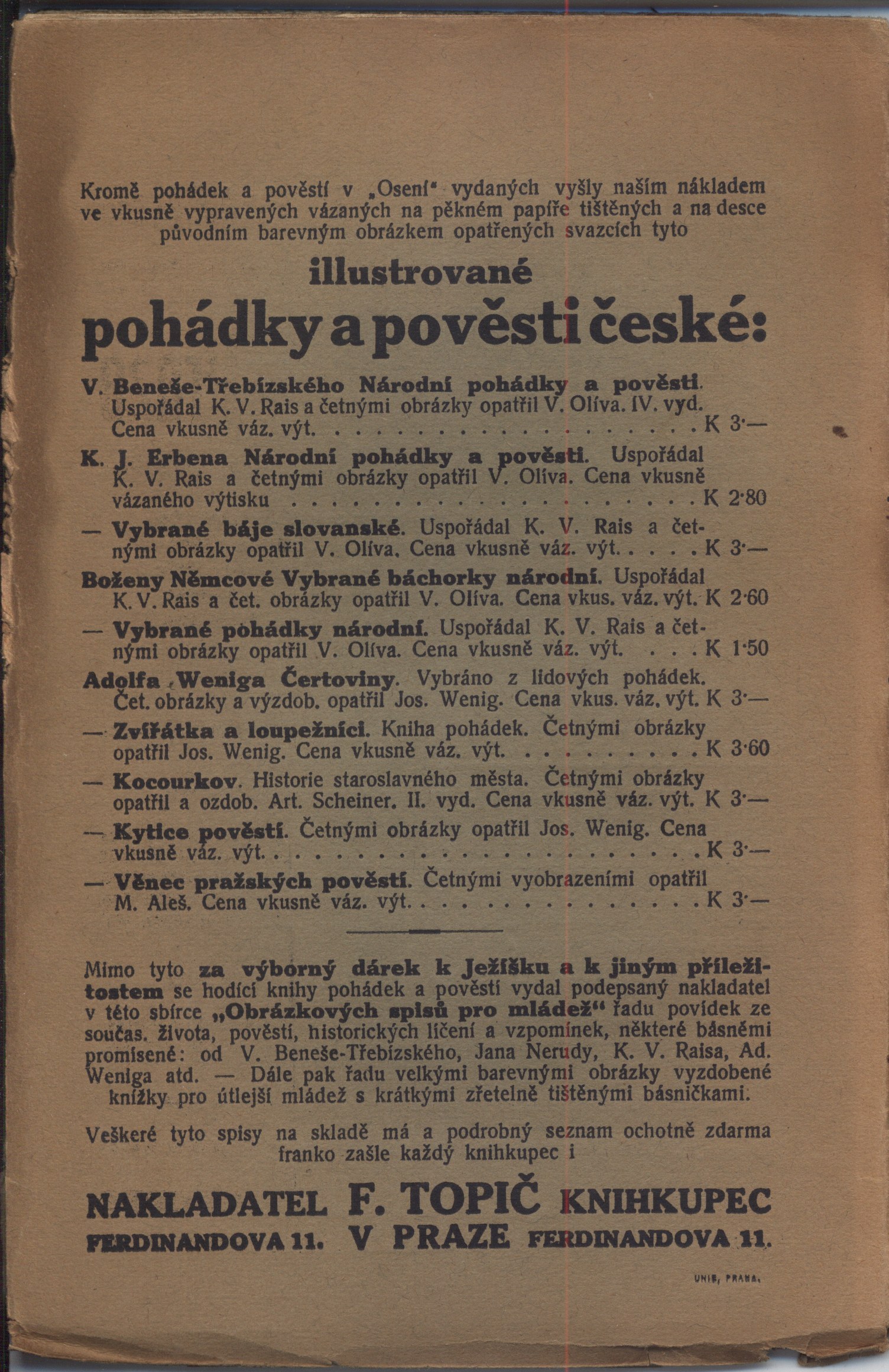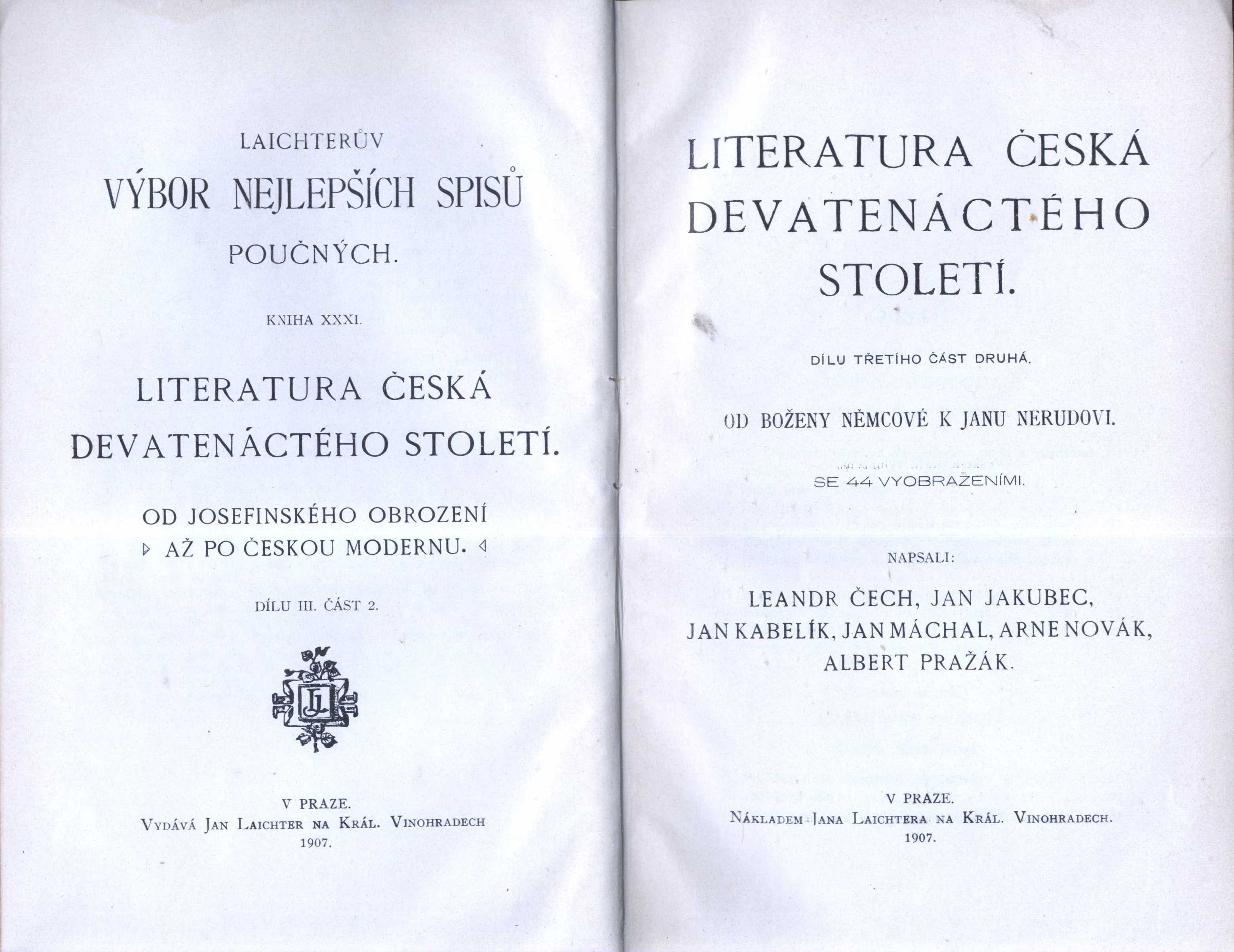 Názvové údaje Källornas musik / Otokar Březina ; med inledning av Arne Novák ; fran tjechiskan av E. Werr Osobní jméno Březina, Otokar, 1868-1929 (Autor) Další autoři Novák, Arne, 1880-1939 (Autor úvodu atd.) Wester, Ellen, 1873-1930 (Překladatel) Bílek, František, 1872-1941 (Ilustrátor) Korp. Albert Bonniers förlag (Nakladatel, vydavatel) Alb. Bonniers Boktryckeri (tiskárna) (Tiskař) Nakladatel Stockholm : Albert Bonniers Förlag, 1928 Výrobce Alb. Bonniers Boktryckeri Rozsah 150 stran ; 18,5 cm Klíčová slova česká próza * filozofie umění * symbolismus (literatura) * idealismus * eseje * překlad Počet ex. 4, z toho volných 4 Druh dok. monografie Signatura C12b 10773, C12b 12393, Holman-Březina 0086, Holman-Březina 0171 Názvové údaje Výbor z Ohlasů písní ruských a českých Fr. Lad. Čelakovského / s předmluvou Arne Nováka ; uspořádal Adolf Wenig Osobní jméno Čelakovský, František Ladislav, 1799-1852 (Autor) Další autoři Novák, Arne, 1880-1939 (Autor úvodu atd.) Wenig, Adolf, 1874-1940 (Sestavovatel, kompilátor) Kukula, O. (Dřívější majitel) (Autor podpisu) Korp. F. Topič (nakladatelství) (Nakladatel, vydavatel) Unie (tiskárna) (Tiskař) Nakladatel [Praha] : Nákladem F. Topiče, [1909] Výrobce (Unie) Rozsah 59, [1] s. : il. Klíčová slova česká literatura * česká poezie * ohlasová poezie * ohlasy * národní obrození * stol. 19., 1. pol. Počet ex. 1, z toho volných 1 Druh dok. monografie Signatura KaG XXXI E 97 Názvové údaje Výbor z ohlasů písní ruských a českých Fr. Lad. Čelakovského / s předmluvou Arne Nováka ; vydání uspořádal Adolf Wenig ; [úprava knihy od Jaroslava Bendy] Osobní jméno Čelakovský, František Ladislav, 1799-1852 (Autor) Další autoři Novák, Arne, 1880-1939 (Autor úvodu atd.) Wenig, Adolf, 1874-1940 (Sestavovatel, kompilátor) Benda, Jaroslav, 1882-1970 (Knižní grafik) (Ilustrátor) Korp. Kruh českých spisovatelů (Nakladatel, vydavatel) Unie (tiskárna) (Tiskař) Nakladatel [V Praze] : nákladem Kruhu českých spisovatelů, [1909] Výrobce (tiskem Unie) Rozsah 59 s. : il. ; 19 cm Osobní hesla Čelakovský, František Ladislav, 1799-1852 - profesor slavistiky a bohemistiky, básník, sběratel a vydavatel Klíčová slova česká literatura * poezie * písně * ohlasy * Čelakovský F. L. * výzdoba knihy * Benda J. * secesní výzdoba Počet ex. 1, z toho volných 1 Druh dok. monografie Signatura Topič 0649 Názvové údaje Lingam : dvanáct asijských novel / Max Dauthendey ; přeložil Alfons Breska ; úvodní studii napsal Arne Novák ; obálka a dřevoryty od F. Koblihy Osobní jméno Dauthendey, Max, 1867-1918 (Autor) Další autoři Breska, Alfons, 1873-1946 (Překladatel) Novák, Arne, 1880-1939 (Autor úvodu atd.) Kobliha, František, 1877-1962 (Ilustrátor) Nakladatel V Praze : Nakladatelské družstvo Máje, česká akciová společnost, 1919 Výrobce V Praze : Tiskem Dra. Ed. Grégra a syna, 1919 Rozsah 143 stran : ilustrace ; 15 cm Klíčová slova britská literatura * próza * Orient Počet ex. 2, z toho volných 2 Druh dok. monografie Signatura Holan 42, KaG XVI C2 98 Názvové údaje Pohádky a povídky / napsal Richard Dehmel ; z němčiny přeložila Zdenka Hostinská ; s úvodem Arne Nováka Osobní jméno Dehmel, Richard, 1863-1920 (Autor) Další autoři Hostinská, Zdenka, 1863-1942 (Překladatel) Novák, Arne, 1880-1939 (Autor úvodu atd.) Benda, Jaroslav, 1882-1970 (Knižní grafik) Korp. F. Topič (nakladatelství) (Autor) Unie (tiskárna) (Tiskař) Nakladatel Praha : F. Topič, 1913 Výrobce (Unie) Rozsah 58 s. : il. ; 20 cm Osobní hesla Dehmel, Richard, 1863-1920 - německý básník, dramatik a prozaik Klíčová slova německá literatura * próza * překlad * pohádky * povídky * literatura pro děti Počet ex. 1, z toho volných 1 Druh dok. monografie Signatura Topič 0401 Názvové údaje Marco Polo : člověk a doba / Mirek Elpl ; [úvod Marco Polo v Čechách napsal Arne Novák ; obálku navrhl Vojtěch Tittelbach] Osobní jméno Elpl, Mirek, 1905-1960 (Autor) Další autoři Novák, Arne, 1880-1939 (Autor úvodu atd.) Tittelbach, Vojtěch, 1900-1971 (Autor obálky) Korp. Melantrich (nakladatelství) (Nakladatel, vydavatel) Nakladatel V Praze : Melantrich, [1937] Rozsah 219 s. ; 8° Osobní hesla Polo, Marco, asi 1254-1324 - italský cestovatel, obchodník Klíčová slova česká literatura * česká próza * román * životopisný román * Marco Polo Počet ex. 2, z toho volných 2 Druh dok. monografie Signatura MEL 1335, MEL 1335a Názvové údaje Homer : slavné dílo velikého muže / W. E. Gladstone ; z angličtiny přeložil V. Patejdl Osobní jméno Gladstone, William Ewart, 1809-1898 (Autor) Další autoři Patejdl, Václav, 1859-1940 (Překladatel) Novák, Arne, 1880-1939 (Autor doslovu, tiráže atd.) Vočadlo, Otakar, 1895-1974 (Dřívější majitel) Korp. Josef Pelcl (nakladatelství) (Nakladatel, vydavatel) Edvard Leschinger (firma) (Tiskař) Nakladatel V Praze : Nákladem Josefa Pelcla, 1911 Výrobce V Praze : Tiskem Edvarda Leschingra, 1911 Rozsah 167, 26 stran ; 18,5 cm Osobní hesla Homéros, činný 8. století př. Kr. - řecký básník Klíčová slova dílo * klasická řecká literatura * starověká literatura * starověká poezie * starověké legendy * česká literatura * biografická studie * literárněhistorická studie Počet ex. 3, z toho volných 3 Druh dok. monografie Signatura Holan 1635, VMartínek 1630, C12b 19550 Názvové údaje Literatura česká devatenáctého století : od josefinského obrození až po českou modernu. Dílu třetího část druhá, Od Boženy Němcové k Janu Nerudovi : se 44 vyobrazeními / napsali Leandr Čech, Jan Jakubec, Jan Kabelík, Jan Máchal, Arne Novák, Albert Pražák Osobní jméno Čech, Leander, 1854-1911 (Autor) Další autoři Jakubec, Jan, 1862-1936 (Autor) Kabelík, Jan, 1864-1928 (Autor) Máchal, Jan, 1855-1939 Novák, Arne, 1880-1939 (Au