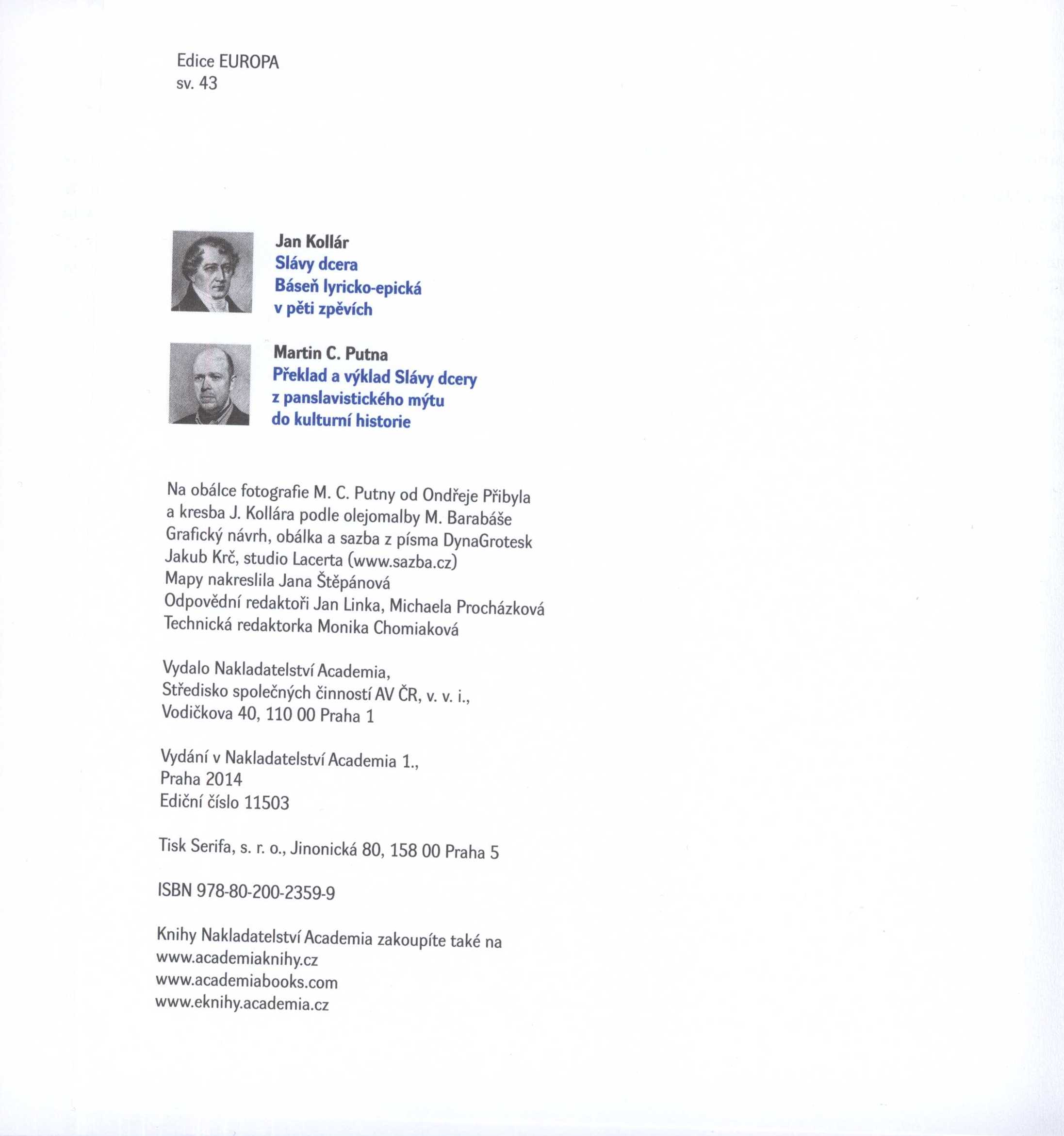 Názvové údaje Sebrané spisy. I, Prvotiny / Jakub Deml ; Martin C. Putna a Záviš Šuman (eds.) ; [grafický návrh, obálka a sazba Studio Lacerta] Osobní jméno Deml, Jakub, 1878-1961 (Autor) Další autoři Putna, Martin C., 1968- (Editor) (Autor úvodu atd.) (Autor doslovu, tiráže atd.) Šuman, Záviš, 1979- (Editor) (Autor komentáře) Korp. Lacerta (grafické studio) (Knižní grafik) Nakladatel Praha : Academia, 2013 Rozsah 910 s., [32] s. obr. příl. : il., faksim. Osobní hesla Deml, Jakub, 1878-1961 - katolický kněz, básník, prozaik, publicista, překladatel Klíčová slova česká literatura * katolická literatura * česká poezie * literární kritika * literární publicistika * křesťanské učení * křesťanská meditace * Deml J. * Česko * stol. 20. * texty * korespondence * sebrané spisy Počet ex. 1, z toho volných 1 Druh dok. monografie Signatura C12b 14845 Názvové údaje Sebrané spisy. II, Mystické překlady / Jakub Deml ; [k vydání připravili] Martin C. Putna, Záviš Šuman a Jakub Vaníček (eds.) ; [grafický návrh, obálka a sazba Jakub Krč] Osobní jméno Deml, Jakub, 1878-1961 (Autor) Další autoři Putna, Martin C., 1968- (Editor) (Autor doslovu, tiráže atd.) Šuman, Záviš, 1979- (Editor) (Autor úvodu atd.) Vaníček, Jakub, 1980- (Editor) (Autor úvodu atd.) Krč, Jakub, 1973- (Knižní grafik) Bílek, František, 1872-1941 (Ilustrátor) Korp. Academia (nakladatelství) (Nakladatel, vydavatel) Těšínská tiskárna (Tiskař) (Tiskař obrazu) Nakladatel Praha : Nakladatelství Academia, Středisko společných činností AV ČR, v. v. i., 2014 Výrobce Těšínská tiskárna, a. s.) Rozsah 790 s., [28] s. obr. příl. : faksim. Osobní hesla Deml, Jakub, 1878-1961 - katolický kněz, básník, prozaik, publicista, překladatel Klíčová slova česká literatura * katolická literatura * křesťanská literatura * duchovní literatura * papežské dokumenty * překlady do češtiny * Deml J. * Česko * stol. 3.-20. * stol. 20. * texty * sebrané spisy Počet ex. 1, z toho volných 1 Druh dok. monografie Signatura C12b 15518 Názvové údaje Sebrané spisy. III, Moji přátelé a smrt, aneb, Texty prvního expresionismu / Jakub Deml ; Martin C. Putna, Záviš Šuman a Jakub Vaníček (eds.) ; grafický návrh, obálka a sazba Jakub Krč, studio Lacerta Osobní jméno Deml, Jakub, 1878-1961 (Autor) Další autoři Putna, Martin C., 1968- (Editor) (Autor komentáře) (Překladatel) Šuman, Záviš, 1979- (Editor) (Autor komentáře) Vaníček, Jakub, 1980- (Editor) (Autor komentáře) Krč, Jakub, 1973- (Knižní grafik) (Autor obálky) (Sazeč) Nakladatel Praha : Academia, 2015 Výrobce Praha : SERIFA, s. r. o. Rozsah 570 stran, 12 nečíslovaných stran obrazových příloh : ilustrace, faksimile ; 21 cm Osobní hesla Deml, Jakub, 1878-1961 - katolický kněz, básník, prozaik, publicista, překladatel Klíčová slova česká literatura * katolická literatura * sebrané spisy * beletristické dílo * katoličtí kněží * osobnosti * Deml J. * Česko * stol. 19.-20. Počet ex. 1, z toho volných 1 Druh dok. monografie Signatura C12b 16296 Názvové údaje Sebrané spisy. IV., Zrození Šlépějí, aneb, Demlova "bílá kniha" / Jakub Deml ; Martin C. Putna, Záviš Šuman a Jakub Vaníček (eds.) ; grafický návrh, obálka a sazba Jakub Krč, studio Lacerta Osobní jméno Deml, Jakub, 1878-1961 (Autor) Další autoři Putna, Martin C., 1968- (Editor) Šuman, Záviš, 1979- (Editor) Vaníček, Jakub, 1980- (Editor) Krč, Jakub, 1973- (Knižní grafik) (Autor obálky) (Sazeč) Korp. Academia (nakladatelství) (Nakladatel, vydavatel) Serifa (tiskárna) (Tiskař) Nakladatel Praha : Academia, 2017 Výrobce Serifa, s.r.o. Rozsah 845 stran, 48 stran obrazových příloh : ilustrace (některé barevné), portréty, faksimile ; 21 cm Osobní hesla Deml, Jakub, 1878-1961 - katolický kněz, básník, prozaik, publicista, překladatel Klíčová slova česká literatura * katolická literatura * česká próza * Česko * stol. 20. * sebrané spisy Počet ex. 1, z toho volných 1 Druh dok. monografie Signatura C12b 18236 Názvové údaje Dopisy od Olgy / Ivan M. Havel a kol. ; editoři Jan M. Heller a Martin C. Putna Osobní jméno Havel, Ivan M., 1938-2021 (Autor) Další autoři Heller, Jan M., 1977- (Editor) Putna, Martin C., 1968- (Editor) (Autor úvodu atd.) Dean, Michael, 1949- (Překladatel) Řehák, Daniel, 1974- (Jiná role) Hrach, Pavel, 1947- (Knižní grafik) Korp. Knihovna Václava Havla (Praha, Česko) (Nakladatel, vydavatel) Tiskárny Havlíčkův Brod (firma) (Tiskař) Nakladatel Praha : Knihovna Václava Havla, o. p. s., 2010 Výrobce [Havlíčkův Brod] : Tiskárny Havlíčkův Brod, a. s. Rozsah 510 stran ; 21 cm Osobní hesla Havel, Václav, 1936-2011 - spisovatel a dramaturg, dramatik, publicista v literárních a divadelních časopisech, esejista, politik, prezident ČR * Havel, Ivan M., 1938-2021 - technik, filozof, VŠ pedagog, šéfredaktor Klíčová slova političtí vězni * čeští dramatici * čeští filozofové * Česko * stol. 20., léta 80. * korespondence Počet ex. 2, z toho volných 2 Druh dok. monografie Signatura C12b 12703, R&AHamanovi 1044 Názvové údaje Slávy dcera : báseň lyricko-epická v pěti zpěvích / Jan Kollár. Překlad a výklad Slávy dcery z panslavistického mýtu do kulturní historie / Martin C. Putna ; [grafický návrh, obálka a sazba Jakub Krč] Osobní jméno Kollár, Ján, 1793-1852 (Autor) Další autoři Putna, Martin C., 1968- (Překladatel) (Autor komentáře textu) Krč, Jakub, 1973- (Knižní grafik) (Autor obálky) (Sazeč) Korp. Academia (nakladatelství) (Nakladatel, vydavatel) Serifa (tiskárna) (Tiskař) Nakladatel Praha : Academia, 2014 Výrobce (Serifa) Rozsah 385 s. : mapy Osobní hesla Kollár, Ján, 1793-1852 - spisovatel a folklorista Klíčová slova česká poezie * národní obrození * kulturní dějiny * panslavismus * stol. 19. * studie * k