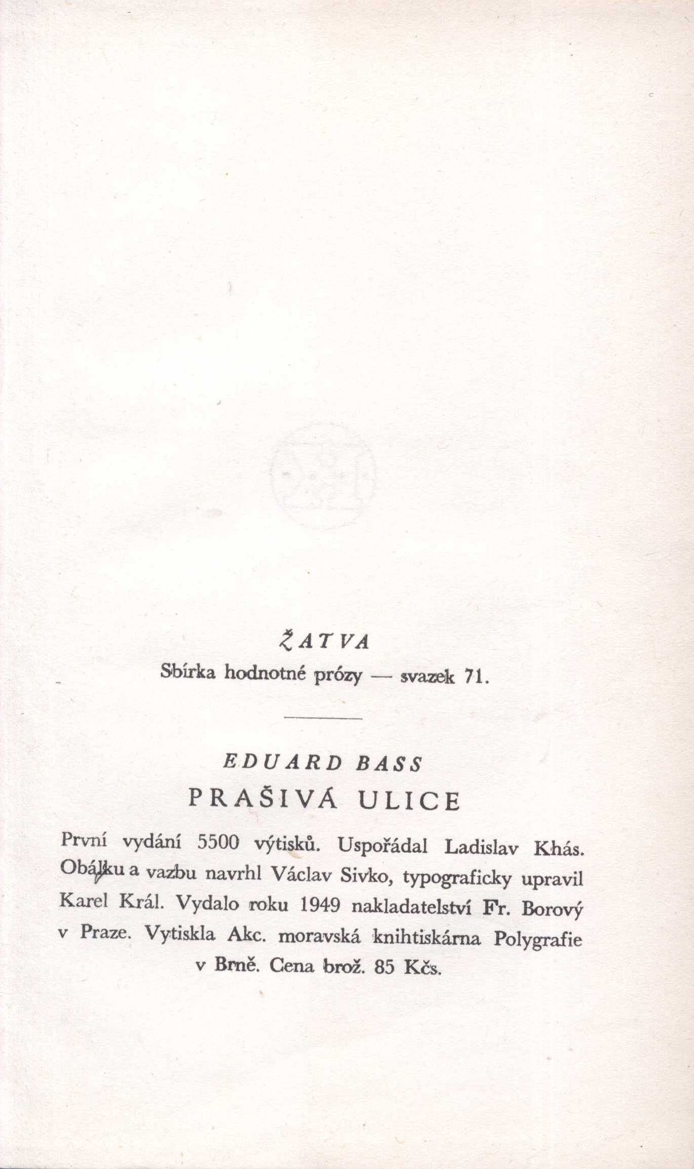 Názvové údaje Roh bílé zdi / Arkadij Adamov ; z ruského originálu Ugol beloj steny přeložil Jaroslav Novák ; vazba Václav Sivko ; frontispice a obálka Jaroslav Fišer Osobní jméno Adamov, Arkadij Grigor‘jevič, 1920-1991 (Autor) Další autoři Novák, Jaroslav (Překladatel) Sivko, Václav, 1923-1974 (Autor obálky) Fišer, Jaroslav, 1919-2003 (Ilustrátor) Korp. Mladá fronta (nakladatelství) (Nakladatel, vydavatel) Mír, novinářské závody (tiskárna) (Tiskař) Nakladatel Praha : Mladá fronta, 1976 Výrobce Mír 3 Rozsah 273 stran Klíčová slova ruská próza * román Počet ex. 1, z toho volných 1 Druh dok. monografie Signatura P I 330 Názvové údaje Tri zlomené pečate, alebo, Traktát o prevelikých tajomstvách ukrytých v sne, hviezde a čísle : horoskopy, snár, kabala / Albert Aklič ; koláže Václav Sivko ; úprava M. Kopřiva Osobní jméno Aklič, Albert (Autor) Další autoři Sivko, Václav, 1923-1974 (Ilustrátor) Kopřiva, Milan, (Grafický technik) 1929-1997 Korp. Vydavateľstvo Tatran (Nakladatel, vydavatel) Nakladatel Bratislava : Tatran, 1970 Rozsah 248 stran : ilustrace Klíčová slova astrologie * sny * výklad snů * kabala * pojednání Počet ex. 1, z toho volných 1 Druh dok. monografie Signatura ZF 2 B 33 Názvové údaje Dvojí smrt Johna Lafcadia / Margery Allingham ; z anglického originálu Death of a Ghost přeložila Eva Outratová ; vstupní kresbu navrhl Jaroslav Fišer ; vazba Václav Sivko Osobní jméno Allingham, Margery, 1904-1966 (Autor) Další autoři Outratová, Eva, 1912-1989 (Překladatel) Fišer, Jaroslav, 1919-2003 (Ilustrátor) Sivko, Václav, 1923-1974 (Autor obálky) Korp. Mladá fronta (nakladatelství) (Nakladatel, vydavatel) Nakladatel Praha : Mladá fronta, 1967 Rozsah 207 stran Klíčová slova anglická próza * detektivní romány Počet ex. 1, z toho volných 1 Druh dok. monografie Signatura P 60 f 14 Názvové údaje Kůň a jeho stín / Enrique Amorim ; Ze špan. přel. Zdeněk Šmíd ; Obálku a vazbu navrhl Václav Sivko Osobní jméno Amorim, Enrique, 1900-1960 (Autor) Další autoři Šmíd, Zdeněk, 1908-1989 (Překladatel) Sivko, Václav, 1923-1974 (Grafický technik) Nakladatel Praha : Československý spisovatel, 1950 Rozsah 228 s. Klíčová slova jihomerická literatura * próza * román Počet ex. 1, z toho volných 1 Druh dok. monografie Signatura AČS 00887 Názvové údaje Lidé kolchozních polí / Paša Angelinová ; [z ruš. přel. Olga Bojarová ; obálku navrhl Václav Sivko] Osobní jméno Angelina, Praskov‘ja Nikitična, 1912-1959 (Autor) Další autoři Bojarová, Olga, 1925- (Překladatel) Sivko, Václav, 1923-1974 (Autor obálky) Korp. Melantrich (nakladatelství) (Nakladatel, vydavatel) Nakladatel Praha : Melantrich, 1950 Výrobce (Moravskoslezské. tiskárny, záv. Přerov) Rozsah 125 s. Klíčová slova ruská sovětská literatura * vzpomínkové vyprávění * kolchozy * brigády práce Počet ex. 2, z toho volných 2 Druh dok. monografie Signatura MEL 0524, MEL 1249 Názvové údaje Třicátý rok / Ingeborg Bachmannová ; z německého originálu Das dreissigste Jahr ... přeložil a doslov napsal Josef Čermák Osobní jméno Bachmann, Ingeborg, 1926-1973 (Autor) Další autoři Čermák, Josef, 1928-2020 (Překladatel) (Autor doslovu, tiráže atd.) Sivko, Václav, 1923-1974 (Autor obálky) (Výtvarník vazby) Wild, Jan (Knižní grafik) Korp. Mladá fronta (nakladatelství) (Nakladatel, vydavatel) Mír, novinářské závody (tiskárna) (Tiskař) Nakladatel Praha : Mladá fronta, 1965 Výrobce Praha : Mír, n. p. Rozsah 195 stran ; 18 cm Osobní hesla Bachmann, Ingeborg, 1926-1973 - rakouská básnířka, esejistka, prozaička Klíčová slova rakouská literatura * próza * rakouská próza * povídky * Bachmann I. * český překlad * Čermák J. * r. 1965 Počet ex. 3, z toho volných 3 Druh dok. monografie Signatura EJulis 0147, Eisner 1173, R&AHamanovi 1372 Názvové údaje Prašivá ulice / Eduard Bass ; [uspořádal Ladislav Khás ; obálku a vazbu navrhl Václav Sivko] Osobní jméno Bass, Eduard, 1888-1946 (Autor) Další autoři Khás, Ladislav, 1905-1976 (Sestavovatel, kompilátor) Sivko, Václav, 1923-1974 (Autor obálky) (Výtvarník vazby) Korp. Fr. Borový (firma) (Nakladatel, vydavatel) Akciová moravská knihtiskárna Polygrafie (Tiskař) Nakladatel Praha : Fr. Borový, 1949 Výrobce Akc. moravská knihtiskárna Polygrafie) Rozsah 302 s. ; 8° Osobní hesla Bass, Eduard, 1888-1946 - prozaik, novinář, překladatel Klíčová slova česká literatura * česká próza * povídky Počet ex. 1, z toho volných 1 Druh dok. monografie Signatura AFB 2118 Názvové údaje Prašivá ulice / Eduard Bass ; [uspořádal Ladislav Khás ; obálku a vazbu navrhl Václav Sivko] Osobní jméno Bass, Eduard, 1888-1946 (Autor) Další autoři Khás, Ladislav, 1905-1976 (Sestavovatel, kompilátor) Sivko, Václav, 1923-1974 (Autor obálky) (Výtvarník vazby) Korp. Fr. Borový (firma) (Nakladatel, vydavatel) Akciová moravská knihtiskárna Polygrafie (Tiskař) Nakladatel Praha : Fr. Borový, 1949 Výrobce Akc. moravská knihtiskárna Polygrafie) Rozsah 302 s. ; 8° Osobní hesla Bass, Eduard, 1888-1946 - prozaik, novinář, překladatel Klíčová slova česká literatura * česká próza * povídky Počet ex. 1, z toho volných 1 Druh dok. monografie Signatura AFB 2117 Názvové údaje Jak zvířátka od lesa šla na pana Korbesa / napsal Kamil Bednář ; nakreslil Václav Sivko Osobní jméno Bednář, Kamil, 1912-1972 (Autor) Další autoři Sivko, Václav, 1923-1974 (Ilustrátor) Korp. Fr. Borový (firma) (Nakladatel, vydavatel) Česká grafická Unie (tiskárna a nakladatelství) (Tiskař) Nakladatel Praha : Fr. Borový, [1948] Výrobce Česká grafická Unie) Rozsah [38] s. : il. ; příč. 8° Klíčová slova česká literatura * česká poezie * básničky * knihy pro děti Počet ex. 1, z toho volných 1 Druh dok. monografie Signatura AFB 1954 Názvové