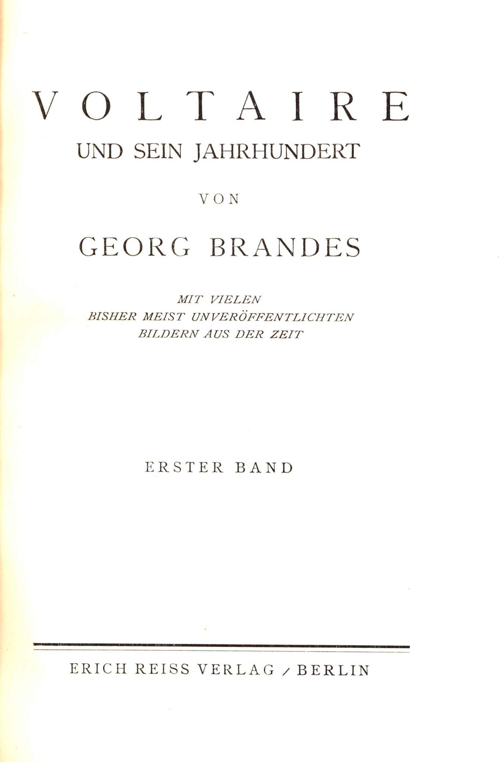 Názvové údaje Biskajská dramata : deset reportáží z bojové činnosti 311. čs. bombardovací peruti z let 1943-1944 / H. J. Slípka ; [fotografie E. Stein] Osobní jméno Slípka, H. J. (Autor) Další autoři Stein, E. (Fotograf) Nakladatel Praha : Orbis, 1945 Rozsah 46 s., 10 obr. příl. ; 21 cm Klíčová slova česká literatura Počet ex. 1, z toho volných 1 Druh dok. monografie Signatura Holan 2332 Názvové údaje Voltaire und sein Jahrhundert. Erster Band / von Georg Brandes ; übersetzt von E. Stein und E.R. Eckert Osobní jméno Brandes, Georg, 1842-1927 (Autor) Další autoři Stein, E. (Překladatel) Eckert, Ernst Richard (Překladatel) Korp. Erich Reiss Verlag (Nakladatel, vydavatel) Pass & Garleb (Berlín (Německo)) (Tiskař) Nakladatel Berlin : Erich Reiss Verlag, [191-?] Výrobce [Pass & Garleb A.-G.] Rozsah 367 stran : černobílé ilustrace ; 24 cm Osobní hesla Voltaire, 1694-1778 Klíčová slova biografie * filozofie * osvícenství * názory a postoje Počet ex. 1, z toho volných 1 Druh dok. monografie Signatura JVladislav 1419 Názvové údaje Voltaire und sein Jahrhundert. Zweiter Band / von Georg Brandes ; übersetzt von E. Stein und E.R. Eckert Osobní jméno Brandes, Georg, 1842-1927 (Autor) Další autoři Stein, E. (Překladatel) Eckert, Ernst Richard (Překladatel) Korp. Erich Reiss Verlag (Nakladatel, vydavatel) Pass & Garleb (Berlín (Německo)) (Tiskař) Nakladatel Berlin : Erich Reiss Verlag, [191-?] Výrobce Pass & Garleb A.-G. Rozsah 470 stran : černobílé ilustrace ; 24 cm Osobní hesla Voltaire, 1694-1778 - francouzský filozof, básník, encyklopedista Klíčová slova biografie * filozofie * osvícenství * názory a postoje Počet ex. 1, z toho volných 1 Druh dok. monografie Signatura JVladislav 1420