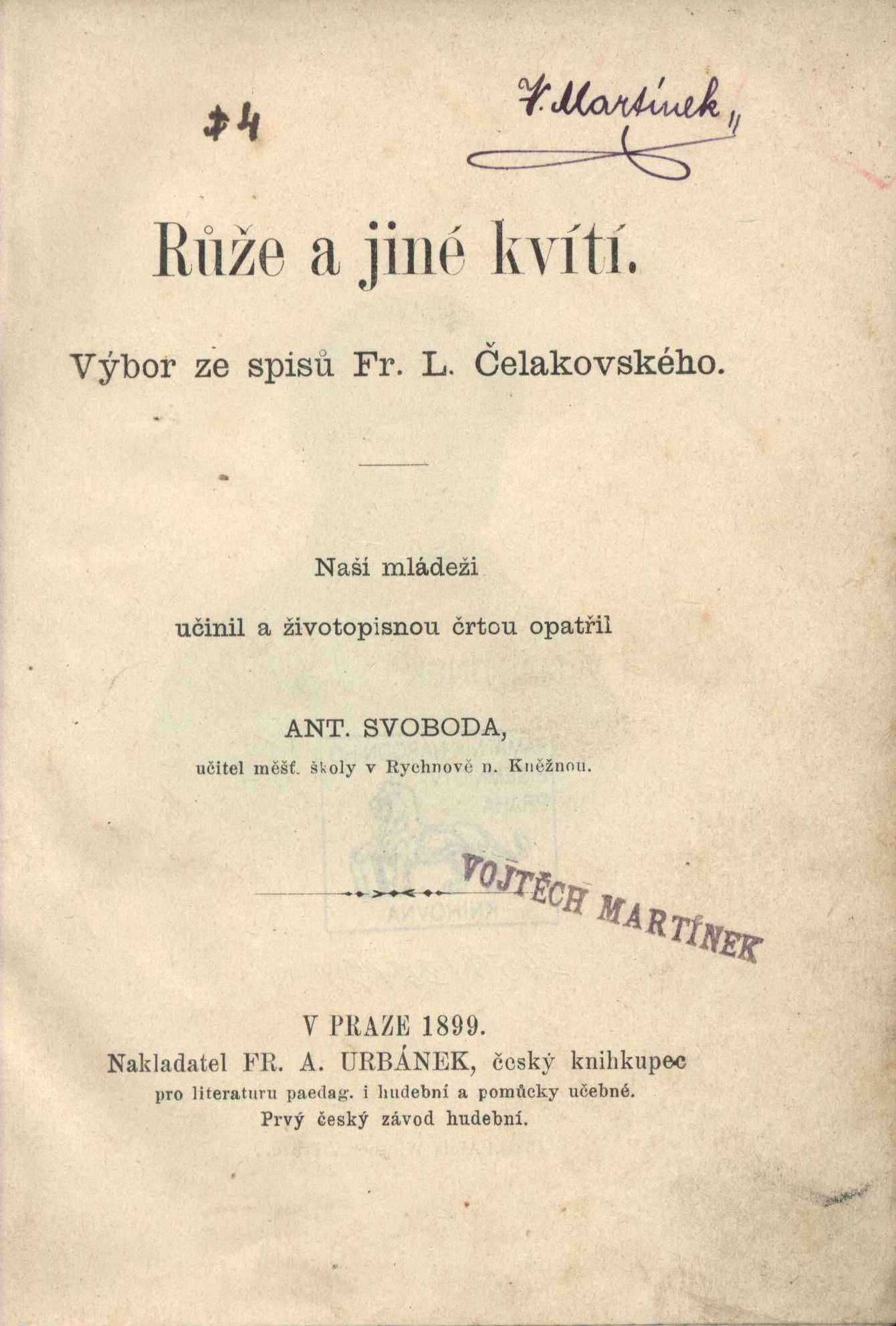 Názvové údaje Portugalské listy / [v překladu a s doslovem od Hanuše Jelínka ; úprava a barevné litografie Frant. Kysely] Osobní jméno Alcoforado, Mariana, 1640-1723 (Autor) Další autoři Jelínek, Hanuš, 1878-1944 (Překladatel) (Autor doslovu, tiráže atd.) Kysela, František, 1881-1941 (Ilustrátor) (Litograf) Svobodová, Hana (Dárce) Svoboda, Antonín (Dřívější majitel) Korp. Dělnická knihtiskárna a nakladatelství (Praha) (Tiskař) V. Neubert a synové (firma) (Tiskař obrazu) Nakladatel V Praze : Nová edice, [po r. 1900] Rozsah 35 s., [3] l. obr. příl. : il. Klíčová slova portugalská literatura * dopisy * milostné dopisy * milostná literatura * kláštery * bibliofilské tisky * bibliofilský tisk * bibliofilská vydání Počet ex. 1, z toho volných 1 Druh dok. monografie Signatura KaG XXXII F2 137 Názvové údaje Austriatica / Hermann Bahr ; se svolením autora přeložil J. B. Novák Osobní jméno Bahr, Hermann, 1863-1934 (Autor) Další autoři Novák, Jan Bedřich, 1872-1933 (Překladatel) Svobodová, Hana (Dárce) Svoboda, Antonín (Dřívější majitel) Korp. Antonín Reis (nakladatelství) (Tiskař) Nakladatel Turnov : R. Ptáčník, 1912 Výrobce (Tiskem Ant. Reise) Rozsah 177 s., [1] l. obr. příl. : il. Klíčová slova rakouská literatura * úvahy * eseje * esejistické texty * Rakousko * Rakousko-Uhersko Počet ex. 1, z toho volných 1 Druh dok. monografie Signatura KaG XXXII F2 110 Názvové údaje Děti : komedie o třech dějstvích / Hermann Bahr ; přeložila Helena Malířová Osobní jméno Bahr, Hermann, 1863-1934 (Autor) Další autoři Malířová, Helena, 1877-1940 (Překladatel) Svoboda, Antonín (Dřívější majitel) Svobodová, Hana (Dárce) Korp. Jos. R. Vilímek (nakladatelství) (Nakladatel, vydavatel) Unie (tiskárna) (Tiskař) Nakladatel V Praze : Jos. R. Vilímek, [1911] Výrobce Unie Rozsah 121 stran, 2 nečíslované listy obrazových příloh : ilustrace Klíčová slova komedie * rakouská literatura * moderní drama Počet ex. 2, z toho volných 2 Druh dok. monografie Signatura KaG XXXII F2 147, P 118 d 59 Názvové údaje Věčné rysy Francie / Maurice Barrès ; z francouzštíny přeložil Jan Reichmann Osobní jméno Barrès, Maurice, 1862-1923 (Autor) Další autoři Reichmann, Jan, 1885-1943 (Překladatel) Svobodová, Hana (Dárce) Svoboda, Antonín (Dřívější majitel) Korp. Otto Girgal (nakladatelství) (Nakladatel, vydavatel) Nakladatel Praha : Otto Girgal, 1919 Výrobce (Spoj. graf. ústavy Koppe-Bellmann) Rozsah 47 s. ; 8° Klíčová slova 1. světová válka * Francie * francouzská literatura * překlad * autobiografické eseje Počet ex. 2, z toho volných 2 Druh dok. monografie Signatura Holan 00914, KaG XL F2 55 Názvové údaje Nad naši sílu : hra o dvou dějstvích / Björnstjerne Björnson ; přeložil Jaroslav Kvapil ; s úvodem od F. V. Krejčího. 1 Osobní jméno Bjørnson, Bjørnstjerne, 1832-1910 (Autor) Další autoři Kvapil, Jaroslav, 1868-1950 (Překladatel) Krejčí, F. V. (František Václav), 1867-1941 (Autor úvodu atd.) Svoboda, Antonín (Dřívější majitel) Svobodová, Hana (Dárce) Korp. Nakladatelství Jan Otto (Nakladatel, vydavatel) Česká grafická akciová společnost Unie (v Praze) (Tiskař) Nakladatel Praha : Nákladem J. Otty, [1900] Výrobce (Tiskem České grafické akciové společnosti "Unie") Rozsah 127 s. Klíčová slova norská literatura * divadelní hra * divadelní hry * moderní drama Počet ex. 1, z toho volných 1 Druh dok. monografie Signatura KaG XXXII F2 54 Názvové údaje Rozkošná příhoda = La belle aventure : veselohra o třech dějstvích / A. Caillavet, Rob. de Flers a Et. Rey ; z francouzštiny přeložil Gustav Schmoranz Osobní jméno Caillavet, Gaston Arman de, 1869-1915 (Autor) Další autoři Flers, Robert de, 1872-1927 (Autor) Rey, Étienne, 1879-1965 (Autor) Schmoranz, Gustav, 1858-1930 (Překladatel) Svobodová, Hana (Dárce) Svoboda, Antonín Korp. Zora (nakladatelství) (Nakladatel, vydavatel) M. Knapp (nakladatelství, tiskárna) (Tiskař) Nakladatel V Praze : Zora, 1923 Výrobce (Tiskem M. Knappa) Rozsah 127 s. Klíčová slova francouzská literatura * divadelní hry * divadelní hra * veselohra Počet ex. 1, z toho volných 1 Druh dok. monografie Signatura KaG XL F2 60 Názvové údaje Růže a jiné kvítí : výbor ze spisů Fr. L. Čelakovského / naší mládeži učinil a životopisnou črtou opatřil Ant. Svoboda Osobní jméno Čelakovský, František Ladislav, 1799-1852 (Autor) Další autoři Svoboda, Antonín, 1861-1924 (Sestavovatel, kompilátor) (Autor úvodu atd.) Korp. Fr. A. Urbánek (nakladatelství) (Nakladatel, vydavatel) Alois Wiesner, knihtiskař České akademie císaře Františka Josefa pro vědy, slovesnost a umění (Praha) (Tiskař) Nakladatel V Praze : Fr. A. Urbánek, 1899 Výrobce (Alois Wiesner) Rozsah 154 s. ; 18 cm Osobní hesla Čelakovský, František Ladislav, 1799-1852 - profesor slavistiky a bohemistiky, básník, sběratel a vydavatel Klíčová slova čeští spisovatelé * česká próza * česká poezie * literatura pro děti a mládež * stol. 19. * básně * přísloví * drobné příběhy Počet ex. 1, z toho volných 1 Druh dok. monografie Signatura VMartínek 1479 Názvové údaje Kandidát ; Zámek srdcí ; Slabé pohlaví / Gustave Flaubert ; [přeložil Zdeněk Schmoranz ; v úpravě F. Muziky] Osobní jméno Flaubert, Gustave, 1821-1880 (Autor) Další autoři Schmoranz, Zdeněk, 1896-1942 (Překladatel) Šimek, Otokar, 1878-1950 (Autor doslovu, tiráže atd.) Štorch-Marien, Otakar, 1897-1974 (Nakladatel, vydavatel) Muzika, František, 1900-1974 (Autor obálky) Svobodová, Hana (Dárce) Svoboda, Antonín (Dřívější majitel) Hellmuth-Brauner, Vladimír, 1910-1982 (Dedikátor) Hellmuthová, Marta, 1917-1988 (Dedikant) (Dřívější majitel) Korp. Aventinum (nakladatelství) (Nakladatel, vydavatel) Grafické závody V. a A. Janata (Tiskař) Nakladatel V Praz