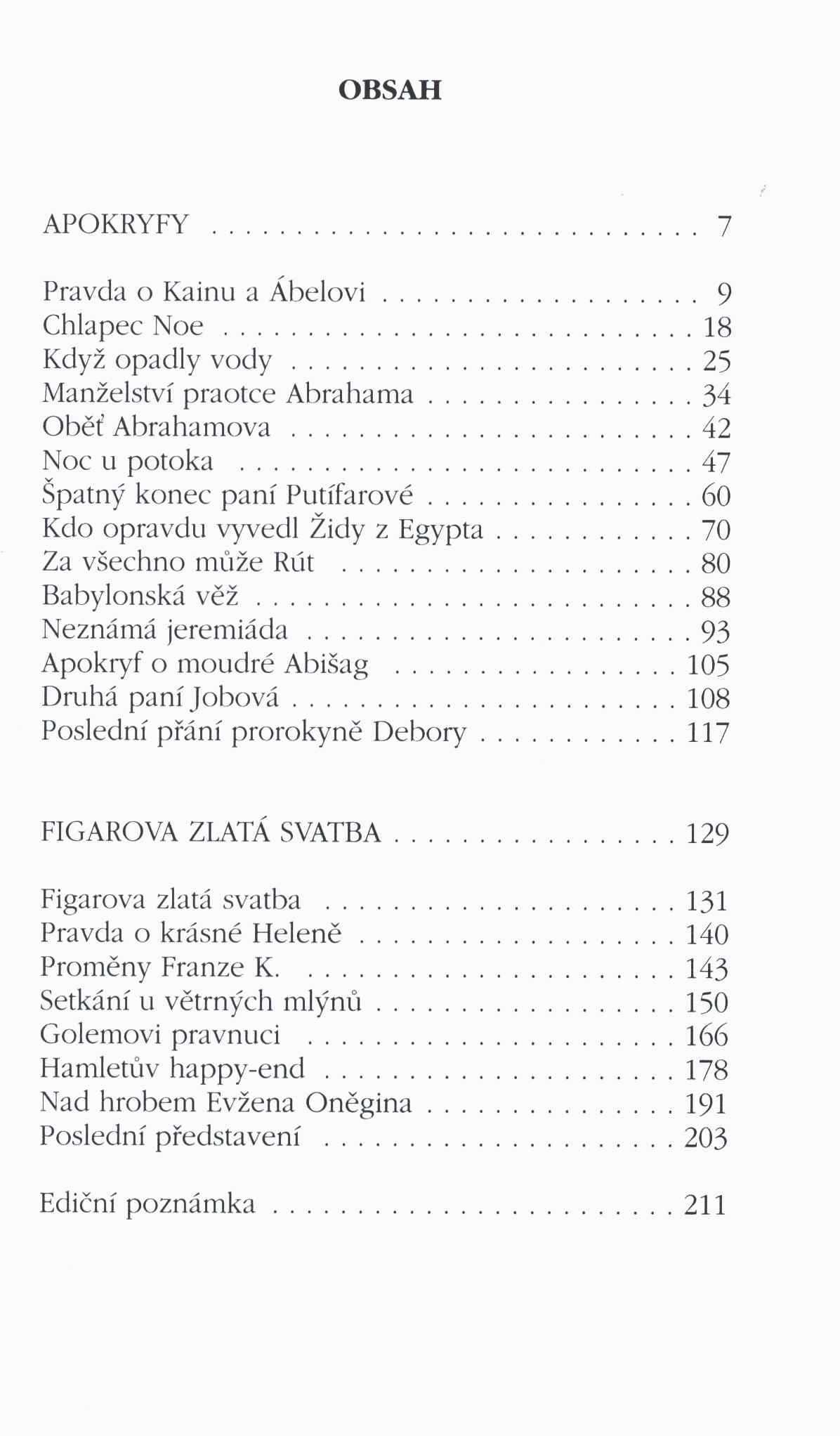 Názvové údaje Zamilovaný ďábel : španělská novela / Jacques Cazotte ; přeložil Petr Turek Osobní jméno Cazotte, Jacques, 1719-1792 (Autor) Další autoři Turek, Petr, 1963- (Překladatel) (Autor komentáře) Troskov, Jiří, 1973- (Autor obálky) Korp. Mladá fronta (nakladatelství) (Nakladatel, vydavatel) Serifa (tiskárna) (Tiskař) Nakladatel Praha : Mladá fronta, 2001 Výrobce Praha: Serifa Rozsah 237 stran : ilustrace ; 18 cm Osobní hesla Cazotte, Jacques, 1719-1792 - francouzský prozaik Klíčová slova francouzská literatura * francouzská próza * Cazotte J. * překlad * fantastická literatura * novela * Španělsko * stol. 18. * dobové ilustrace Počet ex. 1, z toho volných 1 Druh dok. monografie Signatura C12a 5775 Názvové údaje Život a sochy Olbrama Zoubka / Dora Čechova ; [fotografie Ota Richter ... et al. ; grafická úprava a sazba Jiří Troskov] Osobní jméno Čechova, Dora, 1971- (Autor) Další autoři Richter, Ota (Fotograf) Troskov, Jiří, 1973- (Knižní grafik) Korp. Mladá fronta (nakladatelství) (Nakladatel, vydavatel) Europrint Modřany a. s. (tiskárna) (Tiskař) Nakladatel Praha : Mladá fronta, 2013 Výrobce (Europrint) Rozsah 243 s. : il., portréty ; 20 cm Osobní hesla Zoubek, Olbram, 1926-2017 - sochař, grafik, restaurátor Klíčová slova české výtvarné umění * české sochařství * čeští sochaři * osobnosti * Zoubek O. * rozhovory * biografická literatura * monografické publikace Počet ex. 1, z toho volných 1 Druh dok. monografie Signatura C12b 15913 Názvové údaje Legenda o nesvatém Kraťákovi, aneb, Až řeknu teď, tak začni číst! / Jaromír Červenka ; [grafická úprava Jiří Troskov] Osobní jméno Červenka, Jaromír, 1952- (Autor) Další autoři Troskov, Jiří, 1973- (Knižní grafik) Nakladatel Praha : Mladá fronta, 2005 Rozsah 72 s. Klíčová slova česká próza * novela * Malá Strana (Praha) * příběhy lidí Počet ex. 1, z toho volných 1 Druh dok. monografie Signatura C12b 8332 Názvové údaje Apokryfy ; Figarova zlatá svatba / Viktor Fischl ; [graficky upravil a obálku navrhl Jiří Troskov] Osobní jméno Fischl, Viktor, 1912-2006 (Autor) Další autoři Troskov, Jiří, 1973- (Knižní grafik) (Autor obálky) Korp. Garamond (nakladatelství) (Nakladatel, vydavatel) Protisk (tiskárna, České Budějovice) (Tiskař) Nakladatel Praha : Garamond, 2004 Výrobce Protisk) Rozsah 211 s. Klíčová slova česká próza * české povídky * povídkové soubory * sebrané spisy Počet ex. 2, z toho volných 2 Druh dok. monografie Signatura C12b 7236, R&AHamanovi 0170 Názvové údaje Jeruzalémské povídky ; Kafka v Jeruzalému / Viktor Fischl ; [graficky upravil a obálku navrhl Jiří Troskov] Osobní jméno Fischl, Viktor, 1912-2006 (Autor) Další autoři Troskov, Jiří, 1973- (Knižní grafik) Nakladatel Praha : Garamond, 2004 Rozsah 265 s. Klíčová slova česká próza * humoristické povídky * Jeruzalém Počet ex. 1, z toho volných 1 Druh dok. monografie Signatura C12b 7658 Názvové údaje Kuropění / Viktor Fischl ; [ilustrace Jan Kristofori ; doslov Viktor Fischl ; obálka a grafická úprava Jiří Troskov] Osobní jméno Fischl, Viktor, 1912-2006 (Autor) Další autoři Troskov, Jiří, 1973- (Knižní grafik) Nakladatel Praha : Garamond, 2005 Rozsah 205 s. Osobní hesla Kristofori, Jan, 1931-2004 - malíř, ilustrátor, grafik Klíčová slova česká próza * romány * čeští malíři * biografické eseje Počet ex. 1, z toho volných 1 Druh dok. monografie Signatura C12b 8544 Názvové údaje Ulice zvaná Mamila / Viktor Fischl ; [obálka a grafická úprava Jiří Troskov] Osobní jméno Fischl, Viktor, 1912-2006 (Autor) Další autoři Troskov, Jiří, 1973- (Knižní grafik) Nakladatel Praha : Garamond, 2006 Rozsah 157 s. Klíčová slova česká próza * vyprávění * vzpomínky * Jeruzalém * osudy Židů Počet ex. 1, z toho volných 1 Druh dok. monografie Signatura C12b 9368 Názvové údaje Muž s unavenýma očima / Martin Goffa ; [obálka a grafická úprava Jiří Troskov] Osobní jméno Goffa, Martin, 1973- (Autor) Další autoři Troskov, Jiří, 1973- (Autor obálky) Nakladatel Praha : Mladá fronta, 2013 Rozsah 237 s. Klíčová slova česká literatura * próza * detektivní román * r. 2012 Počet ex. 1, z toho volných 1 Druh dok. monografie Signatura C12b 14595 Názvové údaje Korespondence / Janouch, Vaculík ; [obálka Jiří Troskov ; typografie Jana Vysoká] Osobní jméno Janouch, František, 1931-2024 (Autor) Další autoři Vaculík, Ludvík, 1926-2015 (Autor) Troskov, Jiří, 1973- (Autor obálky) Vysoká, Jana, 1946- (Typograf) Nakladatel Praha : Mladá fronta, 2012 Rozsah 222 s. : il., portréty, faksim. Osobní hesla Janouch, František, 1931-2024 - jaderný fyzik, autor vědeckých a vědecko-populárních publikací, práce o Číně, překladatel * Vaculík, Ludvík, 1926-2015 - prozaik, fejetonista, kulturní a politický publicista Klíčová slova literatura * společnost * kulturní život * emigrace * imigrace * disidentské hnutí * československý exil * čeští spisovatelé * vědci * korespondence * Janouch F. * Vaculík L. * Švédsko * Československo * stol. 20. Počet ex. 1, z toho volných 1 Druh dok. monografie Signatura C12b 13985 Názvové údaje Doživotí : román, kde není ani slovo míněno vážně / Martin Jun Osobní jméno Jun, Martin, 1976- (Autor) Další autoři Kavalír, Ondřej, 1980- (Editor) Troskov, Jiří, 1973- (Knižní grafik) (Autor obálky) Fišerová, Milada, 1980- (Fotograf) Korp. Labyrint (nakladatelství) (Nakladatel, vydavatel) Akcent tiskárna Vimperk (Tiskař) Nakladatel V Praze : Labyrint, 2014 Výrobce [Vimperk] : Akcent tiskárna Vimperk Rozsah 302 stran : ilustrace ; 20 cm Klíčová slova česká literatura * próza * román * Jun M. * knižní debut Počet ex. 2, z toho volných 2 Adr. el. zdr. http://krameriusndk.nkp.cz/search/handle/uuid:78e0cdb0-0f5b-11e9-a9e5-0050568