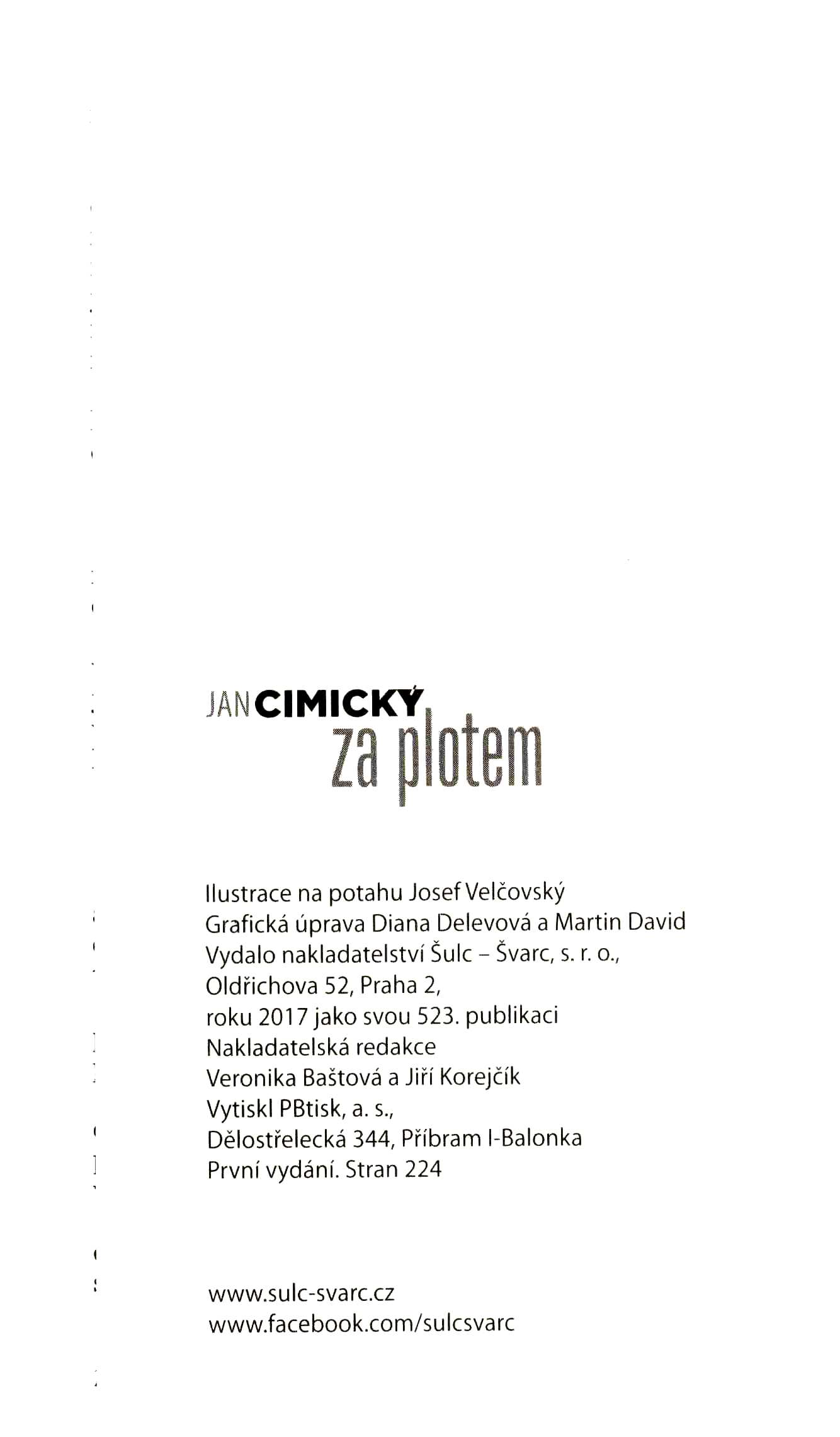 Názvové údaje Ty a já / Jan Cimický ; [ilustrace Josef Velčovský] Osobní jméno Cimický, Jan, 1948- (Autor) Další autoři Velčovský, Josef, 1945- (Ilustrátor) Nakladatel Praha : DEUS, 2007 Rozsah 175 s. : il. Klíčová slova česká poezie * básně Počet ex. 1, z toho volných 1 Druh dok. monografie Signatura C12a 3499 Názvové údaje Za plotem / Jan Cimický ; ilustrace na potahu Josef Velčovský ; grafická úprava Diana Delevová a Martin David Osobní jméno Cimický, Jan, 1948- (Autor) Další autoři Velčovský, Josef, 1945- (Ilustrátor) (Autor obálky) Delevová, Diana (Knižní grafik) David, Martin, 1978- (Knižní grafik) Korp. Šulc-Švarc (nakladatelství) (Nakladatel, vydavatel) PBtisk (tiskárna) (Tiskař) Nakladatel Praha : Nakladatelství Šulc - Švarc, 2017 Výrobce Příbram : PBtisk, a.s. Rozsah 223 stran ; 21 cm Klíčová slova česká literatura * próza * kriminální příběhy Počet ex. 1, z toho volných 1 Druh dok. monografie Signatura C12b 17546 Názvové údaje Zakázaná oblast / Jan Cimický ; [grafická úprava David Cígler ; na potahu obraz Josefa Velčovského] Osobní jméno Cimický, Jan, 1948- (Autor) Další autoři Cígler, David E. (Knižní grafik) Velčovský, Josef, 1945- (Umělec) Nakladatel Praha : Šulc-Švarc, 2015 Výrobce PBtisk, a. s.) Rozsah 111 s. Osobní hesla Cimický, Jan, 1948- - psychiatr, beletrista, dramatik, překladatel Klíčová slova česká próza * novela * autobiografický příběh * psychiatři * Cimický J. * Česko * stol. 20.-21. Počet ex. 1, z toho volných 1 Druh dok. monografie Signatura C12b 16227