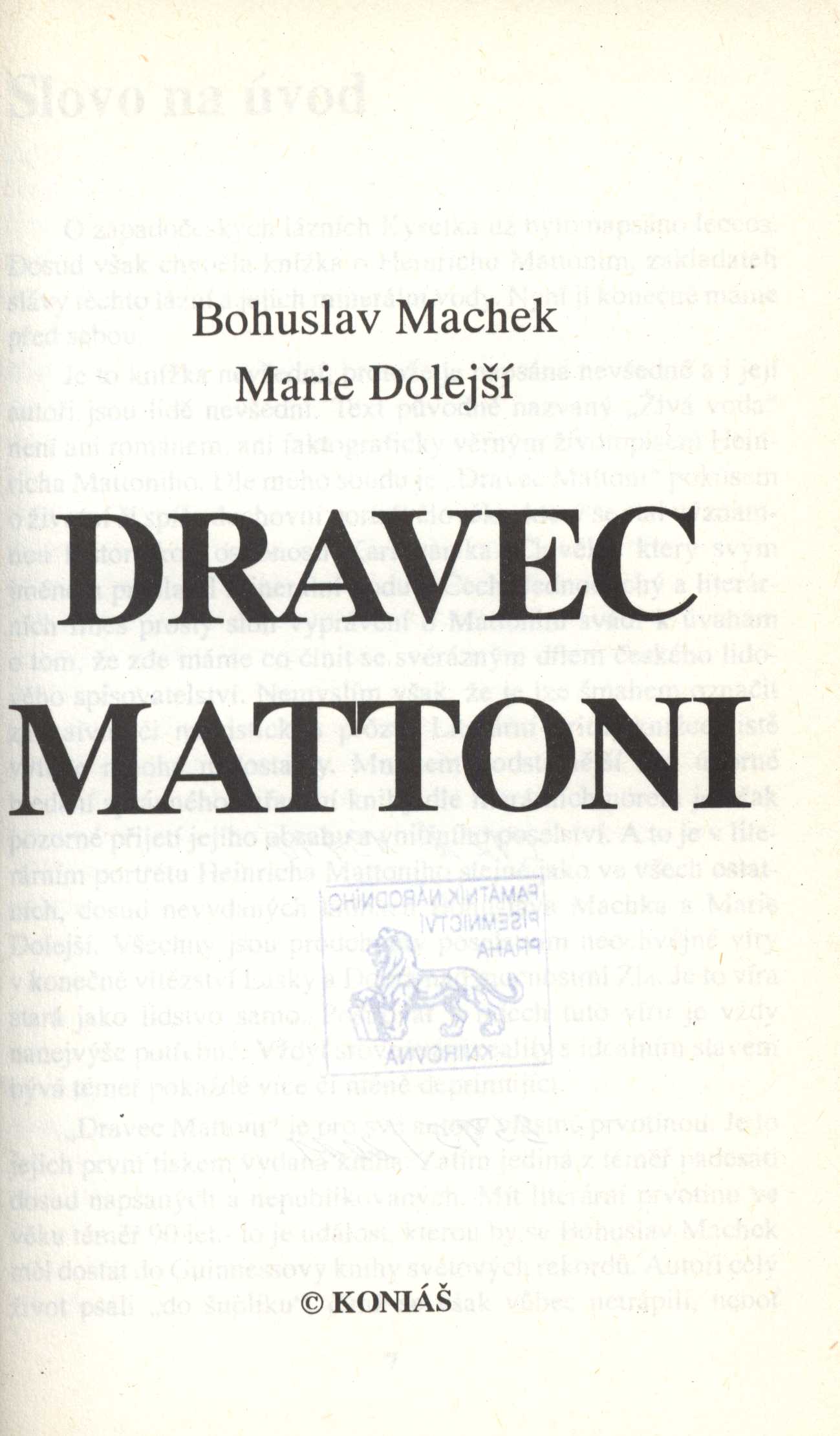 Názvové údaje Slavkovský les : Chráněná území ČR [sv.] XI. : Plzeňsko a Karlovarsko / [citace: Jäger, D., Melichar, V., Řepa, P., Wieser, S.] Osobní jméno Jäger, Dětmar, 1936- (Autor) Další autoři Melichar, Vladimír (Autor) Řepa, Pavel, 1943-2021 (Autor) Wieser, Stanislav, 1940- (Autor) Nakladatel Praha : Agentura ochrany přírody a krajiny ČR ; Brno : EkoCentrum Brno, 2004 Rozsah S. 498-548 : il., mp. ; 30 cm Předmětová hesla chráněná území - Česko Geografické heslo Plzeňský kraj (Česko) - přírodní poměry * Karlovarský kraj (Česko) - přírodní poměry Klíčová slova Slavkovský les * Plzeňsko * Karlovarsko * ochrana přírody Počet ex. 2, z toho volných 2 Druh dok. monografie Signatura NK /04 57, NK /04 57a Názvové údaje Dravec Mattoni / Bohuslav Machek, Marie Dolejší ; [na úpravě textů se podílela Dagmar Štětinová ; autor fotoreprodukcí Stanislav Wieser] Osobní jméno Machek, Bohuslav, nar. 1904 (Autor) Další autoři Dolejší, Marie (Autor) Wieser, Stanislav, 1940- (Fotograf) Štětinová, Dagmar, 1927-2017 (Jiná role) Nakladatel Plzeň : Koniáš, 1992 Výrobce Polygrafické závody) Rozsah 201 s. : il. ; 20 cm Osobní hesla Mattoni, Heinrich Kaspar, 1830-1910 - podnikatel, exportér karlovarské minerální vody Klíčová slova česká próza * čeští podnikatelé * Karlovy Vary * lázně * stol. 19.-20. * biografický příběh Počet ex. 1, z toho volných 1 Druh dok. monografie Signatura C12b 13490 Názvové údaje Kamenné kříže Čech a Moravy / [Úvod. texty] Valentin Urfus, Jaroslav Vít, Stanislav Wieser ; Katalog Jaroslav Vít ; [Ilustr.] Tomáš Karel, Zdeněk Procházka ; [Fotogr.] Stanislav Wieser ...[et al.] ; Přebal navrhl a graf. upr. Libor Batrla Další autoři Urfus, Valentin, 1928-2014 (Autor úvodu atd.) Vít, Jaroslav, 1932-2017 (Autor úvodu atd.) Wieser, Stanislav, 1940- (Autor úvodu atd.) Vít, Jaroslav, 1932-2017 (Autor úvodu atd.) Karel, Tomáš, 1965- (Ilustrátor) Procházka, Zdeněk, 1954 červen 7.- (Ilustrátor) Wieser, Stanislav, 1940- (Fotograf) Batrla, Libor, 1960- (Grafický technik) Nakladatel Praha : Argo, 1997 Rozsah 391 s., fot. : il. ; 22 cm Klíčová slova kulturní památky * kamenné kříže * Čechy * Morava * původ křížů * kulturní dědictví Počet ex. 1, z toho volných 1 Druh dok. monografie Signatura C12b 1837