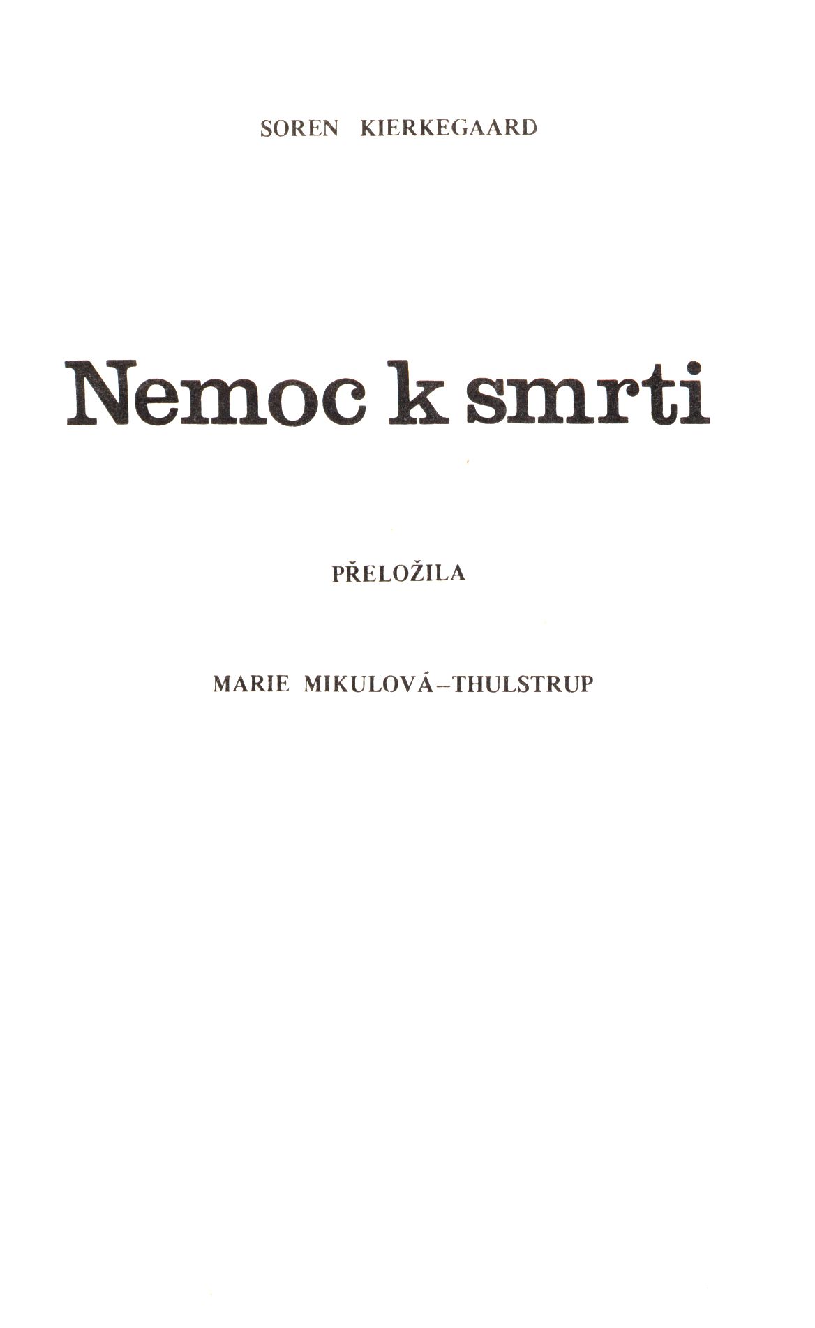 Názvové údaje Graham Greene, básník trapnosti : Literárně filozofické zkoumání díla jednoho z posledních existencialistů / Jan Čulík Osobní jméno Čulík, Jan, 1925-1995 (Autor) Nakladatel Brno : Nakladatelství Tomáše Janečka, 1994 Výrobce Signet) Rozsah 427 s. ; 21 cm Osobní hesla Greene, Graham, 1904-1991 - britský spisovatel Klíčová slova existencialismus * úzkost * trapnost Počet ex. 1, z toho volných 1 Druh dok. monografie Signatura M 218 g 68 Názvové údaje Šest pohledů do úzkosti : Filosofie jako eskamotáž a poesie / Tomáš Hájek ; obálku navrhl a knihu typograf. zprac. M. Pokorný Osobní jméno Hájek, Tomáš, 1964- (Autor) Další autoři Pokorný, M. (Grafický technik) Nakladatel Praha : Auctoritas, 1992 Rozsah 139 s. Klíčová slova filozofie * úzkost Počet ex. 1, z toho volných 1 Druh dok. monografie Signatura M 217 f 6 Názvové údaje The Relationship of Voice Stress, Anxiety, and Depression to Life Events and Personal Style Variables / Gary T. Long. Vol. 16, Number 2, 1988 Osobní jméno Long, Gary T. (Autor) Nakladatel Suva, Fiji : The Society for Personality Research, 1988 Rozsah P. 133-145 : tb. Klíčová slova odborná literatura * separát * studie * psychologie * sociální psychologie * psychologie osobnosti * stres * deprese * úzkost * r. 1988 Počet ex. 1, z toho volných 1 Druh dok. separáty Signatura C12c 2995 Názvové údaje Nemoc k smrti / Soren Kierkegaard ; přeložila Marie Mikulová-Thulstrup Osobní jméno Kierkegaard, Søren Aabye, 1813-1855 (Autor) Další autoři Thulstrup, Marie Mikulová, 1923-2013 (Překladatel) Korp. Opus bonum (organizace) (Nakladatel, vydavatel) Nakladatel Mnichov : Opus bonum, 1981 Rozsah 178 stran ; 17 cm Klíčová slova přirozená teologie * zoufalství * náboženské aspekty * úzkost * filozofické pojetí * smrt * křesťanské pojetí * křesťanská víra * Bůh a člověk * etika * křesťanská filozofie * pojednání Počet ex. 1, z toho volných 1 Druh dok. monografie Signatura JVladislav 1009 Názvové údaje Víra v moderním světě : 1989 - rok sv. Klementa Marie Hofbauera a sv. Jana Nepomuka Neumanna Další autoři Guardini, Romano, 1885-1968 (Autor úvodu atd.) Görres, Albert, 1918-1996 (Autor úvodu atd.) Moser, Tilmann, 1938- (Autor úvodu atd.) Torelló, Johannes B., 1920-2011 (Autor úvodu atd.) Schillebeeckx, Edward, 1914-2009 (Autor úvodu atd.) Rahner, Karl, 1904-1984 (Autor úvodu atd.) Virt, Günter, 1941- (Autor úvodu atd.) Mauriac, François, 1885-1970 (Autor úvodu atd.) Holan, Vladimír, 1905-1980 (Autor úvodu atd.) Nakladatel S.l. : s.n., [1989] Rozsah 34 s. Klíčová slova samizdatová literatura * sborník * víra * důvěra * nevěra * úzkost * neuróza * spiritualita * psychoanalýza Počet ex. 1, z toho volných 1 Druh dok. knihy Signatura C12d 2076