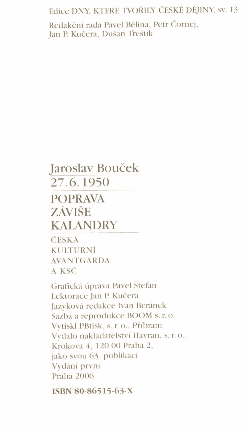 Názvové údaje Filosofické názory Jana Marka Marci : příspěvek k dějinám našeho myšlení v 17. stol. / Bedřich Baumann Osobní jméno Bauman, Bedřich, 1922- (Autor) Další autoři Nakladatelství Československé akademie věd (Nakladatel, vydavatel) Nakladatel Praha : Nakladatelství Československé akademie věd, 1957 Výrobce Pražské tiskárny Rozsah 88 stran, 2 nečíslované strany obrazových příloh ; 24,5 cm Osobní hesla Marek z Kronlandu, Marci Jan, 1595-1667 - lékař, filozof, fyzik Klíčová slova čeští filozofové * čeští lékaři * stol. 17. * filozofické názory * filozofické myšlení * česká filozofie * české myšlení * historie filozofie * filozofická rozprava Počet ex. 1, z toho volných 1 Druh dok. monografie Signatura Patočka 0295 Názvové údaje České myšlení / Miloslav Bednář ; [obálku navrhla Hana Blažejová] Osobní jméno Bednář, Miloslav, 1948- (Autor) Další autoři Blažejová, Hana, 1937- (Autor obálky) Nakladatel Praha : Filosofický ústav AV ČR : Filosofia, 1996 Rozsah 390 s. Klíčová slova česká literatura * česká otázka * české myšlení * filozofie * politika * čeští filozofové * Masaryk T. G. * Patočka J. * Heidegger M. * stol. 20. Počet ex. 1, z toho volných 1 Druh dok. monografie Signatura C12a 631 Názvové údaje Jan Amos Komenský : pět kapitol o slavném učiteli národů / napsal. B. Bittner Osobní jméno Bittner, Bartoš, 1861-1912 (Autor) Nakladatel Chicago : A. Geringer, [1892] Rozsah 30 stran : ilustrac Osobní hesla Komenský, Jan Amos, 1592-1670 - pedagog, českobratrský teolog Klíčová slova čeští pedagogové * čeští filozofové * stol. 17. * projevy * jubilejní publikace Počet ex. 2, z toho volných 2 Druh dok. monografie Signatura M 54 b 234, P 88 d 53 Názvové údaje Briefe an Josef Sommer und andere : 1812-1848 / Bernard Bolzano ; herausgegeben von Jan Berg Osobní jméno Bolzano, Bernard, 1781-1848 (Autor) Další autoři Berg, Jan, 1928-2015 (Editor) Nakladatel Stuttgart-Bad Cannstatt : Friedrich Frommann Verlag-Günther Holzboog, 2006 Rozsah 275 s. Osobní hesla Bolzano, Bernard, 1781-1848 - německy hovořící český matematik, filosof a logik, kněz, teolog Klíčová slova Česko * Německo * čeští filozofové * čeští teologové * vědci * přátelé * dopisy * korespondence Počet ex. 1, z toho volných 1 Druh dok. monografie Signatura C12c 3930 Názvové údaje Evropa a péče o duši : Patočkovo pojetí duchovních základů Evropy / Martin Cajthaml ; [obálku navrhl Zdeněk Ziegler] Osobní jméno Cajthaml, Martin, 1971- (Autor) Další autoři Ziegler, Zdeněk, 1932-2023 (Autor obálky) Nakladatel Praha : OIKOYMENH, 2010 Výrobce (Alfaprint) Rozsah 171 s. Osobní hesla Patočka, Jan, 1907-1977 - filozof, překladatel Klíčová slova česká filozofie * čeští filozofové * stol. 20. * fenomenologie * filozofie ducha * duše * evropanství * filozofické pojetí * dějiny filozofie * studie Počet ex. 1, z toho volných 1 Druh dok. monografie Signatura C12b 12819 Názvové údaje Strž Karla Čapka : průvodce expozicemi Památníku Karla Čapka / [autor Marta Dandová / grafická úprava a sazba Pavel Bosák] Osobní jméno Dandová, Marta, 1934- (Autor) Záhlaví-korpor. Památník Karla Čapka (muzeum) (Nakladatel, vydavatel) Další autoři Bosák, Pavel (Knižní grafik) (Sazeč) Nakladatel Stará Huť : Památník Karla Čapka, 2000 Výrobce Septim Tisk) Rozsah 59 s. : il., portréty, faksim. ; 15x21 cm Osobní hesla Čapek, Karel, 1890-1938 - spisovatel, dramatik, novinář * Scheinpflugová, Olga, 1902-1968 - herečka a spisovatelka * Peroutka, Ferdinand, 1895-1978 - novinář a redaktor, publicista, historik a filosof, beletrista Heslo korporace (zkrác. heslo korp.) : Památník Karla Čapka (muzeum) Geografické heslo Stará Huť (Příbram, Česko) Klíčová slova Strž u Staré Huti * čeští spisovatelé * čeští filozofové * české herečky * život a dílo * přátelství * expozice * průvodce expozicí Počet ex. 2, z toho volných 2 Druh dok. monografie Signatura C12a 4657, C12a 4657a