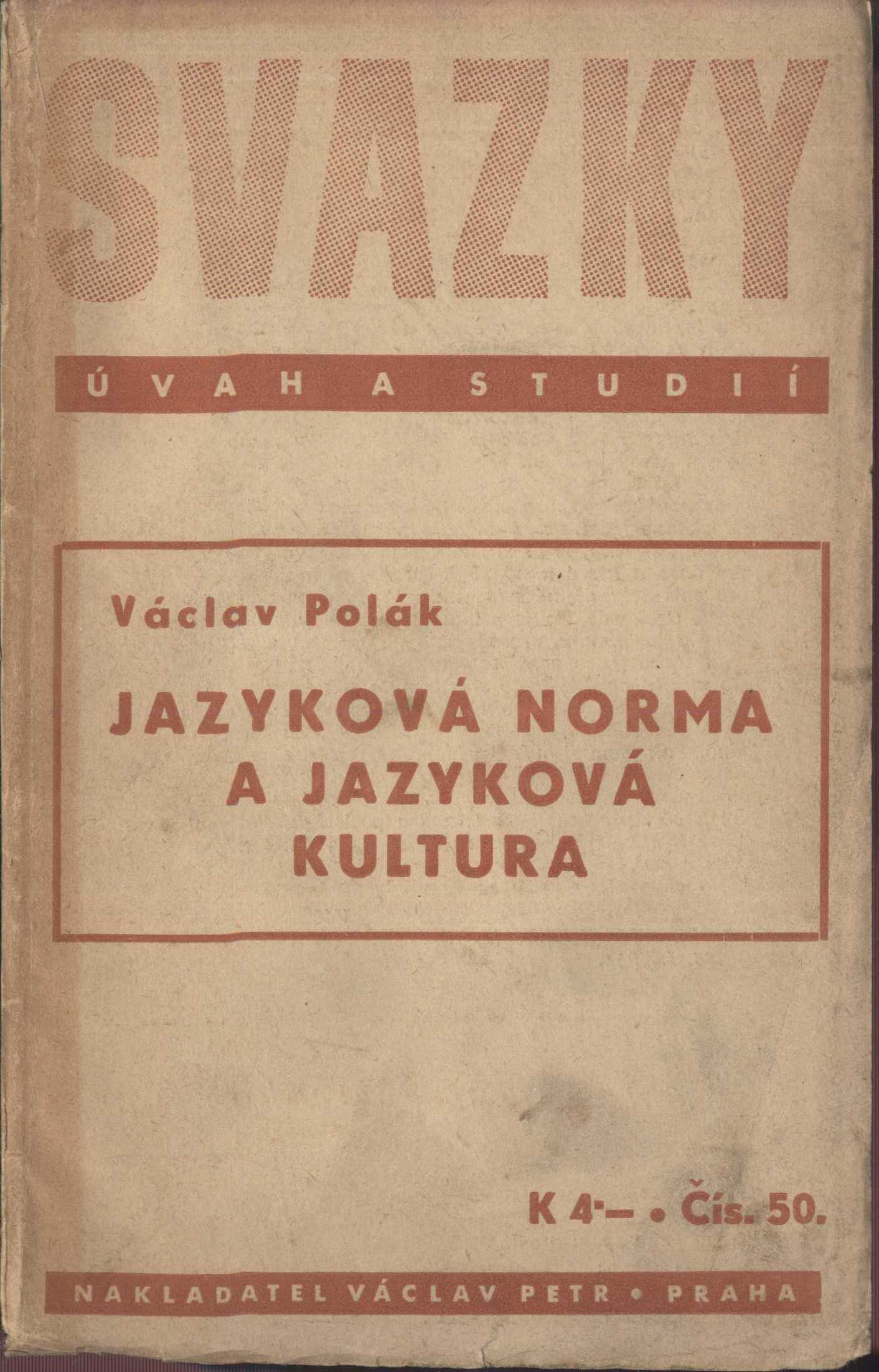 Názvové údaje Bohyně čeká : traktát o češtině / Pavel Eisner ; s obálkou a v úpravě Vojtěch Kubašty Osobní jméno Eisner, Pavel, 1889-1958 (Autor) Další autoři Kubašta, Vojtěch, 1914-1992 (Knižní grafik) (Autor obálky) Korp. Aventinum (nakladatelství) (Nakladatel, vydavatel) Koliš & spol. (tiskárna) (Tiskař) Nakladatel Praha : Aventinum, nakladatelství Dra Ot. Štorcha-Mariena, 1945 Výrobce V Praze : Koliš a spol. Rozsah 76 stran ; 24 cm Klíčová slova čeština * současná čeština * spisovná čeština * česká jazyková kultura * jazyková výchova * úvahy Počet ex. 1, z toho volných 1 Druh dok. monografie Signatura ZKSlabý 0716 Názvové údaje Chrám i tvrz : Kniha o češtině / Pavel Eisner ; Vazbu navrhl Pavel Štefan Osobní jméno Eisner, Pavel, 1889-1958 (Autor) Další autoři Štefan, Pavel, 1953- (Grafický technik) Nakladatel Praha : Lidové noviny, 1992 Výrobce Spektrum) Rozsah 666 s. ; 22 cm Klíčová slova čeština * slovní zásoba * česká jazyková kultura * česká literatura * próza * eseje Počet ex. 1, z toho volných 1 Druh dok. monografie Signatura M 215 c 17 Názvové údaje Jazyková norma a jazyková kultura / Václav Polák ; Osobní jméno Polák, Václav, 1912-1981 (Autor) Další autoři Václav Petr (nakladatelství) (Nakladatel, vydavatel) Osvěta (tiskárna) (Tiskař) Nakladatel Praha : Václav Petr, 1941 Výrobce Osvěta) Rozsah 29 s. Klíčová slova spisovná čeština * hovorová čeština * spisovný jazyk * česká jazyková kultura * jazyková kultura * fonetika * * * studie Počet ex. 1, z toho volných 1 Druh dok. monografie Signatura VHB 0989 Názvové údaje Obrana jazyka českého proti zlobivým jeho utrhovačům, též mnohým vlastencům v cvičení se v něm liknavým a nedbalým / sepsaná od Karla Hynka Tháma ; [k tisku ji upravil K. Kačer ; iniciálky, značka a desková kresba je od J. Votruby] Osobní jméno Thám, Karel Ignác, 1763-1816 (Autor) Další autoři Kačer, Karel, 1892-1937 (Editor) (Autor úvodu atd.) Votruba, Jaroslav, 1889-1971 (Ilustrátor) Brož, Alois (Nakladatel, vydavatel) Beneš, František (Nakladatel, vydavatel) Korp. Pražská akciová tiskárna (Tiskař) Nakladatel V Praze - Střešovicích : svým nákladem vydali Alois Brož a František Beneš, 1918 Výrobce (v Pražské akciové tiskárně) Rozsah 45 s. : il. ; 17 cm Klíčová slova česká literatura * próza * česká jazyková kultura * stol. 18., 2. pol. * číslovaný výtisk * soukromý tisk Počet ex. 2, z toho volných 2 Druh dok. monografie Signatura Topič 0514, Topič 0515 Názvové údaje Die ältesten Denkmäler der böhmischen Sprache : Libuša's Gericht, Evangelium Johannis, der Leitmeritzer Stiftunsbrief, Glossen der Mater verborum / Kritisch beleuchtet von Paul Josepf Šafařik, ... und Franz Palacky Další autoři Jan Evangelista, svatý, činný 1. století (Domnělý (pochybný) autor) Palacký, František, 1798-1876 (Sestavovatel, kompilátor) Šafařík, Pavel Josef, 1795-1861 (Sestavovatel, kompilátor) Korp. Kronberger a Řivnáč (knihkupectví a nakladatelství) (Nakladatel, vydavatel) Nakladatel Prag : in Commission bei Kronberger und Řiwnač, 1840 Rozsah 233 stran Klíčová slova bohemika * bohemistika * česká jazyková kultura * jazykověda Počet ex. 3, z toho volných 3 Druh dok. monografie Signatura L XVII a 24, L XVII a 32, L XVIII a 24 Názvové údaje Bohyně čeká : traktát o češtině / Pavel Eisner ; s obálkou a v úpravě Vojtěch Kubašty Osobní jméno Eisner, Pavel, 1889-1958 (Autor) Další autoři Kubašta, Vojtěch, 1914-1992 (Knižní grafik) (Autor obálky) Korp. Aventinum (nakladatelství) (Nakladatel, vydavatel) Koliš & spol. (tiskárna) (Tiskař) Nakladatel Praha : Aventinum, nakladatelství Dra Ot. Štorcha-Mariena, 1945 Výrobce V Praze : Koliš a spol. Rozsah 76 stran ; 24 cm Klíčová slova čeština * současná čeština * spisovná čeština * česká jazyková kultura * jazyková výchova * úvahy Počet ex. 1, z toho volných 1 Druh dok. monografie Signatura BVolkova 1872 Názvové údaje Česko-anglický slovník : Czech-English Dictionary, Díl II. = Part II. / sestavili Dr. H. T. Cheshire, Dr. L. Klozner, Ing. A. Šrámek Záhlaví-korpor. J. Otto (nakladatelství) (Nakladatel, vydavatel) Další autoři Cheshire, Harold Theodore, 1890- (Sestavovatel, kompilátor) Klozner, Ladislav, 1880- (Sestavovatel, kompilátor) Šrámek, Antonín, 1887- (Sestavovatel, kompilátor) Korp. Česká grafická Unie (tiskárna a nakladatelství) (Tiskař) Nakladatel V Praze : J. Otto, 1935 Výrobce V Praze : Česká grafická unie Rozsah 1022 stran ; 24 cm Klíčová slova slovníky * anglický jazyk * český jazyk * překlady * lexikologie * stol. 20., léta 30. * meziválečné období * česká jazyková kultura Počet ex. 1, z toho volných 1 Druh dok. monografie Signatura AHO 0605 Názvové údaje Naše řeč : listy pro vzdělávání a tříbení jazyka českého Další autoři Ertl, Václav, 1875-1929 (Editor) Zubatý, Josef, 1855-1931 (Editor) Vlček, Jaroslav, 1860-1930 (Editor) Smetánka, Emil, 1875-1949 (Editor) Korp. Česká akademie věd a umění (Nakladatel, vydavatel) Šolc a Šimáček (nakladatelství) (Nakladatel, vydavatel) Roč., číslo ročník 11., číslo 1-10, 1927 Nakladatel V Praze : Nákladem Šolce a Šimáčka, společnosti s r. o., 1927 Rozsah 236, 43 stran ; 22 cm Klíčová slova jazykověda * český jazyk * lingvistický časopis * česká literatura * jazyková kultura * česká jazyková kultura Nadřízená jednotka Naše řeč Počet ex. 2, z toho volných 2 Druh dok. PERIODIKA - Svázaný ročník periodika Signatura Aa 01505, VHB 1588/6 Názvové údaje Naše řeč : listy pro vzdělávání a tříbení jazyka českého Další autoři Ertl, Václav, 1875-1929 (Editor) (Šéfredaktor, odpovědný redaktor) Zubatý, Josef, 1855-1931 (Editor) Vlček, Jaroslav, 1860-1930 (Editor) Smetánka, Emil, 1875-1949 (E