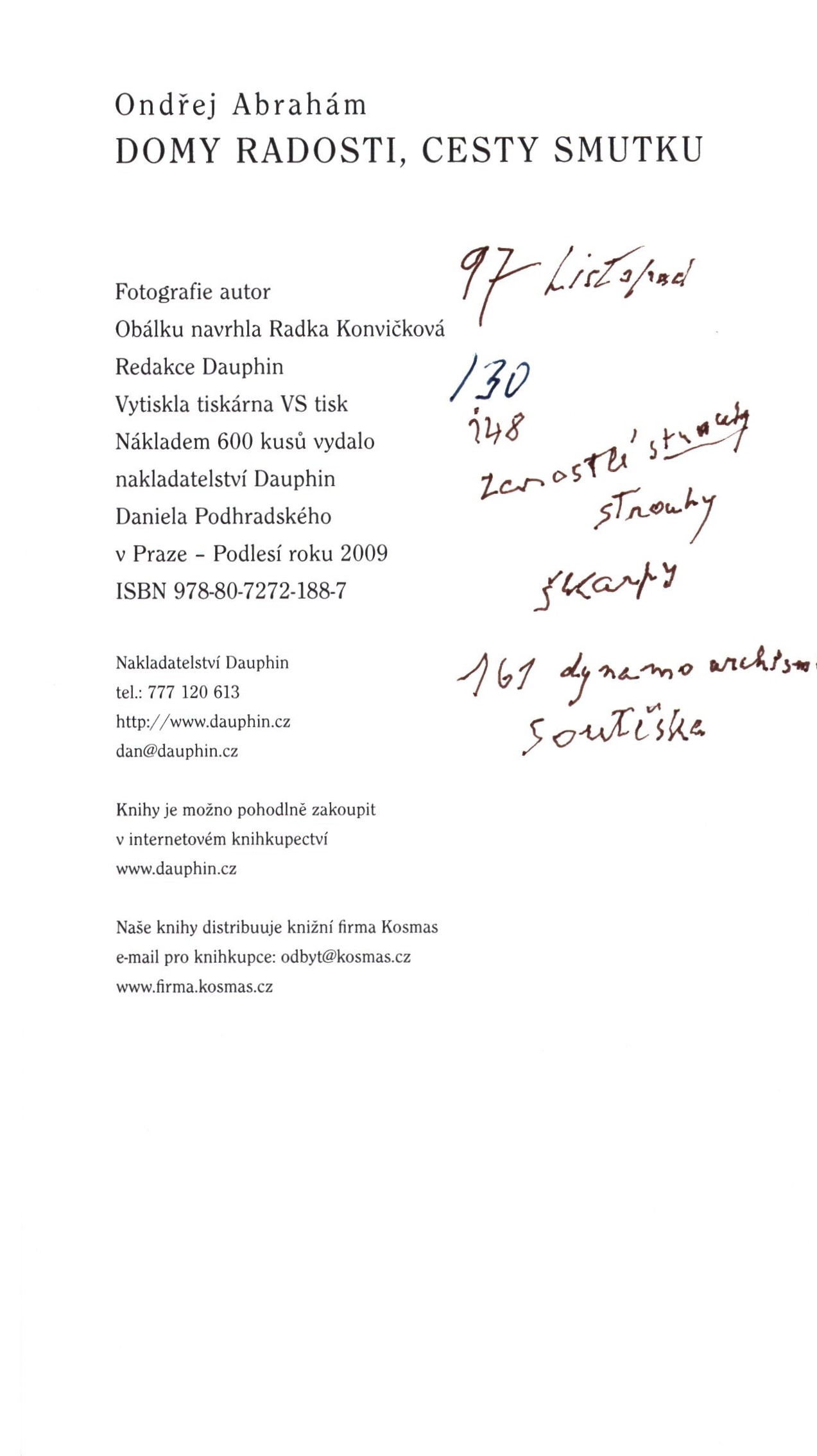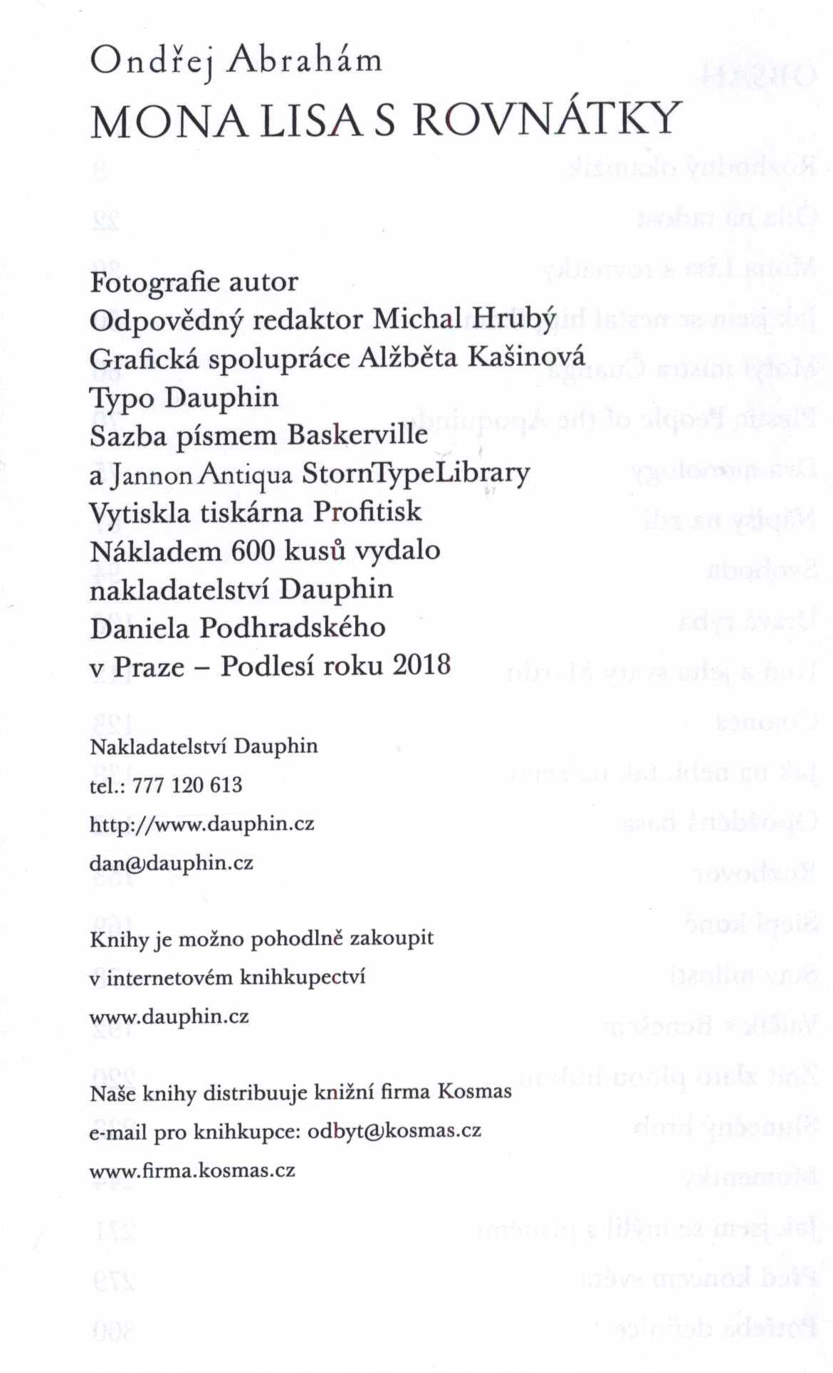 Názvové údaje Mona Lisa s rovnátky / Ondřej Abrahám ; fotografie autor ; grafická spolupráce Alžběta Kašinová Osobní jméno Abrahám, Ondřej, 1954-2025 (Autor) Další autoři Kašinová, Alžběta (Knižní grafik) Korp. Nakladatelství Dauphin (Nakladatel, vydavatel) Profitisk (tiskárna) (Tiskař) Nakladatel V Praze - Podlesí : Dauphin, 2018 Výrobce Profitisk Rozsah 308 stran : ilustrace ; 20 cm Klíčová slova česká próza * české povídky Počet ex. 1, z toho volných 1 Druh dok. monografie Signatura C12b 18621 Názvové údaje Údiv / Jan Adam ; [předmluvu napsal Oldřich Rafaj ; přebal a vazbu navrhl Pavel Sivko ; graficky upravil Václav Kučera] Osobní jméno Adam, Jan, 1946- (Autor) (Dedikátor) Další autoři Rafaj, Oldřich, 1934-2010 (Autor úvodu atd.) Sivko, Pavel, 1948- (Autor obálky) Kučera, Václav, 1944- (Knižní grafik) Fuks, Ladislav, 1923-1994 (Dedikant) Korp. Mladá fronta (nakladatelství) (Nakladatel, vydavatel) Nakladatel Praha : Mladá fronta, 1977 Výrobce (Mír 05) Rozsah 131, [1] s. ; 8° Klíčová slova česká próza * novely Počet ex. 2, z toho volných 2 Druh dok. monografie Signatura Fuks 0261, P I 1376 Názvové údaje Podružný případ / Martin Adam Osobní jméno Adam, Martin, 1915-2003 (Autor) Další autoři Východočeské nakladatelství (Nakladatel, vydavatel) Nakladatel Havlíčkův Brod : Východočeské nakladatelství, 1964 Rozsah 305 stran Klíčová slova česká próza * špionážní román * Česko * stol. 20., léta 60. Počet ex. 1, z toho volných 1 Druh dok. monografie Signatura P 44 F 43 Názvové údaje Dvě babičky : novella od Frant. Adamce Osobní jméno Adamec, František, 1846-1868 (Autor) Další autoři Alois R. Lauermann (nakladatelství, tiskárna, knihtiskárna, komisionářství) (Nakladatel, vydavatel) Nakladatel Praha : Alois R. Lauermann, 1882 Rozsah 152 stran Klíčová slova česká próza * povídky Počet ex. 1, z toho volných 1 Druh dok. monografie Signatura P 33 E 50 Názvové údaje Kouzelná píšťalka / Josef Adamec Osobní jméno Adamec, Josef, 1914-1976 (Autor) Nakladatel Brno : Blok, 1976 Rozsah 412 stran Klíčová slova česká próza Počet ex. 1, z toho volných 1 Druh dok. monografie Signatura P I 652 Názvové údaje Kapitola o mužském srdci : veselá deklamace pro dámu / Karel Adamec ; nově upravil Jos. Šváb Osobní jméno Adamec, Karel, 1838-1865 (Autor) Další autoři Šváb-Malostranský, Josef, 1860-1932 (Editor) Korp. Josef Šváb (firma) (Nakladatel, vydavatel) Nakladatel Praha : Jos. Šváb, [kolem r. 1900] Rozsah 1 sv. Klíčová slova česká próza Počet ex. 1, z toho volných 1 Druh dok. monografie Signatura P 111 B 1/8 přív.