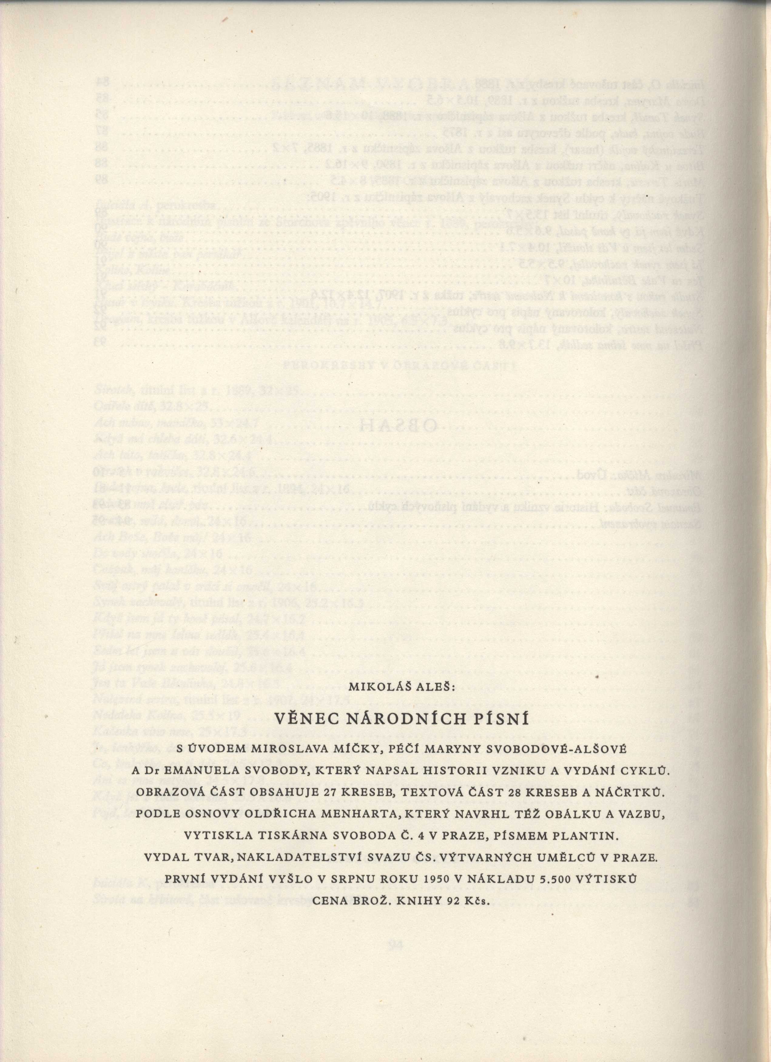 Názvové údaje Kresby k "Sirotku" / Mikuláš Aleš ; rozborem doprovází František Žákavec ; Josef Váchal Osobní jméno Aleš, Mikoláš, 1852-1913 (Ilustrátor) Další autoři Žákavec, František, 1878-1937 (Autor komentáře) Váchal, Josef, 1884-1969 Korp. B. Kočí (nakladatelství a knihkupectví) (Nakladatel, vydavatel) Lidová knihtiskárna J. Skalák a spol. (Tiskař) Nakladatel Praha : B. Kočí, 1917 Výrobce (Tiskem Lidové knihtiskárny J. Skalák a spol.) Rozsah 19 s. : il. Klíčová slova česká literatura * české písně * národní písně * lidové písně * česká kresba * čeští malíři * Aleš M. * stol. 19. Počet ex. 1, z toho volných 1 Druh dok. monografie Signatura Váchal 217 Názvové údaje Kresby k Sirotku / Mikuláš Aleš ; přístupným rozborem doprovází František Žákavec Osobní jméno Aleš, Mikoláš, 1852-1913 (Ilustrátor) Další autoři Žákavec, František, 1878-1937 (Autor úvodu atd.) Korp. B. Kočí (nakladatelství a knihkupectví) (Nakladatel, vydavatel) Lidová knihtiskárna J. Skalák a spol. (Tiskař) Nakladatel V Praze : Vede a vydává nakladatel B. Kočí, 1917 Výrobce (Tiskem Lidové knihtiskárny J. Skalák a spol.) Rozsah 19 s., [14] l. obr. příl. : il. ; 16 cm Klíčová slova česká literatura * české písně * národní písně * lidové písně * česká kresba * čeští malíři * Aleš M. * stol. 19. * r. 1917 Počet ex. 2, z toho volných 2 Druh dok. monografie Signatura Holan 1631, AVrbova 377 Názvové údaje Písně a říkadla Mikoláše Alše / Mikoláš Aleš ; úvodní studie Zdeňka Pilaře Osobní jméno Aleš, Mikoláš, 1852-1913 (Autor) (Ilustrátor) Další autoři Pilař, Zdeněk, 1921-2002 (Autor úvodu atd.) Korp. Orbis (nakladatelství a vydavatelství) (Nakladatel, vydavatel) Orbis (tiskárna) (Tiskař) Nakladatel Praha : Orbis, 1952 Výrobce Sadská : Orbis 4 Rozsah 10 stran : 20 nečíslovaných světlotiskových reprodukcí Klíčová slova česká kresba * české písně * lidové písně * říkadla Počet ex. 2, z toho volných 2 Druh dok. monografie Signatura K L I 53, Knytl 1704 Názvové údaje Upomínka na Národopisnou výstavu českoslovanskou v Praze 1895 : Alešovy illustrace Národních písní Osobní jméno Aleš, Mikoláš, 1852-1913 (Ilustrátor) Další autoři Emanuel Stivín (v Praze) (Tiskař) Nakladatel V Praze : J. Jaroš, [1895] Výrobce Em. Stivín Rozsah 28 nečíslovaných stran : ilustrace ; 16 cm Klíčová slova česká grafika * české písně * národní písně * stol. 19. * jubilejní publikace Počet ex. 2, z toho volných 2 Druh dok. monografie Signatura P 75 f 70, P 74 e 109 Názvové údaje Věnec národních písní / Mikoláš Aleš ; úvod Miroslav Míčko ; historie vzniku a vydání Emanuel Svoboda ; úprava O. Menhart Osobní jméno Aleš, Mikoláš, 1852-1913 (Autor) Další autoři Míčko, Miroslav, (Autor úvodu atd.) 1912-1970 Svobodová-Alšová, Maryna, 1882-1973 (Autor úvodu atd.) Svoboda, Emanuel, 1883-1967 (Sestavovatel, kompilátor) Korp. Orbis (nakladatelství a vydavatelství) (Nakladatel, vydavatel) Orbis (tiskárna) (Tiskař) Nakladatel Praha : Orbis, 1951 Výrobce Orbis 3 Rozsah 60 stran : ilustrace Osobní hesla Aleš, Mikoláš, 1852-1913 - malíř, kreslíř a ilustrátor Klíčová slova čeští malíři * české písně * lidové písně * folklor * kresby * obrazová publikace Počet ex. 6, z toho volných 6 Druh dok. monografie Signatura Knytl 2241, P XVIII c 29, P 79 a 11, K J I 67, Václavek 2549, Kratochvíl 344 Názvové údaje Věnec národních písní / Mikoláš Aleš ; [s úvodem Miroslava Míčky ; péčí Maryny Svobodové-Alšové a Dr. Emanuela Svobody, který napsal historii vzniku a vydání cyklů ; podle osnovy Oldřicha Menharta, který navrhl též obálku a vazbu] Osobní jméno Aleš, Mikoláš, 1852-1913 (Autor) (Ilustrátor) Další autoři Míčko, Miroslav, 1912-1970 (Autor úvodu atd.) Svobodová-Alšová, Maryna, 1882-1973 (Jiná role) (Dedikátor) Svoboda, Emanuel, 1883-1967 (Autor úvodu atd.) (Dedikátor) Menhart, Oldřich, 1897-1962 (Typograf) (Autor obálky) (Výtvarník vazby) Karásek ze Lvovic, Jiří, 1871-1951 (Dedikant) Korp. Tvar, nakladatelství Svazu čs. výtvarných umělců (Praha, Česko) (Nakladatel, vydavatel) Svoboda (tiskárna) (Tiskař) Nakladatel V Praze : Tvar : Výrobce (Svoboda) Rozsah 94 s. : il. Klíčová slova česká literatura * česká poezie * české písně * národní písně * folklor * obrazová publikace Počet ex. 1, z toho volných 1 Druh dok. monografie Signatura KaG LIX A 3 Názvové údaje Zamazany inkaustem rękopis : czyli śląsko-czeska sprośna śpiewka / Jacek Baluch Osobní jméno Baluch, Jacek, 1940-2019 (Autor) Nakladatel Kraków : Scriptum, 2013 Rozsah 70 stran : faksimile ; 21 cm Osobní hesla z Kozlí, Mikuláš, 1390-1421. Diariusz. Żałoba na pannę Klíčová slova Polsko * středověké rukopisy * milostné písně * české písně * textová analýza Počet ex. 1, z toho volných 1 Druh dok. monografie Signatura BVolkova 0987 Názvové údaje Anthologie z národních písní československých : kterou ze sbírek K. J. Erbena, F. Sušila, J. Kollára a J. V. Kamarýta učinil / František Bartoš Osobní jméno Bartoš, František, 1837-1906 Další autoři Fr. A. Urbánek (nakladatelství) Nakladatel Praha : Fr. A. Urbánek, 1874 Rozsah vii, 176 stran ; 23 cm Klíčová slova Československo * lidové písně * národní písně * české písně * moravské národní písně * folklor * antologie Počet ex. 4, z toho volných 4 Druh dok. monografie Signatura J X II 49, J X II 49, H Z V 9, H Z V 9 Názvové údaje Jesličky : staré nové písničky / Fridrich Bridelius ; [edičně připravili, původní studie a ediční a transkripční poznámku napsali, vysvětlivky a diferenční slovník sestavili Pavel Kosek, Tomáš Slavický a Marie Škarpová ; obálka a typografická spolupráce Boris Mysliveček ; saz