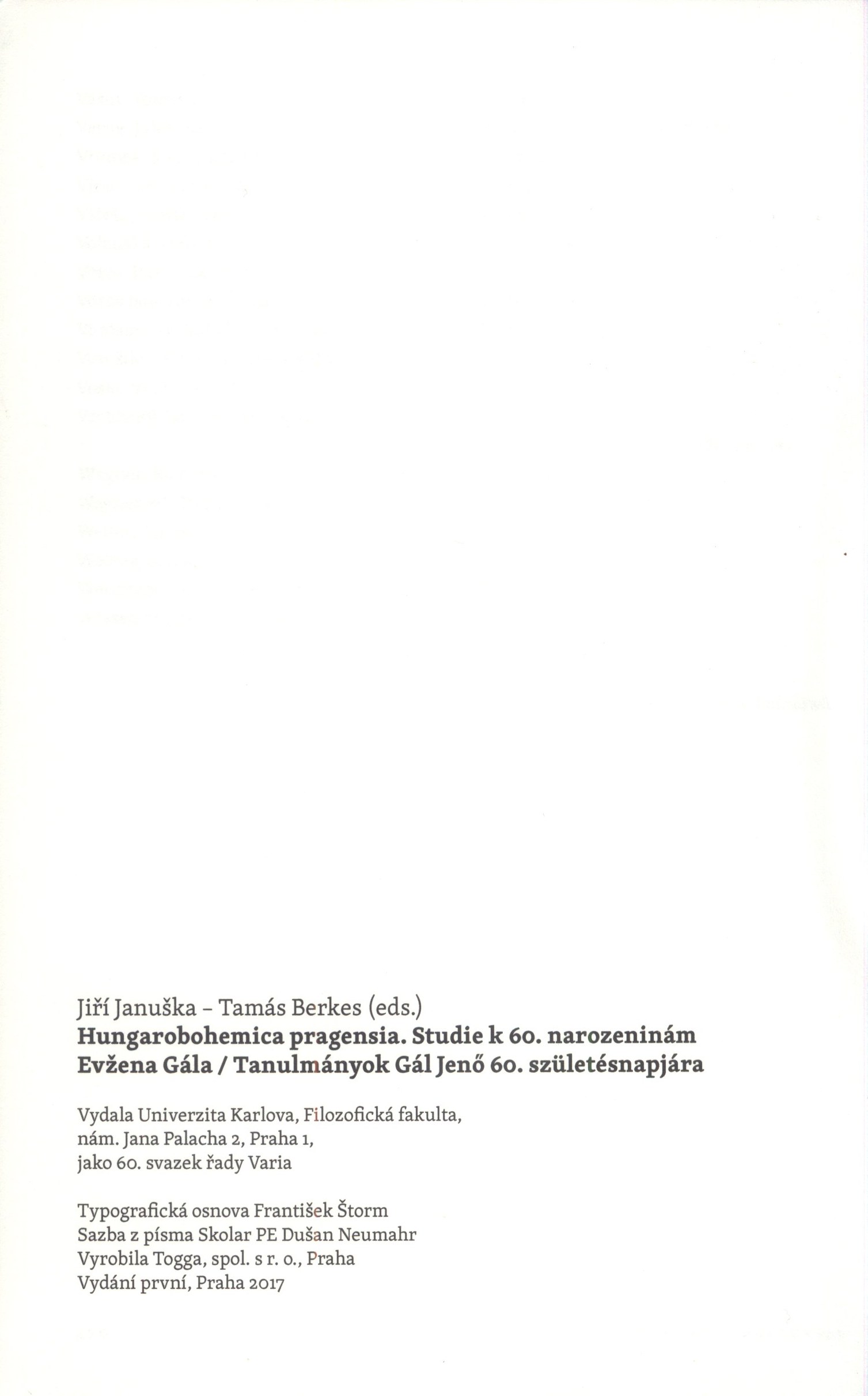 Názvové údaje Česko-maďarské kulturní vztahy od osvícenství do roku 1848 / Richard Pražák ; Obálka Luboš Červinka Osobní jméno Pražák, Richard, 1931-2010 (Autor) Další autoři Červinka, Lubomír, 1955- (Grafický technik) Nakladatel Brno : Masarykova univerzita, [1994] Výrobce Knihtiskárna Strojil) Rozsah 143 s. ; 24 cm Klíčová slova Čechy * Maďarsko * česko-maďarské vztahy * dějiny * politický vývoj * osvícenství * národní obrození Počet ex. 1, z toho volných 1 Druh dok. monografie Signatura M 220 b 59 Názvové údaje Hungarobohemica Pragensia : studie k 60. narozeninám Evžena Gála = tanulmányok Gál Jenő 60. születésnapjára / Jiří Januška - Tamás Berkes (eds.) ; spolupracovali: Andrea Balázs, Vojtěch Bažant, Magdalena Garbacik-Balakowicz a Jan Geier Další autoři Gál, Evžen, 1957-2024 (Poctěná osoba) Januška, Jiří, 1982- (Editor) (Autor úvodu atd.) Berkes, Tamás, 1954- (Editor) (Autor úvodu atd.) Balázs, Andrea, 1971- (Spolupracovník) Bažant, Vojtěch, 1987- (Spolupracovník) Garbacik, Magdalena (Spolupracovník) Geier, Jan (Spolupracovník) Štorm, František, 1966- (Typograf) Neumahr, Dušan, 1967- (Sazeč) Korp. Univerzita Karlova. Filozofická fakulta (Nakladatel, vydavatel) Togga (nakladatelství, tiskárna) (Tiskař) Nakladatel Praha : Filozofická fakulta Univerzity Karlovy, 2017 Výrobce Praha : Togga, spol. s r.o. Rozsah 270 stran : grafy, tabulky, ilustrace ; 21 cm Osobní hesla Gál, Evžen, 1957-2024 - hungarista * Rákos, Petr, 1925-2002 - hungarista, překladatel Předmětová hesla hungaristé - Česko - 20.-21. století * hungaristika - Česko * hungarianists - Czechia - 20th-21st centuries * Hungarian studies - Czechia Geografické heslo Maďarsko - kulturní vztahy - 20.-21. století * Česko - kulturní vztahy - 20.-21. století * Hungary - cultural relations - 20th-21st centuries * Czechia - cultural relations - 20th-21st centuries Klíčová slova sborník příspěvků * hungaristika * Maďarsko * Česko * Praha * česko-maďarské vztahy * kulturní styky * literárněhistorická studie * maďarština * Univerzita Karlova * 60. narozeniny * Gál E. * hungaristé * jubilejní sborník * kolektivní monografie Počet ex. 1, z toho volných 1 Druh dok. monografie Signatura C12b 17878 Názvové údaje Les Magyars et l'Entente : recueil de publications éditées par Le Rapport Quotidien, journal officiel de la République t.-s. Další autoři Politika (tiskárna, nakladatelství) (Tiskař) Nakladatel Prague : Imprimerie Politika, 1919 Rozsah 35 stran Klíčová slova česká literatura * česká politika * česko-maďarské vztahy * Maďarsko Počet ex. 1, z toho volných 1 Druh dok. monografie Signatura VHB 3627
