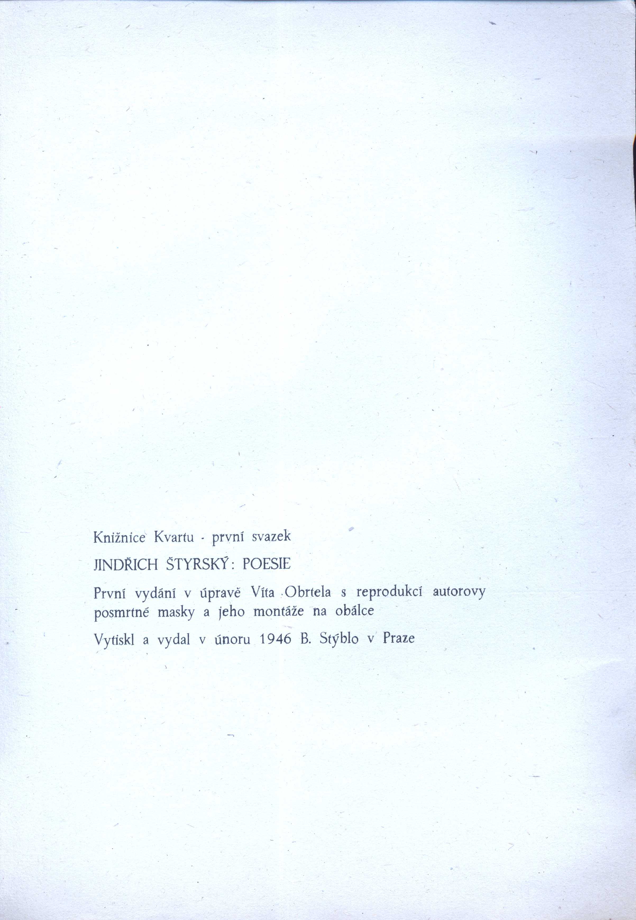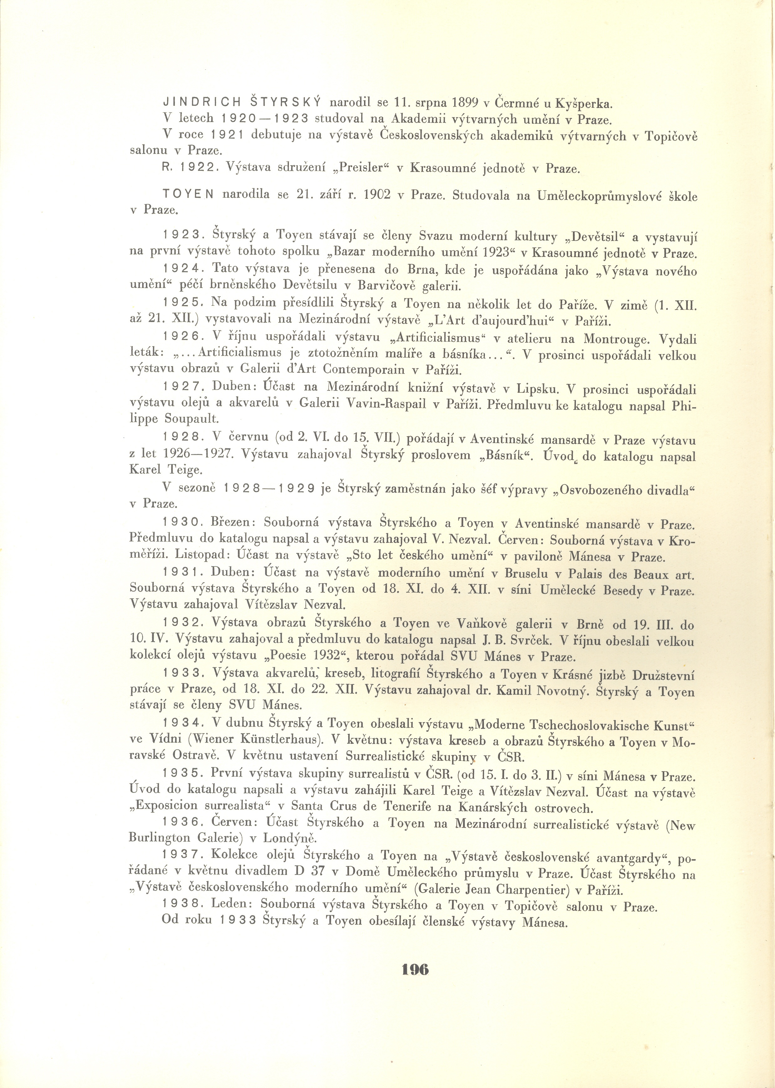 Názvové údaje Jindřich Štyrský / Lenka Bydžovská & Karel Srp ; [soupis výstav, bibliografie, spolupráce na životopisném přehledu Polana Bregantová ; jmenný rejstřík ... Lev Pavluch ; grafická úprava a sazba Luboš Drtina a Miroslav Kloss] Osobní jméno Bydžovská, Lenka, 1956- (Autor) Další autoři Srp, Karel, 1958- (Autor) Štyrský, Jindřich, 1899-1942 (Umělec) (Ilustrátor) Bregantová, Polana, 1954- (Autor úvodu atd.) (Jiná role) Drtina, Luboš, 1963- (Knižní grafik) Kloss, Miroslav (Knižní grafik) Pavluch, Lev, 1957- (Autor úvodu atd.) Korp. Argo (nakladatelství) (Nakladatel, vydavatel) PBtisk (tiskárna) (Tiskař) Nakladatel Praha : Argo, 2007 Výrobce PB-tisk) Rozsah 587, [1] s. : il. (převážně barev.), faksim., portréty ; 32, 8 cm Osobní hesla Štyrský, Jindřich, 1899-1942 - malíř, ilustrátor, fotograf, redaktor, prozaik Klíčová slova české výtvarné umění * české malířství * fotografie * čeští malíři * surrealismus * Česko * stol. 20. * biografie * uměleckohistorické studie Počet ex. 2, z toho volných 2 Druh dok. monografie Signatura C12d 1334, NK /07 114 Názvové údaje Tiše / František Halas ; upravil a vyzdobil dvěma kresbami Jindř. Štyrský Osobní jméno Halas, František, 1901-1949 (Autor) Další autoři Štyrský, Jindřich, 1899-1942 (Ilustrátor) Halas, František, 1901-1949 (Autor podpisu) Štyrský, Jindřich, 1899-1942 (Autor podpisu) Korp. Melantrich (nakladatelství) (Nakladatel, vydavatel) (Tiskař) Nakladatel V Praze : Melantrich, 1932 Rozsah 20 stran (nečíslováno) : ilustrace ; 19,5 cm Osobní hesla Halas, František, 1901-1949 - básník, esejista, redaktor, překladatel * Štyrský, Jindřich, 1899-1942 - malíř, ilustrátor, fotograf, redaktor, prozaik Klíčová slova česká literatura * poezie * verše * stol. 20., léta 30. Počet ex. 5, z toho volných 5 Druh dok. monografie Signatura MUK 915, M 174 g 19, P 65 b 60, P 134 h 16, P 70 d 23 Názvové údaje Posedlost / Vítězslav Nezval ; typogr. upravil J. Štyrský Osobní jméno Nezval, Vítězslav, 1900-1958 (Autor) Další autoři Štyrský, Jindřich, 1899-1942 (Grafický technik) Korp. Nakladatelství B. Janda - Sfinx (Nakladatel, vydavatel) Müller a spol. (tiskárna) (Tiskař) Nakladatel Praha : Sfinx, B. Janda, 1930 Výrobce Müller a spol.) Rozsah 246 s. Osobní hesla Štyrský, Jindřich, 1899-1942 - malíř, ilustrátor, fotograf, redaktor, prozaik Klíčová slova česká literatura * próza * román * r. 1930 Počet ex. 7, z toho volných 7 Druh dok. monografie Signatura MUK 733, LK P 17 c 25, LK P 49 e 11, LK P 70 I 38, LK Nezval 1769, LK P 15 f 44, LK Nezval 920 Názvové údaje Štyrský a Toyen : 1921-945 : Moravská galerie Brno, Listopad - prosinec 1966 : Svaz československých výtvarných umělců, Praha, Mánes, leden 1967 / [příprava a katalog výstavy Věra Linhartová a František Šmejkal ; úvodní text katalogu František Šmejkal ; fotografie Jiří Hampl a Karel Kuklík ; grafická úprava katalogu Milan Hegar] Záhlaví-akce Štyrský a Toyen, díla z let 1921-1945 (1966-1967 : Brno - Praha, Česko) Další autoři Linhartová, Věra, 1938- (Sestavovatel, kompilátor) (Autor) Šmejkal, František, 1937-1988 (Sestavovatel, kompilátor) (Autor) (Autor úvodu atd.) Hampl, Jiří, 1929-2009 (Fotograf) Kuklík, Karel, 1937-2019 (Fotograf) Hegar, Milan, 1921-1987 (Knižní grafik) Korp. Moravská galerie (Brno, Česko) (Nakladatel, vydavatel) Svaz československých výtvarných umělců (profesní organizace) (Nakladatel, vydavatel) Nakladatel V Brně : Moravská galerie ; V Praze : SČSVU, 1966 Výrobce Grafia) Rozsah 74 s. : obr. příl. Osobní hesla Štyrský, Jindřich, 1899-1942 - malíř, ilustrátor, fotograf, redaktor, prozaik * Toyen, 1902-1980 - malířka, grafička, ilustrátorka Klíčová slova čeští malíři * české malířství * meziválečná avantgarda * česká avantgarda * stol. 20., léta 20.-40. * výstavy * katalogy výstav * studie Počet ex. 1, z toho volných 1 Druh dok. monografie Signatura C12b 11339 Názvové údaje Poesie / Jindřich Štyrský ; doslovy Karel Teige, Jiří Brabec ; ilustr. ke knize z aut. výtv. díla vybrala Alena Nádvorníková ; typogr. Oldřich Hlavsa Osobní jméno Štyrský, Jindřich, 1899-1942 (Autor) Další autoři Teige, Karel, 1900-1951 (Autor úvodu atd.) Brabec, Jiří, 1929- (Autor úvodu atd.) Nádvorníková, Alena, 1942-2023 (Editor) Štyrský, Jindřich, 1899-1942 (Ilustrátor) Hlavsa, Oldřich, 1909-1995 (Grafický technik) Nakladatel Praha : Československý spisovatel, 1992 Rozsah 62 s. : il Osobní hesla Štyrský, Jindřich, 1899-1942 - malíř, ilustrátor, fotograf, redaktor, prozaik Klíčová slova česká literatura * poezie Počet ex. 2, z toho volných 2 Druh dok. monografie Signatura AČS 00722, AČS 00722a Názvové údaje Poesie / Jindřich Štyrský ; [v úpravě Víta Obrtela] Osobní jméno Štyrský, Jindřich, 1899-1942 (Autor) Další autoři Obrtel, Vít, 1901-1988 (Knižní grafik) Korp. Bedřich Stýblo (firma) (Nakladatel, vydavatel) Nakladatel Praha : B. Stýblo, 1946 Rozsah 49 s. Osobní hesla Štyrský, Jindřich, 1899-1942 - malíř, ilustrátor, fotograf, redaktor, prozaik Klíčová slova česká literatura * poezie * básně Počet ex. 3, z toho volných 3 Druh dok. monografie Signatura MUK 713, P 79 A 21, C12d 1795 Názvové údaje Sny / Jindřich Štyrský ; k vyd. připr. a doslov napsal František Šmejkal ; obálku, vazbu a graf. úpr. navrhl Milan Hegar Osobní jméno Štyrský, Jindřich, 1899-1942 (Autor) (Ilustrátor) Další autoři Šmejkal, František, 1937-1988 (Editor) Šmejkal, František, 1937-1988 (Autor úvodu atd.) Hegar, Milan, 1921-1987 (Grafický technik) Nakladatel Praha : Odeon, 1970 Rozsah 127 s. : il Osobní hesla Štyrský, Jindřich, 1899-1942 - malíř, ilustrátor, fotograf, redaktor, prozaik Klíčová slova české malířství * Štyrský J. * kresby snů * zázna