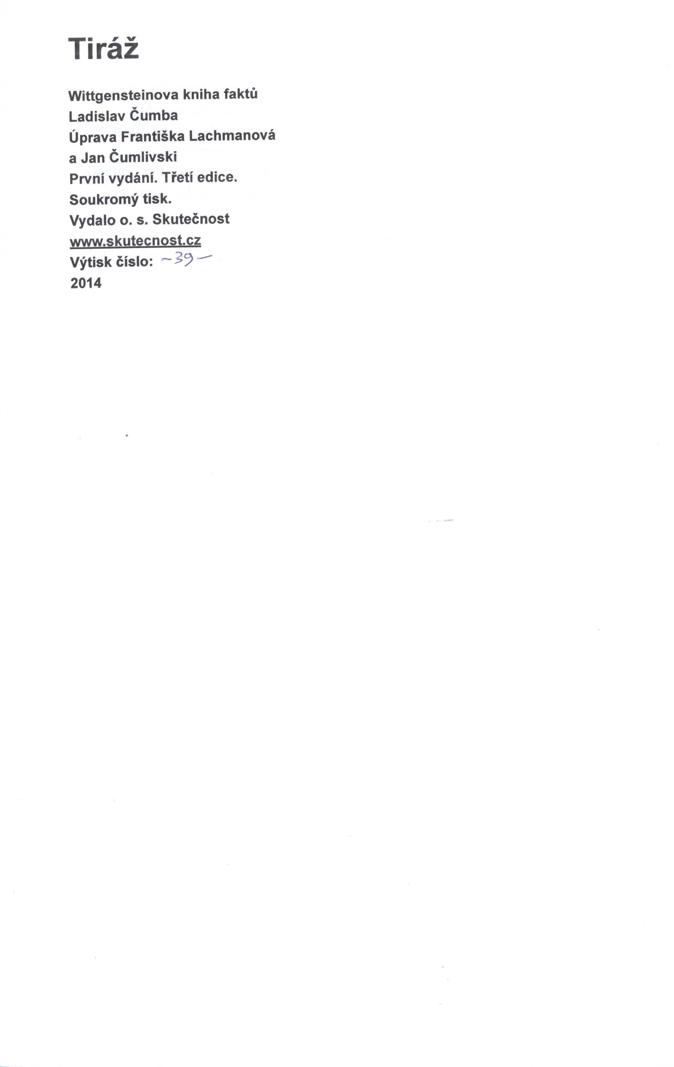 Názvové údaje Wittgensteinova kniha faktů / Ladislav Čumba ; úprava Františka Lachmanová a Jan Čumlivski Osobní jméno Čumba, Ladislav, 1976- (Autor) Další autoři Loubat, Františka, 1986- (Knižní grafik) Čumlivski, Jan, 1978- (Knižní grafik) Korp. Občanské sdružení Skutečnost (Nakladatel, vydavatel) Nakladatel [Praha] : o. s. Skutečnost, 2014 Výrobce [Praha] : soukromý tisk Rozsah přibližně 300 stran : ilustrace, mapy, portréty, noty, faksimile ; 30 cm Osobní hesla Wittgenstein, Ludwig, 1889-1951 - rakouský filozof a pedagog * Wittgenstein (rodina), činná 19. století-20. století Chronologie 1889-1951 Předmětová hesla philosophers - Austria - 19th-20th centuries * businessmen - Austria - 19th-20th centuries * families - Austria - 19th-20th centuries * metallurgical industry - Czechia - 19th-20th centuries * culture and society - Europe, Central - 19th-20th centuries Klíčová slova česká literatura * biografická literatura * kultura * společnost * hutní průmysl * podnikatelé * rody * filozofové * Wittgenstein L. * Rakousko * stol. 19.-20. * Nejkrásnější české knihy Počet ex. 3, z toho volných 3 Druh dok. monografie Signatura NK/14 042, NK/14 042a, NK/14 042b