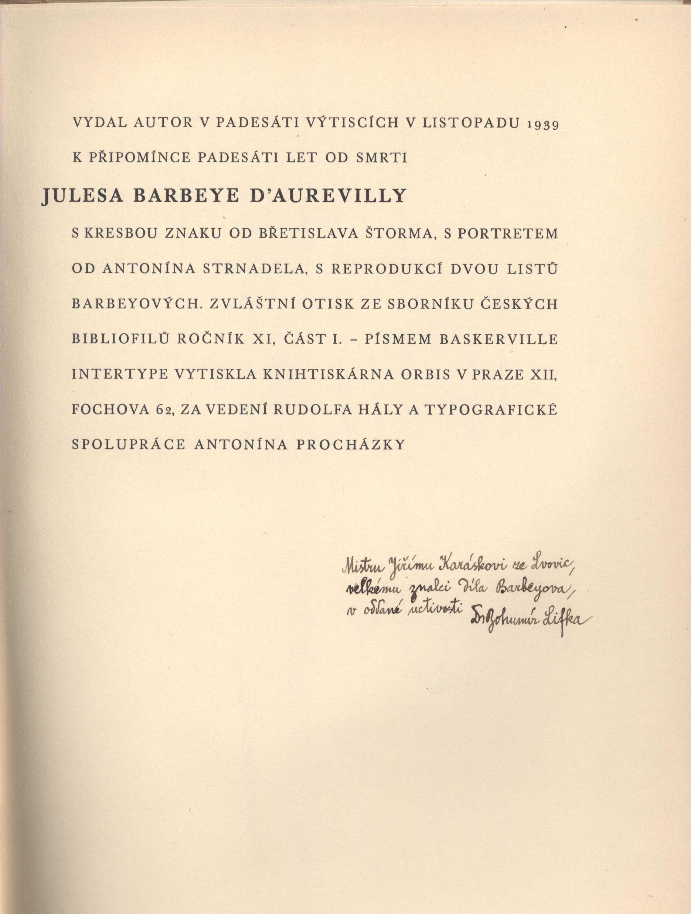 Názvové údaje Renaissance : neuen Studien zur Kritik der Moderne / von Hermann Bahr Osobní jméno Bahr, Hermann, 1863-1934 (Autor) Další autoři S. Fischer Verlag (nakladatelství) (Nakladatel, vydavatel) Nakladatel Berlin : S. Fischer, 1897 Rozsah 244 s. Osobní hesla Verlaine, Paul, 1844-1896 - francouzský básník * Villiers de L'Isle-Adam, Auguste de, 1838-1889 - francouzský spisovatel * Barbey d'Aurevilly, Jules Amédée, 1808-1889 - franc. básník, prozaik, kritik a novinář * Goncourt, Jules de, 1833-1870 - spisovatel, kritik, novinář * Goncourt, Edmond de, 1822-1896 - spisovatel, kritik, novinář * Mauclair, Camille, 1872-1945 - francouzský básník, prozaik, literární a výtvarný kritik * Maeterlinck, Maurice, 1862-1949 - belgický (vlámský) dramatik, básník a esejista Klíčová slova německá literatura * literární historie * moderní literatura * moderna * přelom 19. a 20. stol. * dekadence Počet ex. 1, z toho volných 1 Druh dok. monografie Signatura KaG XXVI D2 76 Názvové údaje L'Esprit de J. Barbey d'Aurevilly : dictionnaire de pensées, traits, portraits et jugements tirés de son oeuvre critique / préface par Octave Uzanne Osobní jméno Barbey d'Aurevilly, Jules Amédée, 1808-1889 (Autor) Další autoři Uzanne, Octave, 1851-1931 (Sestavovatel, kompilátor) (Autor úvodu atd.) Korp. Société du Mercure de France (Paris, Francie) (Nakladatel, vydavatel) Ch. Colin (Mayenne, Francie) (Tiskař) Nakladatel Paris : Société du Mercure de France, 1908 Výrobce Blais et Roy) Rozsah 354, [2] s. Osobní hesla Barbey d'Aurevilly, Jules Amédée, 1808-1889 - franc. básník, prozaik, kritik a novinář Klíčová slova francouzská literatura * úvahy * francouzská próza * kritika * eseje * myšlenky * citáty * antologie * antologie citátů * dekadence * přelom 19. a 20. stol. Počet ex. 1, z toho volných 1 Druh dok. monografie Signatura KaG XII E2 33 Názvové údaje Listy Trebutienovi : [od ledna do června 1854] / Jules Barbey d'Aurevilly ; [přeložil Bohuslav Reynek] Osobní jméno Barbey d'Aurevilly, Jules Amédée, 1808-1889 (Autor) Další autoři Reynek, Bohuslav, 1892-1971 (Překladatel) Korp. Jan V. Pojer (Brno) (Nakladatel, vydavatel) Karel Kryl (firma : Nový Jičín, Česko) (Tiskař) Nakladatel Brno : Jan V. Pojer, 1928 Výrobce Kryl a Scotti) Rozsah 103 s. Osobní hesla Barbey d'Aurevilly, Jules Amédée, 1808-1889 - franc. básník, prozaik, kritik a novinář * Trebutien, Guillaume-Stanislas, 1800-1870 - francouzský orientalista a historik Klíčová slova francouzští básníci * prozaici * orientalisté * historici * Francie * osobní korespondence * r. 1854 Počet ex. 2, z toho volných 2 Druh dok. monografie Signatura VMartínek 1091, C12a 321 Názvové údaje Rytíř des Touches / Jules Barbey d`Auervilly ; Z franc. přel. J. R. Marek Osobní jméno Barbey d'Aurevilly, Jules Amédée, 1808-1889 (Autor) Další autoři Marek, Josef Richard, 1883-1951 (Překladatel) Nakladatel Praha : Ladislav Kuncíř, 1923 Rozsah 137 s. : il Osobní hesla Barbey d'Aurevilly, Jules Amédée, 1808-1889 - franc. básník, prozaik, kritik a novinář Klíčová slova francouzská literatura * próza * román * překlad Počet ex. 3, z toho volných 3 Druh dok. monografie Signatura POR 39, LK P 31 G 1, LK P 75 E 32 Názvové údaje Rytíř Des Touches : Román / Jules Amédée Barbey d'Aurevilly ; Přeložil Josef Richard Marek ; Vypravil Vratislav H. Brunner Osobní jméno Barbey d'Aurevilly, Jules Amédée, 1808-1889 (Autor) Další autoři Marek, Josef Richard, 1883-1951 (Překladatel) Brunner, Vratislav Hugo, 1886-1928 (Grafický technik) Nakladatel Praha : Ladislav Kuncíř, 1923 Rozsah 137 s. : il Osobní hesla Barbey d'Aurevilly, Jules Amédée, 1808-1889 - franc. básník, prozaik, kritik a novinář * Barbey d'Aurevilly, Jules Amédée, 1808-1889 - franc. básník, prozaik, kritik a novinář Klíčová slova francouzská literatura * próza * historický román Počet ex. 1, z toho volných 1 Druh dok. monografie Signatura C12b 429 Názvové údaje Ženatý kněz : Román / Jules Amédée Barbey d'Aurevilly ; Přeložil Arnošt Procházka Osobní jméno Barbey d'Aurevilly, Jules Amédée, 1808-1889 (Autor) Další autoři Procházka, Arnošt, 1869-1925 (Překladatel) Nakladatel [Praha] : [H. Kosterka], [1921?] Rozsah 410 s. Osobní hesla Barbey d'Aurevilly, Jules Amédée, 1808-1889 - franc. básník, prozaik, kritik a novinář * Barbey d'Aurevilly, Jules Amédée, 1808-1889 - franc. básník, prozaik, kritik a novinář Klíčová slova francouzská literatura * próza * román * stol. 19. Počet ex. 1, z toho volných 1 Druh dok. monografie Signatura C12b 388 Názvové údaje Střepy zrcadel : essaie / Arthur Breisky ; [uspořádal a vydal Jarmil Krecar ; frontispic vyleptal Viktor Stretti ; typografická osnova Methoda Kalába z písma Garamond Monotype] Osobní jméno Breiský, Artur, 1885-1910 (Autor) Další autoři Krecar z Růžokvětu, Jarmil, 1884-1959 (Editor) (Sestavovatel, kompilátor) Kaláb, Method, 1885-1963 (Typograf) Novák, Arthur, 1876-1957 (Nakladatel, vydavatel) Stretti, Viktor, 1878-1957 (Ilustrátor) (Leptař) Korp. Průmyslová tiskárna v Praze (Tiskař) Nakladatel V Praze : [Arthur Novák], 1928 Výrobce (Průmyslová tiskárna) Rozsah 131 s. : il. Osobní hesla Samain, Albert Viktor, 1858-1900 - franc. básník * Rebell, Hugues, 1867-1905 - francouzský spisovatel a básník * Balzac, Honoré de, 1799-1850 - francouzský prozaik * Barbey d'Aurevilly, Jules Amédée, 1808-1889 - franc. básník, prozaik, kritik a novinář * Stevenson, Robert Louis, 1850-1894 - anglický spisovatel * Stendhal, 1783-1842 - francouzský spisovatel * Moore, George, 1852-1933 - irský prozaik, esejista, básník a dramatik, výtvarný kritik * Barrès, Maurice, 1862-1923 - francouzský spisovatel, novinář a politik Klíčová slova česká literatura * světová literatura * eseje * esejistické texty * studie * úvahy * 