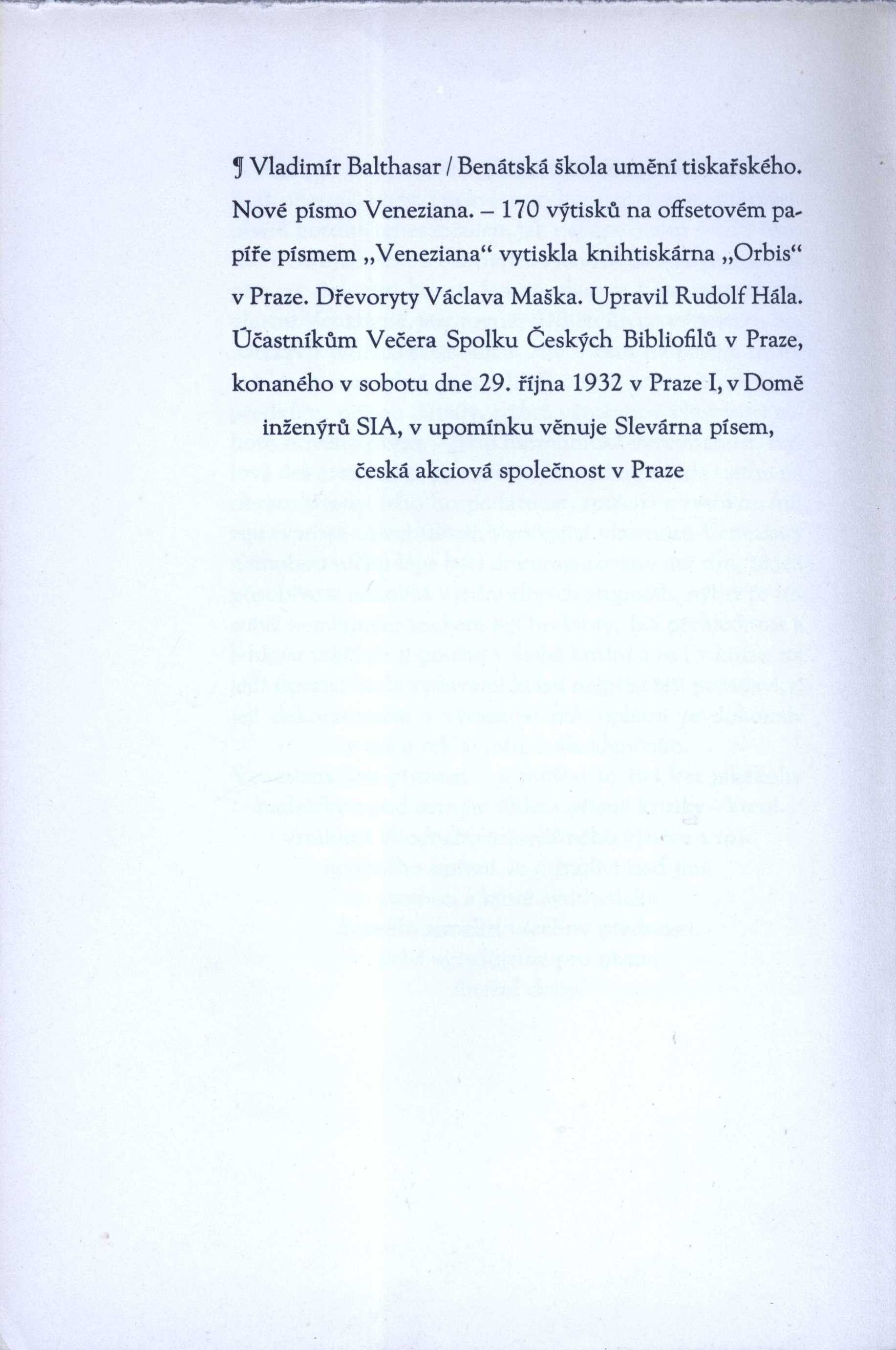 Názvové údaje Henrietta / Richard Aldington ; z anglického originálu ... přeložil Emanuel Tilsch ; doslov o autorovi napsal František Resl ; obálku a vazbu vytvořil Zdeněk Sklenář ; podle typografické osnovy Antonína Dvořáka Osobní jméno Aldington, Richard, 1892-1962 (Autor) Další autoři Tilsch, Emanuel, 1906-1990 (Překladatel) Sklenář, Zdeněk, 1910-1986 (Autor obálky) Resl, František (Autor doslovu, tiráže atd.) Korp. Evropský literární klub (nakladatelství) (Nakladatel, vydavatel) Grafia (tiskárna, nakladatelství) (Tiskař) Nakladatel V Praze : ELK, 1949 Výrobce Grafia Rozsah 283 stran Osobní hesla Casanova, Giacomo, 1725-1798 - italský dobrodruh a spisovatel Klíčová slova anglická literatura * historické romány * historické osobnosti * životopisné romány * Casanova G. * Benátky * stol. 18. Počet ex. 3, z toho volných 3 Druh dok. monografie Signatura Fuks 0246, P 45 e 62, P 78 e 11 Názvové údaje Henrietta / Richard Aldington ; [z anglického originálu ... přeložil Emanuel Tilsch ; doslov o autorovi napsal František Resl ; obálku a vazbu vytvořil Zdeněk Sklenář ; podle typografické osnovy Antonína Dvořáka ...] Osobní jméno Aldington, Richard, 1892-1962 (Autor) Další autoři Tilsch, Emanuel, 1906-1990 (Překladatel) Resl, František (Autor doslovu, tiráže atd.) Sklenář, Zdeněk, 1910-1986 (Autor obálky) (Výtvarník vazby) (Ilustrátor) Dvořák, Antonín, 1914- (Typograf) Korp. Evropský literární klub (nakladatelství) (Nakladatel, vydavatel) Grafia (tiskárna, nakladatelství) (Tiskař) Nakladatel V Praze : Nakladatelství ELK, 1949 Výrobce (Grafia) Rozsah 285 s. ; 21 cm Osobní hesla Casanova, Giacomo, 1725-1798 - italský dobrodruh a spisovatel Klíčová slova anglická literatura * próza * překlad * román * historický román * historické osobnosti * životopisný román * Casanova G. * Benátky * stol. 18. Počet ex. 2, z toho volných 2 Druh dok. monografie Signatura AVrbova 119, ELK 0263 Názvové údaje Benátská škola umění tiskařského : nové písmo Veneziana / Vladimír Balthasar ; [upravil R. Hála] Osobní jméno Balthasar, Vladimír, 1897-1978 (Autor) Další autoři Hála, Rudolf, 1892-1968 (Knižní grafik) Korp. Orbis (tiskárna) (Tiskař) Nakladatel Praha : Slévárna písem, 1932 Výrobce Orbis) Rozsah 17 s. Klíčová slova Itálie * Benátky * typografie * písmo * dějiny Počet ex. 2, z toho volných 2 Druh dok. monografie Signatura C12b 14361, C12b 14361a Názvové údaje Benátská škola umění tiskařského : nové písmo Veneziana / Vladimír Balthasar ; [upravil R. Hála ; dřevoryty Václava Maška] Osobní jméno Balthasar, Vladimír, 1897-1978 (Autor) Další autoři Hála, Rudolf, 1892-1968 (Knižní grafik) Mašek, Václav, 1893-1973 (Ilustrátor) Korp. Orbis (tiskárna) (Tiskař) Nakladatel Praha : Slévárna písem, 1932 Výrobce Orbis) Rozsah 17 s. Klíčová slova Itálie * Benátky * typografie * písmo * dějiny Počet ex. 1, z toho volných 1 Druh dok. monografie Signatura C12b 14510 Názvové údaje La stampa in Venezia dalla sua origine alla morte di Aldo Manuzio seniore : ragionamento storico / di Carlo Castellani, prefetto della Bibliotheca di San Marco : con appendice di documenti in parte inediti Osobní jméno Castellani, Carlo, 1822-1897 (Autor) Další autoři Ongania, Ferdinando, 1842-1911 (Nakladatel, vydavatel) Nakladatel Venezia : editore Ferdinando Ongania, 1889 Rozsah XLVIII, 134 s. Osobní hesla Manuzio, Aldo, asi 1450-1515 - italský knihtiskař, typograf a vydavatel Klíčová slova Evropa * Itálie * Benátky * staré tisky * tiskaři * dějiny knihtisku * biografie * edice pramenů * knihovnické příručky * raný novověk * stol. 15.-16. * stol. 15., 2. pol. * stol. 16. * r. 1469-1515 Počet ex. 1, z toho volných 1 Druh dok. monografie Signatura R XVIII d 10 Názvové údaje Disegno veneto : benátská kresba 16.-18. století z českých, moravských a slezských sbírek = die venezianischen Zeichnungen des 16.-18. Jahrhunderts aus den böhmischen, mährischen und schlesischen Sammlungen / [koncepce, příprava a katalog výstavy] Zdeněk Kazlepka Záhlaví-akce Disegno veneto (2003 : Brno, Česko) Další autoři Kazlepka, Zdeněk, 1962- (Sestavovatel, kompilátor) Korp. Moravská galerie. Místodržitelský palác (Brno, Česko) Nakladatel Brno : Moravská galerie, 2003 Rozsah 237 s : il. (některé barev.) ; 30 cm Klíčová slova italské umění * kresby * Benátky * stol. 16.-18. * umělecké sbírky * Čechy * Morava * Slezsko * katalog výstavy Počet ex. 1, z toho volných 1 Druh dok. monografie Signatura C12d 963 Názvové údaje Venezianisches Skizzenbuch / / Paul Eliasberg ; mit einem Vorwort von Benno Reifenberg Osobní jméno Eliasberg, Paul, 1907-1983 (Ilustrátor) Další autoři Reifenberg, Benno, 1892-1970 (Autor úvodu atd.) Nakladatel New York : Ernst Rathenau ; Berlin : Euphorion, c1969 Rozsah [[8] s., [26] l. obr. příl. : il. Osobní hesla Eliasberg, Paul, 1907-1983 - německý grafik Klíčová slova grafici * Německo * stol. 20. * Benátky * Itálie * umělecké náměty * náměty obrazů * skici Počet ex. 1, z toho volných 1 Druh dok. monografie Signatura C12a 4508 Názvové údaje Mladý Zdeněk Kalista : 1900-1919 / Roman Ferstl Osobní jméno Ferstl, Roman, 1972- (Autor) Nakladatel Mladá Boleslav : Okresní muzeum, 2000 Rozsah 64 s. : fot Osobní hesla Kalista, Zdeněk, 1900-1982 - literární historik, překladatel Klíčová slova česká literatura * monografie * Kalista Z. * život * dětství * mládí * Benátky nad Jizerou * r. 1900-1919 Počet ex. 2, z toho volných 2 Druh dok. monografie Signatura C12b 3875, C12b 3875a Názvové údaje Hans Rudolph Füßlins kritisches Verzeichniß der beßten, nach den berühmtesten Mahlern aller Schulen vorhandenen Kupferstiche : Für Liebhaber, die sich mittelst einer nicht zahlreichen, aber auserlesenen Sammlung von Kupferstichen deutliche Begriffe vo