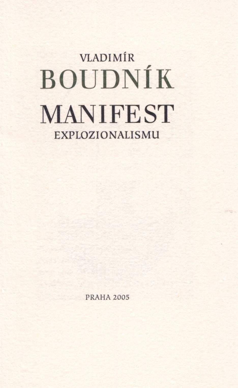 Názvové údaje Manifest explozionalismu / Vladimír Boudník ; [dvoubarevnou perokresbou ilustroval Ilja Sainer ; edici řídí, výtvarně upravuje a o tisk pečuje Martin Dyrynk ; fotopísmem petit Hiroshige vysadila Soňa Franková v pražském grafickém MD ateliéru] Osobní jméno Boudník, Vladimír, 1924-1968 (Autor) Další autoři Sainer, Ilja, 1947-2008 (Ilustrátor) Dyrynk, Martin, 1941-2019 (Knižní grafik) Korp. Spolek českých bibliofilů v Praze (Nakladatel, vydavatel) Nakladatel Praha : Spolek českých bibliofilů, 2005 Výrobce (C&Č Capoušek) Rozsah 17 s. : il. Osobní hesla Boudník, Vladimír, 1924-1968 - grafik, malíř Klíčová slova čeští grafici * stol. 20. * autobiografické vzpomínky * manifesty * bibliofilie Počet ex. 1, z toho volných 1 Druh dok. monografie Signatura Bbf II 0068 Názvové údaje Vladimír Boudník : katalog výstavy, Praha 13. srpen - 4. říjen 1992 / texty Bohumil Hrabal, Jiří Kolář, Vladislav Merhaut ; [úvod Hana Larvová ; fotografie Ladislav Michálek... [et al.] ; grafická úprava Joska Skalník] Osobní jméno Boudník, Vladimír, 1924-1968 (Umělec) Další autoři Larvová, Hana (Autor úvodu atd.) Hrabal, Bohumil, 1914-1997 (Autor úvodu atd.) Kolář, Jiří, 1914-2002 (Autor úvodu atd.) Merhaut, Vladislav, 1938-2021 (Autor úvodu atd.) Michálek, Ladislav, 1937-2014 (Fotograf) Skalník, Joska, 1948- (Grafický technik) Nakladatel Praha : Galerie hlavního města Prahy, 1992 Výrobce (Kaliba) Rozsah 116 s. : fot. ; 30 cm Osobní hesla Boudník, Vladimír, 1924-1968 - grafik, malíř Klíčová slova Boudník V. * grafické dílo * katalogy výstav Počet ex. 1, z toho volných 1 Druh dok. monografie Signatura M 220 a 63 Názvové údaje Vladimír Boudník : Kunstauffassung und Werk : sein Beitrag zur tschechischen Kunst der 1950er und 1960er Jahre / Eva Čapková Osobní jméno Čapková, Eva, 1979- (Autor) Další autoři Boudník, Vladimír, 1924-1968 (Autor) Vávra, Stanislav, 1933- (Autor) Korp. Verlag Peter Lang (nakladatelství) (Nakladatel, vydavatel) Nakladatel Berlin : Peter Lang, 2018 Výrobce Leck : CPI books GmbH Rozsah 333 stran : ilustrace (převážně barevné) ; 21 cm Osobní hesla Boudník, Vladimír, 1924-1968 - grafik, malíř Předmětová hesla explosionalismus * výtvarné umění - Česko - st.20.léta 50.-60. Klíčová slova německá literatura * česká literatura * disertace * české výtvarné umění * explosionalismus * čeští výtvarní umělci * Boudník V. * Česko * stol. 20., léta 50. Počet ex. 1, z toho volných 1 Druh dok. monografie Signatura C12b 18554 Názvové údaje Něžní barbaři / Bohumil Hrabal Osobní jméno Hrabal, Bohumil, 1914-1997 (Autor) (Autor úvodu atd.) Další autoři Index (nakladatelství) (Nakladatel, vydavatel) Nakladatel [Köln : Index, 1981] Rozsah 111 stran : ilustrace ; 17 cm Osobní hesla Boudník, Vladimír, 1924-1968 - grafik, malíř Klíčová slova česká literatura * próza * novela * čeští výtvarníci * Boudník V. * exilové vydání Počet ex. 3, z toho volných 3 Druh dok. monografie Signatura Topič 0425, BVolkova 1653, Listopad 0265