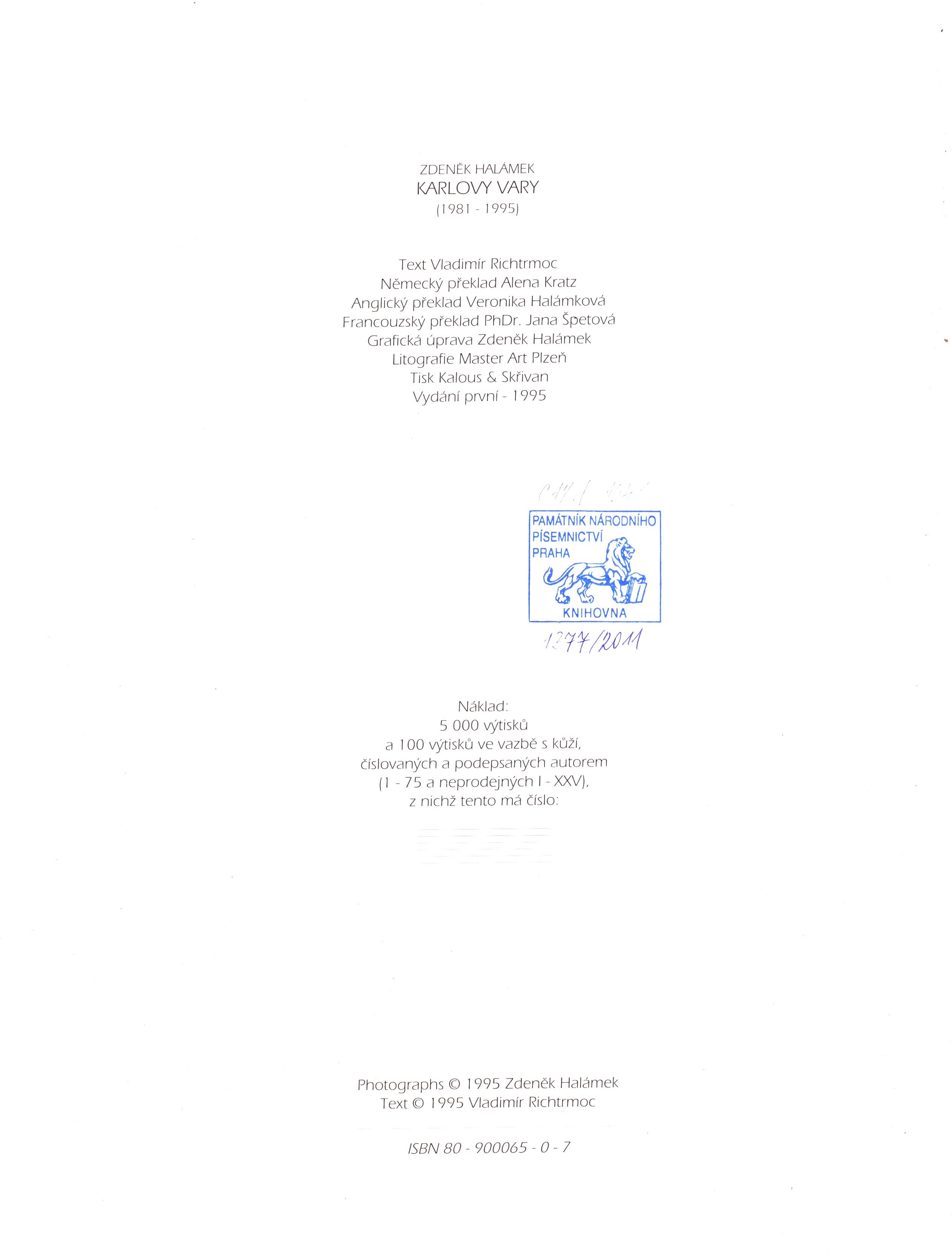 Názvové údaje Nad krajinou slz a radiace / František Bártík Osobní jméno Bártík, František, 1976- (Autor) Další autoři Česko. Úřad dokumentace a vyšetřování zločinů komunismu (Nakladatel, vydavatel) Nakladatel [Praha] : Úřad dokumentace a vyšetřování zločinů komunismu, 2017 Výrobce Tiskárna MV, p.o. Rozsah 101 stran : ilustrace (některé barevné), mapy, faksimile ; 29 cm Geografické heslo Jáchymov (Karlovy Vary, Česko : oblast) * Horní Slavkov (Česko : oblast) * Příbram (Česko : oblast) Klíčová slova vězeňství * uranové doly * nucené práce * pracovní tábory * Česko * stol. 20. * r. 1940-1945 * r. 1945-1986 * přehledy * obrazové publikace Počet ex. 1, z toho volných 1 Druh dok. monografie Signatura C12d 2275 Názvové údaje Karel IV. : zakladatel lázeňské slávy Karlových Varů / [Jana Boříková, Otakar Bořík] Osobní jméno Boříková, Jana, 1937- (Autor) Další autoři Bořík, Otakar, 1924-2019 (Autor) Korp. Fornica graphics (Sokolov) (Nakladatel, vydavatel) (Tiskař) (Tiskař obrazu) Nakladatel [Sokolov] : Fornica publishing, [2007?] Výrobce (Fornica graphics, s. r. o.) Rozsah 135, [1] s. : il., portréty, faksim. ; 30,4 cm Osobní hesla Karel IV., český král a římský císař, 1316-1378 Předmětová hesla panovníci - Česko - 14. stol. * panovníci - Svatá říše římská - 14. stol. * panovnické rody - Evropa * panovníci - nemoci * lékařství - Evropa - 14. stol. Geografické heslo Karlovy Vary (Česko) - dějiny Klíčová slova Karlovy Vary * historie města * lázně * historie * Karel IV. český král a římský císař * životopis * nemoci * léčba * antropologie * výzkum * současnost Počet ex. 1, z toho volných 1 Adr. el. zdr. http://toc.nkp.cz/NKC/200802/contents/nkc20081787005_1.pdf Druh dok. monografie Signatura NK /07 109 Názvové údaje Okres Karlovy Vary / [citace: Brachtl, R., Bušek, O., Melichar, V. a kol. (2004)] : Chráněná území ČR [sv.] XI. : Plzeňsko a Karlovarsko Osobní jméno Brachtl, Radoslav (Autor) Další autoři Bušek, Oldřich, 1956- (Autor) Melichar, Vladimír (Autor) Nakladatel Praha : Agentura ochrany přírody a krajiny ČR ; Brno : EkoCentrum Brno, 2004 Rozsah S. 182-216 : il., mp. ; 30 cm Předmětová hesla chráněná území - Česko Geografické heslo Plzeňský kraj (Česko) - přírodní poměry * Karlovarský kraj (Česko) - přírodní poměry Klíčová slova Karlovy Vary * Plzeňsko * Karlovarsko * ochrana přírody Počet ex. 2, z toho volných 2 Druh dok. monografie Signatura NK /04 55, NK /04 55a Názvové údaje Promenáda s jelenem / Adolf Branald ; Obálku, vazbu a graf. úpr. navrhl Oldřich Hlavsa ; Fotogr. dopl. Vladimír Radechovský Osobní jméno Branald, Adolf, 1910-2008 (Autor) Další autoři Hlavsa, Oldřich, 1909-1995 (Grafický technik) Radechovský, Vladimír, 1927-1998 (Fotograf) Nakladatel Praha : Československý spisovatel, 1966 Rozsah 419 s. : fot Klíčová slova česká literatura * próza * Karlovy Vary * reportáže Počet ex. 2, z toho volných 2 Druh dok. monografie Signatura AČS 03036, AČS 03036a Názvové údaje Promenáda s jelenem / Adolf Branald ; [obálku, vazbu a graf. úpr. navrhl Oldřich Hlavsa ; fotogr. doprovodil Vladimír Radechovský] Osobní jméno Branald, Adolf, 1910-2008 (Autor) Další autoři Hlavsa, Oldřich, 1909-1995 (Grafický technik) Radechovský, Vladimír, 1927-1998 (Fotograf) Nakladatel Praha : Československý spisovatel, 1963 Rozsah 419 s. : il. Klíčová slova česká literatura próza reportáže Karlovy Vary Počet ex. 2, z toho volných 2 Druh dok. monografie Signatura AČS 05082, AČS 05082a Názvové údaje Historický sborník Karlovarska / [za redakce Karla Nejdla připravila historická sekce Československé společnosti pro šíření politických a vědeckých znalostí v Karlových Varech se svými spolupracovníky] Záhlaví-korpor. Československá společnost pro šíření politických a vědeckých znalostí Další autoři Nejdl, Karel, 1900-1990 (Sestavovatel, kompilátor) (Editor) Nakladatel Karlovy Vary : Odbor kultury KNV, 1955 Výrobce (Karlovarské tiskárny) Rozsah 196 s., [16] s. obr. příl. Klíčová slova Karlovy Vary * Karlovarsko * vlastivěda kraje * KSČ * r. 1922-1944 * historický sborník Počet ex. 1, z toho volných 1 Druh dok. monografie Signatura Fuks 0142 Názvové údaje Dějiny Karlovarského kraje. První díl, Od pravěku do konce feudálního období (1848) / Alexander Gross. [návrh obálky a grafická úprava od akademického malíře Břetislava Wernera] Osobní jméno Gross, Alexander, 1918-1986 (Autor) Další autoři Werner, Břetislav, 1911-1986 (Knižní grafik) (Autor obálky) Nakladatel Karlovy Vary : Krajské vlastivědné museum, 1954 Výrobce Západočeské tiskárny) Rozsah 167 s. : il. Geografické heslo Karlovy Vary (Česko : oblast) Klíčová slova dějiny lázeňství města panství * Karlovarsko * karlovarský kraj * Česko * dějiny kraje * feudalismus * šlechta * města * lázňství * do r. 1848 * přehledy Počet ex. 1, z toho volných 1 Druh dok. monografie Signatura ZKSlabý 0861 Názvové údaje Karlovy Vary : (1981 - 1995) / Zdeněk Halámek ; text Vladimír Richtrmoc ; německý překlad Alena Kratz, anglický překlad Veronika Halámková, francouzský překlad Jana Špetová ; grafická úprava Zdeněk Halámek Osobní jméno Halámek, Zdeněk, 1943- (Autor) (Fotograf) (Knižní grafik) (Nakladatel, vydavatel) Další autoři Richtrmoc, Vladimír, 1931- (Autor úvodu atd.) Kratz, Alena (Překladatel) Halámková, Veronika (Překladatel) Špetová, Jana, 1947- (Překladatel) Korp. Kalous & Skřivan, s.r.o. (Plzeň) (Tiskař) (Tiskař obrazu) Nakladatel [Karlovy Vary] : Zdeněk Halámek, 1995 Výrobce Plzeň : Kalous & Skřivan Rozsah 105 stran : fotografie ; 30 cm Osobní hesla Halámek, Zdeněk 1943- Klíčová slova fotografické publikace * černobílé fotografie * Karlovy Vary * stol. 20., lé