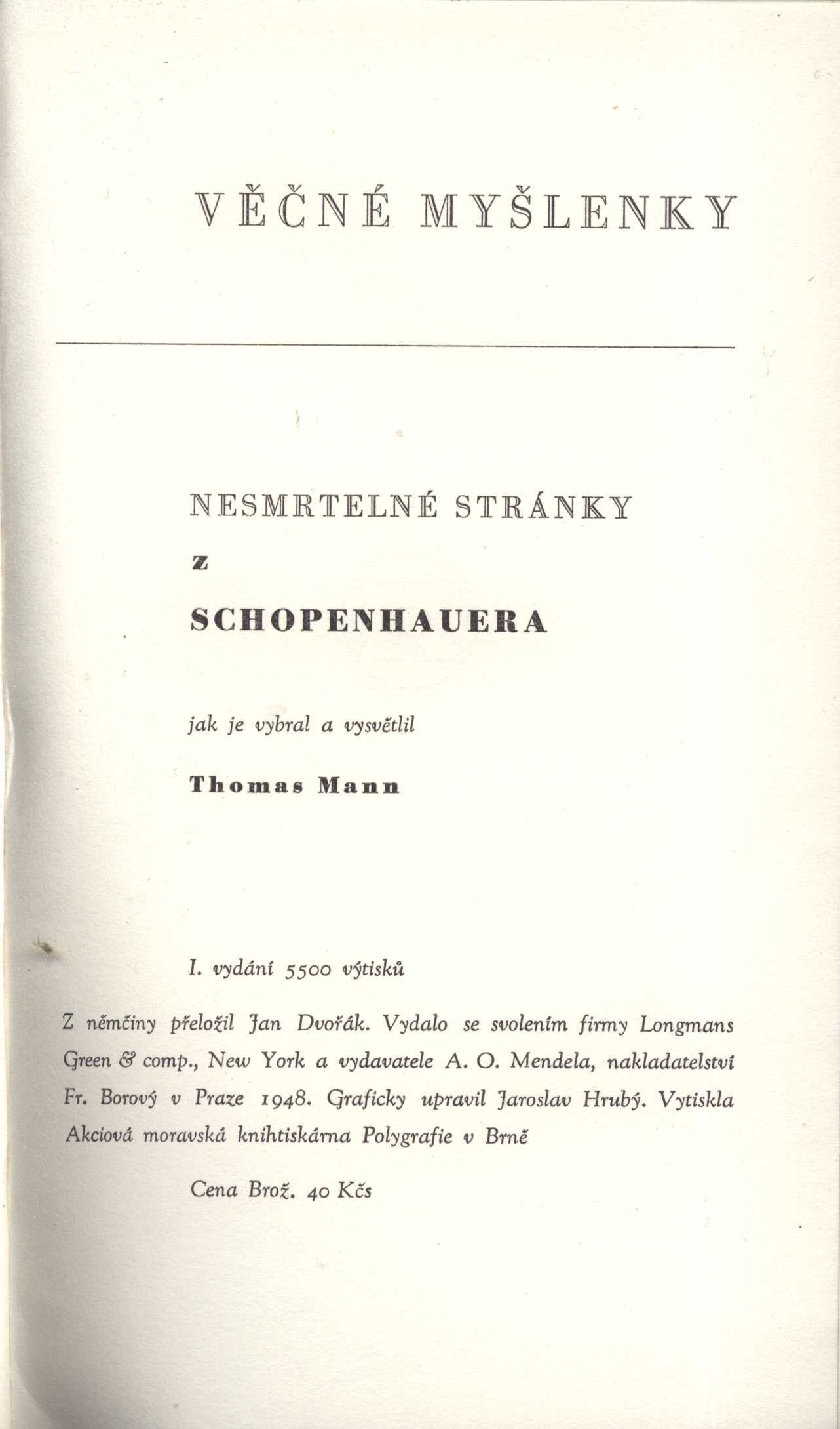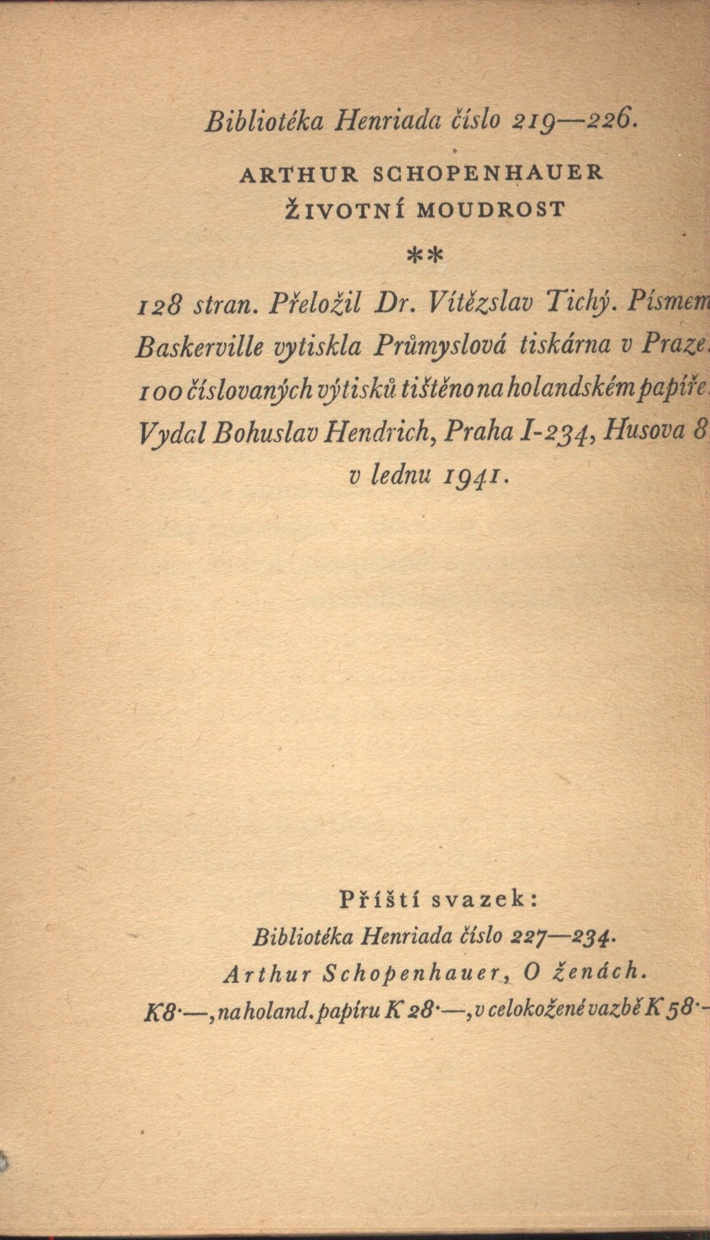 Názvové údaje Critique d'avantgarde / par Th. Duret Osobní jméno Duret, Théodore, 1838-1927 (Autor) Další autoři Bibliothèque-Charpentier (Paris, Francie) (Nakladatel, vydavatel) Chamerot et Renouard (Paris, Francie) (Tiskař) Nakladatel Paris : G. Charpentier et Cie, éditeurs, 1885 Výrobce Paris : Typ. G. Chamerot, 1885 Rozsah 328 stran Osobní hesla Monet, Claude, 1840-1926 - francouzský impresionistický malíř a grafik * Katsushika, Hokusai, 1760-1849 - japonský malíř, kreslíř a ilustrátor * Whistler, James McNeill, 1834-1903 - anglosaský malíř, grafik a spisovatel * Reynolds, Joshua, Sir, 1723-1792 - britský výtvarník * Gainsborough, Thomas, 1727-1788 - anglický malíř a grafik * Wagner, Richard, 1813-1883 - německý hudební skladatel * Spencer, Herbert, 18200420-19031208 * Schopenhauer, Arthur, 1788-1860 - německý filozof Klíčová slova francouzská literatura * francouzské umění * francouzské výtvarné umění * francouzští umělci * moderní malířské umění * dějiny umění * umělecká kritika * výtvarná kritika * kritika * estetika * moderní umění * moderní umělecké směry * impresionismus * impresionisté * Orient * orientální umění * japonské umění Počet ex. 1, z toho volných 1 Druh dok. monografie Signatura KaG III B 38 Názvové údaje Arthur Schopenhauer : genese díla : (příspěvek k psychologii tvorby) / J. L. Fischer Osobní jméno Fischer, Josef Ludvík, 1894-1973 (Autor) (Autor úvodu atd.) Další autoři Fr. Borový (firma) (Nakladatel, vydavatel) Polygrafia (nakladatelství a tiskárna, Brno) (Tiskař) Nakladatel V Praze : nakladatel Fr. Borový, 1921 Výrobce (vytiskla Polygrafie) Rozsah 157, [3] s. Osobní hesla Schopenhauer, Arthur, 1788-1860 - německý filozof Klíčová slova česká literatura * filozofie * Schopenhauer A. * vznik díla Počet ex. 1, z toho volných 1 Druh dok. monografie Signatura AFB 0195 Názvové údaje Schopenhauer : mit 13 Bildnissen / von P.J. Möbius Osobní jméno Möbius, Paul J., 1853-1907 (Autor) Nakladatel Leipzig : Verlag von Johann Ambrosius Barth, 1911 Výrobce Druck von Grimme & Trömel Rozsah xii, 282 stran, 13 nečíslovaných obrazových příloh ; 24,5 cm Osobní hesla Schopenhauer, Arthur, 1788-1860 - německý filozof Klíčová slova němečtí filozofové * německá filozofie * život a dílo * Německo * stol. 18.-19. * biografie * monografie Počet ex. 1, z toho volných 1 Druh dok. monografie Signatura Patočka 0441 Názvové údaje Arthur Schopenhauer básníkem / Jaromír Rašín ; [tuto knihu napsal a Schopenhauerovy básně po prvé do češtiny přeložil Jaromír Rašín] Osobní jméno Rašín, Jaromír, 1891-1951 (Autor) (Překladatel) (Nakladatel, vydavatel) Další autoři Schopenhauer, Arthur, 1788-1860 (Umělec) Korp. Kryl a Scotti (firma) (Tiskař) Nakladatel Praha : [vl. n.], 1928 Výrobce Kryl a Scotti) Rozsah [40] s. : il. ; 16 cm Osobní hesla Schopenhauer, Arthur, 1788-1860 - německý filozof Klíčová slova česká literatura * monografie * Schopenhauer A. * překlady básní * bibliofilské tisky Počet ex. 1, z toho volných 0 Druh dok. monografie Signatura Topič 0509 Názvové údaje Schopenhauer and Die wilden Jahre der Philosophie : eine Biographie / Rüdiger Safranski Osobní jméno Safranski, Rüdiger, 1945- (Autor) Nakladatel München ; Wien : Carl Hanser Verlag, c1987 Rozsah 556 s. Osobní hesla Schopenhauer, Arthur, 1788-1860 - německý filozof Klíčová slova němečtí filozofové * život a dílo * stol. 18.-19. * biografie Počet ex. 1, z toho volných 1 Druh dok. monografie Signatura Fuks 0728 Názvové údaje Metafysika lásky a hudby. O geniovi / Arthur Schopenhauer ; přeložil Vítězslav Tichý Osobní jméno Schopenhauer, Arthur, 1788-1860 (Autor) Další autoři Tichý, Vítězslav, 1904-1962 (Překladatel) (Autor úvodu atd.) Korp. Bohuslav Hendrich (nakladatelství) (Nakladatel, vydavatel) Průmyslová tiskárna v Praze (Tiskař) Unifikovaný název Welt als Wille und Vorstellung Nakladatel Praha : Nakladatel Bohuslav Hendrich, knihkupec, 1944 Výrobce V Praze : Průmyslová tiskárna Rozsah 116 stran : ilustrace ; 16 cm Osobní hesla Schopenhauer, Arthur, 1788-1860 - německý filozof Předmětová hesla metafyzika * filozofie umění * estetika Klíčová slova německá literatura * filozofické pojednání * Schopenhauer A. * metafyzika * láska * hudba * filozofie umění * estetika * český překlad * Tichý V. * r. 1944 Počet ex. 1, z toho volných 1 Adr. el. zdr. http://krameriusndk.nkp.cz/search/handle/uuid:a552dd20-311b-11e9-844c-005056827e51 Druh dok. monografie Signatura VZinková 0664 Názvové údaje Nesmrtelné stránky z Schopenhauera / jak je vybral a vysvětlil Thomas Mann ; [z němčiny přeložil Jian Dvořák ; graficky upravil Jaroslav Hrubý] Osobní jméno Schopenhauer, Arthur, 1788-1860 (Autor) Další autoři Mann, Thomas, 1875-1955 (Sestavovatel, kompilátor) Dvořák, Jan (Překladatel) Hrubý, Jaroslav, 1913- (Knižní grafik) Korp. Fr. Borový (firma) (Nakladatel, vydavatel) Akciová moravská knihtiskárna Polygrafie (Tiskař) Nakladatel V Praze : Fr. Borový, 1948 Výrobce Akc. mor. knihtiskárna Polygrafie) Rozsah 125 s. ; 8° Osobní hesla Schopenhauer, Arthur, 1788-1860 - německý filozof Klíčová slova německá literatura * německá filozofie * Schopenhauer A. * život a dílo * studie * stol. 18. Počet ex. 2, z toho volných 2 Druh dok. monografie Signatura Holan 1680, AFB 2025 Názvové údaje Z moudrosti života / ze Schopenhaurových aforismů přeložil Jaroslav Vlček Osobní jméno Schopenhauer, Arthur, 1788-1860 (Autor) Další autoři Vlček, Jaroslav, 1860-1930 (Překladatel) (Nakladatel, vydavatel) Martínek, Vojtěch, 1887-1960 (Autor podpisu) Korp. Jaroslav Pospíšil (nakladatelství, tiskárna, knihkupectví) (Distributor) Alois R. Lauermann (nakladatelství, tiskárna, knihtiskárna, komisionářství) (Tiskař) Nakladatel V Praze : J. Vlček 