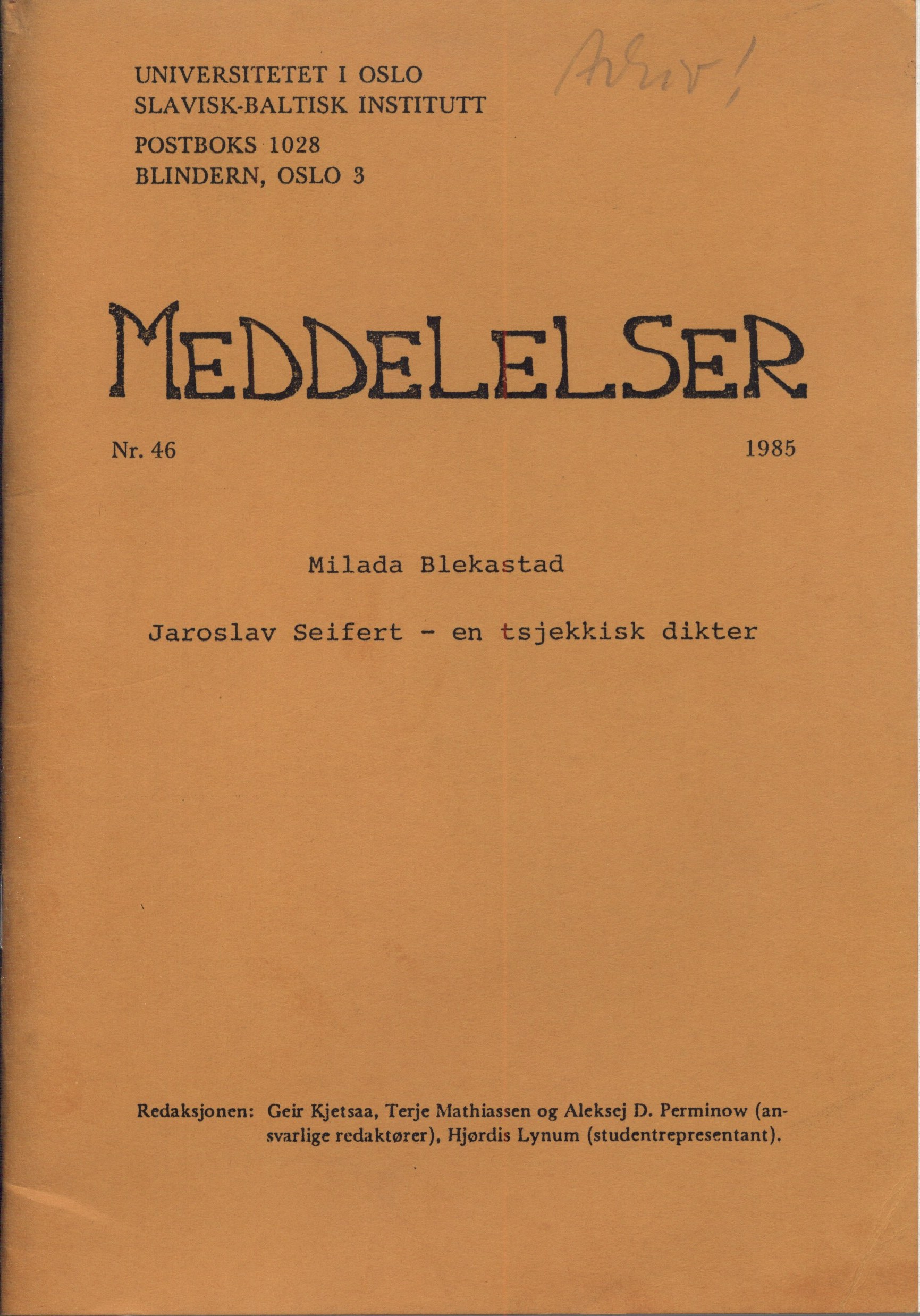Názvové údaje Básně / Guillaume Apollinaire ; souborné vydání českých překladů Karla Čapka, Jindřicha Hořejšího, Zdeňka Kalisty a Jaroslava Seiferta Osobní jméno Apollinaire, Guillaume, 1880-1918 (Autor) Další autoři Čapek, Karel, 1890-1938 (Překladatel) Hořejší, Jindřich, 1886-1941 (Překladatel) (Dedikátor) (Autor podpisu) Kalista, Zdeněk, 1900-1982 (Překladatel) Seifert, Jaroslav, 1901-1986 (Překladatel) Teige, Karel, 1900-1951 (Autor úvodu atd.) Toyen, 1902-1980 (Knižní grafik) (Ilustrátor) (Autor podpisu) Hořejší, Růžena, 1899- (Dedikant) Korp. Ústřední dělnické nakladatelství a knihkupectví (Nakladatel, vydavatel) Svoboda (Kladno) (Tiskař) (Tiskař obrazu) Nakladatel V Praze : Ústřední dělnické knihkupectví a nakladatelství, 1935 Výrobce V Kladně : tiskárna "Svobody" Rozsah 4 nečíslované strany, 97 stran : ilustrace ; 21 cm Osobní hesla Apollinaire, Guillaume, 1880-1918 - francouzský básník Klíčová slova Čapek K. * francouzská literatura * poezie * Apollinaire G. * básně * české překlady * Hořejší J. * Kalista Z. * Seifert J. * frontispis * Toyen * r. 1935 Počet ex. 2, z toho volných 2 Druh dok. monografie Signatura VZinková 0425, AHO 0341 Názvové údaje Zavražděný básník : román / Guillaume Apollinaire ; autorisovaný překlad M. Šramla a J. Seiferta Osobní jméno Apollinaire, Guillaume, 1880-1918 (Autor) Další autoři Seifert, Jaroslav, 1901-1986 (Překladatel) Šraml, Max, 1902-1949 (Překladatel) Teige, Karel, 1900-1951 (Autor obálky) (Knižní grafik) Mrkvička, Otakar, 1898-1957 (Autor obálky) Hořejší, Jindřich, 1886-1941 (Dřívější majitel) Korp. Dr. Ot. Štorch-Marien (nakladatelství) (Nakladatel, vydavatel) Aventinum (nakladatelství) (Nakladatel, vydavatel) František Obzina (tiskárna, nakladatelství) (Tiskař) Nakladatel Praha : Aventinum, Dr. Ot. Štorch-Marien, 1925 Výrobce Ve Vyškově na Moravě : knihtiskárna F. Obziny Rozsah 84 stran ; 22 cm Klíčová slova francouzská literatura * próza * Apollinaire G. * román * český překlad * Šraml M. * Seifert J. * r. 1925 Počet ex. 2, z toho volných 2 Druh dok. monografie Signatura OŘíha 323, AHO 0382 Názvové údaje Jaroslav Seifert - en tsjekkisk dikter / Milada Blekastad Osobní jméno Blekastad, Milada, 1917-2003 (Autor) Další autoři Seifert, Jaroslav, 1901-1986 (Autor) Korp. Universitetet i Oslo (Nakladatel, vydavatel) (Tiskař) Nakladatel Oslo : Universitetet i Oslo, Slavisk-baltisk institutt, 1985 Výrobce Reprosentralen Universitetet i Oslo) Rozsah 37, 4 s. ; 21 cm Osobní hesla Seifert, Jaroslav, 1901-1986 - básník, novinář, překladatel Klíčová slova norská literatura * literární studie * čeští básníci * Seifert J. Počet ex. 1, z toho volných 1 Druh dok. monografie Signatura Topič 0867 Názvové údaje Jak číst poezii / autorský kolektiv Jiří Brabec ... [et al.] ; redigoval Jiří Opelík ; [obálku a vazbu navrhl a typograficky upravil Jiří Schmidt] Osobní jméno Brabec, Jiří, 1929- (Autor) Další autoři Opelík, Jiří, 1930-2024 (Editor) Schmidt, Jiří, 1921-1992 (Autor obálky) (Výtvarník vazby) (Typograf) (Knižní grafik) Korp. Československý spisovatel (nakladatelství) (Nakladatel, vydavatel) Tisk Brno (tiskárna) (Tiskař) Nakladatel Praha : Československý spisovatel, 1969 Výrobce Tisk, knižní výroba, n. p.) Rozsah 261, [3] s. ; 19,6 cm Klíčová slova česká literatura * poezie * stol. 20. * rozbory * literárněkritické studie * Nezval V. * Seifert J. * Halas F. * Kainar J. * Holan V. * Mikulášek O. * Hrubín F. * Kolář J. Počet ex. 4, z toho volných 5 Druh dok. monografie Signatura AČS 03367, AČS 03367a, Fuks 0467, OŘíha 129, Branald 0391 Názvové údaje Jaroslav Seifert : laskavě neústupný pěvec : po stopách básníka očima jeho blízkých / František Cinger ; Seifertová, Kantůrková, Chramostová, Jirásková, Hrabal, Kundera, Lustig, Werich, Hrubín, Janouch, Černý, Nezval, Holan, Hora, Žáček, Halas, Taussig, Brabec, Fučík, Skácel, Píša, Vašák, Vladislav, Osers, Utitz, Wolker, Neumann, Šalda ; obálka a typografie Dana Kavalecová Osobní jméno Cinger, František, 1956- (Autor) (Editor) (Autor doslovu, tiráže atd.) (Fotograf) Další autoři Seifert, Jaroslav, 1901-1986 (Autor) Kavalecová, Dana (Autor obálky) (Knižní grafik) Korp. Nakladatelství BVD Akcent tiskárna Vimperk (Tiskař) Nakladatel Praha : BVD, 2011 Výrobce Vimperk : Tiskárna Akcent, s. r. o. Rozsah 269 stran, 32 nečíslovaných stran obrazové přílohy : ilustrace, portréty, faksimile ; 21 cm Osobní hesla Seifert, Jaroslav, 1901-1986 - básník, novinář, překladatel Klíčová slova česká literatura * vzpomínky přátel * vzpomínky současníků * čeští spisovatelé * Seifert J. * kulturní osobnosti * literární osobnosti * vzájemná korespondence * rozhovory * eseje * literárněvědné rozbory * Česko * stol. 20. Počet ex. 2, z toho volných 2 Adr. el. zdr. obsah Druh dok. monografie Signatura C12b 13086, Kantůrková 0380 Názvové údaje Jaroslav Seifert : náčrt k portrétu ; úvodní proslov k večeru J. Seiferta, konaném 10. května 1954 / Václav Černý ; podobizna J. Seiferta v mědirytině od Cyrila Boudy ; v ručním lisu písmem cicero Bodoni vytiskl jako rukopis Josef Cipra Osobní jméno Černý, Václav, 1905-1987 (Autor) (Autor podpisu) Další autoři Bouda, Cyril, 1901-1984 (Ilustrátor) (Umělec) Cipra, Josef, 1894-1970 (Sazeč) Korp. Index (nakladatelství) (Nakladatel, vydavatel) Nadace Charta 77 (Nakladatel, vydavatel) Výrobce Kolín nad Rýnem : INDEX, 1984 Rozsah 21 stran : ilustrace ; 17 cm Osobní hesla Seifert, Jaroslav, 1901-1986 - básník, novinář, překladatel Klíčová slova česká literatura * proslov * literárněvědné rozbory * čeští básníci * Seifert J. * r. 1918-1989 * stol. 20. Počet ex. 1, z toho volných 1 Druh dok. monografie Signatura Kantůrková 0240 