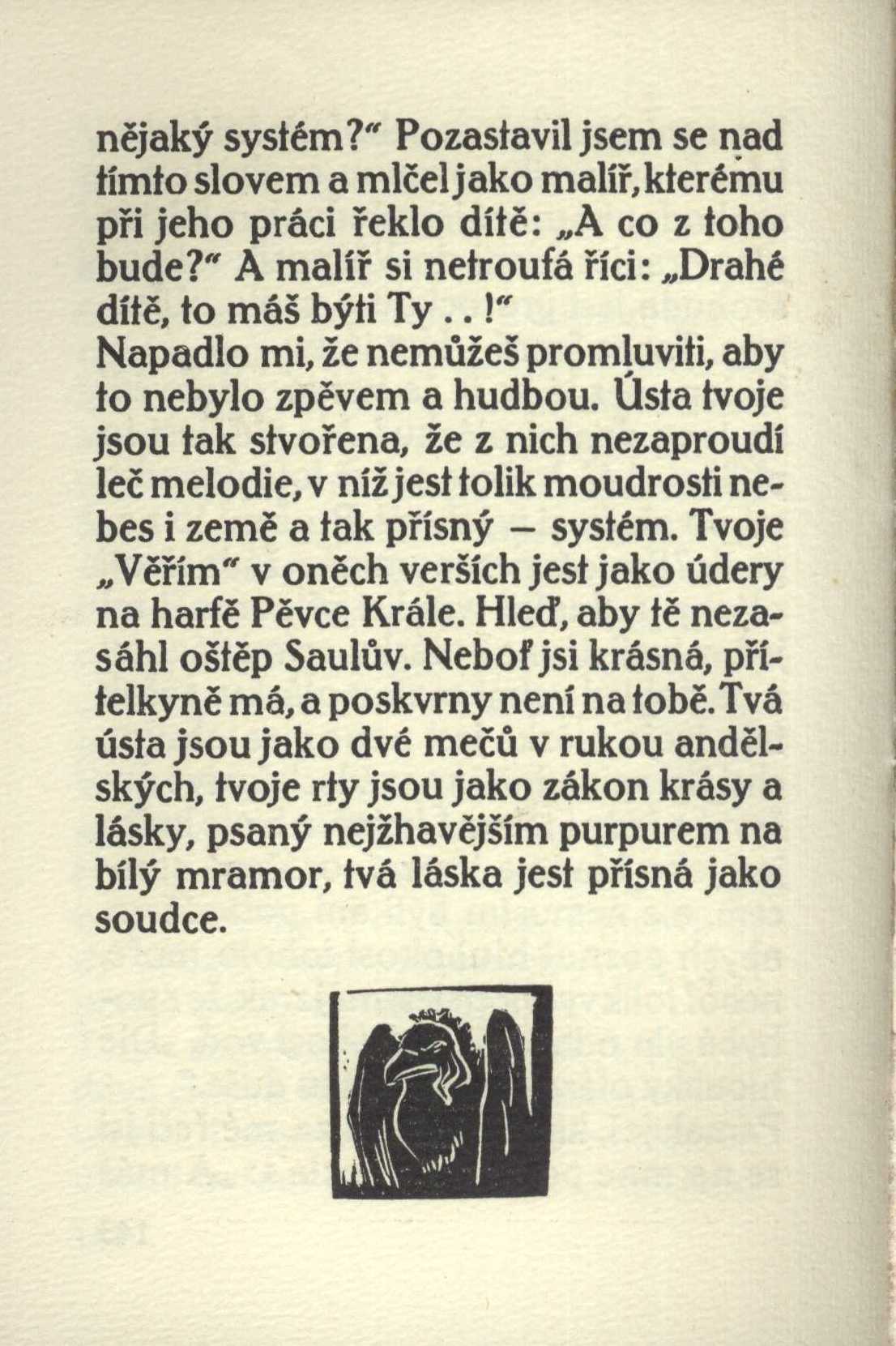Názvové údaje Zavražděný básník / Guillaume Apollinaire ; [z francouzského originálu ... přeložila, úvodem a poznámkami doplnila Anna Kareninová ; volně doprovázeno Apollinairovými kresbami ; obálka, vazba a grafická úprava Pavel Štefan] Osobní jméno Apollinaire, Guillaume, 1880-1918 (Autor) (Ilustrátor) Další autoři Kareninová, Anna, 1954- (Překladatel) (Autor úvodu atd.) (Autor komentáře) Štefan, Pavel, 1953- (Autor obálky) (Výtvarník vazby) (Grafický technik) Nakladatel Praha : Paseka, 1993 Výrobce Augusta) Rozsah 221 s. : il Osobní hesla Apollinaire, Guillaume, 1880-1918 - francouzský básník Klíčová slova francouzská literatura * překlad * soubor * básnická próza * fantazie Počet ex. 2, z toho volných 2 Druh dok. monografie Signatura M 218 h 44, EJulis 0747 Názvové údaje Nikdo není daleko / Richard Bach ; [přeložila Sylva Daníčková ; grafická úprava a ilustrace Jana Vahalíková ; knihařské zpracování Jan Hybner ; tisk Jaroslav Janďourek] Osobní jméno Bach, Richard, 1936- (Autor) Další autoři Daníčková, Sylva, 1935- (Překladatel) Vahalíková, Jana, 1972- (Ilustrátor) Janďourek, Jaroslav, 1958- (Tiskař) Nakladatel V Praze : Vysoká škola uměleckoprůmyslová, 1995 Rozsah [26] s. : il. Klíčová slova americká literatura * básnická próza * bibliofilie Počet ex. 1, z toho volných 1 Druh dok. monografie Signatura Bbf V 0035 Názvové údaje Monolog člověka / Iwo Bauše ; [vydal a vytiskl písmem Moravia V. Förchtgott ; s linoryty mistra L. Vlodka ; v úpravě J. Červenky] Osobní jméno Bauše, Ivan, 1886-1959 (Autor) (Dedikátor) (Autor podpisu) Další autoři Karásek ze Lvovic, Jiří, 1871-1951 (Dedikant) Vlodek, Ladislav, 1907-1996 (Grafický technik) (Ilustrátor) Förchtgott, V. (Nakladatel, vydavatel) (Tiskař) Červenka, Josef, 1911-2014 (Typograf) Chlanda, Vladimír, 1899-1970 (Tiskař) Nakladatel V Břeclavi : V. Förchtgott, 1935 Výrobce (V knihtiskárně Vladimíra Chlandy) Rozsah [24] s. : il. Klíčová slova česká literatura * česká próza * česká poezie * mystéria * mystika * básnická próza * soukromé tisky * bibliofilie * bibliofilská vydání * bibliofilské tisky * stol. 20., léta 30. * r. 1935 Počet ex. 1, z toho volných 1 Druh dok. monografie Signatura KaG XVI B 113 Názvové údaje Román o Tristanovi a Isoldě = [Le roman de Tristan et Iseut] / Joseph Bédier ; [přeložil K. Šafář ; obrazy kreslil a grafickou úpravu navrhl Zdeněk Guth] Osobní jméno Bédier, Joseph, 1864-1938 (Autor) (Autor doslovu, tiráže atd.) Další autoři Šafář, Karel, 1889-1970 (Překladatel) Guth, Zdeněk, 1902-1984 (Ilustrátor) Korp. Jos. R. Vilímek (nakladatelství) (Nakladatel, vydavatel) Česká grafická Unie (tiskárna a nakladatelství) (Tiskař) Nakladatel V Praze : Jos. R. Vilímek, 1929 Výrobce (Česká grafická Unie) Rozsah 133 s. : il. ; 26 cm Klíčová slova francouzská literatura * próza * překlad * básnická próza * středověká literatura * středověké legendy * ilustrované knihy * ilustrace * Guth Z. * bibliofilské tisky Počet ex. 1, z toho volných 1 Druh dok. monografie Signatura Topič 0760 Názvové údaje Eseje / Otokar Březina ; uspořádal, k vydání připravil, doslov a vydavatelské poznámky napsal a cizojazyčné citáty přeložil Petr Holman ; obálku s použitím děl Františka Bílka Slepci a Portrét Otokara Březiny navrhla Jiřina Vaclová ; typograficky upravily Jaroslava Slavíková a Marta Ševcová Osobní jméno Březina, Otokar, 1868-1929 (Autor) Další autoři Holman, Petr, 1951-2019 (Sestavovatel, kompilátor) (Editor) (Autor doslovu, tiráže atd.) (Překladatel) Vaclová, Jiřina, 1957- (Autor obálky) Slavíková, Jaroslava (Typograf) Ševcová, Marta (Typograf) Bílek, František, 1872-1941 (Ilustrátor) Korp. Votobia (nakladatelství) (Nakladatel, vydavatel) Nakladatel Olomouc : Votobia, 1996 Rozsah 273 stran ; 21 cm Klíčová slova česká próza * básnická próza * eseje * komentované vydání Počet ex. 3, z toho volných 3 Druh dok. monografie Signatura C12b 448, BVolkova 1003, Holman-Březina 0189 Názvové údaje Nahlédnutí do chrámů Otokara Březiny / Otokar Březina ; ilustrace Roman Kriegel Osobní jméno Březina, Otokar, 1868-1929 (Autor) Další autoři Kriegel, Roman, 1969- (Ilustrátor) Korp. Návrat domů (nakladatelství) (Nakladatel, vydavatel) PBtisk (tiskárna) (Tiskař) Nakladatel Praha : Návrat domů, s.r.o., [2017] Výrobce Příbram : Pbtisk Copyright ©2017 Rozsah 58 stran : ilustrace (převážně barevné) ; 11 x 19 cm Klíčová slova česká poezie * básně * básnická próza * básně v próze * stol. 19.-20. * výbory Počet ex. 1, z toho volných 1 Druh dok. monografie Signatura C12a 5978 Názvové údaje Patero velikých ód provázených processionálem na pozdrav novému věku / Paul Claudel ; přeložil Boh. Reynek Osobní jméno Claudel, Paul, 1868-1955 (Autor) Další autoři Reynek, Bohuslav, 1892-1971 (Překladatel) Korp. Družstvo Přátel Studia (Praha, Česko) (Nakladatel, vydavatel) Kryl a Scotti (firma) (Tiskař) Nakladatel Praha : Družstvo přátel Studia, 1920 Výrobce Kryl a Scotti) Rozsah 167 s. ; 15 cm Klíčová slova francouzská poezie * překlad * básně v próze * básnická próza Počet ex. 4, z toho volných 4 Druh dok. monografie Signatura C12a 135, Holan 109, VMartínek 1310, P 4 G 54 Názvové údaje Miriam : kniha lyriky / Jakub Deml ; [František Bílek vytvořil dřevoryty ; František Kobliha upravil stránku titulní a navrhl vazbu] Osobní jméno Deml, Jakub, 1878-1961 (Autor) (Nakladatel, vydavatel) Další autoři Bílek, František, 1872-1941 (Ilustrátor) Kobliha, František, 1877-1962 (Knižní grafik) Korp. J. Skalák a spol. (Praha) (Tiskař) Nakladatel V Jinošově na Moravě : J. Deml, 1916 Výrobce J. Skalák a spol) Rozsah 211 s. : il. ; 8° Klíčová slova česká próza * lyrická próza * básnická próza Po