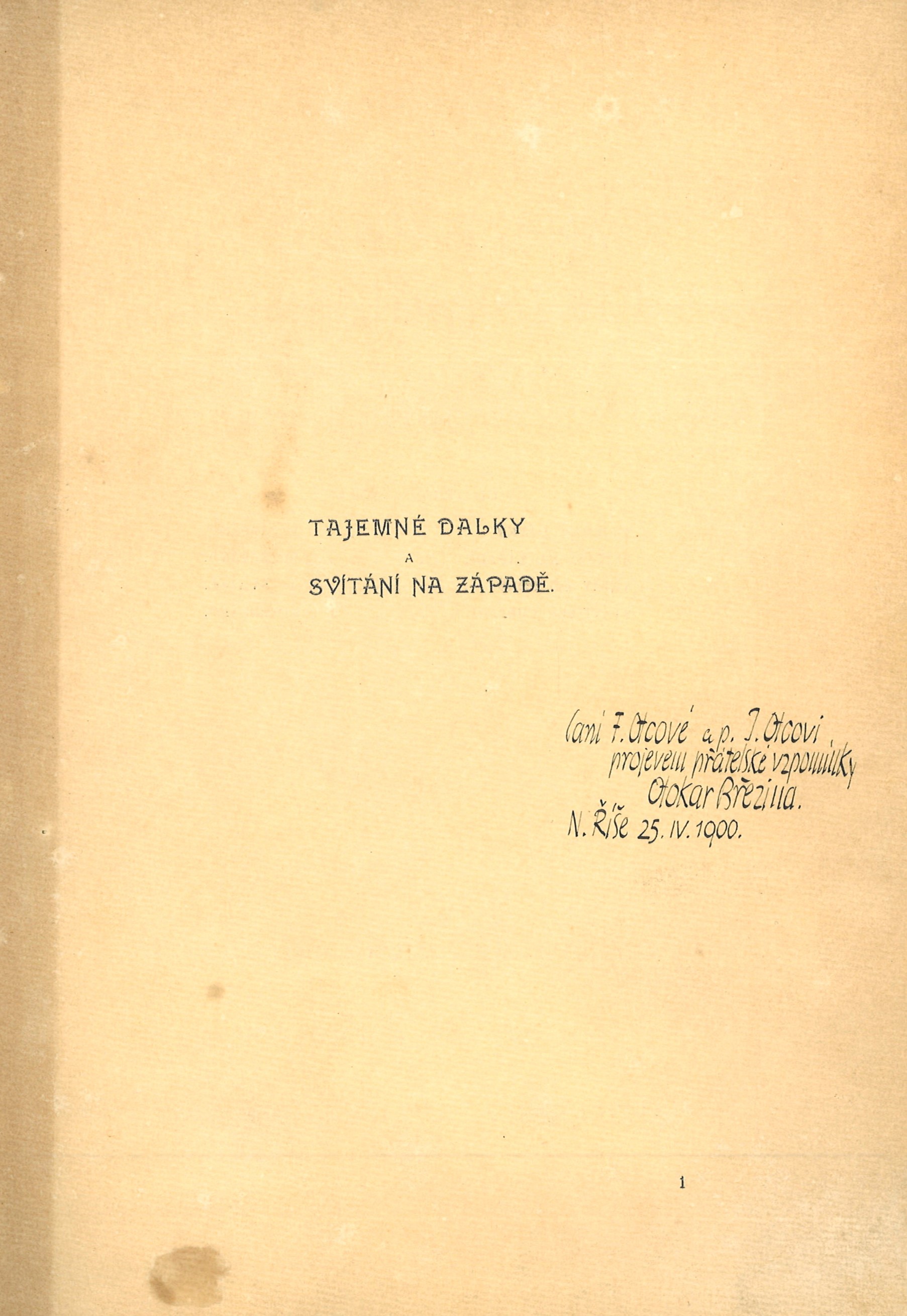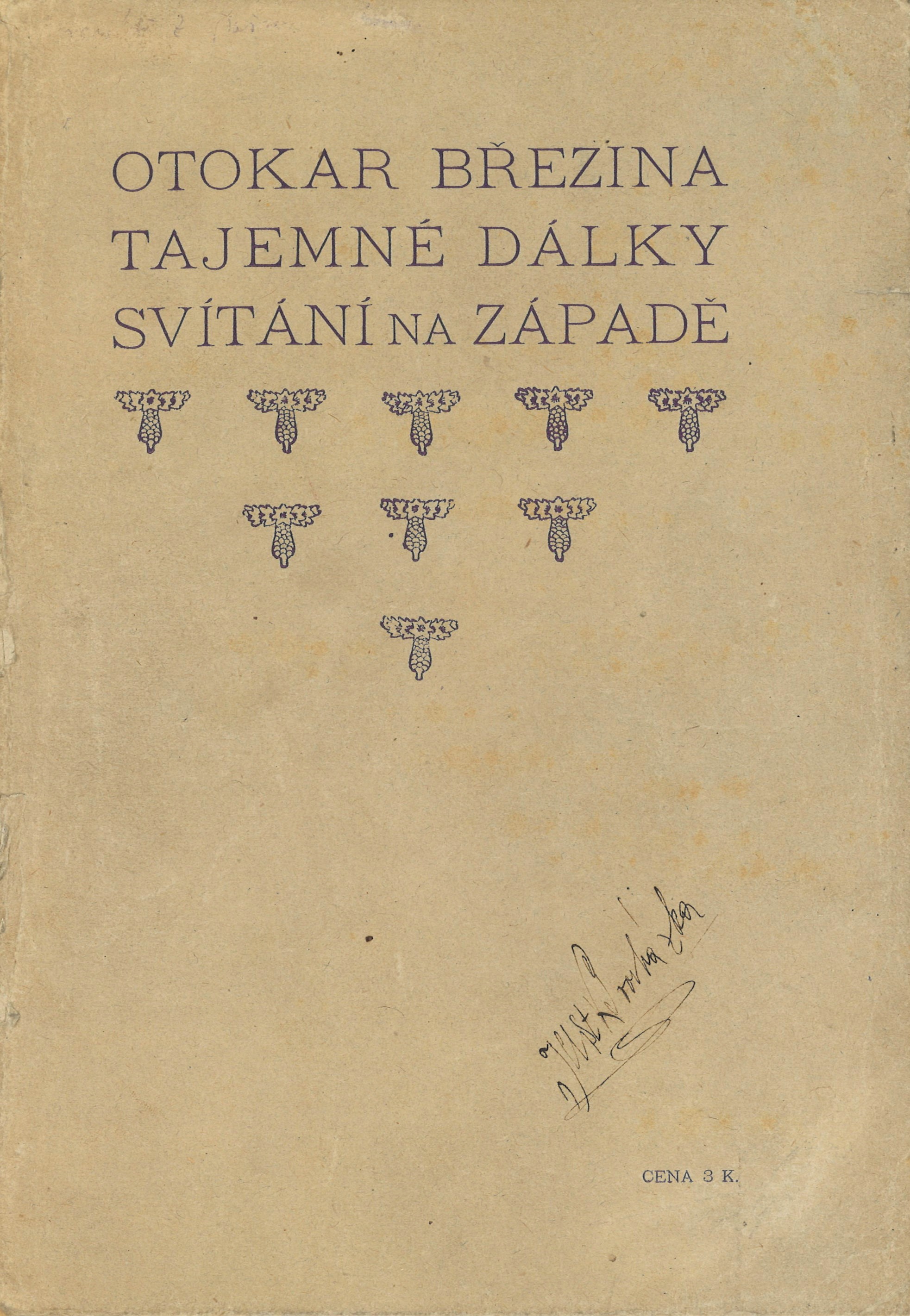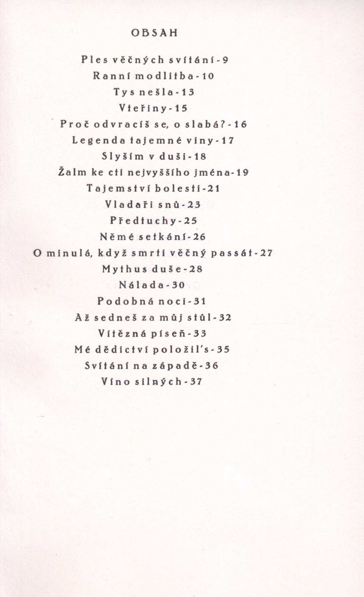 Názvové údaje Básnické spisy / Otokar Březina ; úpravu této knihy řídil a dřevoryty ryl Jaroslav Benda Osobní jméno Březina, Otokar, 1868-1929 (Autor) Další autoři Benda, Jaroslav, 1882-1970 (Knižní grafik) (Ilustrátor) Korp. Spolek výtvarných umělců Mánes (Nakladatel, vydavatel) Grafia (tiskárna, nakladatelství) (Tiskař) Nakladatel Praha : Spolek výtvarných umělců Manes, 1916 Výrobce Grafia Rozsah 192 stran ; 19 cm Klíčová slova česká poezie * básně * básnická sbírka * dekadence (literatura) * symbolismus (literatura) * přelom 19. a 20. stol. Počet ex. 2, z toho volných 2 Druh dok. monografie Signatura KaG XVI C 151, Holman-Březina 0081 Názvové údaje Básnické spisy V : Ruce (1901) / Otokar Březina ; úpravu této knihy řídil a dřevoryty ryl Jaroslav Benda Osobní jméno Březina, Otokar, 1868-1929 (Autor) (Dedikátor) (Autor podpisu) Další autoři Benda, Jaroslav, 1882-1970 (Knižní grafik) (Ilustrátor) Korp. Spolek výtvarných umělců Mánes (Nakladatel, vydavatel) Grafia (tiskárna, nakladatelství) (Tiskař) Nakladatel Praha : Spolek výtvarných umělců Manes, 1916 Výrobce Grafia Rozsah 44 stran ; 19 cm Klíčová slova česká poezie * básně * básnická sbírka * dekadence (literatura) * symbolismus (literatura) * přelom 19. a 20. stol. Počet ex. 3, z toho volných 3 Druh dok. monografie Signatura P 20 C 46, Holman-Březina 0182, Holman-Březina 0186/5 Názvové údaje Tajemné dálky a Svítání na západě / Otokar Březina ; s třemi litografiemi Frant. Bílka Osobní jméno Březina, Otokar, 1868-1929 (Autor) (Dedikátor) (Autor podpisu) Další autoři Bílek, František, 1872-1941 (Ilustrátor) (Litograf) Korp. Moderní revue (nakladatelství) (Nakladatel, vydavatel) Emanuel Stivín (v Praze) (Tiskař) Nakladatel Praha : Moderní revue, 1900 Výrobce Tiskem Em. Stivína Rozsah 77 stran, 4 nečíslované listy obrazových příloh ; 24,5 cm Klíčová slova česká poezie * dekadence (literatura) * symbolismus (literatura) * bibliofilie Počet ex. 6, z toho volných 6 Druh dok. monografie Signatura VHB 1445, P 59 A 18, P 36 A 33, P 23 A 30, Holman-Březina 0317, C12c 5763 Názvové údaje Theodat / Remy Gourmont ; přeložil A. P. [Arnošt Procházka] ; frontispice (původní lept), titulní list a desky (původní dřevoryty) Františka Koblihy Osobní jméno Gourmont, Rémy de, 1858-1915 (Autor) Další autoři Procházka, Arnošt, 1869-1925 (Překladatel) Kobliha, František, 1877-1962 (Ilustrátor) (Autor obálky) Korp. Moderní revue (nakladatelství) (Nakladatel, vydavatel) J. Skalák a spol. (Praha) (Žadatel o udělení patentu) Nakladatel V Praze : nákladem vydavatelstva Moderní revue, 1919 Výrobce Tiskem J. Skaláka a spol. Rozsah 33 stran ; 21 cm Klíčová slova francouzská literatura * drama * překlad * dekadence (literatura) * symbolismus * stol. 19., léta 90. Počet ex. 2, z toho volných 2 Druh dok. monografie Signatura P 85 d 32, Knytl 1224 Názvové údaje Les années Baudelaire : Études Baudelairiennes - I / Robert Kopp et Claude Pichois Osobní jméno Kopp, Robert, 1939- (Autor) (Dedikátor) Další autoři Pichois, Claude, 1925-2004 (Autor) (Dedikátor) Vladislav, Jan, 1923-2009 (Dedikant) Korp. Éditions de la Baconnière (Nakladatel, vydavatel) Nakladatel Neuchatel : a la Baconnière, 1969 Výrobce Montreux : L'imprimerie Cobraz s.a. Rozsah 203 stran ; 21 cm Osobní hesla Baudelaire, Charles, 1821-1867 - francouzský básník, překladatel a umělecký kritik Klíčová slova francouzská poezie * francouzští básníci * prokletí básníci * dekadence (literatura) * symbolismus (literatura) * studie * stol. 19. Počet ex. 1, z toho volných 1 Druh dok. monografie Signatura JVladislav 2309 Názvové údaje Appendice aux oeuvres complètes : Erotica ; Pièces douteuses ; Parodies et pastiches / Rimbaud Osobní jméno Rimbaud, Jean Arthur, 1854-1891 (Autor) Další autoři Skira (firma) (Nakladatel, vydavatel) Nakladatel Genève : Éditions d'art Albert Skira, 1943 Rozsah 52 stran ; 20 cm Klíčová slova francouzská literatura * francouzská poezie * francouzští básníci * prokletí básníci * dekadence (literatura) * přílohy Počet ex. 1, z toho volných 1 Druh dok. monografie Signatura JVladislav 2642 Názvové údaje Básnické spisy I : Tajemné dálky (1895) / Otokar Březina ; úpravu této knihy řídil a dřevoryty ryl Jaroslav Benda Osobní jméno Březina, Otokar, 1868-1929 (Autor) (Autor podpisu) Další autoři Benda, Jaroslav, 1882-1970 (Knižní grafik) (Ilustrátor) Korp. Spolek výtvarných umělců Mánes (Nakladatel, vydavatel) Grafia (tiskárna, nakladatelství) (Tiskař) Nakladatel Praha : Spolek výtvarných umělců Manes, 1916 Výrobce Grafia Rozsah 51 stran ; 19 cm Klíčová slova česká poezie * básně * básnická sbírka * dekadence (literatura) * symbolismus (literatura) * přelom 19. a 20. stol. Počet ex. 2, z toho volných 2 Druh dok. monografie Signatura Holman-Březina 0185, Holman-Březina 0186/1 Názvové údaje Básnické spisy II : Svítání na západě (1896) / Otokar Březina ; úpravu této knihy řídil a dřevoryty ryl Jaroslav Benda Osobní jméno Březina, Otokar, 1868-1929 (Autor) (Dedikátor) (Autor podpisu) Další autoři Benda, Jaroslav, 1882-1970 (Knižní grafik) (Ilustrátor) Durych, Jaroslav, 1886-1962 (Dedikant) Korp. Spolek výtvarných umělců Mánes (Nakladatel, vydavatel) Grafia (tiskárna, nakladatelství) (Tiskař) Nakladatel Praha : Spolek výtvarných umělců Manes, 1916 Výrobce Grafia Rozsah 38 stran ; 19 cm Klíčová slova česká poezie * básně * básnická sbírka * dekadence (literatura) * symbolismus (literatura) * přelom 19. a 20. stol. Počet ex. 2, z toho volných 2 Druh dok. monografie Signatura Holman-Březina 0183, Holman-Březina 0186/2 Názvové údaje Baudelaire devant ses contemporains / Témoignages rassemblés et présentés par W.T. Bandy et Claude Pichois Osobní jméno Bandy, W.