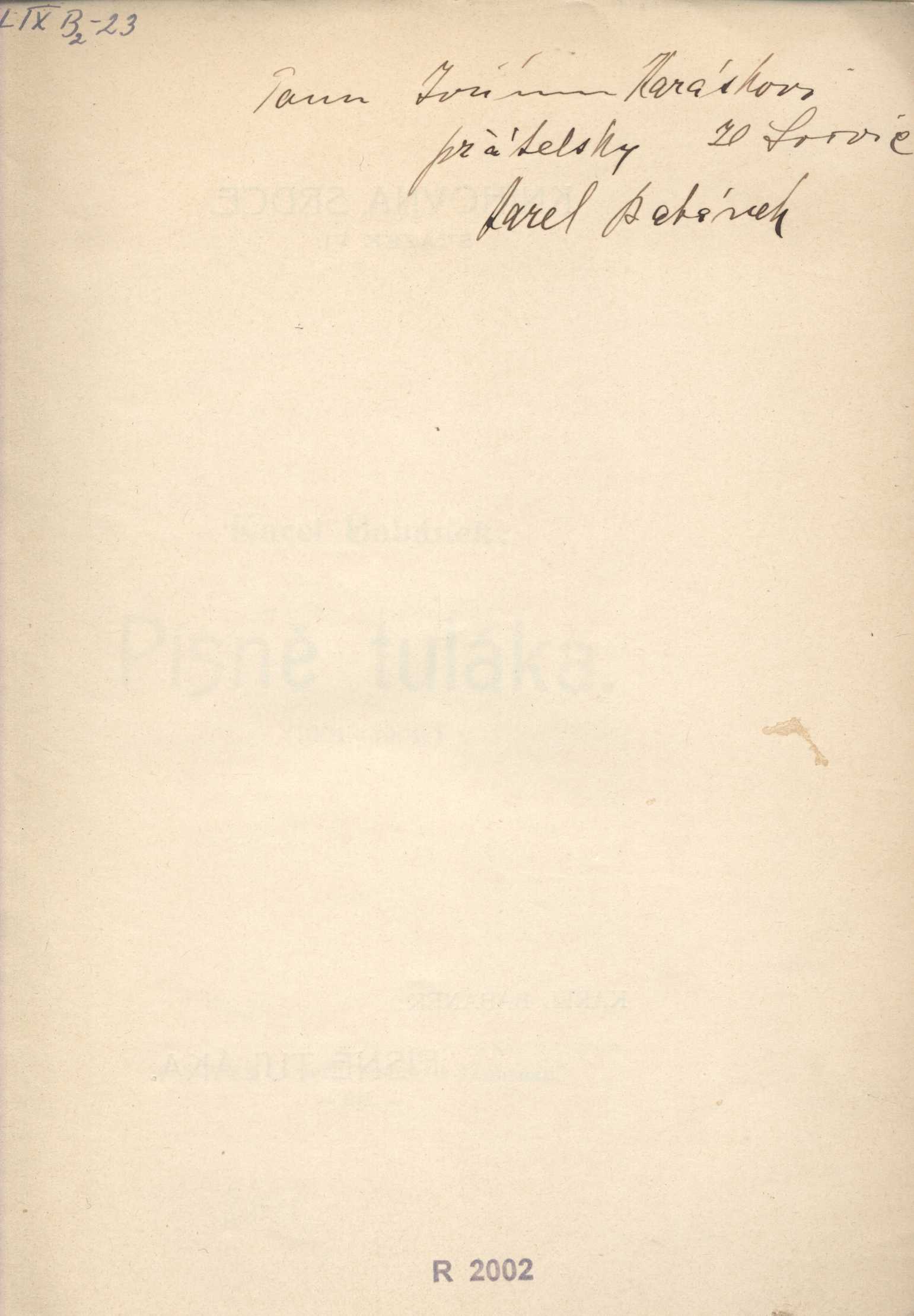 Názvové údaje XII. aukce : Knihovna Arnošta Procházky : druhá část : 17. a 18. prosince 1927 : hotel "Beránek" na Kr. Vinohradech / sestavil Karel Zink ; obálku do dřeva ryl František Kobliha Záhlaví-akce XII=12. aukce (Knihovna Arnošta Procházky) (17.-18. 12. 1927 : Hotel "Beránek", Praha, Česko) Další autoři Zink, Karel, 1889-1975 (Sestavovatel, kompilátor) (Nakladatel, vydavatel) (Dedikátor) Kobliha, František, 1877-1962 (Autor obálky) Karásek ze Lvovic, Jiří, 1871-1951 (Dedikant) Korp. Karel Zink (Praha, Česko) (Nakladatel, vydavatel) Státní tiskárna v Praze (Tiskař) Nakladatel V Praze : Karel Zink, 1927 Výrobce (Tiskem Státní tiskárny) Rozsah 74 nečíslovaných stran, 1 nečíslovaný list obrazové přílohy : ilustrace Osobní hesla Procházka, Arnošt, 1869-1925 - básník, esejista, literární a výtvarný kritik, překladatel Klíčová slova česká literatura * katalog * bibliofilie * stol. 20., léta 20. * katalog knih * vzácné tisky * aukční katalog * aukční katalog knih * bibliofilská vydání * bibliofilské tisky * soukromé knihovny * dekadence * symbolismus * přelom 19. a 20. stol. * r. 1927 * Procházka A. Počet ex. 2, z toho volných 2 Druh dok. monografie Signatura KaG XVII B 30/12, KaG LXV 312 Názvové údaje Der Garten der Erkenntnis / von Leopold Andrian Osobní jméno Andrian-Werburg, Leopold von, 1875-1951 (Autor) Další autoři Karásek ze Lvovic, Jiří, 1871-1951 (Autor podpisu) Korp. S. Fischer Verlag (nakladatelství) (Nakladatel, vydavatel) R. Boll (Berlin, Německo) (Tiskař) Nakladatel Berlin : S. Fischer, 1895 Výrobce (R. Boll) Rozsah 61 s. Klíčová slova moderní próza * rakouská literatura * dekadence * stol. 19., léta 90. Počet ex. 1, z toho volných 1 Druh dok. monografie Signatura KaG XI C 95 Názvové údaje Jitřní stíny ; Hrůza / napsal M. Arcybašev ; z ruštiny přeložil Jan Stenhart Osobní jméno Arcybašev, Michail Petrovič, 1878-1927 (Autor) Další autoři Stenhart, Jan, 1881-1915 (Překladatel) Neumannová, Kamila, 1874-1956 (Nakladatel, vydavatel) Korp. Albert Malíř (tiskárna a nakladatelství) (Tiskař) Nakladatel V Praze : K. Neumannová, 1908 Výrobce Král. Vinohrady : Tisk Alb. Malíře 1908 Rozsah 108 stran Klíčová slova ruská literatura * ruská próza * prózy * novely * dekadence * ruský symbolismus * symbolismus Počet ex. 4, z toho volných 4 Druh dok. monografie Signatura KaG XLV C 25, Hoffmeister 0381, VHB 1737, P 56 e 27 Názvové údaje Z podivných dum bardovy harfy / Louis Arleth Osobní jméno Arleth, Louis, 1876-1910 (Autor) (Nakladatel, vydavatel) Další autoři František Horálek (Praha-Vinohrady) (Knihkupec) K. Mádl (Praha, Česko) (Tiskař) Nakladatel V Praze : L. Arleth, 1897 Výrobce (Knihtiskárna K. Mádl) Rozsah 10 s. Klíčová slova česká literatura * česká poezie * česká lyrika * dekadence * stol. 20., léta 90. Počet ex. 1, z toho volných 1 Druh dok. monografie Signatura KaG XIII B 284 Názvové údaje Max Klinger als Poet / von Ferdinand Avenarius ; mit einem Briefe Max Klingers und einem Beitrage von Hans W. Singer ; herausgegeben vom Kunstwart Osobní jméno Avenarius, Ferdinand, 1856-1923 (Autor) Další autoři Singer, Hans Wolfgang, 1867-1957 (Jiná role) Karásek ze Lvovic, Jiří, 1871-1951 (Autor podpisu) Pfeifer, Felix, 1871-1945 (Sochař) Korp. Georg D. W. Callwey (München, Německo) (Nakladatel, vydavatel) Hofbuchdruckerei Kastner & Callwey (München, Německo) (Tiskař) Nakladatel München : Georg D. W. Callwey, [ca kol. r. 1920] Výrobce (Hofbuchdruckerei Kastner & Callwey) Rozsah 154 s., [1] l. obr. příl. : il. Osobní hesla Klinger, Max, 1857-1920 - německý výtvarník Klíčová slova německá literatura * německé výtvarné umění * dekadence * symbolismus * moderní umělecké směry * moderní umění * grafiky * grafika Počet ex. 1, z toho volných 1 Druh dok. monografie Signatura KaG X A 37 Názvové údaje Když slunce zapadá / Karel Babánek Osobní jméno Babánek, Karel, 1872-1937 (Autor) Další autoři Lipanská, Marie (Dárce) Korp. E. Weinfurter (nakladatelství) (Nakladatel, vydavatel) Em. Stivín (Praha) (Tiskař) Nakladatel V Praze : Nákladem knihkupectví E. Weinfurtra, 1900 Výrobce (Tiskem E. Stivína) Rozsah 34 s. Klíčová slova česká literatura * česká poezie * básně * lyrika * dekadence Počet ex. 2, z toho volných 2 Druh dok. monografie Signatura C12a 2795, KaG LIX B2 25 Názvové údaje Písně tuláka : (1901-1902) / Karel Babánek Osobní jméno Babánek, Karel, 1872-1937 (Autor) Další autoři Beneš Buchlovan, Bedřich, 1885-1953 (Dřívější majitel) (Dárce) Lipanská, Marie (Dárce) Korp. Kunc & Hamerský (Kostelec nad Orlicí, Česko) (Tiskař) Nakladatel V Žamberku : Nákladem časopisu " Srdce", 1902 Výrobce Tiskem Kunce a Hamerského) Rozsah 36 s. Klíčová slova česká literatura * česká poezie * básně * lyrika * tuláci * dekadence Počet ex. 3, z toho volných 3 Druh dok. monografie Signatura C12b 7278, KaG V23A 82, KaG LIX B2 23 Názvové údaje Přízraky / Karel Babánek Osobní jméno Babánek, Karel, 1872-1937 (Autor) Další autoři Nakladatelství B. Janda - Sfinx (Nakladatel, vydavatel) Nakladatel [Praha] Královské Vinohrady : Vydavatelství "Sfinx", 1920 Výrobce V Týně nad Vltavou : tiskl J. Hauser Rozsah 216 stran ; 18 cm Klíčová slova česká literatura * česká próza * povídky * tajemné příběhy * dekadence * stol. 20., léta 10.-20. Počet ex. 1, z toho volných 1 Druh dok. monografie Signatura P 94 D 48 Názvové údaje Stíny v duši / Karel Babánek Osobní jméno Babánek, Karel, 1872-1937 (Autor) (Dedikátor) Další autoři Nedoma, Miloslav, 1875-1954 (Dárce) Karásek ze Lvovic, Jiří, 1871-1951 (Dedikant) Hlaváček, Karel, 1874-1898 (Autor podpisu) Lipanská, Marie (Dárce) Korp. Moderní revue (nakladatelství) (Nakladatel, vydavatel) Em. Stivín (Praha) (Tiskař) Nakladatel Praha : Moderní revue, 189