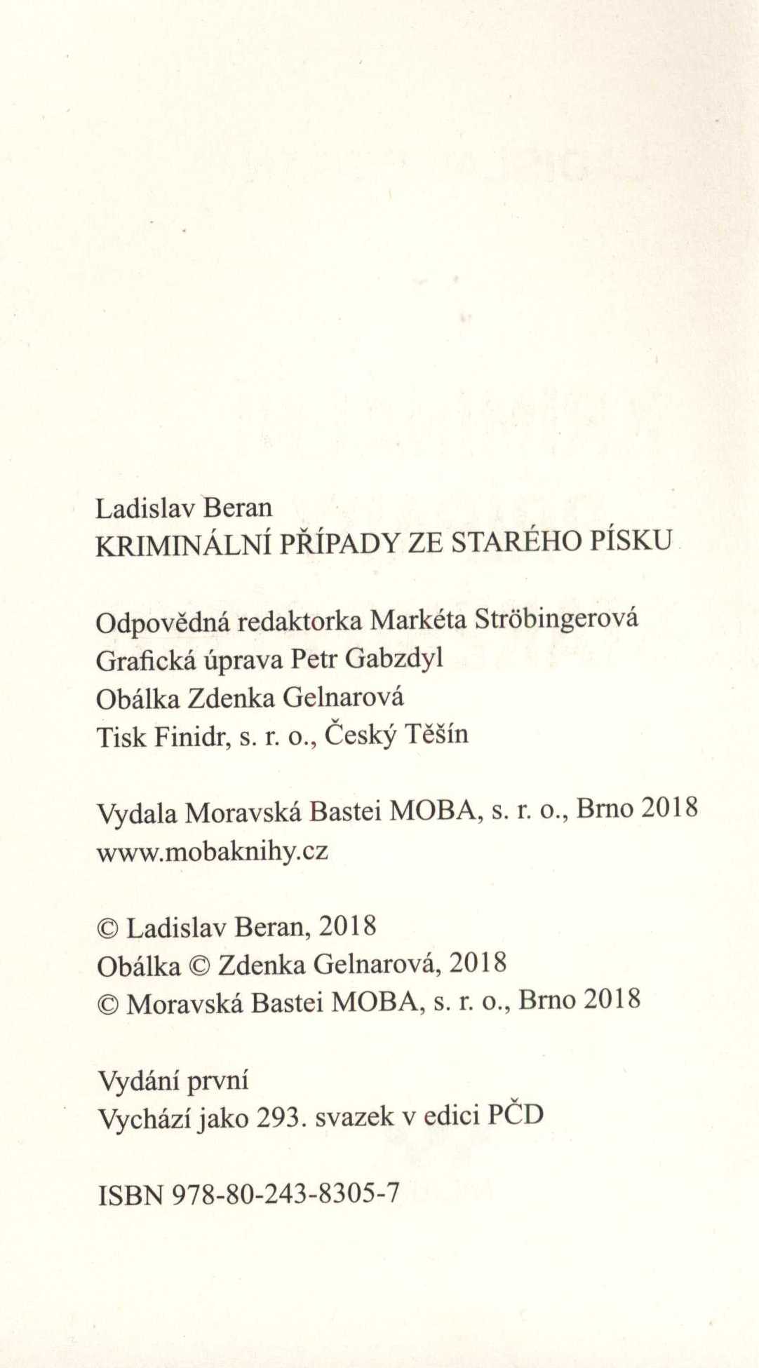 Názvové údaje Vrah nebere telefon : Kriminalistické povídky / Ladislav Beran ; Obálka a front. František Doubek ; Typogr. úpr. René Rücker Osobní jméno Beran, Ladislav, 1945- (Autor) Další autoři Doubek, František, 1940-2011 (Ilustrátor) Rücker, René (Grafický technik) Nakladatel Vimperk : Nakladatelství Tiskárny Vimperk, 1992 Rozsah 206 s. Klíčová slova česká literatura * próza * detektivní příběhy Počet ex. 1, z toho volných 1 Druh dok. monografie Signatura M 215 f 36 Názvové údaje Poslední noc / Milena Brůhová ; [obálku navrhl Zdeněk Majzner ; typografie Vlasta Machová] Osobní jméno Brůhová, Milena, 1931-2014 (Autor) Další autoři Majzner, Zdeněk, 1932- (Autor obálky) Machová, Vlasta (Typograf) Korp. Melantrich (nakladatelství) (Nakladatel, vydavatel) Nakladatel Praha : Melantrich, 1980 Výrobce (Mír 3) Rozsah 269 s. ; 8° Klíčová slova česká literatura * česká próza * detektivní příběhy Počet ex. 2, z toho volných 2 Druh dok. monografie Signatura MEL 1924, MEL 1924a Názvové údaje Ráj podvodníků / Karel Dobeš ; [obálku navrhl Zdeněk Majzner ; typografie Vlasta Machová] Osobní jméno Dobeš, Karel, 1922-2002 (Autor) Další autoři Majzner, Zdeněk, 1932- (Autor obálky) Machová, Vlasta (Typograf) Korp. Melantrich (nakladatelství) (Nakladatel, vydavatel) Nakladatel Praha : Melantrich, 1981 Výrobce Tisk 6) Rozsah 325 s. ; 16 cm Klíčová slova česká literatura * česká próza * detektivní příběhy Počet ex. 1, z toho volných 1 Druh dok. monografie Signatura MEL 1927