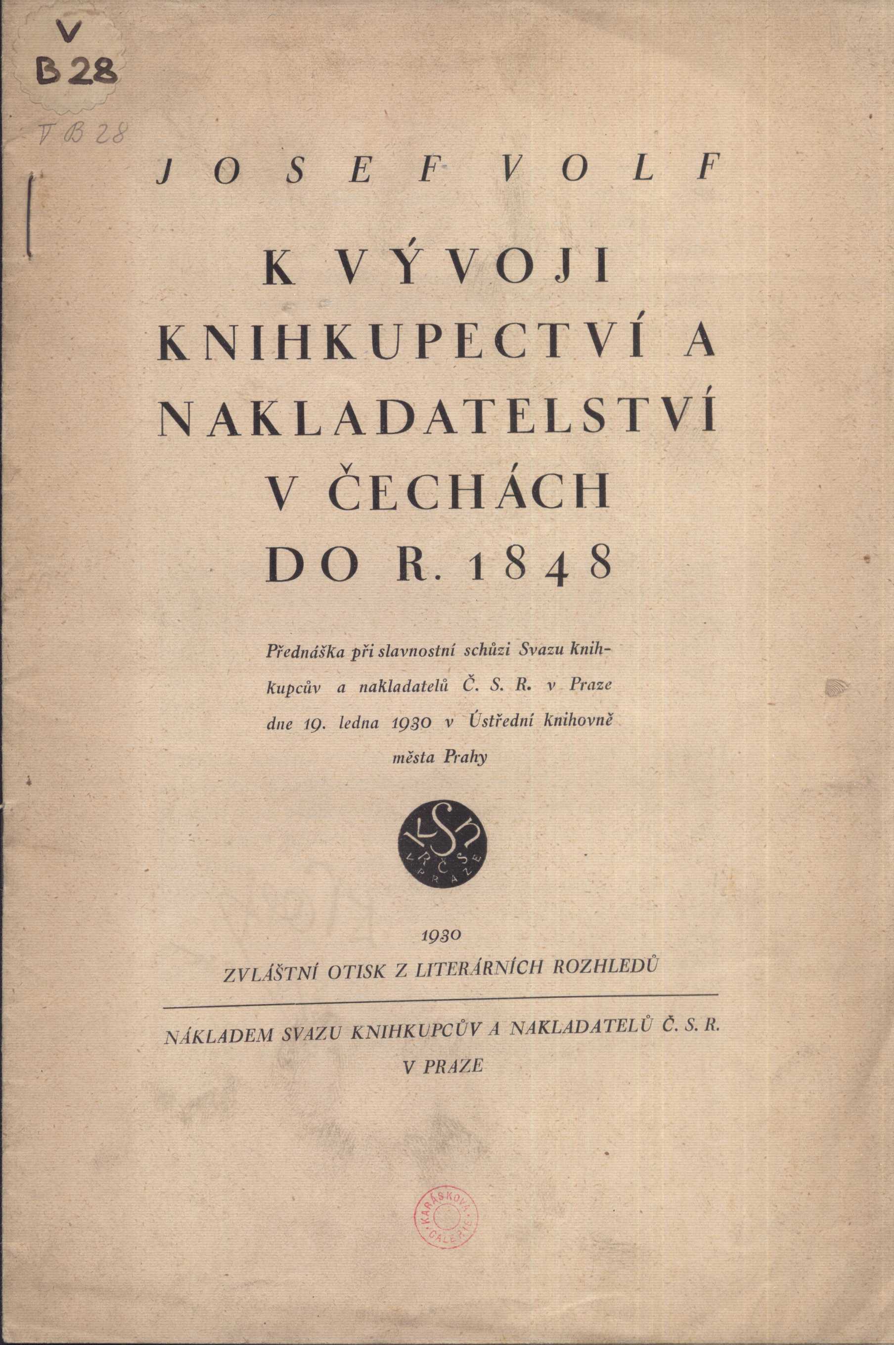 Názvové údaje Dějiny Karlovarského kraje. První díl, Od pravěku do konce feudálního období (1848) / Alexander Gross. [návrh obálky a grafická úprava od akademického malíře Břetislava Wernera] Osobní jméno Gross, Alexander, 1918-1986 (Autor) Další autoři Werner, Břetislav, 1911-1986 (Knižní grafik) (Autor obálky) Nakladatel Karlovy Vary : Krajské vlastivědné museum, 1954 Výrobce Západočeské tiskárny) Rozsah 167 s. : il. Geografické heslo Karlovy Vary (Česko : oblast) Klíčová slova dějiny lázeňství města panství * Karlovarsko * karlovarský kraj * Česko * dějiny kraje * feudalismus * šlechta * města * lázňství * do r. 1848 * přehledy Počet ex. 1, z toho volných 1 Druh dok. monografie Signatura ZKSlabý 0861 Názvové údaje Antologie z dějin českého a slovenského filozofického myšlení : (do roku 1848) Další autoři Černý, Jiří, 1928-1982 (Autor úvodu atd.) (Autor doslovu, tiráže atd.) Pošmurný, Oldřich, 1942-2010 (Autor obálky) (Výtvarník vazby) (Knižní grafik) Korp. Ústav pro filozofii a sociologii (Československá akademie věd) Nakladatelství Svoboda (Nakladatel, vydavatel) Rudé právo (tiskárna, Praha) (Tiskař) Nakladatel Praha : Nakladatelství Svoboda, 1981 Výrobce Praha : Rudé právo, tiskařské závody Rozsah 679 stran : ilustrace, fotografie, faksimile ; 23 cm Klíčová slova česká literatura * dějiny * Čechy * Slovensko * české myšlení * filozofické myšlení * antologie * do r. 1848 * obrazové přílohy Počet ex. 6, z toho volných 4, prezenčně 2 Adr. el. zdr. http://krameriusndk.nkp.cz/search/handle/uuid:6d5b8960-7f21-11e2-aa68-005056827e51 Druh dok. monografie Signatura VZinková 0634, M 126 d 6, M 163 c 10, N/A, N/A, M 123 c 24 Názvové údaje K vývoji knihkupectví a nakladatelství v Čechách do r. 1848 : přednáška při slavnostní schůzi Svazu knihkupcův a nakladatelů Č. S. R. v Praze dne 19. ledna 1930 v Ústřední knihovně města Prahy / Josef Volf Osobní jméno Volf, Josef, 1878-1937 (Autor) (Autor podpisu) Další autoři Svaz knihkupců a nakladatelů Čsl. republiky (Praha) (Nakladatel, vydavatel) Nakladatel V Praze : Nákladem Svazu knihkupců a nakladatelů Č. S. R., 1930 Rozsah 15 stran : ilustrace Klíčová slova česká literatura * česká nakladatelství * knižní trh * do r. 1848 * knižní kultura * dějiny knižní kultury Počet ex. 1, z toho volných 1 Druh dok. monografie Signatura KaG V B 28