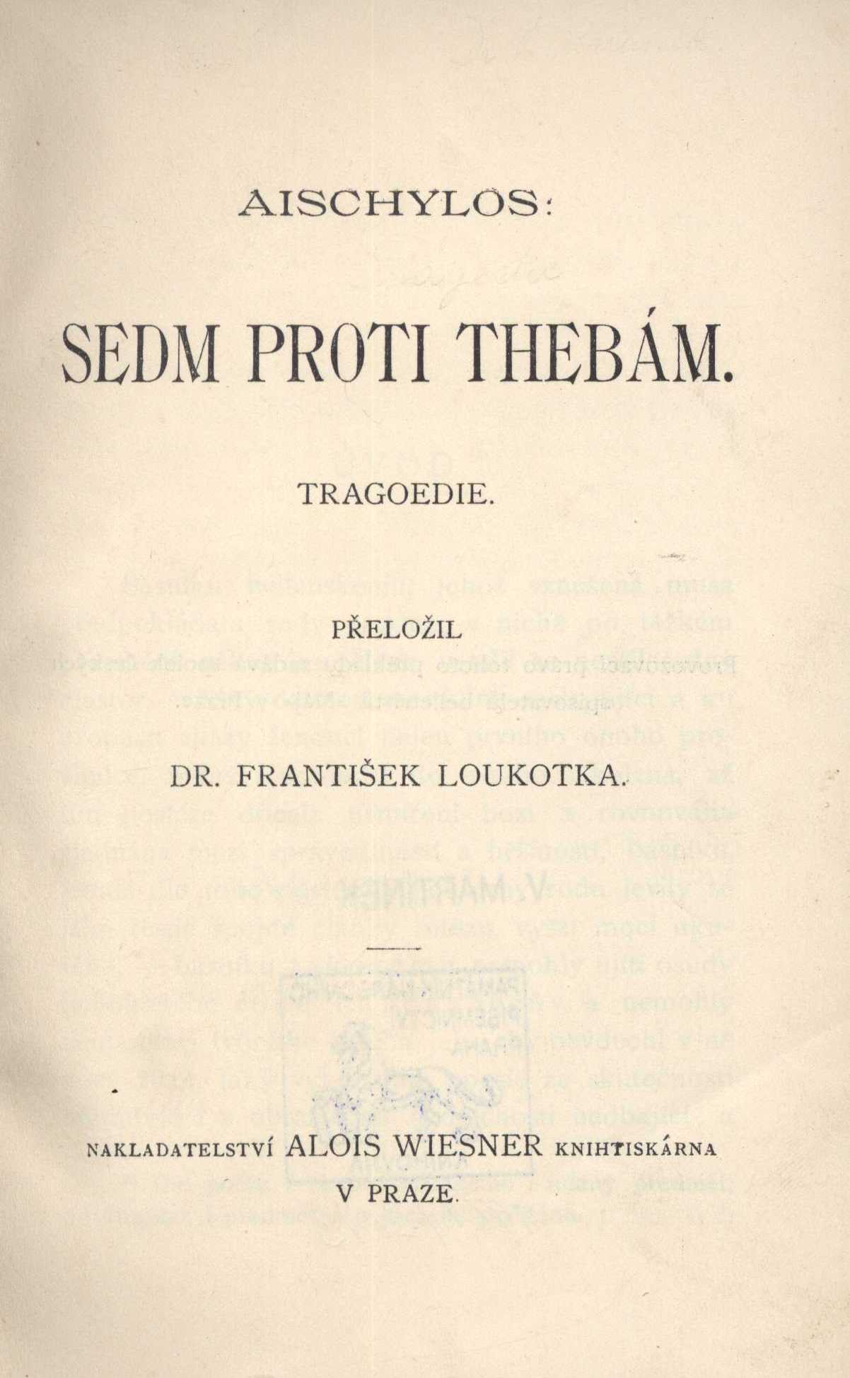 Názvové údaje Farářova kuchařka : obraz ze života v pěti jednáních / od Berga ; pro české divadlo upravila Eliška Pešková. Doktor Faust, aneb, Nevěsta z pekla : truchlohra v pěti jednáních / od Aug. Klingemanna ; překlad od J.K. Tyla Osobní jméno Ebersberg , Otto Franz (Autor) Další autoři Klingemann, Aug.. Doktor Faust, aneb Nevěsta z Pekla Pešková, Eliška, 1833-1895 (Editor) Nakladatel V Praze-Karlíně : M. Knapp, [1913] Rozsah 122 s. ; 19 cm Klíčová slova česká dramata * divadelní hry * drama Počet ex. 1, z toho volných 1 Druh dok. monografie Signatura DSK 106 Názvové údaje Hra pod loubím ; Robin a Marion / Adam de la Halle ; z francouzských originálů Jue de la feuillée a Jeu de Robin et Marion přeložil a předmluvou a poznámkami opatřil Pavel Eisner Autor Adam de La Halle, asi 1240-asi 1288 (Autor) Další autoři Eisner, Pavel, 1889-1958 (Překladatel) (Autor úvodu atd.) Korp. Státní nakladatelství krásné literatury, hudby a umění (Nakladatel, vydavatel) Nakladatel Praha : Státní nakladatelství krásné literatury, hudby a umění, 1956 Rozsah 135 stran ; 21 cm Klíčová slova francouzská dramata * veršované drama * divadelní hry Počet ex. 2, z toho volných 2 Druh dok. monografie Signatura Janeček 1893, M 174e 21 Názvové údaje Salomena : tragedie v pěti dějstvích / napsal Bohumil Adámek Osobní jméno Adámek, Bohumil, 1848-1915 (Autor) Další autoři Jeřábek, Josef, 1877-1957 (Autor podpisu) Korp. F. Šimáček (nakladatelství, tiskárna) (Nakladatel, vydavatel) Nakladatel Praha : Tiskem a nákladem Františka Šimáčka, 1885 Rozsah 194 stran Klíčová slova česká literatura * divadelní hra * české drama * tragédie * stol. 19., léta 80. Počet ex. 5, z toho volných 5 Druh dok. monografie Signatura C12a 2054, P 20 g 67, P 94 g 39, KaG XV B 277, VMartínek 1367 Názvové údaje Meer und Gebirge / Günther Adler Osobní jméno Adler, Hans Günther, 1910-1988 (Autor) (Dedikátor) Další autoři Karásek ze Lvovic, Jiří, 1871-1951 (Dedikant) Korp. Heim-Verlag Adolf Dreßler (Radolfzell a. Bodensee, Německo) (Nakladatel, vydavatel) Buch- und Steindruckerei Josef Gschihay (Mariánské Lázně, Česko) (Tiskař) Nakladatel Radolfzell a. Bodensee : Heim-Verlag Adolf Dreßler, 1931 Výrobce Buch- und Steindruckerei Josef Gschihay) Rozsah 35 s. Klíčová slova německá literatura * drama * drama ve verších * stol. 20., léta 30. * r. 1931 Počet ex. 1, z toho volných 1 Druh dok. monografie Signatura KaG XI C 96 Názvové údaje Aischylos / verdeutscht von Hans von Wolzogen. fünfter Band, Agamemnon Autor Aischylos, 525-456 př.n.l. (Autor) Další autoři Wolzogen, Hans von, 1848-1938 (Překladatel) Korp. Philipp Reclam jun. (nakladatelství a tiskárna) (Nakladatel, vydavatel) Nakladatel Leipzig : Druck und Verlag von Philipp Reclam jun., [1---] Rozsah 64 s. Klíčová slova klasická řecká literatura * řecká literatura * antická literatura * antická dramata * antické drama * antická tragédie * antické tragédie * tragédie Počet ex. 1, z toho volných 1 Druh dok. monografie Signatura VHB 3021 Názvové údaje Oresteia / Aischylos ; z řeckého originálu přeložil, úvodní studií a poznámkami doplnil Ferdinand Stiebitz ; obálku navrhl a graficky upravil František Muzika Autor Aischylos, 525-456 př.n.l. (Autor) Další autoři Stiebitz, Ferdinand, 1894-1961 (Překladatel) (Autor úvodu atd.) Muzika, František, 1900-1974 (Autor obálky) (Knižní grafik) Korp. Fr. Borový (firma) (Nakladatel, vydavatel) Akciová moravská knihtiskárna Polygrafie (Tiskař) Nakladatel V Praze : Fr. Borový, 1944 Výrobce Brno : Akc. moravská knihtiskárna Polygrafie Rozsah 316 stran : ilustrace Osobní hesla Aischylos, 525-456 př.n.l. - řecký dramatik Klíčová slova antická literatura * klasická řecká literatura * drama * tragédie Počet ex. 6, z toho volných 6 Druh dok. monografie Signatura AFB 1624, P 75 C 35, M 104 f 24, M 153 b 24, P 19 b 29, Janeček 0504 Názvové údaje Oresteia : usmíření Lítice / Aischylos ; [z řeckého originálu přeložil, úvodní studií a poznámkami doplnil Ferdinand Stiebitz ; obálku navrhl a graficky upravil František Muzika ; v úpravě Josefa Bohuslava] Autor Aischylos, 525-456 př.n.l. (Autor) Další autoři Stiebitz, Ferdinand, 1894-1961 (Překladatel) (Autor úvodu atd.) Muzika, František, 1900-1974 (Grafický technik) Bohuslav, Josef (Grafický technik) Nakladatel Praha : Fr. Borový, 1944 Rozsah 316 s. ; 21 cm Klíčová slova řecká literatura * překlady * antické drama * r. 1944 Počet ex. 2, z toho volných 2 Druh dok. monografie Signatura Holan 1035, MUK 1319 Názvové údaje Die Oresteie des Aischylos / Deutsch von Karl Vollmoeller Autor Aischylos, 525-456 př.n.l. (Autor) Další autoři Vollmöller, Karl, 1878-1948 (Překladatel) Korp. S. Fischer Verlag (nakladatelství) (Nakladatel, vydavatel) Spamerschen Buchdruckerei (tiskárna) (Tiskař) Nakladatel Berlin : S. Fischer, Verlag, 1911 Výrobce Druck der Spamerschen Buchdruckerei) Rozsah 154 s. Klíčová slova klasická řecká literatura * řecká literatura * řecká dramata * řecké divadlo * tragédie * antické tragédie * antická tragédie * antická literatura * antická dramata * antické drama Počet ex. 1, z toho volných 1 Druh dok. monografie Signatura VHB 3019 Názvové údaje Sedm proti Thebám : tragoedie / Aischylos ; přeložil František Loukotka Autor Aischylos, 525-456 př.n.l. (Autor) Další autoři Loukotka, František, 1857-1936 (Překladatel) Korp. Alois Wiesner, knihtiskař České akademie císaře Františka Josefa pro vědy, slovesnost a umění (Praha) (Nakladatel, vydavatel) Nakladatel V Praze : Alois Wiesner, [1899] Rozsah 84 s. ; 18 cm Klíčová slova řecká dramata * řecké divadlo * řecká literatura * antická literatura * tragédie * klasická řecká literatura * antická tragédie * antická dramata * řecká dramata * překlad