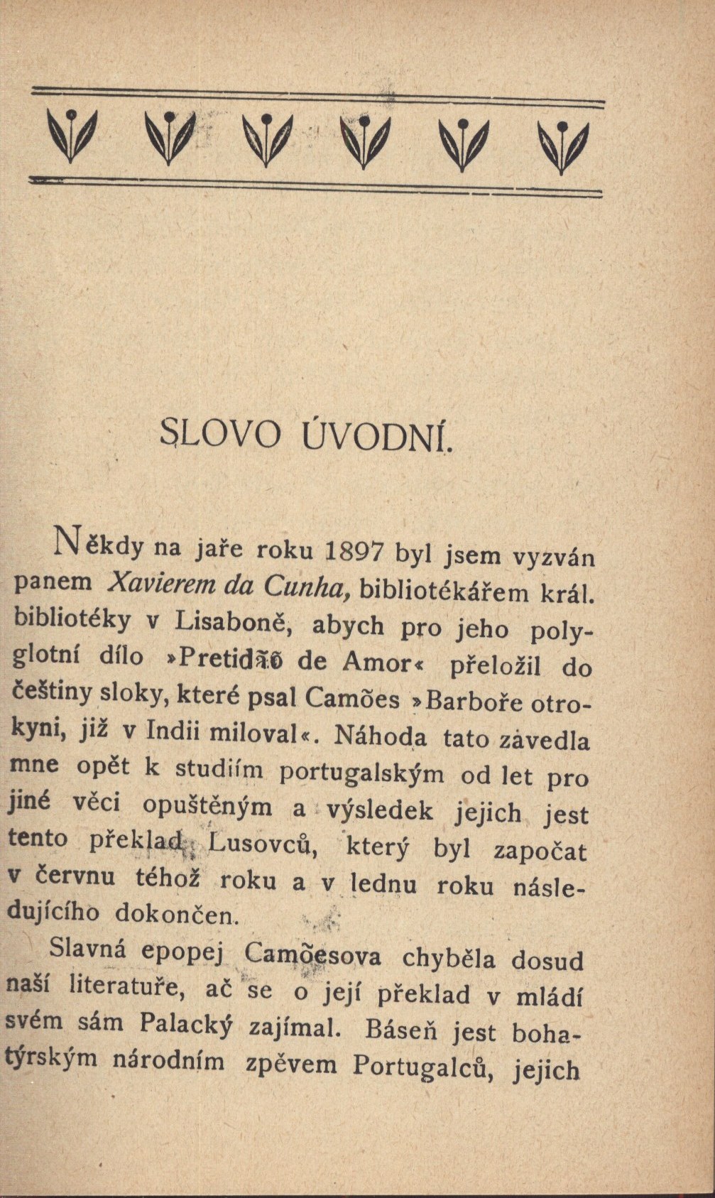 Názvové údaje Childe-Haroldova pouť / Lord Byron ; přeložila Eliška Krásnohorská Osobní jméno Byron, George Gordon Byron, baron, 1788-1824 (Autor) Další autoři Krásnohorská, Eliška, 1847-1926 (Dedikátor) (Autor) Maršál, Stanislav, [nar. asi 1910 (Anotátor, autor rukopisných poznámek) Korp. F. Šimáček (nakladatelství, tiskárna) (Nakladatel, vydavatel) Nakladatel V Praze : F. Šimáček, 1890 Rozsah 245 s. Klíčová slova anglická poezie * romantický epos * verše * stol. 19., léta 10. Počet ex. 2, z toho volných 2 Druh dok. monografie Signatura C12a 462, C12a 4064 Názvové údaje Lusovci = (Os Lusiadas) : báseň o desíti zpěvech. I / Luiz de Camões ; přeložil formou originalu Jaroslav Vrchlický Osobní jméno Camões, Luís de, asi 1524-1580 (Autor) Další autoři Vrchlický, Jaroslav, 1853-1912 (Překladatel) (Autor úvodu atd.) Korp. J. Otto (nakladatelství) (Nakladatel, vydavatel) Veleslavín, spol. s r. o. (knihtiskárna) (Tiskař) Nakladatel V Praze : Nakladatelství J. Otto spol. s r. o., [1902] Výrobce Praha : Knihtiskárna Veleslavín Rozsah 167 stran, 234 stran přívazku ; 15 cm Klíčová slova portugalská literatura * poezie * Camỡes L. de * překlad * Vrchlický J. * epos * bohatýrské skladby * Portugalsko * stol. 16. Počet ex. 1, z toho volných 1 Druh dok. monografie Signatura C12a 5659 Odkazy (1) - Monografie Názvové údaje Lusovci = Os Lusiadas : báseň o desíti zpěvech I. / Luiz de Camões ; přeložil formou originalu Jaroslav Vrchlický Osobní jméno Camões, Luís de, asi 1524-1580 (Autor) Další autoři Vrchlický, Jaroslav, 1853-1912 (Překladatel) (Autor úvodu atd.) Korp. J. Otto (nakladatelství) (Nakladatel, vydavatel) Česká grafická akciová společnost Unie (v Praze) (Tiskař) Nakladatel V Praze : Nákladem J. Otty, 1902 Výrobce V Praze : Tiskem České grafické společnosti Unie, 1902 Rozsah 167 stran Klíčová slova poezie * portugalská literatura * epická poezie * epos * eposy * hrdinské eposy Počet ex. 1, z toho volných 1 Druh dok. monografie Signatura VHB 1913/1 Názvové údaje Lusovci = (Os Lusiadas) : báseň o desíti zpěvech. II / Luiz de Camões ; přeložil formou originalu Jaroslav Vrchlický Osobní jméno Camões, Luís de, asi 1524-1580 (Autor) Další autoři Vrchlický, Jaroslav, 1853-1912 (Překladatel) Korp. J. Otto (nakladatelství) (Nakladatel, vydavatel) Česká grafická akciová společnost Unie (v Praze) (Tiskař) Nakladatel V Praze : nákladem J. Otty, 1902 Výrobce V Praze : tiskem České Grafické společnosti 'Unie' Rozsah 234 stran ; 15 cm Klíčová slova portugalská literatura * poezie * Camỡes L. de * překlad * Vrchlický J. * epos * bohatýrské skladby * Portugalsko * stol. 16. Počet ex. 1, z toho volných 1 Druh dok. monografie Signatura C12a 5659/přív.1 Odkazy (1) - Monografie Názvové údaje Lusovci = Os Lusiadas : báseň o desíti zpěvech II. / Luiz de Camões ; přeložil formou originalu Jaroslav Vrchlický Osobní jméno Camões, Luís de, asi 1524-1580 (Autor) Další autoři Vrchlický, Jaroslav, 1853-1912 (Překladatel) Korp. J. Otto (nakladatelství) (Nakladatel, vydavatel) Česká grafická akciová společnost Unie (v Praze) (Tiskař) Nakladatel V Praze : Nákladem J. Otty, 1902 Výrobce V Praze : Tiskem České grafické společnosti Unie, 1902 Rozsah 234 stran Klíčová slova poezie * portugalská literatura * epická poezie * epos * eposy * hrdinské eposy Počet ex. 1, z toho volných 1 Druh dok. monografie Signatura VHB 1913/2 Názvové údaje Václav z Michalovic / Svatopluk Čech ; s úvodem od Ferdinanda Strejčka Osobní jméno Čech, Svatopluk, 1846-1908 (Autor) Další autoři Strejček, Ferdinand, 1878-1963 (Autor úvodu atd.) Korp. Topičova edice (nakladatelství) (Nakladatel, vydavatel) H. Lüdemann (Český Těšín) (Tiskař) Nakladatel Praha : Topičova edice, 1946 Výrobce Knihtiskárna H. Lüdemann) Rozsah 130 s. Klíčová slova česká poezie * epická poezie * epos * pobělohorská doba * r. 1946 Počet ex. 1, z toho volných 1 Druh dok. monografie Signatura C12b 10688 Názvové údaje Václav z Michalovic / Svatopluk Čech ; [v grafické úpravě Cyrila Boudy ; frontispis Antonín Majer] Osobní jméno Čech, Svatopluk, 1846-1908 (Autor) Další autoři Bouda, Cyril, 1901-1984 (Knižní grafik) Majer, Antonín, 1882-1963 (Ilustrátor) Korp. Topičova edice (nakladatelství) (Nakladatel, vydavatel) H. Lüdemann (Český Těšín) (Tiskař) (Tiskař obrazu) Nakladatel Praha : Topičova edice, spol. s r. o., 1946 Výrobce Knihtiskárna H. Lüdemann, národní správa) Rozsah 130 s., [1] l. il. ; 22 cm Klíčová slova česká literatura * poezie * básně * epos * pobělohorská doba Počet ex. 2, z toho volných 2 Druh dok. monografie Signatura MUK 1804, Topič 0130 Názvové údaje Bachram Gur i Azade iz Šach-name / Ferdovsi Osobní jméno Firdausí, Abu'l-Kásim Mansúr, asi 934-asi 1020 (Autor) Nakladatel Leningrad : Gosudarstvennyj ermitaž, Muzej istorii kul'tury i iskusstva, 1935 Rozsah 22 s., [6] s. : il. Klíčová slova perská literatura * epos Počet ex. 1, z toho volných 1 Druh dok. monografie Signatura Hoffmeister 0073 Názvové údaje Herman a Dorota : epos idylické / z německého Jana Volfganga Goethe přeložil Josef Jungmann Osobní jméno Goethe, Johann Wolfgang von, 1749-1832 (Autor) Další autoři Jungmann, Josef, 1773-1847 (Překladatel) Korp. I.L. Kober (nakladatelství, tiskárna, knihkupectví) (Nakladatel, vydavatel) Národní kněhtiskárna I.L. Kober (tiskárna) (Tiskař) Nakladatel V Praze : Nákladem knihkupectví I. L. Kobrova, 1889 Rozsah 59 s. Klíčová slova německá literatura * německá poezie * epos * klasicismus Počet ex. 1, z toho volných 1 Druh dok. monografie Signatura KaG XXVIII C 111 Názvové údaje Osman / Ivan Gundulić ; se zpěvem 14. a 15. od Ivana Mažuraniče ; přeložil Josef Vinař. díl 1., zpěv 1-9. Osobní jméno Gundulić, Ivan, 1589-1638 (Aut