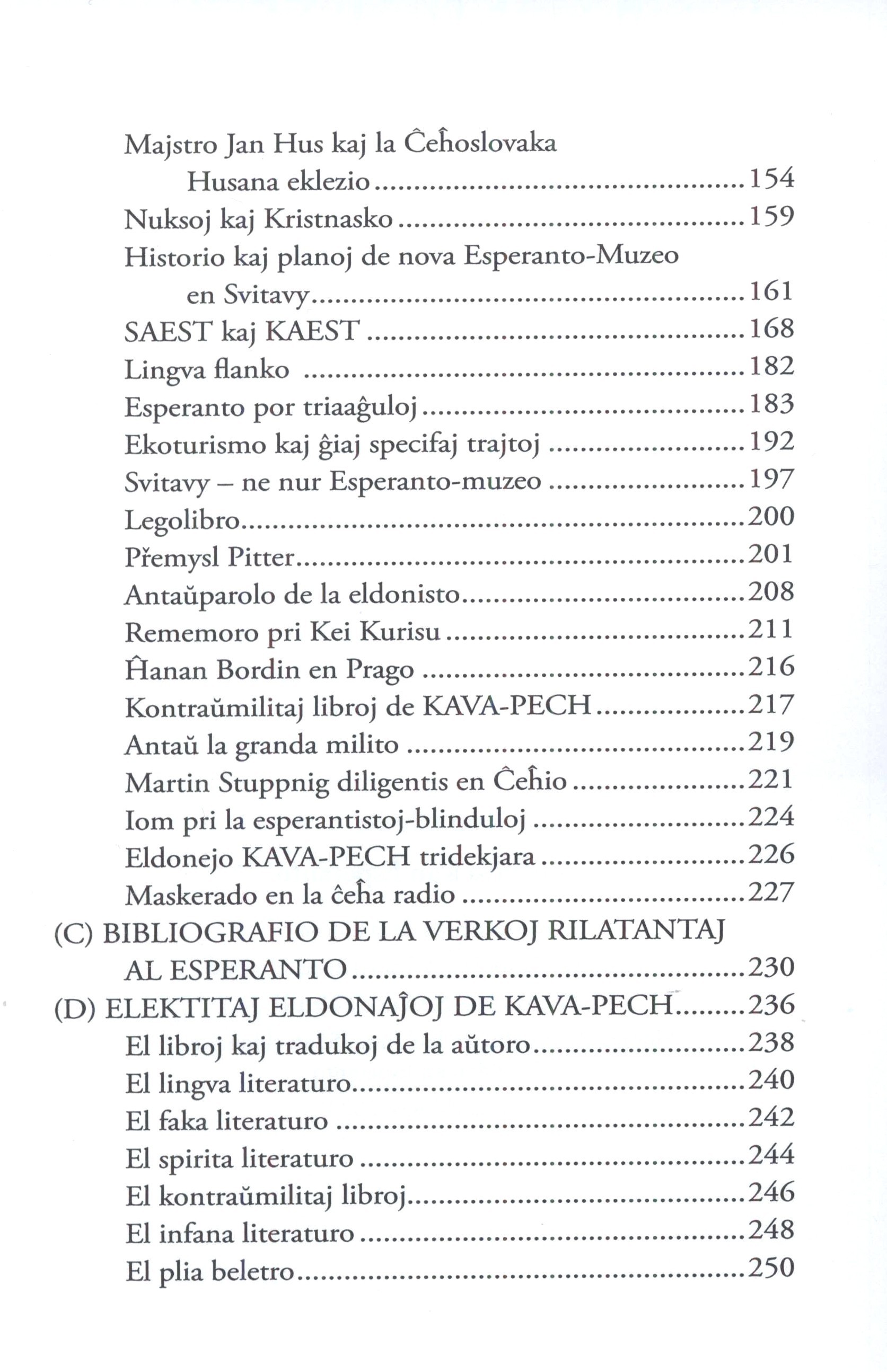 Názvové údaje Francisko Valdomiro Lorenz : atesto pri la vivo kaj verko de eksterordinara homo / Vlastimil Novobilský ; tradukis: Margit Turková ; grafika aranĝo, kovrilo kaj enpaĝigo: Luděk Neužil Osobní jméno Novobilský, Vlastimil, 1935-2021 (Autor) Další autoři Turková, Margit, 1939- (Překladatel) Neužil, Luděk, 1955- (Knižní grafik) (Typograf) (Autor obálky) Korp. KAVA-PECH (nakladatelství) (Nakladatel, vydavatel) Nakladatel Dobřichovice : KAVA-PECH, 2017 Rozsah 159 stran : ilustrace, portréty, faksimile ; 20 cm Osobní hesla Lorenc, František Vladimír, 1872-1957 - lékař, učitel, novinář, redaktor, beletrista, překladatel, esperantista Klíčová slova esperantisté * překladatelé * Češi * emigrace a imigrace * Česko * Brazílie * r. 1872-1957 * stol. 19.-20. * autobiografické vzpomínky Počet ex. 1, z toho volných 1 Druh dok. monografie Signatura LITb 02946 Názvové údaje František Vladimír Lorenc : svědectví o životě a díle neobyčejného člověka / Vlastimil Novobilský ; grafická úprava, DTP a obálka: Luděk Neužil Osobní jméno Novobilský, Vlastimil, 1935-2021 (Autor) Další autoři Neužil, Luděk, 1955- (Knižní grafik) (Typograf) (Autor obálky) Korp. KAVA-PECH (nakladatelství) (Nakladatel, vydavatel) Akcent tiskárna Vimperk (Tiskař) Nakladatel Dobřichovice : KAVA-PECH, 2017 Výrobce Akcent tiskárna Vimperk, s.r.o. Rozsah 151 stran : ilustrace, portréty, faksimile ; 20 cm Osobní hesla Lorenc, František Vladimír, 1872-1957 - lékař, učitel, novinář, redaktor, beletrista, překladatel, esperantista Klíčová slova esperantisté * překladatelé * Češi * emigrace a imigrace * Česko * Brazílie * r. 1872-1957 * stol. 19.-20. * autobiografické vzpomínky Počet ex. 1, z toho volných 1 Druh dok. monografie Signatura LITb 02945 Názvové údaje Mia vivo kun Esperanto / Petr Chrdle ; fotoj arhivo de la aŭtoro ; grafika aranĝo Luděk Neužil Osobní jméno Chrdle, Petr, 1946- (Autor) (Fotograf) Další autoři Neužil, Luděk, 1955- (Knižní grafik) Korp. KAVA-PECH (nakladatelství) (Nakladatel, vydavatel) Nakladatel Dobřichovice : KAVA-PECH, 2023 Rozsah 251 stran : ilustrace, portréty, faksimile ; 23 cm Osobní hesla Chrdle, Petr, 1946- - podnikatel, vydavatel české, esperantské a jinojazyčné literatury Klíčová slova nakladatelé a vydavatelé * esperantisté * esperantské hnutí * Česko * stol. 20.-21. * autobiografické vzpomínky Počet ex. 1, z toho volných 1 Druh dok. monografie Signatura LITc 0924