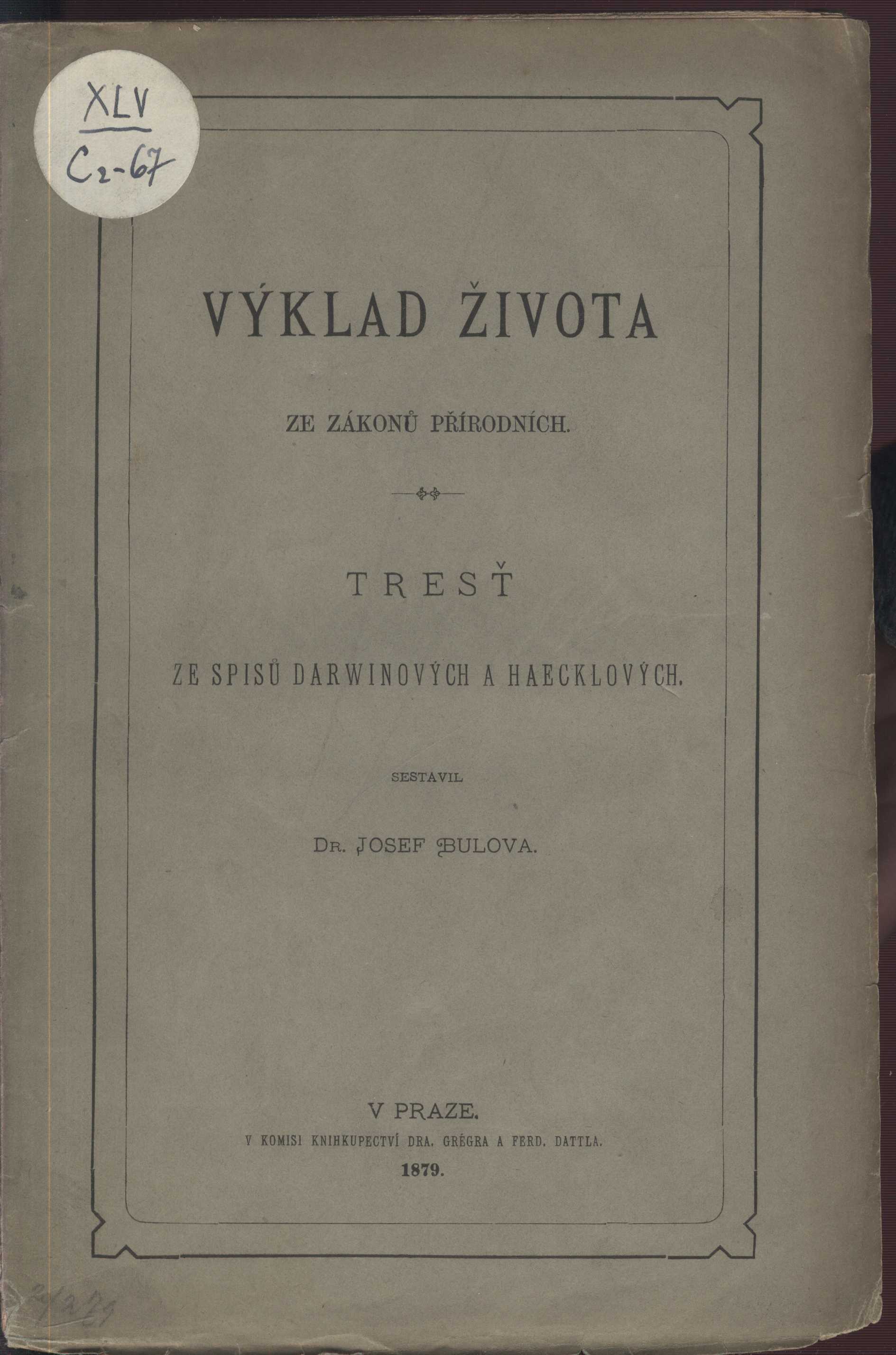 Názvové údaje Depuis Darwin jusqua nos jours / Anglas Osobní jméno Anglas, Jules Philippe Louis, 1869- (Autor) Nakladatel Paris : Librairie Stock, 1924 Rozsah 128 stran : ilustrace ; 14 cm Klíčová slova darwinismus * evoluce * život Počet ex. 1, z toho volných 1 Druh dok. monografie Signatura M 173 g 53 Názvové údaje Opolidé a předlidé / Josef Augusta ; [ilustrace, kresba na obálce a vazbě Zdeněk Burian ; grafická úprava, obálka a vazba Jan Wild] Osobní jméno Augusta, Josef, 1903-1968 (Autor) Další autoři Burian, Zdeněk, 1905-1981 (Ilustrátor) Wild, Jan (Autor obálky) (Grafický technik) Korp. Mladá fronta (nakladatelství) (Nakladatel, vydavatel) Mír, novinářské závody (tiskárna) (Tiskař) Nakladatel Praha : Mladá Fronta, 1961 Výrobce (Mír) Rozsah 250 s. : il. Klíčová slova česká literatura * geologie * evoluce * vývoj * lidstvo Počet ex. 1, z toho volných 1 Druh dok. monografie Signatura Hoffmeister 0100 Názvové údaje Vývoj života na naší zemi : cyklus čtyř přednášek z oboru věd přírodních / Boh. Bauše Osobní jméno Bauše, Bohumil, 1845-1924 (Autor) Další autoři F. Topič (nakladatelství) (Nakladatel, vydavatel) Unie (tiskárna) (Tiskař) Nakladatel V Praze : F. Topič, [1910] Výrobce (Tiskem "Unie") Rozsah 89 s. Klíčová slova česká literatura * přírodní vědy * přírodověda * vývoj * evoluce Počet ex. 1, z toho volných 1 Druh dok. monografie Signatura KaG XXI E2 29 Názvové údaje Výklad života ze zákonů přírodních : tresť ze spisů Darwinových a Haecklových / sestavil Josef Bulova Osobní jméno Bulova, Josef Adolf, 1840-1903 (Autor) (Nakladatel, vydavatel) Další autoři Dr. Ed. Grégr (nakladatelství, tiskárna) (Tiskař) Nakladatel V Praze : [J. Bulova], 1879 Výrobce (Tiskem knihtiskárny Dra. Ed. Grégra) Rozsah 134 s. Osobní hesla Haeckel, Ernst, 1834-1919 - německý přírodovědec * Darwin, Charles Robert, 1809-1882 - britský přírodovědec Klíčová slova česká literatura * příroda * přírodní vědy * evoluce * evoluční teorie * Darwin Ch. * darwinismus Počet ex. 1, z toho volných 1 Druh dok. monografie Signatura KaG XLV C2 67 Názvové údaje Charles Darwin, über die Entstehung der Arten durch natürliche Zuchtwahl, oder, Die Erhaltung der begüngstigten Rassen im Kampfe um's Dasein . mit Darwin's Portrait / aus dem englischen übersetzt von H. G. Bronn ; nach der vierten englischen sehr vermehrten Ausgabe durchgesehen und berichtigt von J. Victor Carus Osobní jméno Darwin, Charles Robert, 1809-1882 (Autor) Další autoři Bronn, Heinrich Georg, 1800-1862 (Překladatel) Weger, August, 1823-1892 (Ilustrátor) Carus, Julius Victor, 1823-1903 (Autor úvodu atd.) Korp. E. Schweizerbart'sche Verlagshandlung und Druckerei (Tiskař) (Nakladatel, vydavatel) Nakladatel Stuttgart : E. Schweizerbart'sche Verlagshandlung und Druckerei, 1867 Rozsah x, 571 stran, 1 nečíslovaný list obrazové přílohy : ilustrace Klíčová slova britská literatura * přírodní vědy * darwinismus * vývoj * evoluce Počet ex. 1, z toho volných 1 Druh dok. monografie Signatura KaG II D2 17 Názvové údaje Mojžíš či Darwin? : školní otázka / napsal A. Dodel ; přeložil Arnošt Winter Osobní jméno Dodel, Arnold, 1843-1908 (Autor) Další autoři Winter, Arnošt, 1880-1944 (Překladatel) Nakladatel Praha : Tisk. výbor českoslovanské soc. dem. strany dělnické, 1907 Rozsah 165 s. ; 8° Klíčová slova věda * víra * evoluce * evoluční teorie * darwinismus * přednášky Počet ex. 1, z toho volných 1 Druh dok. monografie Signatura H B VIII 102 Názvové údaje Mojžíš či Darwin? : školní otázka / Arnold Dodel-Port ; přeložil [z němčiny] dle sedmého vydání Arnošt Winter Osobní jméno Dodel, Arnold, 1843-1908 (Autor) Další autoři Winter, Arnošt, 1880-1944 (Překladatel) Nakladatel Praha : Tiskové družstvo českoslovanské strany sociálně demokratické : Zář, 1902 Rozsah 166 s. ; 8° Klíčová slova věda * víra * darwinismus * evoluce * evoluční teorie * přednášky Počet ex. 1, z toho volných 1 Druh dok. monografie Signatura M 137 f 56 Názvové údaje Mojžíš či Darwin? : školní otázka / Arnold Dodel-Port ; přeložil [z němčiny] dle sedmého vydání Arnošt Winter Osobní jméno Dodel, Arnold, 1843-1908 (Autor) Další autoři Winter, Arnošt, 1880-1944 (Překladatel) Nakladatel Praha : Tiskové družstvo českoslovanské strany sociálně demokratické : Zář, 1902 Rozsah 166 s. ; 8° Klíčová slova věda * víra * evoluce * evoluční teorie * darwinismus * přednášky Počet ex. 1, z toho volných 1 Druh dok. monografie Signatura Rp 184/přív. 1 Názvové údaje Úvod k novějším theoriím vývojovým / napsal Dr. Karel Domin, docent botaniky na c. k. české universitě v Praze Osobní jméno Domin, Karel, 1882-1953 (Autor) (Autor úvodu atd.) Další autoři Dědictví Komenského (vydavatelství) (Nakladatel, vydavatel) Nakladatel V Praze : Nákladem Dědictví Komenského, 1909 Rozsah 226 s. : tb. Klíčová slova biologie * botanika * vývojové teorie * evoluce * evoluční teorie * evoluční biologie * darwinismus * rostliny * morfogeneze * mutace v přírodě * mutace v zahradnictví * mutace v hospodářství * migrace * křížení * bakterie * plísně * r. 1909 Počet ex. 1, z toho volných 1 Druh dok. monografie Signatura AVrbova 292 Názvové údaje Evoluční biologie / Jaroslav Flegr ; [vazbu navrhl Robin Brichta] Osobní jméno Flegr, Jaroslav, 1958- (Autor) Další autoři Brichta, Robin, 1966- (Výtvarník vazby) Korp. Academia (nakladatelství) (Nakladatel, vydavatel) Těšínská tiskárna (Tiskař) (Tiskař obrazu) Nakladatel Praha : Academia, nakladatelství Akademie věd České republiky, 2005 Výrobce Těšínská tiskárna, a. s.) Rozsah 559 s. : il., portréty ; 27 cm Předmětová hesla evoluční biologie Klíčová slova učebnice * biologie * evoluce * evoluční teorie * genetika * m