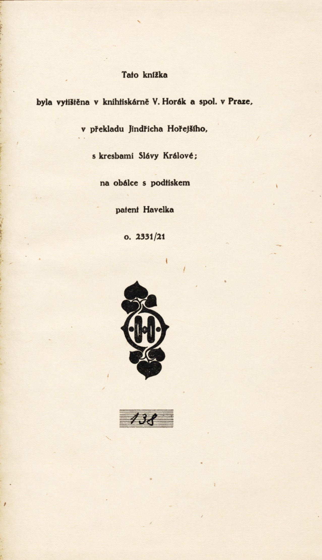 Názvové údaje III=3. výstava veselých kreseb Dra Desideria : listopad - prosinec 1926 : Topičův salon, Praha I, Národní třída 11 Záhlaví-akce III=3. výstava veselých kreseb Dra Desideria (listopad - prosinec 1926 : Topičův salon, Praha, Česko) Další autoři Dr. Desiderius, 1880-1934 (Umělec) (Autor obálky) Korp. Topičův salon (galerie : Praha, Česko : 2007- ) (Jiná role) Sdružení českých umělců grafiků Hollar (Jiná role) Nakladatel [S. l. : s. n., 1926] Rozsah 7 s. Osobní hesla Dr. Desiderius, 1880-1934 - malíř, kreslíř, grafik a karikaturista Klíčová slova česká literatura * kresby * katalog * humor * výstava * karikatury * katalog výstavy * stol. 20., léta 20. * humorné kresby * humorné obrázky * r. 1926 Počet ex. 2, z toho volných 2 Druh dok. monografie Signatura KaG IX B 234, KaG XL A 209 Názvové údaje IV=4. výstava veselých kreseb Dra Desideria : listopad - prosinec 1929 : Topičův salon, Praha 1, Národní třída 11 Záhlaví-akce IV=4. výstava veselých kreseb Dra Desideria (listopad - prosinec 1929 : Topičův salon, Praha, Česko) Další autoři Dr. Desiderius, 1880-1934 (Umělec) (Autor obálky) Korp. Topičův salon (galerie : Praha, Česko : 2007- ) (Jiná role) Sdružení českých umělců grafiků Hollar (Jiná role) Nakladatel [S. l. : s. n., 1926] Rozsah 7 s. Osobní hesla Dr. Desiderius, 1880-1934 - malíř, kreslíř, grafik a karikaturista Klíčová slova česká literatura * kresby * katalog * humor * výstava * karikatury * katalog výstavy * stol. 20., léta 20. * humorné kresby * humorné obrázky * r. 1929 Počet ex. 1, z toho volných 1 Druh dok. monografie Signatura KaG IX B 242 Názvové údaje How funny is rowding anyway? : effects of Room Size, Group Size and the Introduction of Humor / John R. Aiello, Donna E. Thompson, David M. Brodzinsky. 4(2), 1983 Osobní jméno Aiello, John R. (Autor) Další autoři Thompson, Donna E. (Autor) Brodzinsky, David (Autor) Nakladatel [Philadelphia : Taylor & Francis, 1983] Rozsah P. 193-207, [1-18, 9 l.] : tb. Klíčová slova odborný časopis * separát * studie * psychologie * sociální psychologie * skupiny * místa * velikost * aplikace * humor * Amerika * r. 1983 Počet ex. 1, z toho volných 1 Druh dok. separáty Signatura C12c 3015 Názvové údaje Na památku Bedřicha Albrechta / v úpravě Al. Chvály Osobní jméno Albrecht, Bedřich, 1914-1935 (Autor) (Ilustrátor) Další autoři Chvála, Alois, 1885-1973 (Typograf) Korp. Stiebling a Havelka (tiskárna) (Tiskař) Nakladatel Praha : [nakladatel není známý], 1936 Výrobce Stiebling a Havelka Rozsah 21 stran, 15 nečíslovaných stran, 15 nečíslovaných listů obrazových příloh : ilustrace Osobní hesla Albrecht, Bedřich, 1914-1935 - český básník Klíčová slova česká literatura * česká poezie * proletariát * proletářská poezie * socialistická literatura * kresby * kreslený humor * stol. 20., léta 30. Počet ex. 2, z toho volných 2 Druh dok. monografie Signatura KaG LIX A 28, P 106 b 2 Názvové údaje L' art du rire et de la caricature : 300 fac-similés en noir et 12 planches en couleurs d'apres le originaux / par Arsene Alexandre Osobní jméno Alexandre, Arséne, 1859-1937 (Autor) Další autoři Ancienne maison Quantin. librairies-imprimeries réunies (Paris, Francie) (Nakladatel, vydavatel) Imprimerie Motteroz (Paris) (Tiskař) Nakladatel Paris : Ancienne maison Quantin, b. d. Výrobce (C. Motteroz) Rozsah [4] s., 350 s., [12] obr. příl. Klíčová slova dějiny umění * humor * humoristický časopis * humorné kresby * humorné obrázky * kreslený humor * teorie humoru * karikatury * politické karikatury * francouzská kultura * dějiny Francie * francouzští výtvarníci Počet ex. 1, z toho volných 1 Druh dok. monografie Signatura KaG I B 26 Názvové údaje Kapitán Kap / Alphonse Allais ; přeložil Jindřich Hořejší Osobní jméno Allais, Alphonse, 1854-1905 (Autor) Další autoři Hořejší, Jindřich, 1886-1941 (Překladatel) Králová, Sláva (Ilustrátor) Havelka, František Josef, 1882-1947 (Nakladatel, vydavatel) Korp. V. Horák a spol. (Praha) (Tiskař) Nakladatel Praha : vydává za Kroužek umělců F. J. Havelka, 1921 Výrobce V Praze : V. Horák a spol. Rozsah 50 stran : ilustrace ; 20 cm Klíčová slova francouzská literatura * francouzská próza * Allais A. * humoristická literatura * humor * český překlad * Hořejší J. Počet ex. 4, z toho volných 4 Druh dok. monografie Signatura Holan 1171, KaG XXI E2 92, AHO 0109, AHO 0110 Názvové údaje Přesmutná píseň o Rukověti sběratele / kterouž napsal J.M. Augusta ; obrazy doprovodil Svatopluk Klír Osobní jméno Augusta, Jan Maria, 1897-1939 (Autor) Další autoři Klír, Svatopluk, 1896-1959 (Ilustrátor) Bradáč, Ludvík, 1885-1947 (Nakladatel, vydavatel) Nakladatel [Praha] : Ludvík Bradáč, [1927] Rozsah 23 stran : ilustrace Osobní hesla Augusta, Jan Maria, 1897-1939 - spisovatel Klíčová slova česká literatura * česká poezie * sběratelství * sběratelé * humor * humoristická literatura * humorná poezie * humorné básně * bibliofilie Počet ex. 3, z toho volných 3 Druh dok. monografie Signatura KaG XXVIII G 64, C12b 14225, Sáňka 4010 Názvové údaje The Sad Sack / by George Baker Osobní jméno Baker, George, 1915-1975 (Autor) Nakladatel New York : Simon and Schuster, 1944 Rozsah 1 sv. (nestránkováno) : il. Klíčová slova kresby * karikatury * kreslený humor * obrazové publikace Počet ex. 1, z toho volných 1 Druh dok. monografie Signatura Hoffmeister 0505 Názvové údaje Tábor padlých žen / Anton Baláž ; Ze sloven. přel. Emil Charous ; Obál. navrhl Vladimír Nárožník Osobní jméno Baláž, Anton, 1943- (Autor) Další autoři Charous, Emil, 1928-2017 (Překladatel) Nárožník, Vladimír, 1939-2002 (Grafický technik) Nakladatel Praha : Ivo Železný, 1998 Rozsah 293 s. Klíčová slova slovenská literatura * próza * román * hum