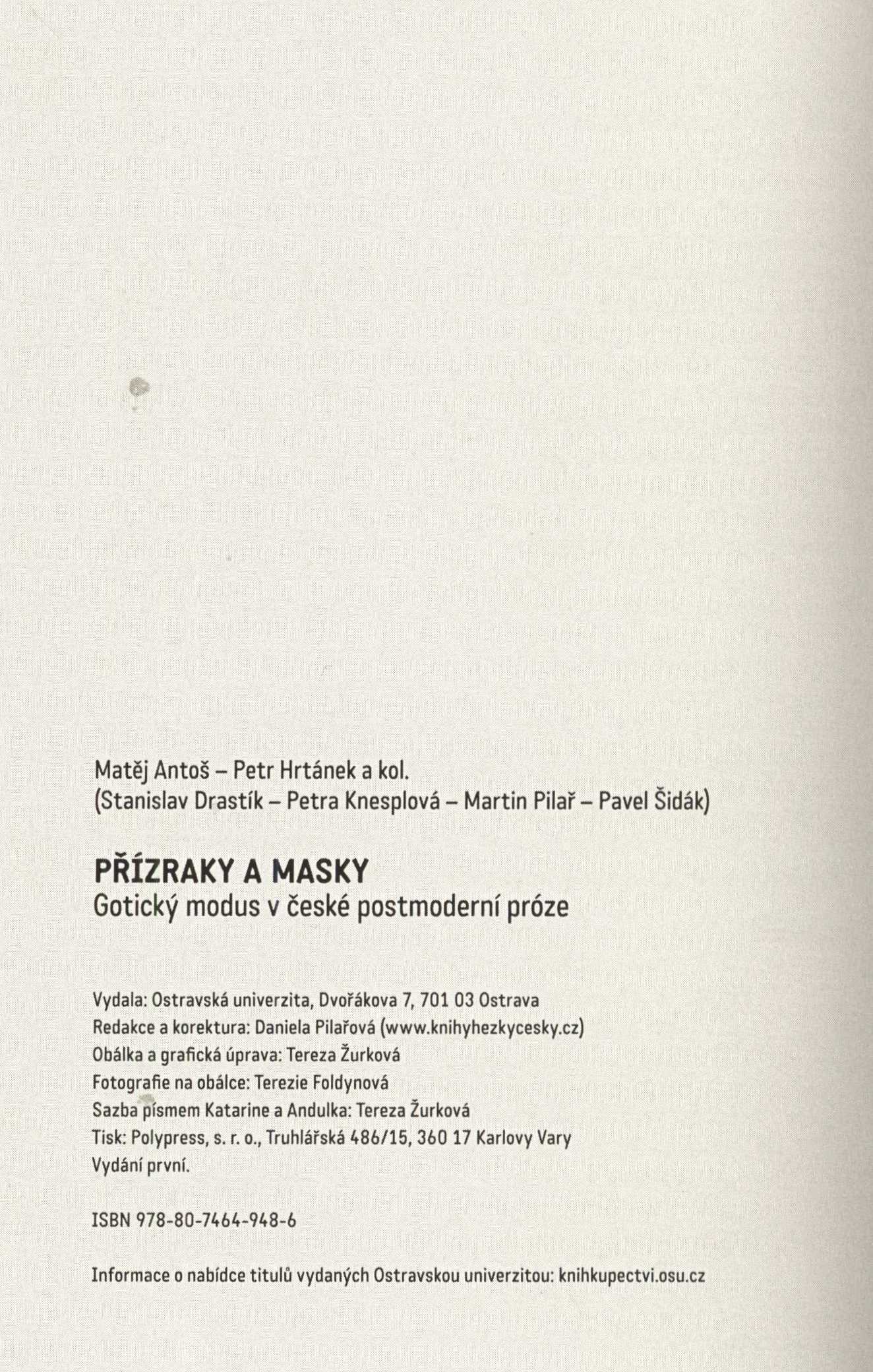 Názvové údaje Josef Kajetán Tyl : 1808-1856-2006-2008 / [připravil Výzkumný ústav dramatické a scénické tvorby DAMU pro Centrum základního výzkumu AMU v Praze a MU Brno ; obálka, grafická úprava a sazba Martin Radimecký] Záhlaví-korpor. Akademie múzických umění v Praze. Divadelní fakulta. Výzkumný ústav dramatické a scénické tvorby (Autor) Další autoři Radimecký, Martin, 1963- (Autor obálky) Nakladatel V Praze : KANT - Karel Kerlický pro AMU, 2007 Rozsah 198 s. ; 24 cm Osobní hesla Tyl, Josef Kajetán, 1808-1856 - dramatik, prozaik, novinář a kritik Klíčová slova čeští dramatici * čeští prozaici * české drama * česká próza * stol. 19. * interpretace literárního díla * literárněvědné rozbory * stol. 20.-21. * sborníky z konferencí Počet ex. 1, z toho volných 1 Druh dok. monografie Signatura C12c 2525 Názvové údaje Přízraky a masky : gotický modus v české postmoderní próze / Matěj Antoš, Petr Hrtánek a kol., Stanislav Drastík, Petra Knesplová, Martin Pilař, Pavel Šidák ; obálka a grafická úprava Tereza Žurková Osobní jméno Antoš, Matěj, 1987- (Autor) Další autoři Hrtánek, Petr, 1972- (Autor) Drastík, Stanislav, 1992- (Autor) Knesplová, Petra (Autor) Pilař, Martin, 1955- (Autor) Šidák, Pavel, 1977- (Autor) Žurková, Tereza, 1987- (Autor obálky) Nakladatel Ostrava : Ostravská univerzita, 2017 Výrobce Karlovy Vary : Polypress, s.r.o. Rozsah 191 stran ; 21 cm Klíčová slova česká próza * stol. 20.-21. * postmodernismus * literatura * Česko * gotická próza * Česko * stol. 20.-21. * interpretace literárního díla * literárněvědné rozbory * kolektivní monografie Počet ex. 1, z toho volných 1 Druh dok. monografie Signatura C12b 18127 Názvové údaje Z toho, co bylo - zůstává to, co bude : básník a kritik Antonín Brousek / Lucie Antošíková ; obálka (s použitím fotografie Josefa Chuchmy) a grafická úprava Boris Mysliveček Osobní jméno Antošíková, Lucie, (Autor) 1982- Další autoři Mysliveček, Boris, 1948- (Autor obálky) (Knižní grafik) Chuchma, Josef, 1959- (Fotograf) Korp. Ústav pro českou literaturu (Akademie věd ČR) (Nakladatel, vydavatel) Host (nakladatelství) (Nakladatel, vydavatel) Tiskárna Reprocentrum (Tiskař) Nakladatel Praha : Ústav pro českou literaturu AV ČR, v.v.i. ; Brno : Host, 2017 Výrobce Blansko : Reprocentrum, a.s. Rozsah 231 stran : ilustrace, portréty, faksimile ; 21 cm Osobní hesla Brousek, Antonín, 1941-2013 - bohemista, redaktor, básník, literární kritik, překladatel, pedagog Chronologie 20. století Předmětová hesla Czech poetry - 20th century * literary life - Czechia - 20th century * literary criticism - Czechia - 20th century * literary criticism and history * interpretation and reception of literature Klíčová slova česká literatura * monografie * literární život * literární kritika * literárněvědné rozbory * Brousek A. * česká poezie * interpretace literárního díla * přijetí literárního díla * Česko * stol. 20.-21. Počet ex. 1, z toho volných 1 Druh dok. monografie Signatura C12b 17843 Názvové údaje Mystika Julia Zeyera / V. M. Augusta Osobní jméno Augusta, Jan Maria, 1897-1939 (Autor) Další autoři Bradáč, Ludvík, 1885-1947 (Nakladatel, vydavatel) Korp. Politika (tiskárna, nakladatelství) (Tiskař) Nakladatel Praha : Nákladem L. Bradáče, 1918 Výrobce (Tiskem "Politiky") Rozsah 15 s. : il. Osobní hesla Zeyer, Julius, 1841-1901 - básník, prozaik, dramatik, překladatel Klíčová slova česká literatura * literární historie * lumírovci * Zeyer J. * katolicismus * skepticismus * interpretace * interpretace literárního díla * estetika * duševní aristokratismus Druh dok. monografie Názvové údaje Postmodernistické postupy v prózách Ladislava Fukse : diplomová práce / vypracovala Božena Bacílková ; vedoucí práce Helena Kupcová ; Pedagogická fakulta Univerzity Karlovy, Katedra české literatury Osobní jméno Bacílková, Božena (Autor) Další autoři Kupcová, Helena, 1940- (Vedoucí diplomové práce nebo disertace) Korp. Univerzita Karlova. Pedagogická fakulta (Praha (Česko) Nakladatel Praha, 1994 Rozsah 164 s. Osobní hesla Fuks, Ladislav, 1923-1994 - prozaik Klíčová slova čeští spisovatelé * česká literatura * postmodernismus * interpretace literárního díla * diplomová práce Počet ex. 1, z toho volných 1 Druh dok. monografie Signatura Fuks 0109 Názvové údaje Kain podle Hrabala / Jacek Baluch ; [z polského originálu ... přeložila Marie Havránková ; obálku navrhla Michaela Blažíčková ; grafickou úpravu navrhl Pergamen Trnava, s.r.o.] Osobní jméno Baluch, Jacek, 1940-2019 (Autor) Další autoři Havránková, Marie, 1949- (Překladatel) Blažíčková, Michaela (Autor obálky) Jankovič, Milan, 1929-2019 (Autor úvodu atd.) Korp. Pergamen Trnava, s. r.o. (grafické studio, studio vizuální komunikace) (Grafický technik) Nakladatel Praha : Academia, 2012 Rozsah 162 s. Osobní hesla Hrabal, Bohumil, 1914-1997 - prozaik, básník a překladatel Klíčová slova česká próza * interpretace literárního díla * přijetí literárního díla * literárněvědné rozbory * literární tvorba * stol. 20. * studie Počet ex. 1, z toho volných 1 Druh dok. monografie Signatura C12b 14589 Názvové údaje Tíseň tmy, aneb, Halasovské interpretace po roce 1948 / Michal Bauer Osobní jméno Bauer, Michal, 1966- (Autor) (Editor) (Autor komentáře) Další autoři Trinkewitz, Zdeněk, 1976- (Knižní grafik) Korp. Akropolis - Filip Tomáš (nakladatelství) (Nakladatel, vydavatel) Akcent tiskárna Vimperk (Tiskař) (Tiskař obrazu) Nakladatel Praha : Akropolis, 2005 Výrobce Vimperk : Akcent Rozsah 470 stran : ilustrace, portréty, faksimile ; 19 cm + 1 CD (archivní záznamy ČRo s Halasem) Osobní hesla Halas, František, 1901-1949 - básník, esejista, redaktor, překladatel Klíčová slova česká poezi