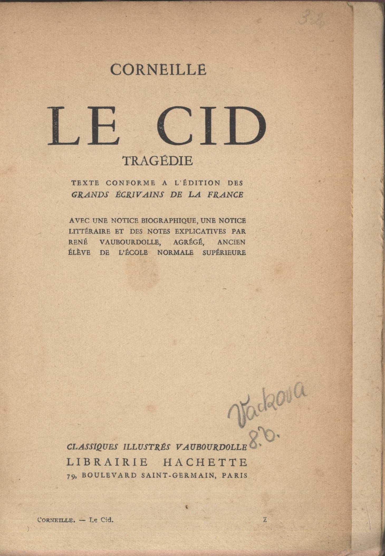 Názvové údaje La littérature française au dix-huitième siècle / par Paul Albert Osobní jméno Albert, Paul, 1830-1880 (Autor) Další autoři Pollak, Anna (Dřívější majitel) (Autor podpisu) Korp. Librairie Hachette et Cie (firma) (Nakladatel, vydavatel) Paul Brodard (tiskárna) (Tiskař) Nakladatel Paris : Librairie Hachette et Cie, 1892 Výrobce Paul Brodard) Rozsah 478 s. Klíčová slova francouzská literatura * dějiny literatury * literární historie * francouzská kultura * stol. 18. * klasicismus * osvícenství Počet ex. 1, z toho volných 1 Druh dok. monografie Signatura KaG XXVIII F2 52 Názvové údaje Études critiques sur l'histoire de la littérature française : / par Ferdinand Brunetière. troisième série , Descartes - Pascal - Le Sage - Marivaux - Prévost - Voltaire et Rousseau - Classiques et romantiques Osobní jméno Brunetière, Ferdinand, 1849-1906 (Autor) Další autoři Librairie Hachette et Cie (firma) (Nakladatel, vydavatel) Paul Brodard (tiskárna) (Tiskař) Nakladatel Paris : Librairie Hachette et Cie, 1887 Výrobce Imp. P. Brodard et Gallois) Rozsah 326 s. Osobní hesla Descartes, René, 1596-1650 - francouzský filozof, matematik a fyzik * Pascal, Blaise, 1623-1662 - francouzský matematik, fyzik a spisovatel * Lesage, Alain-René, 1668-1747 - francouzský spisovatel * Marivaux, Pierre de, 1688-1763 - novinář, dramatik * Prévost, Antoine François, 1697-1763 - francouzský kněz, spisovatel a překladatel * Voltaire, 1694-1778 - francouzský filozof, básník, encyklopedista * Rousseau, Jean-Jacques, 1712-1778 - francouzský romanopisec, esejista, filozof, hudební kritik a skladatel Klíčová slova francouzská literatura * literární historie * evropský romantismus * romantismus * francouzští spisovatelé * francouzští básníci * francouzský básník * klasicismus * osvícenství * preromantismus Počet ex. 1, z toho volných 1 Druh dok. monografie Signatura KaG XII D 81 Názvové údaje Le Cid : tragédie : texte conforme a l'édition des Grands écrivains de la France / Corneille ; avec une notice biographique, une notice littéraire et des notes explicatives par René Vaubourdolle Osobní jméno Corneille, Pierre, 1606-1684 (Autor) Další autoři Vacková, Růžena, 1901-1982 (Dřívější majitel) Vaubourdolle, René , 1894-1979 (Autor úvodu atd.) Korp. Librairie Hachette et Cie (firma) (Nakladatel, vydavatel) Brodard et Taupin (Tiskař) Nakladatel Paris : Librairie Hachette, c1935 Výrobce Brodard et Taupin) Rozsah 103 s. : il. Klíčová slova francouzská literatura * francouzské divadlo * dramata * divadelní hry * divadelní hra * klasicismus Počet ex. 1, z toho volných 1 Druh dok. monografie Signatura VHB 2157 Názvové údaje Cinna, ou, La Clémence d'Auguste : tragédie / Pierre Corneille Osobní jméno Corneille, Pierre, 1606-1684 (Autor) Další autoři Rhombus Edition (Nakladatel, vydavatel) Nakladatel Paris ; Vienne : Bibliothèque Rhombus, 1921 Rozsah 86 s. Klíčová slova francouzská literatura * francouzské divadlo * tragédie * veršovaná tragédie * klasicismus Počet ex. 1, z toho volných 1 Druh dok. monografie Signatura VHB 2158 Názvové údaje Théâtre choisi : en deux volumes / Corneille ; introduction par Émile Faguet. tome 1 Osobní jméno Corneille, Pierre, 1606-1684 (Autor) Další autoři Faguet, Émile, 1847-1916 (Autor úvodu atd.) Korp. Nelson (nakladatelství, Paříž, Francie) (Nakladatel, vydavatel) Nelson (tiskárna, Édimbourg, Skotsko) (Tiskař) Nakladatel Paris : Nelson, 1931 Výrobce Imprimerie Nelson) Rozsah xii, 562 s., [1] l. obr. příl. : il. Klíčová slova francouzská literatura * francouzské divadlo * dramata * divadelní hry * divadelní hra * klasicismus Počet ex. 1, z toho volných 1 Druh dok. monografie Signatura VHB 2156/1 Názvové údaje Théâtre choisi : en deux volumes / Corneille ; introduction par Émile Faguet. tome 2 Osobní jméno Corneille, Pierre, 1606-1684 (Autor) Další autoři Nelson (nakladatelství, Paříž, Francie) (Nakladatel, vydavatel) Nelson (tiskárna, Édimbourg, Skotsko) (Tiskař) Nakladatel Paris : Nelson, [1931] Výrobce Imprimerie Nelson) Rozsah 571 s., [1] l. obr. příl. : il. Klíčová slova francouzská literatura * francouzské divadlo * dramata * divadelní hry * divadelní hra * klasicismus Počet ex. 1, z toho volných 1 Druh dok. monografie Signatura VHB 2156/2 Názvové údaje Soustavný přehled obecných dějin literatury naší vzdělanosti. 4, Pseudoklasicismus, preromantismus, romantismus a realismus : univerzitní přednášky / Václav Černý ; [k vydání připravil Otakar Mališ ; obálku nahrhla Michaela Blažejová dle předchozích vzorů Josefa Týfy] Osobní jméno Černý, Václav, 1905-1987 (Autor) Další autoři Mališ, Otakar, 1943- (Editor) Blažejová, Michaela, 1966- (Autor obálky) Týfa, Josef, 1913-2007 (Autor obálky) Nakladatel Praha : Academia, 2009 Výrobce (Serifa) Rozsah 582 s. : il., portréty, faksim. Klíčová slova evropská literatura * kulturní dějiny * intelektuální život * stol. 18.-20. * Evropa * literární romantismus * evropský romantismus * klasicismus * realismus * dějiny literatury * přednášky * sborníky * studie Počet ex. 1, z toho volných 1 Adr. el. zdr. obsah Druh dok. monografie Signatura C12b 13721 Názvové údaje Soustavný přehled obecných dějin literatury naší vzdělanosti : [univerzitní přednášky] / Václav Černý ; [k vydání připravil, rejstříkem jmen, rejstříkem literárních děl, obrazovými přílohami a ediční poznámkou doprovodil Otakar Mališ ; autorem slovíčku fonetické transkripce je Jan Hronek ; návrh obálky a grafická úprava Josef Týfa]. (3), Baroko a klasicismus Osobní jméno Černý, Václav, 1905-1987 (Autor) Další autoři Mališ, Otakar, 1943- (Editor) Hronek, Jan (Bibliografický předchůdce) Týfa, Josef, 1913-2007 (Knižní grafik) Nakladatel Jinočany : H & H, 2005 Rozsah 678 s. : il., faksim